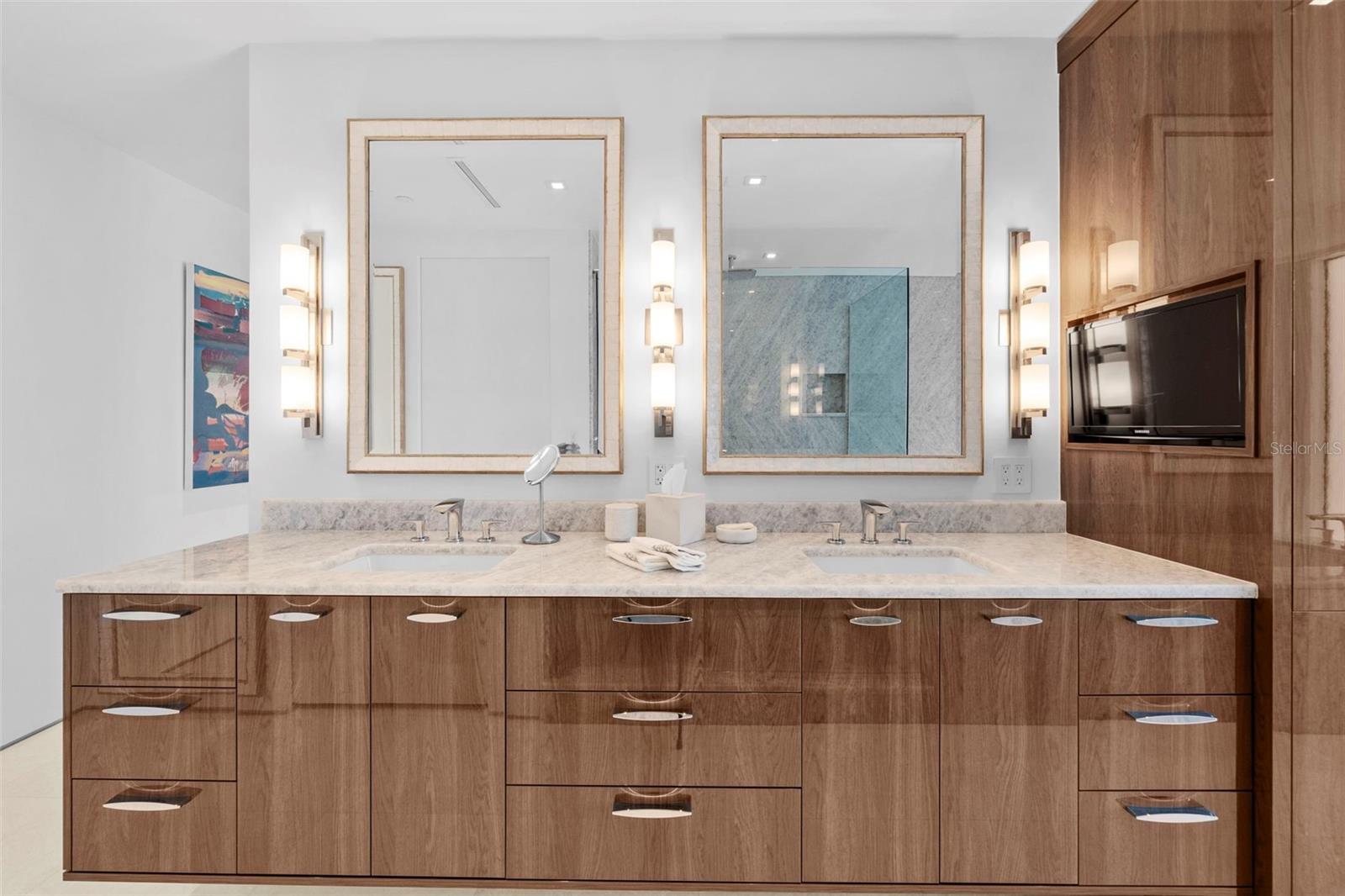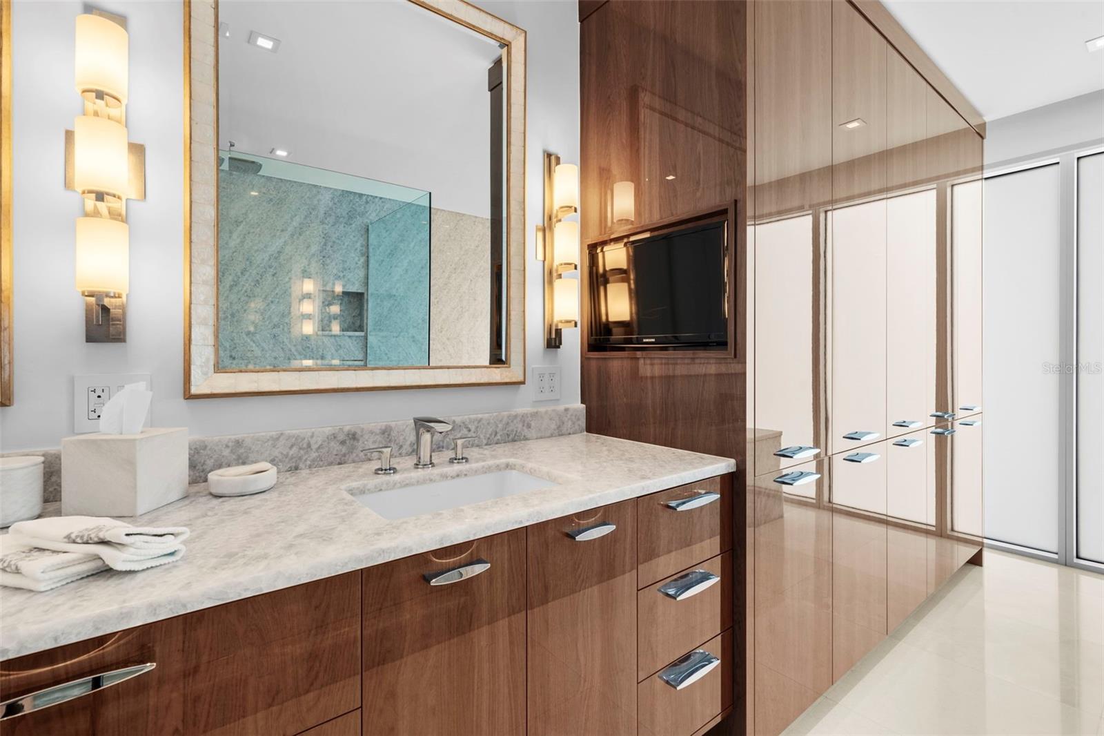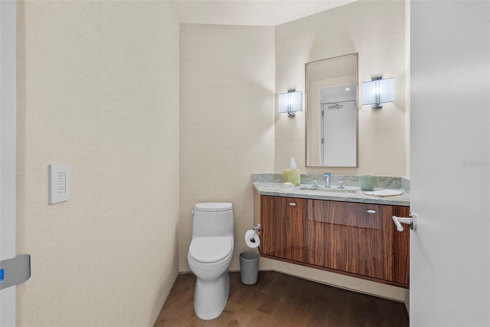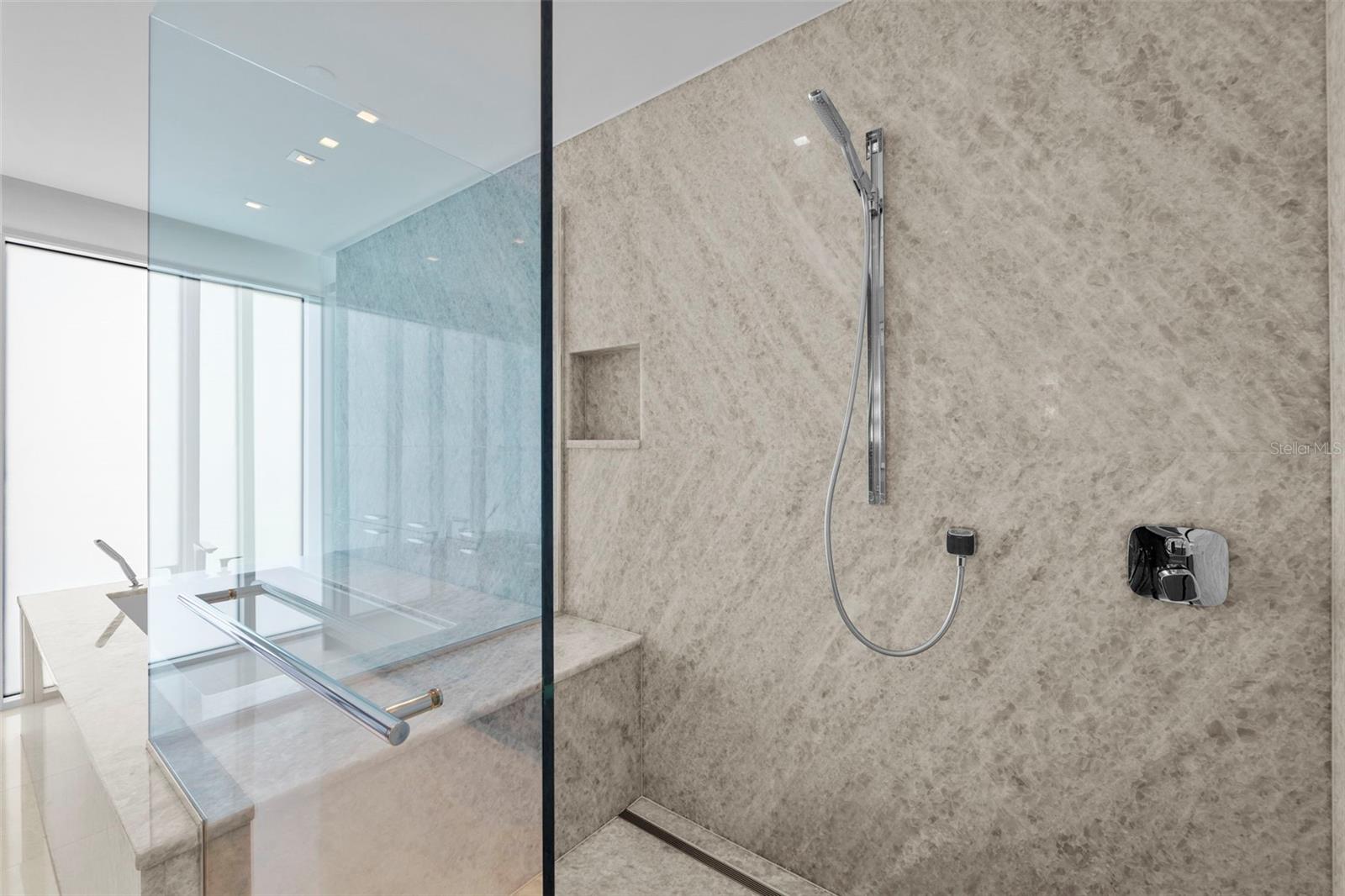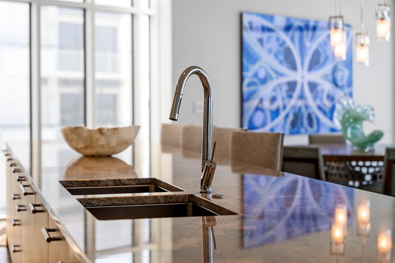 Welcome to AQUA, a pinnacle of refined luxury and architectural brilliance on Golden Gate Point. Designed by heralded modernist architect, Guy Peterson, this exclusive nine-story boutique building is home to only eight exquisite, full-floor residences, each designed for unparalleled privacy and sophistication. This 6th floor residence offers sweeping, unobstructed 180-degree views of Sarasota Bay and beyond, complete with a private boat dock. The location is enviable as it's just steps from the vibrant energy of downtown Sarasota. With over 4,100 square feet under air, this light-filled residence boasts 10-foot floor-to-ceiling walls of glass where the owners have curated some of the finest interiors in our marketplace. Hundreds of thousands of dollars were spent on elevating each aspect of this spectacular residence above and beyond the original finishes. The plan flows beautifully after entering the formal foyer from your private elevator turning the corner to experience the breathtaking views from the stunning living room. The adjacent wet bar area is positioned perfectly for entertaining guests. The gourmet kitchen features a Wolf cooktop and ovens, 2 Miele dishwashers and a Sub-Zero refrigerator. Cuisnes Laurier cabinetry and an expansive island topped with quartzite Cielo countertop provides casual in-kitchen dining. The adjacent formal dining room is a stunning space with 2 walls of glass offering views all around. The spacious water-side primary suite serves as a true sanctuary, offering a custom walk-in closet with individual sections fronted by Cuisimax poly-gloss doors and packing stations with extra storage. The spa-like primary bath features a dual vanity with blue crystal marble countertops and undermount sinks, a glass walk-in shower with full tile surround, a soaking tub and private water closet. The two guest suites are situated for complete privacy with walk-in closets and en-suite baths with the fourth bedroom currently serving as an office. With practical conveniences including extra storage flanking the service elevator entry, a Lutron light system, two sets of electronic blinds: both solar and privacy throughout. AQUA's state-of-the-art amenities create an environment that feels both exclusive and resort-like. Residents enjoy highly personalized concierge services, a private elevator, an enclosed two-car garage with dehumidifier and an EV charging station, a waterfront heated pool and spa, a fitness studio, temperature-controlled wine storage/wine tasting room and a rooftop observation area with stunning panoramic views. The building also includes architecturally landscaped grounds, sauna and secure spaces for meetings and entertaining. AQUA is truly an intimate and exclusive sanctuary reflecting a heritage of Sarasota's architectural elegance and embodies the pinnacle of modern coastal living. Discover AQUA, where refined elegance meets Sarasota's vibrant downtown and idyllic beaches.