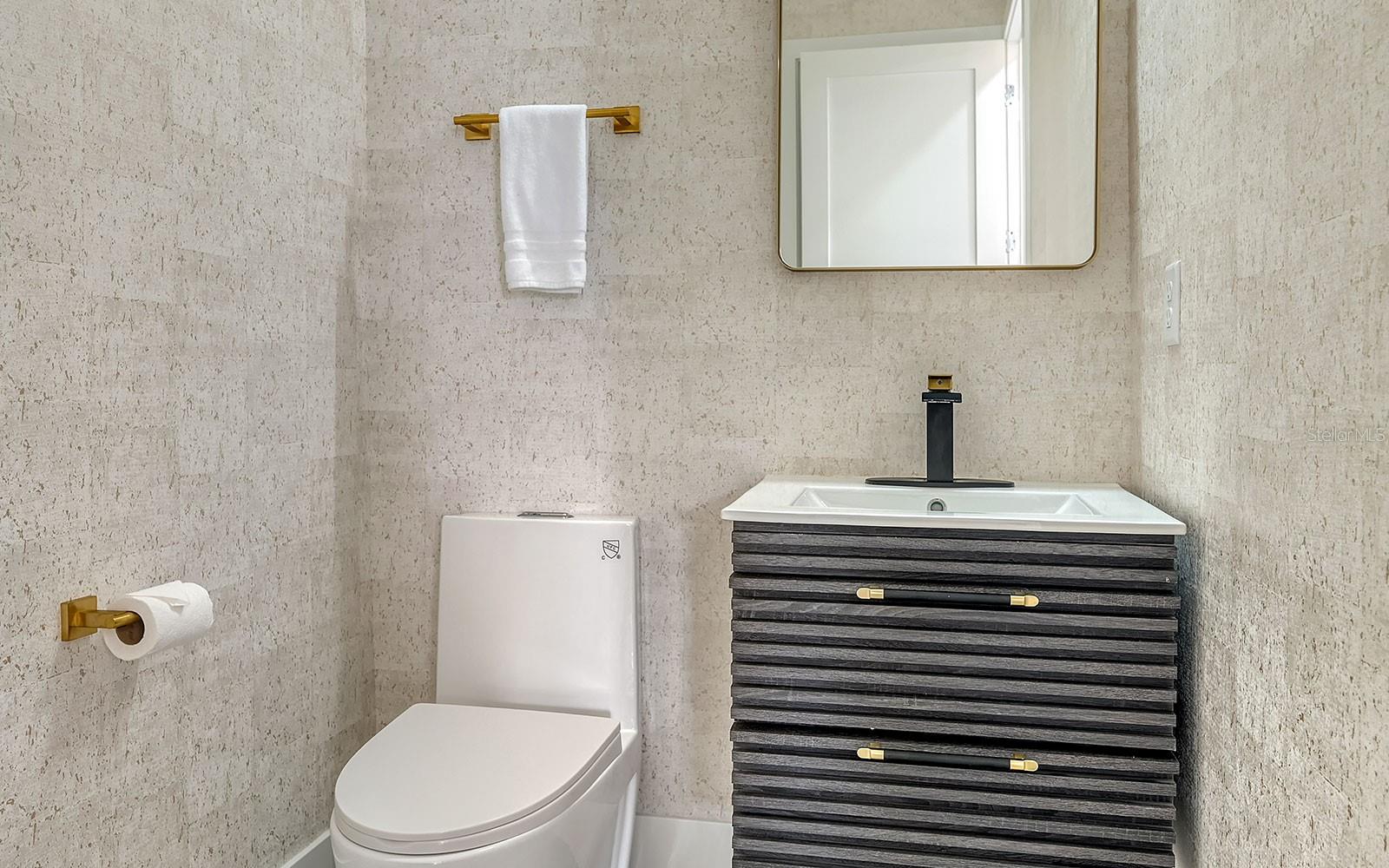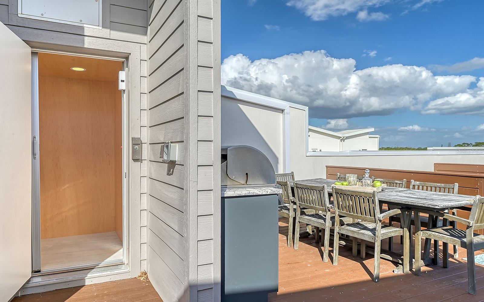 Nearly new, four-bedroom townhouse in Sarasota’s uptown district. Outstanding location on upper Main Street close to everything that makes Sarasota such a great place to live and visit. Walk to galleries, cafes, restaurants and boutiques. Just minutes to beaches, golf, hospital, airport and world-class cultural venues. Next to northern terminus of Bay Runner trolley with complimentary service to downtown, St. Armands Circle and Lido Beach. Dressed to impress with designer-selected finishes, this 2,763-square-foot residence comes turnkey furnished. Move right in and swoon over the alluring good looks in every detail. The smart, four-level floor plan features double-concrete construction, high ceilings, private elevator, eight-foot interior doors, energy-efficient systems, hurricane-rated impact windows, multiple balconies, finished rooftop, and parking for four vehicles in the two-car garage plus attached two-car carport. Now, for a quick floor by floor tour. The first level has a private guest suite. The main second level features an open floor plan with kitchen, dining and living. The kitchen is a delight with sophisticated European cabinetry, quartz countertops, under-cabinet lighting, center island with waterfall feature, and high-end Samsung and Bosch stainless steel appliances. The third level houses three bedrooms and two baths, including the primary suite with an outdoor balcony, walk-in closet and luxe en-suite bath. The fourth level is a finished rooftop designed for outdoor living. It has various gathering areas, an outdoor kitchen, jetted spa and glass railing with city view. The location, the floor plan, the decor, the turnkey furnishings. Indulge in an urban lifestyle just moments from Sarasota’s cultural charms.