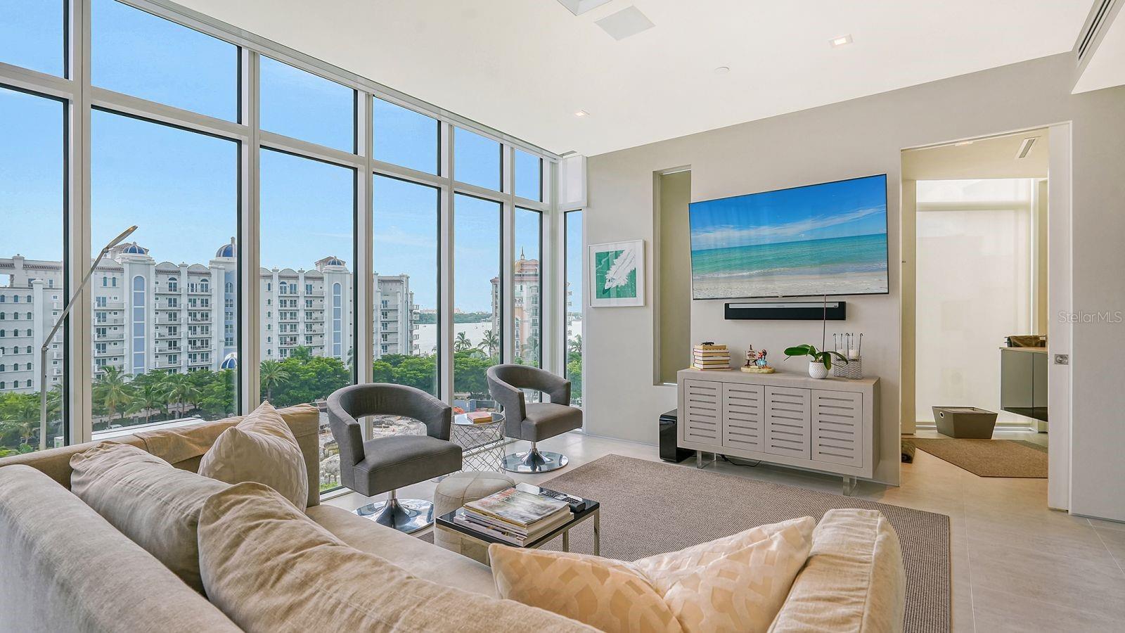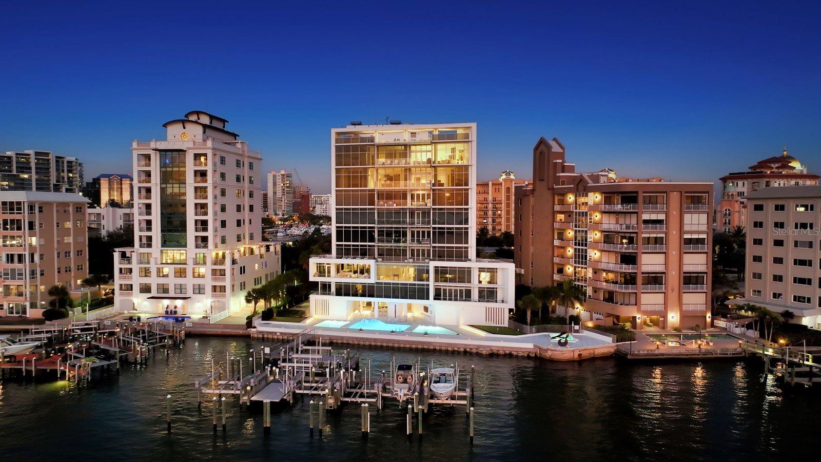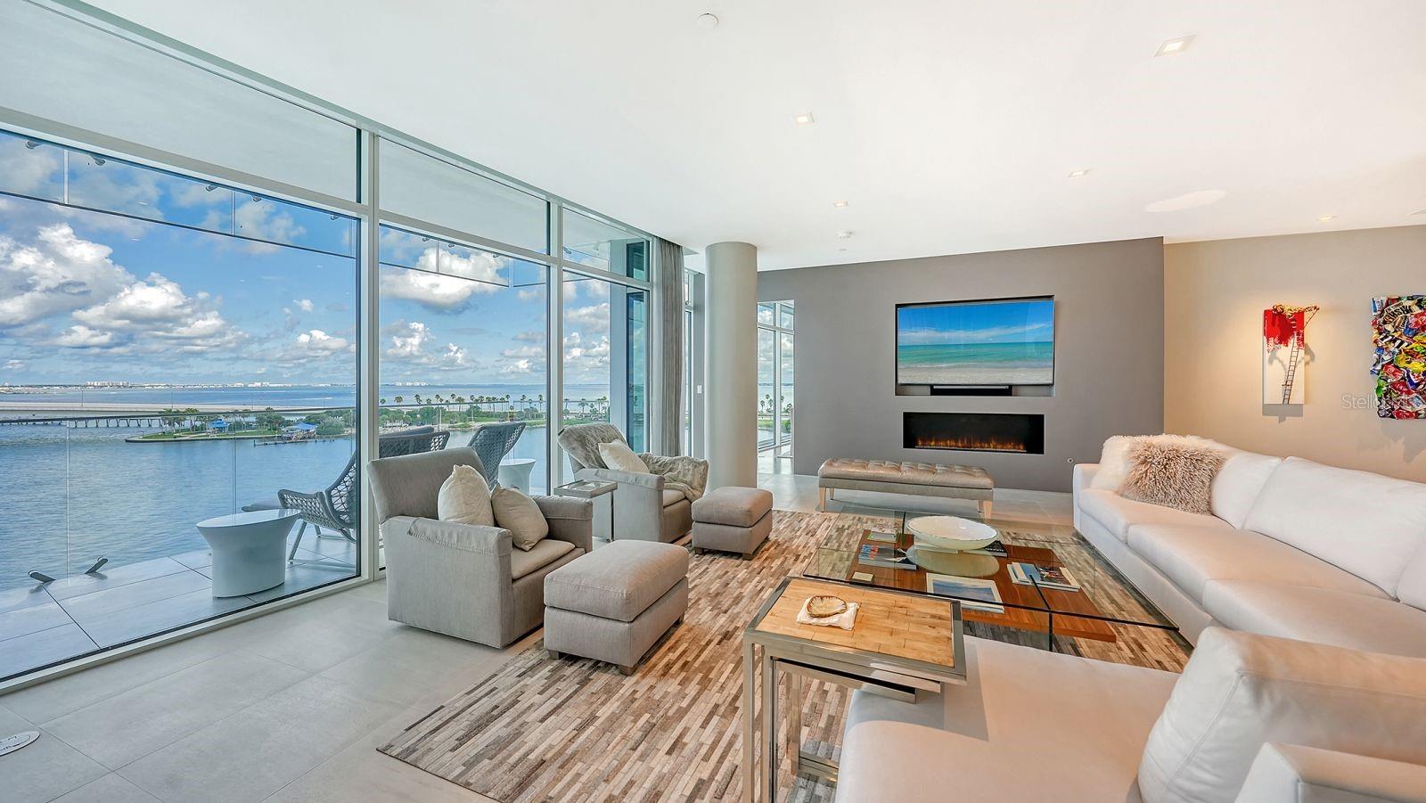 AQUA is an extraordinary boutique building featuring just seven exclusive residences, offering the pinnacle of downtown Sarasota Bayfront living. A rare opportunity to experience a truly exceptional lifestyle in a one-of-a-kind property. This stunning 7th-floor residence features 4 en-suite bedrooms, with the flexibility to create a spacious office. Luxurious details include wood flooring, porcelain tile, expansive custom Lube cabinets, Caesarstone countertops throughout, wet bar, fireplace and floor-to-ceiling hurricane-impact windows. An oversized, retractable "NanaWall" system opens fully, creating a seamless transition to the large waterfront terrace with glass railings, offering breathtaking views. The bayside primary bedroom is a private retreat, featuring a spa-style bath with in mirror Television, towel warming system and an oversized walk-in closet. Elegant chandeliers and meticulously curated light fixtures enhance the ambiance, adding a touch of sophistication throughout the residence. AQUA’s meticulously designed amenities deliver the ultimate in luxury living: Full-time concierge services, private corner end boat slip, private elevator entrances, fitness studio overlooking Sarasota Bay, yoga room, spa with massage and facial rooms, sauna, boardroom, temperature-controlled wine room with individual private storage for over 100 bottles, rooftop terrace providing a premier outdoor entertaining space with breathtaking views. The resort-style pool area sits directly on the Bay, offering a heated pool, lounging pools, a whirlpool spa, and a waterfront putting green. Additionally, a private, enclosed two-car garage with charging station provides ample storage space. This is a unique chance to own a residence in Sarasota’s most exclusive Bayfront address. Don’t miss it!
