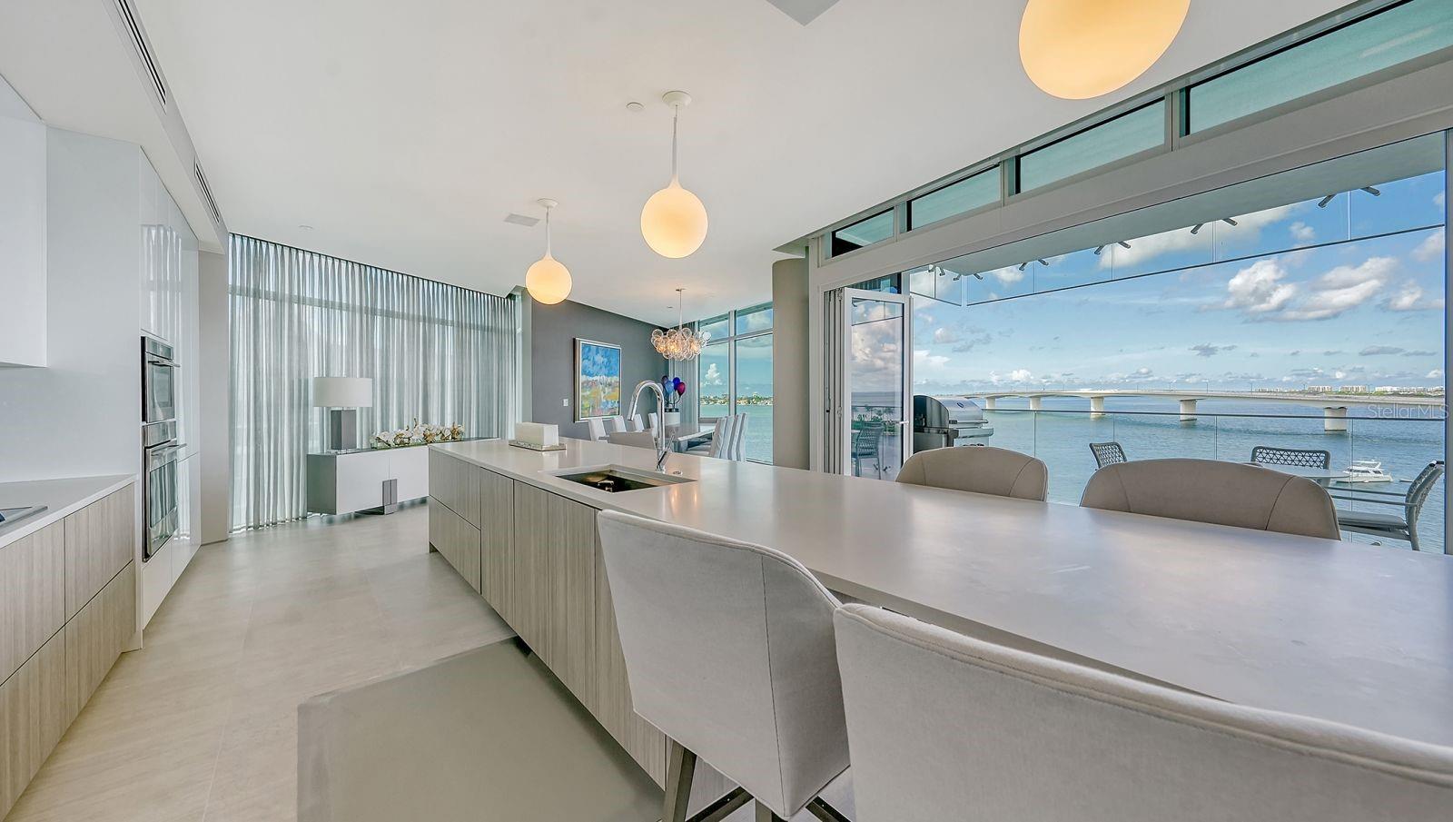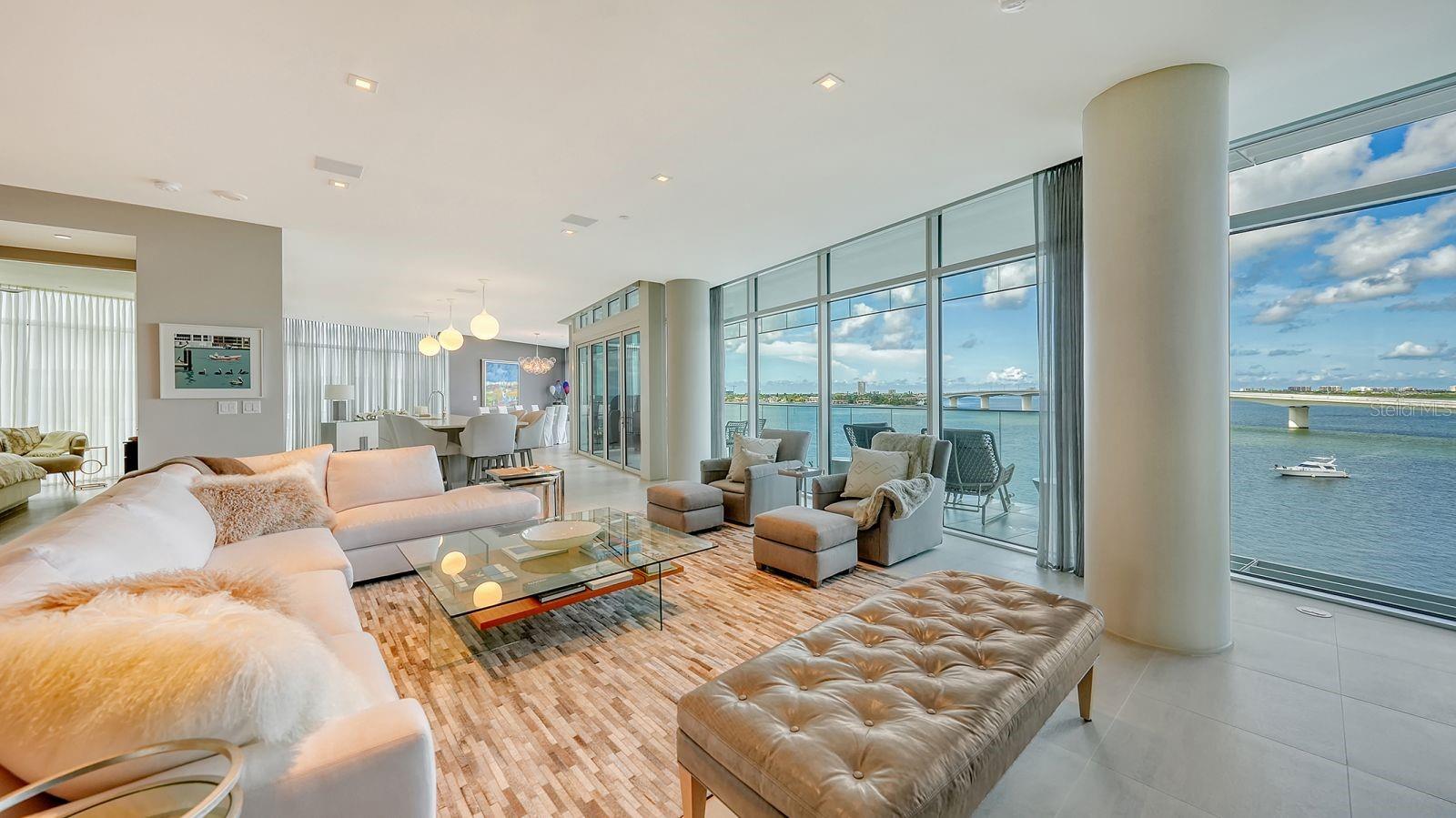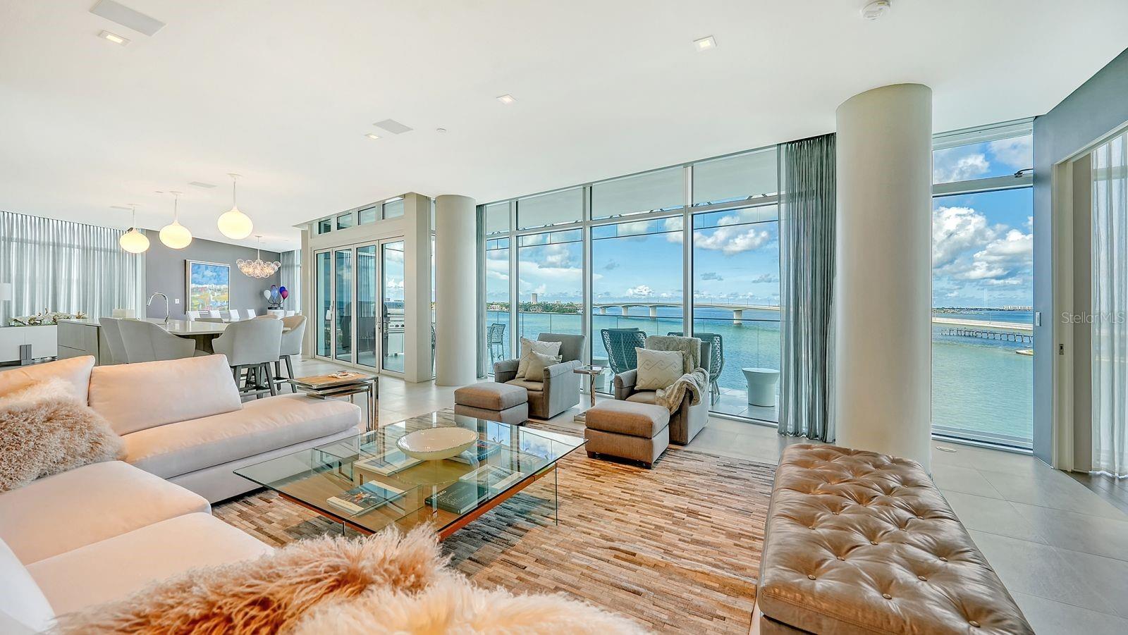 AQUA is an extraordinary boutique building featuring just seven exclusive residences, offering the pinnacle of downtown Sarasota Bayfront living. A rare opportunity to experience a truly exceptional lifestyle in a one-of-a-kind property. This stunning 7th-floor residence features 4 en-suite bedrooms, with the flexibility to create a spacious office. Luxurious details include wood flooring, porcelain tile, expansive custom Lube cabinets, Caesarstone countertops throughout, wet bar, fireplace and floor-to-ceiling hurricane-impact windows. An oversized, retractable "NanaWall" system opens fully, creating a seamless transition to the large waterfront terrace with glass railings, offering breathtaking views. The bayside primary bedroom is a private retreat, featuring a spa-style bath with in mirror Television, towel warming system and an oversized walk-in closet. Elegant chandeliers and meticulously curated light fixtures enhance the ambiance, adding a touch of sophistication throughout the residence. AQUA’s meticulously designed amenities deliver the ultimate in luxury living: Full-time concierge services, private corner end boat slip, private elevator entrances, fitness studio overlooking Sarasota Bay, yoga room, spa with massage and facial rooms, sauna, boardroom, temperature-controlled wine room with individual private storage for over 100 bottles, rooftop terrace providing a premier outdoor entertaining space with breathtaking views. The resort-style pool area sits directly on the Bay, offering a heated pool, lounging pools, a whirlpool spa, and a waterfront putting green. Additionally, a private, enclosed two-car garage with charging station provides ample storage space. This is a unique chance to own a residence in Sarasota’s most exclusive Bayfront address. Don’t miss it!