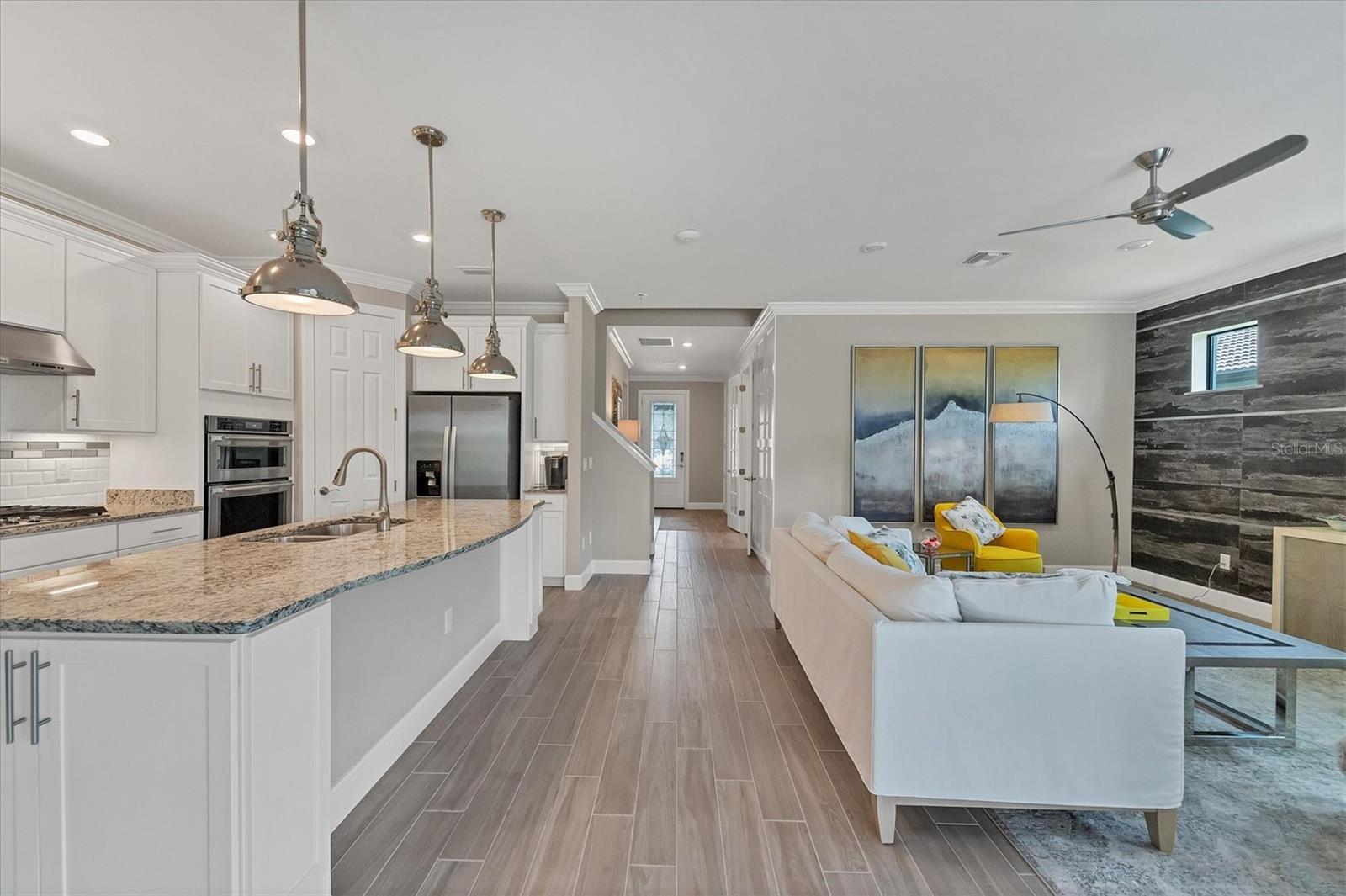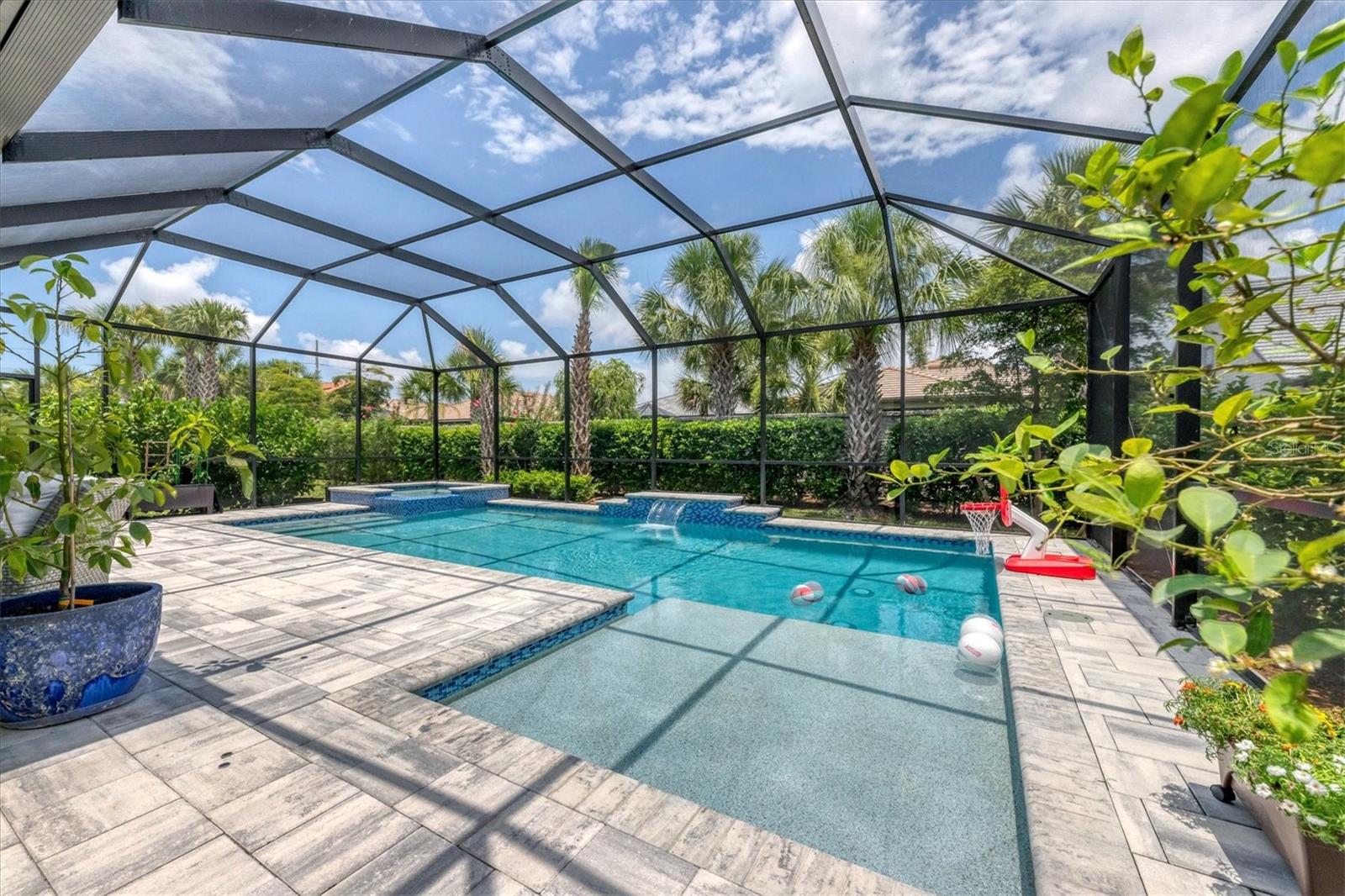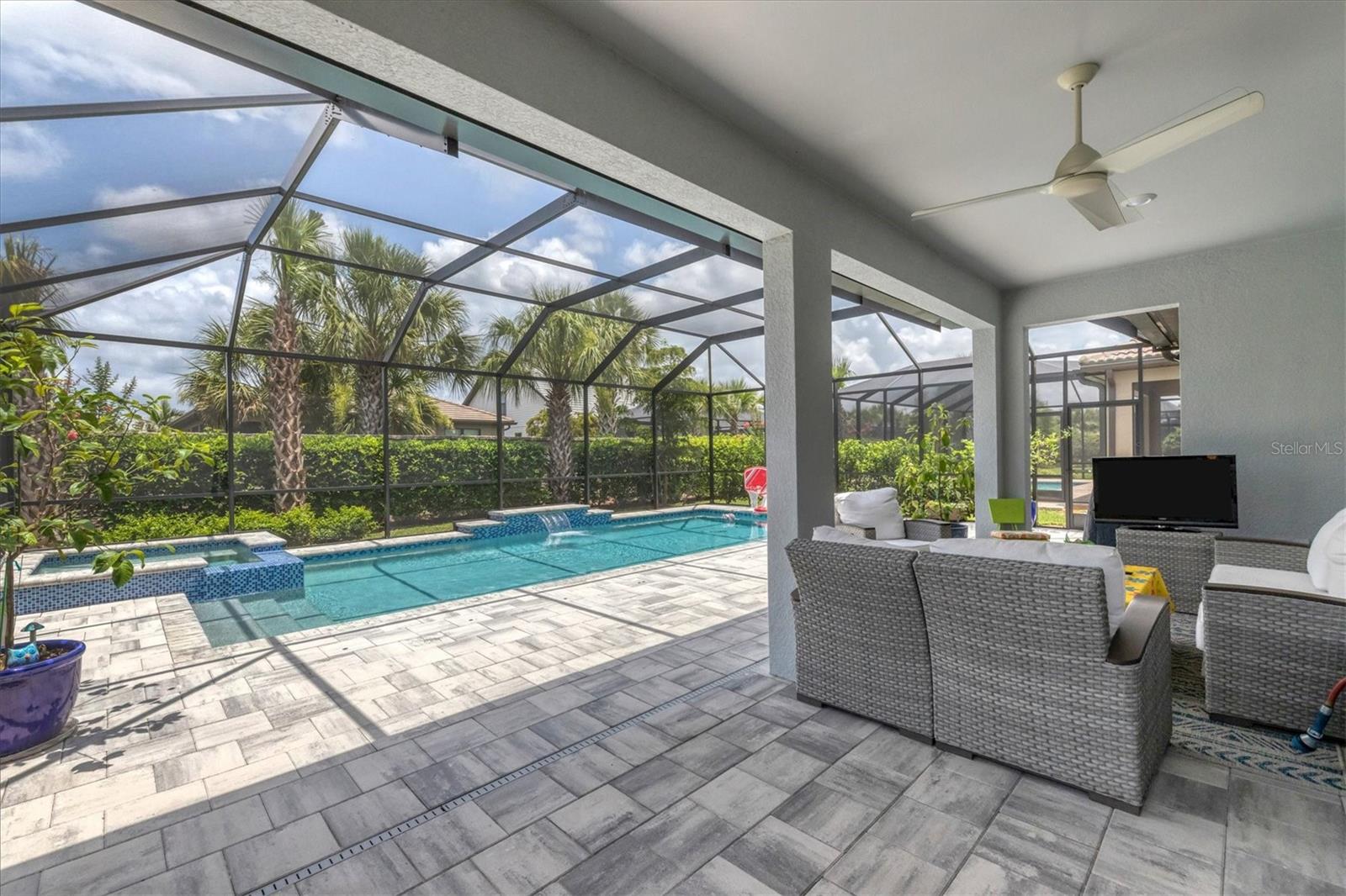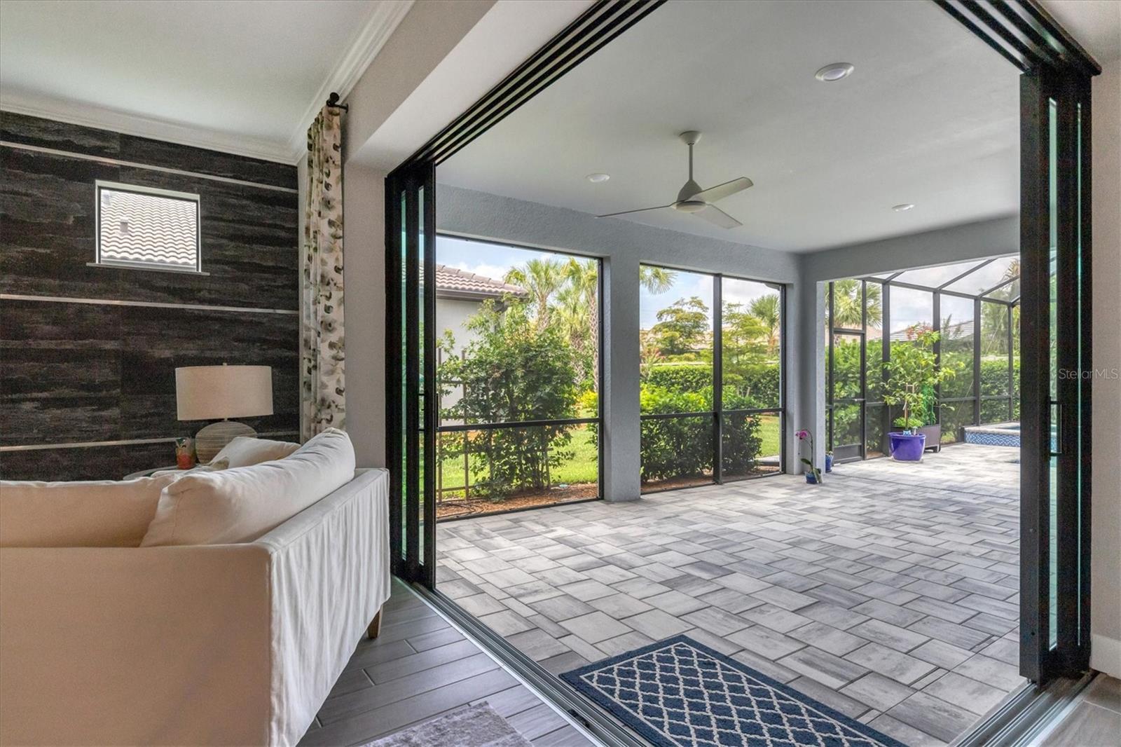 This stunning 4-bedroom 3-bath plus den Summerwood model has over 2943 square feet of spacious open living. Foyer entry leading to great room with elevated ceilings, crown moldings, custom wall finishes including a dramatic tiled accent wall. Chefs' kitchen with white cabinets, tiled backsplash and quartz counters, large island with decorative pendant lighting. Stainless appliances, 5 burner gas stove top, and large pantry. Separate dining with great space for memorable occasions. Elegant primary suite with white cabinets, quartz counters and double sinks, large walk-in shower, walk in closet w custom built ins. Two additional bedrooms ensuite. The large second-story loft is perfect for a home theater and game room including the 4th bedroom with a full bath. Zero corner sliders lead you to the paved extended covered lanai overlooking the amazing, heated saltwater pool and spa. A wonderful place to gather with friends and family. Home has been professionally furnished and decorated. Furniture is available for purchase separately. Hammock Preserve is a gated community offering full amenities including, grand clubhouse w community room, Resort style pool & spa, 2 bocce courts, 2 pickleball courts, 2 tennis courts, fitness center, catering kitchen & dog park. This is an ideal location in Palmer Ranch, minutes to the beaches, shopping, dining.