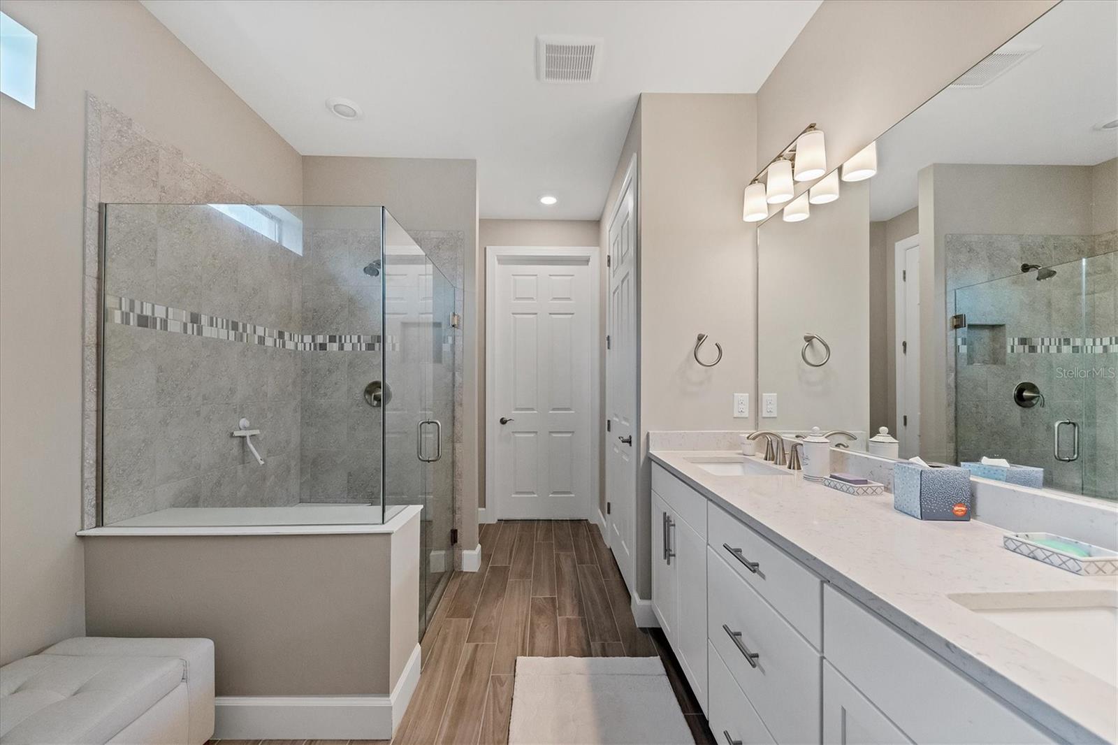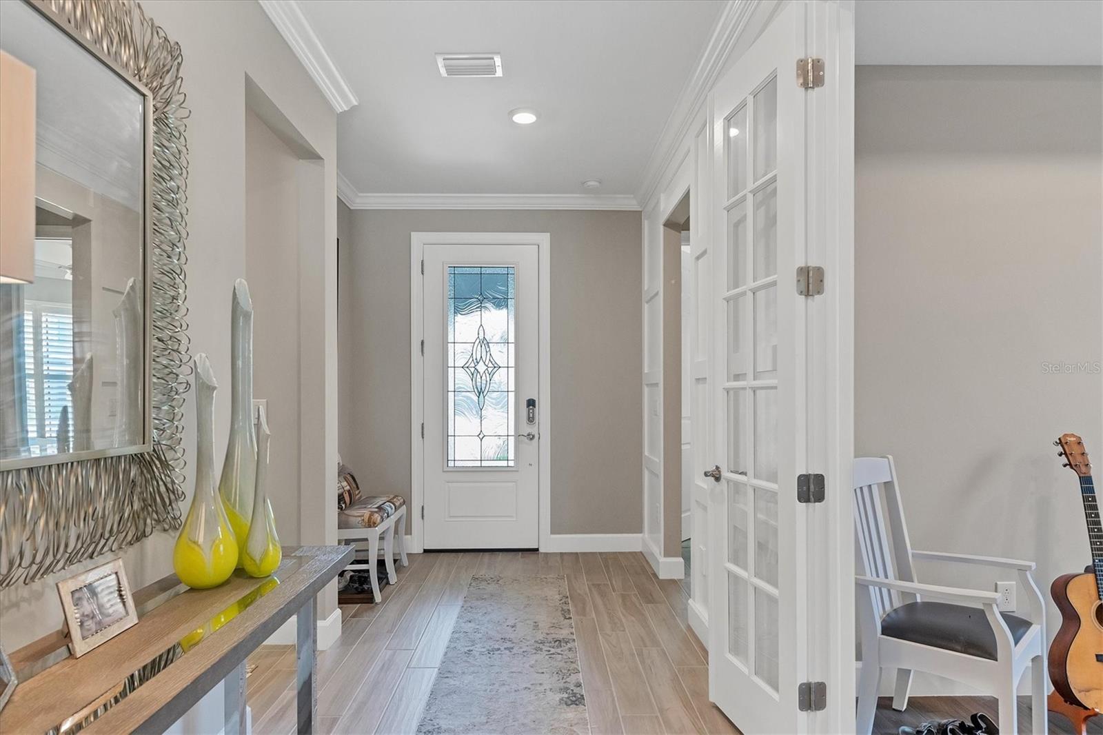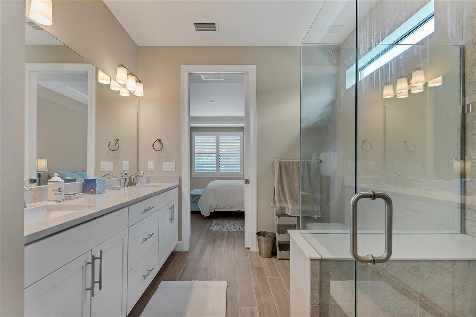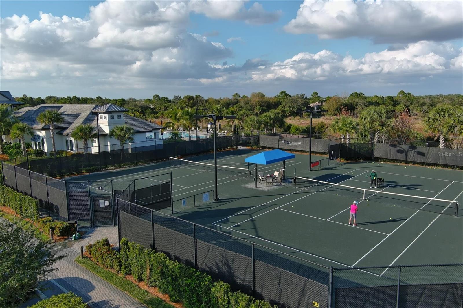 This stunning 4-bedroom 3-bath plus den Summerwood model has over 2943 square feet of spacious open living. Foyer entry leading to great room with elevated ceilings, crown moldings, custom wall finishes including a dramatic tiled accent wall. Chefs' kitchen with white cabinets, tiled backsplash and quartz counters, large island with decorative pendant lighting. Stainless appliances, 5 burner gas stove top, and large pantry. Separate dining with great space for memorable occasions. Elegant primary suite with white cabinets, quartz counters and double sinks, large walk-in shower, walk in closet w custom built ins. Two additional bedrooms ensuite. The large second-story loft is perfect for a home theater and game room including the 4th bedroom with a full bath. Zero corner sliders lead you to the paved extended covered lanai overlooking the amazing, heated saltwater pool and spa. A wonderful place to gather with friends and family. Home has been professionally furnished and decorated. Furniture is available for purchase separately. Hammock Preserve is a gated community offering full amenities including, grand clubhouse w community room, Resort style pool & spa, 2 bocce courts, 2 pickleball courts, 2 tennis courts, fitness center, catering kitchen & dog park. This is an ideal location in Palmer Ranch, minutes to the beaches, shopping, dining.