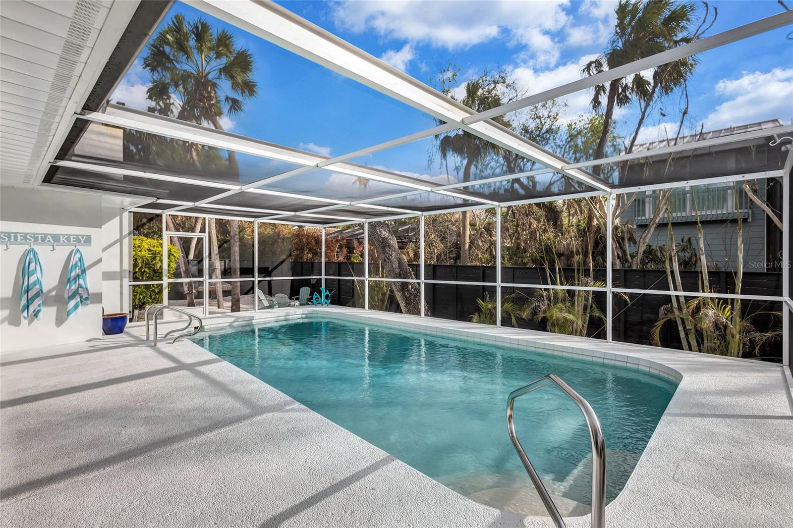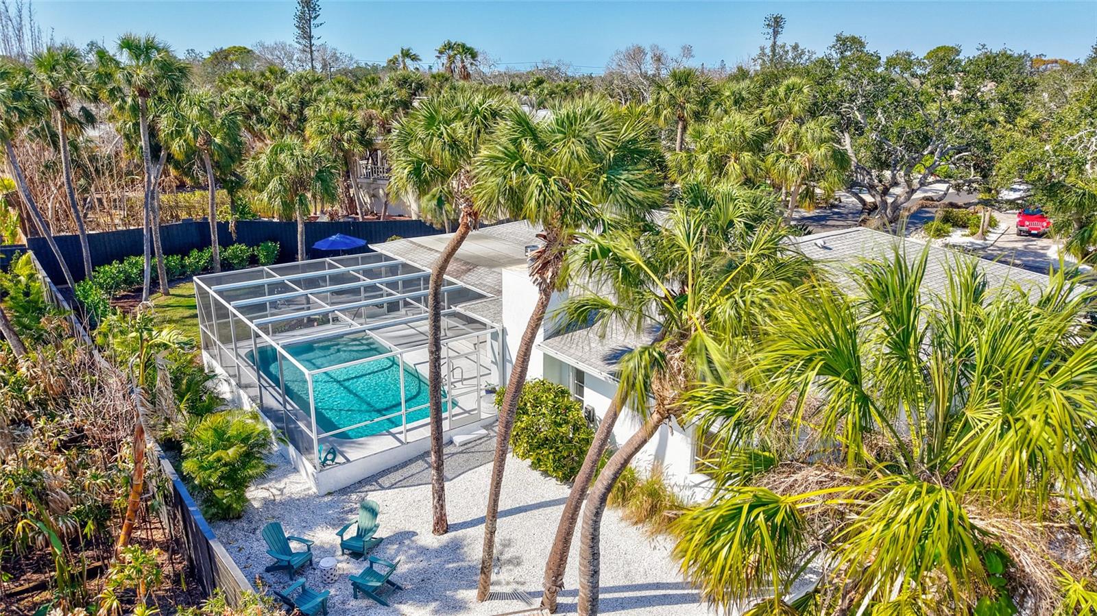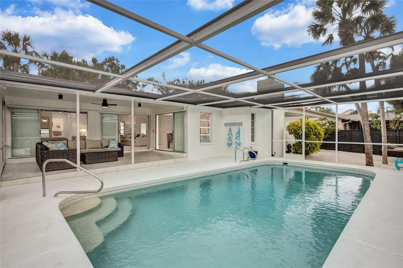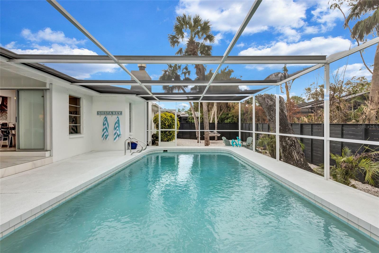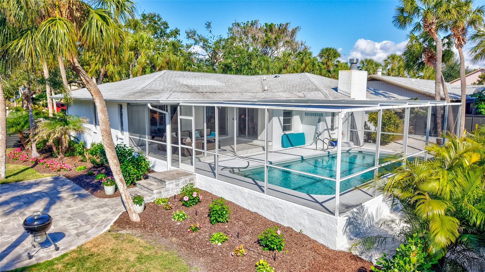 ***ALL NEW IMPACT WINDOWS and DOORS ordered and scheduled for installation*** Step into effortless island elegance at 5341 Siesta Cove—a rare blend of coastal modern design and timeless mid-century flair in one of Siesta Key’s most desirable neighborhoods. Pet friendly, golf cart friendly…just plain friendly! AND, no water or wind damage. This move-in-ready home is storm-tested, sun-kissed, and ready to welcome you home. From the moment you enter, you’ll feel the serenity of this light-filled retreat. A seamless open layout invites you in with stunning 24” ceramic tile floors, a striking decorative fireplace visible from nearly every main room, and floor-to-ceiling sliders that combine indoor luxury with outdoor living. The heart of the home? A designer kitchen with waterfall quartz countertops, sleek high-gloss cabinetry, a Verona convection range, and premium Bosch appliances—perfect for intimate dinners or entertaining poolside. Privacy is the name of the game with the smart split-bedroom layout. The master suite is a personal oasis featuring a spa-style bath, double closets, and direct access to your screened-in saltwater pool and tropical lanai. On the opposite side of the home, two spacious guest rooms and a chic full bath will ensure comfort and privacy for family and friends. Even the laundry room impresses with built-in storage and a pristine two-car garage which has even more storage with easy access to the attic. Outside, lush tropical landscaping wraps around every corner of this meticulously maintained property, offering ultimate seclusion. Sip a cocktail in the paver patio lounge, unwind by the firepit, or sway the day away in your hammock. With whole-house re-piping (2021), new sewer lines (2021), new pool pump (2022), irrigation system for easy landscaping maintenance, and ALL NEW impact windows and doors scheduled for installation (2025)—peace of mind is built in. Location? You’re just a half-mile from the world-renowned Siesta Key Beach with its powder-white sand and dreamy turquoise water. Spend your days by the surf, then head just minutes into Siesta Village for dining, drinks, and live music—or explore the arts and energy of downtown Sarasota, just 15 minutes away. Homes like this don’t come around often—especially not ones this ready, this refined, and this close to everything. Don’t just dream it—live it! Call now to schedule your private showing.