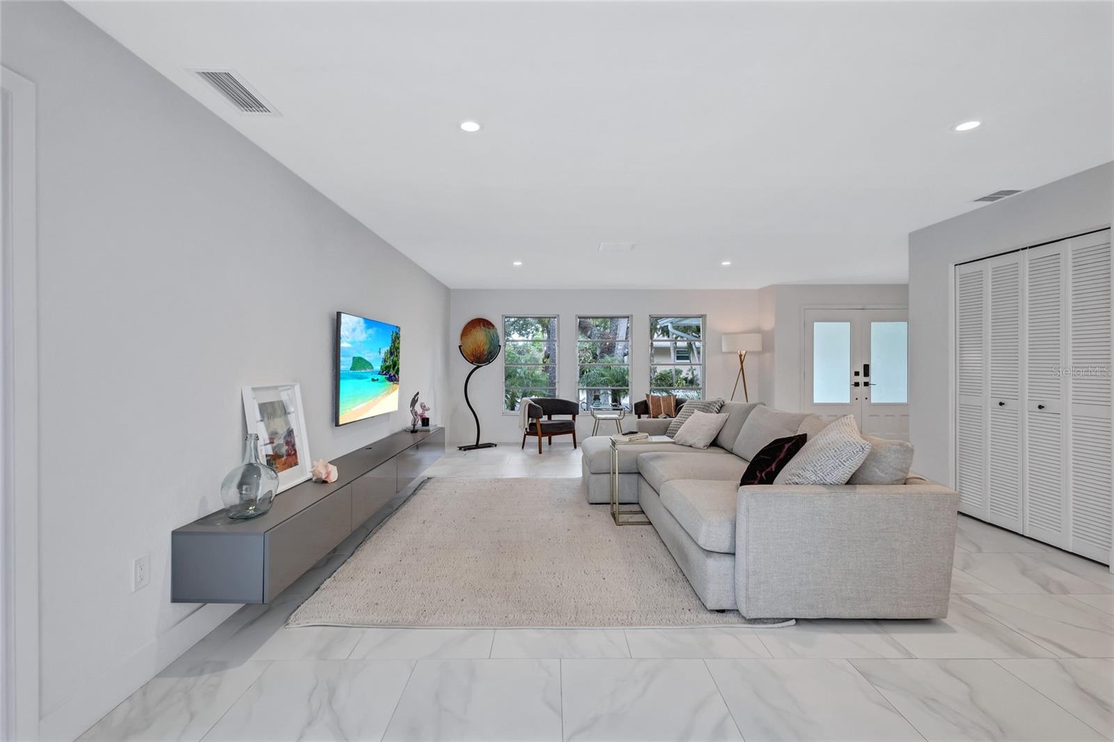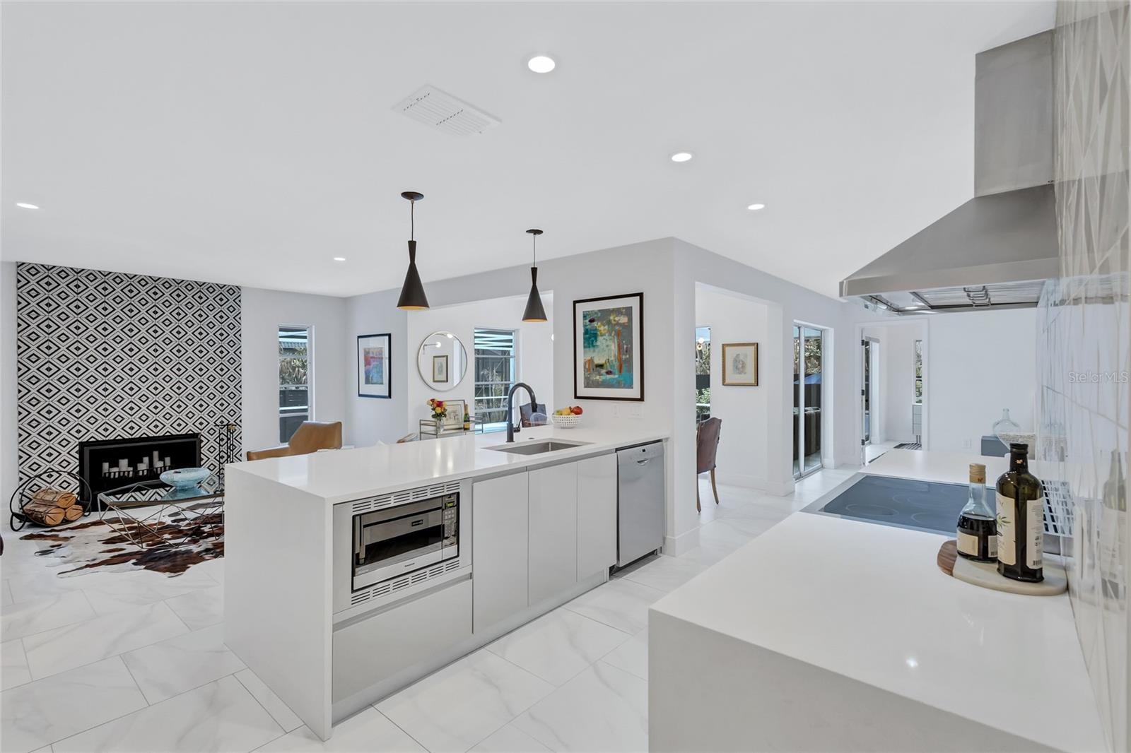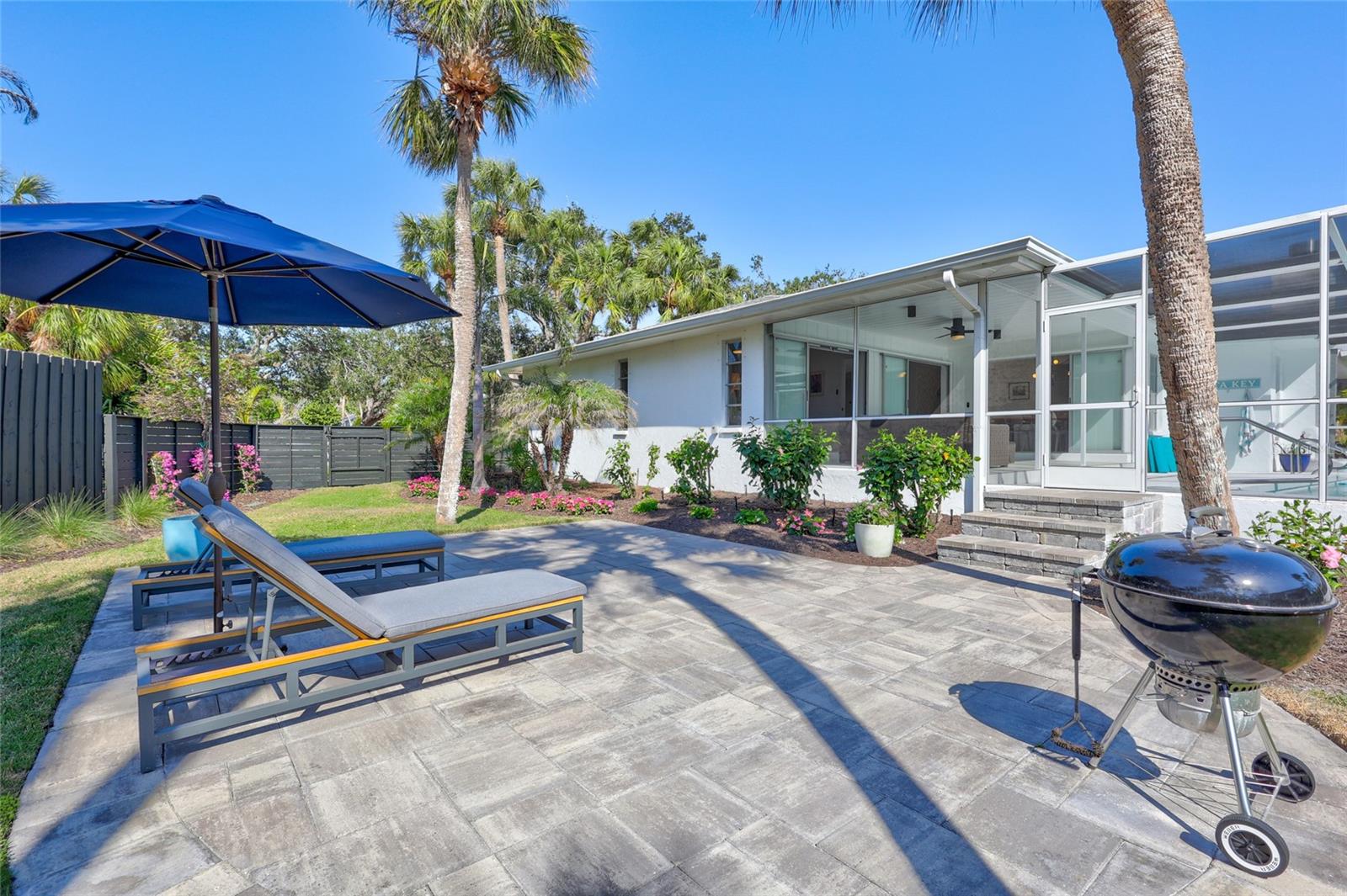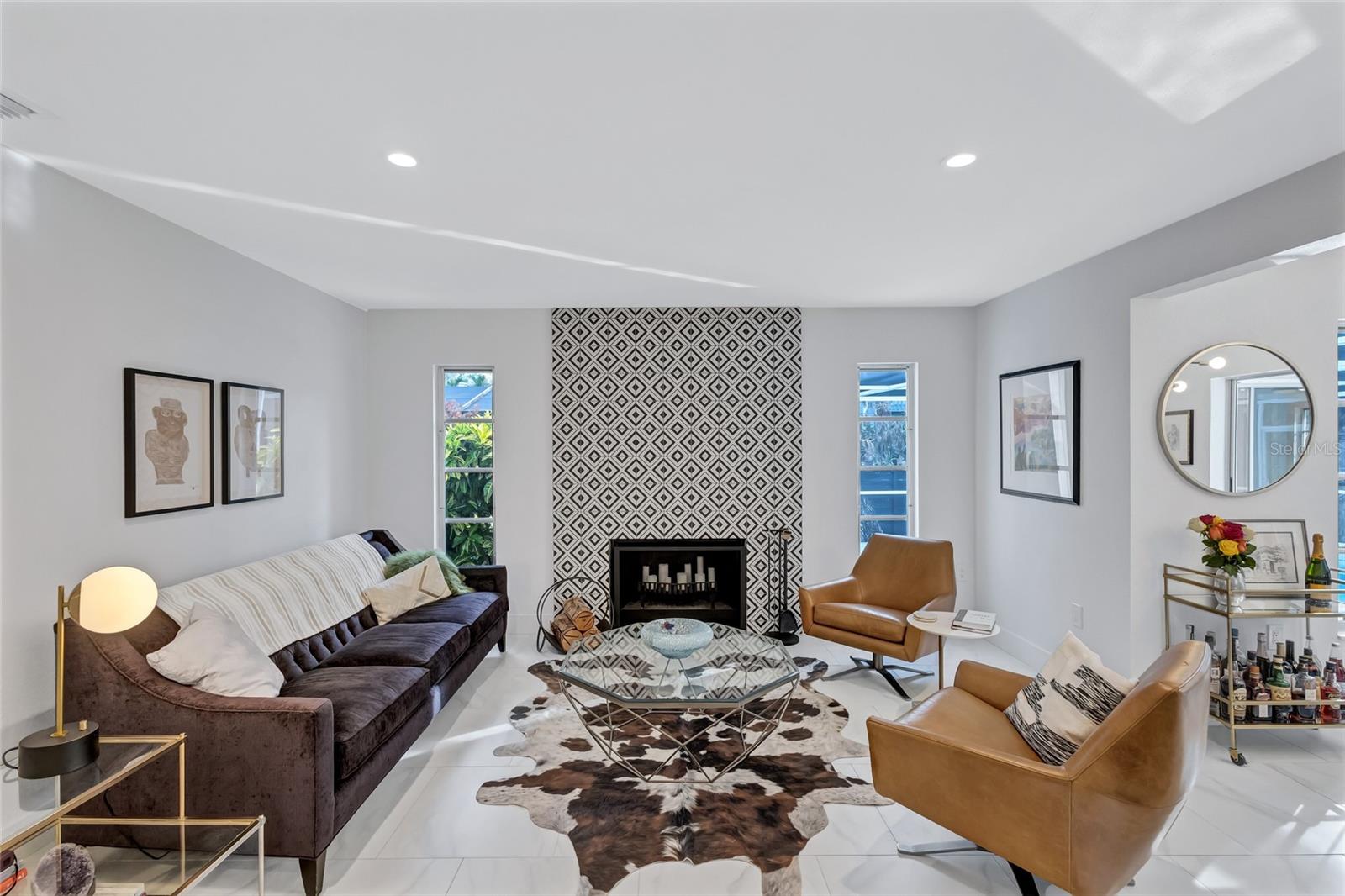***ALL NEW IMPACT WINDOWS and DOORS ordered and scheduled for installation*** Step into effortless island elegance at 5341 Siesta Cove—a rare blend of coastal modern design and timeless mid-century flair in one of Siesta Key’s most desirable neighborhoods. Pet friendly, golf cart friendly…just plain friendly! AND, no water or wind damage. This move-in-ready home is storm-tested, sun-kissed, and ready to welcome you home. From the moment you enter, you’ll feel the serenity of this light-filled retreat. A seamless open layout invites you in with stunning 24” ceramic tile floors, a striking decorative fireplace visible from nearly every main room, and floor-to-ceiling sliders that combine indoor luxury with outdoor living. The heart of the home? A designer kitchen with waterfall quartz countertops, sleek high-gloss cabinetry, a Verona convection range, and premium Bosch appliances—perfect for intimate dinners or entertaining poolside. Privacy is the name of the game with the smart split-bedroom layout. The master suite is a personal oasis featuring a spa-style bath, double closets, and direct access to your screened-in saltwater pool and tropical lanai. On the opposite side of the home, two spacious guest rooms and a chic full bath will ensure comfort and privacy for family and friends. Even the laundry room impresses with built-in storage and a pristine two-car garage which has even more storage with easy access to the attic. Outside, lush tropical landscaping wraps around every corner of this meticulously maintained property, offering ultimate seclusion. Sip a cocktail in the paver patio lounge, unwind by the firepit, or sway the day away in your hammock. With whole-house re-piping (2021), new sewer lines (2021), new pool pump (2022), irrigation system for easy landscaping maintenance, and ALL NEW impact windows and doors scheduled for installation (2025)—peace of mind is built in. Location? You’re just a half-mile from the world-renowned Siesta Key Beach with its powder-white sand and dreamy turquoise water. Spend your days by the surf, then head just minutes into Siesta Village for dining, drinks, and live music—or explore the arts and energy of downtown Sarasota, just 15 minutes away. Homes like this don’t come around often—especially not ones this ready, this refined, and this close to everything. Don’t just dream it—live it! Call now to schedule your private showing.