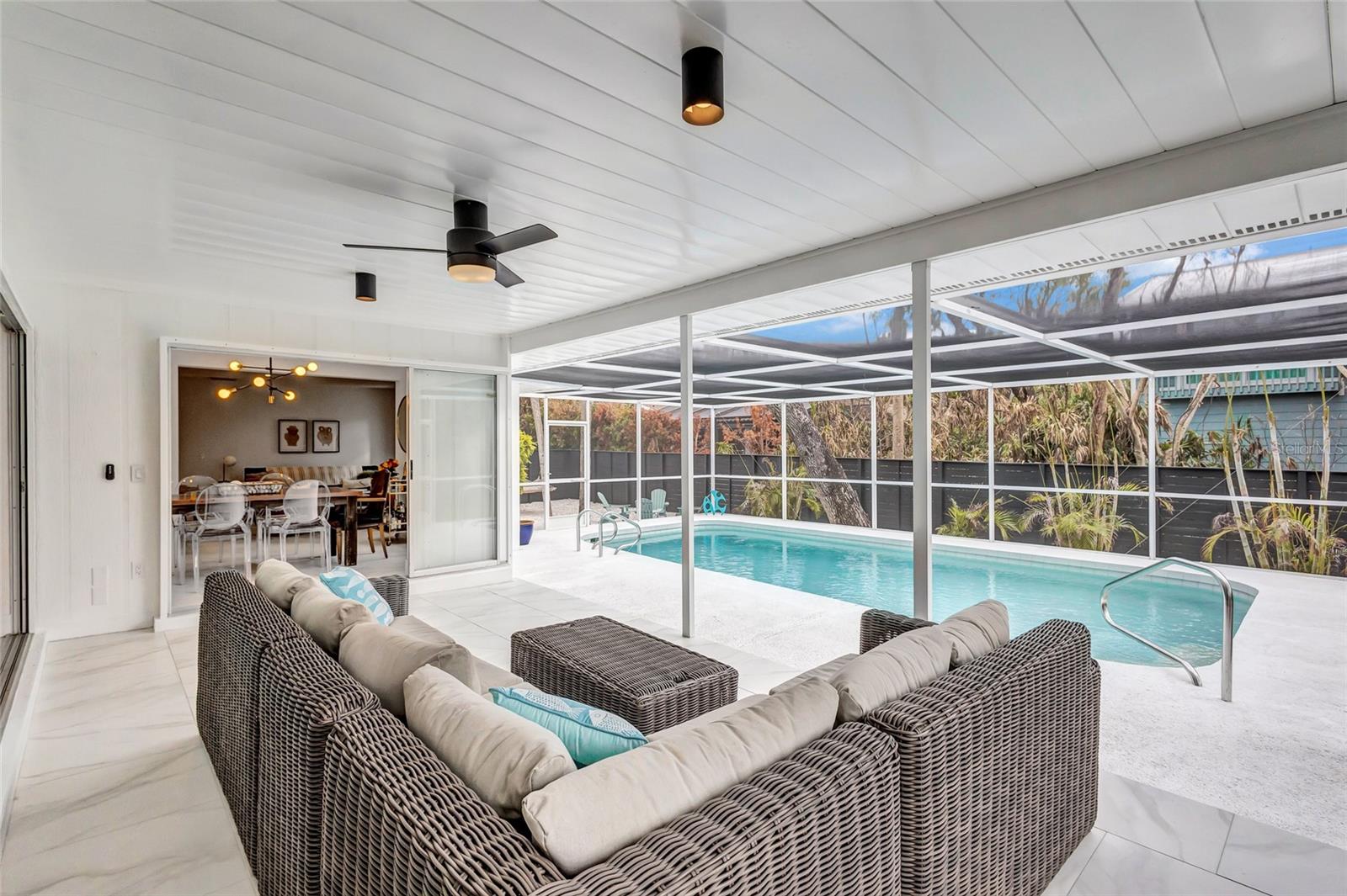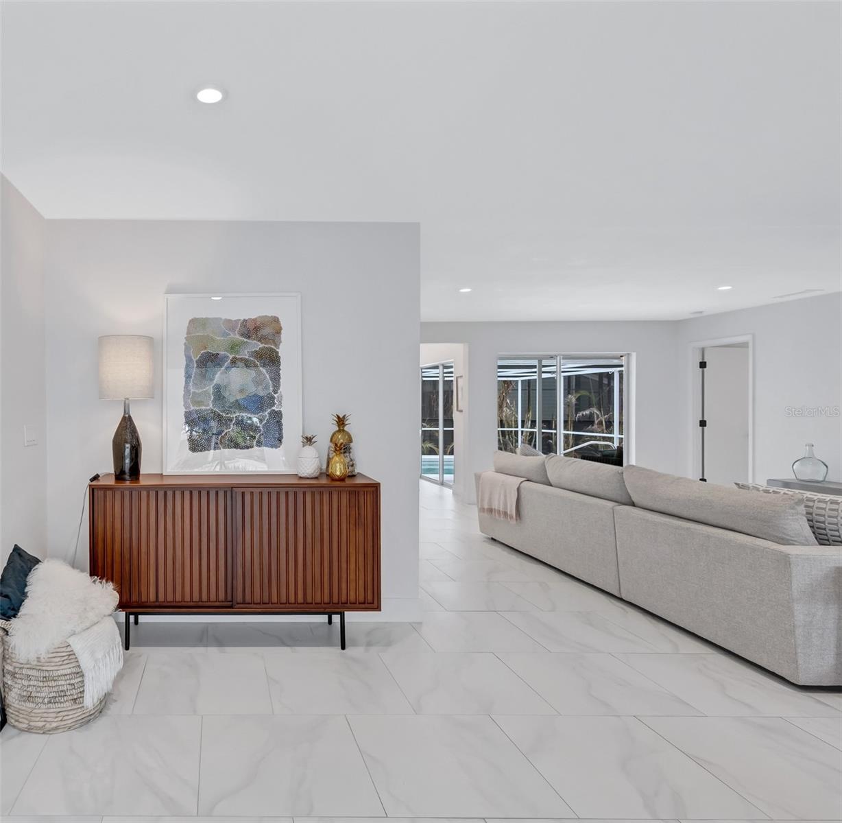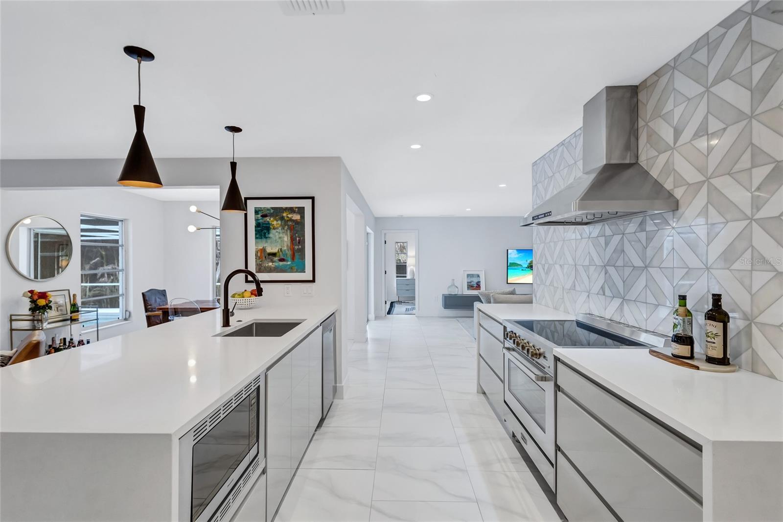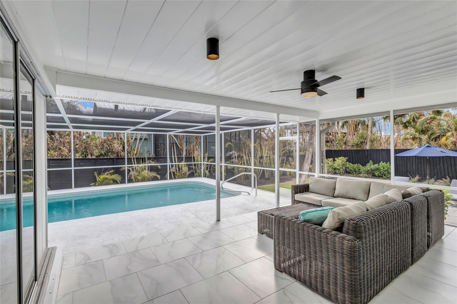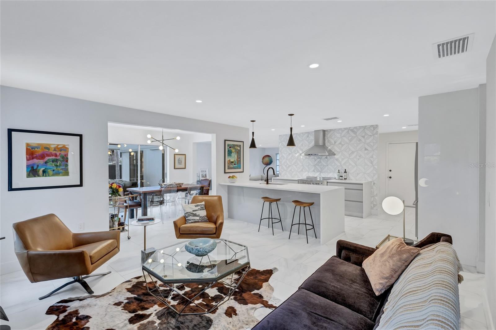 ***ALL NEW IMPACT WINDOWS and DOORS ordered and scheduled for installation*** Step into effortless island elegance at 5341 Siesta Cove—a rare blend of coastal modern design and timeless mid-century flair in one of Siesta Key’s most desirable neighborhoods. Pet friendly, golf cart friendly…just plain friendly! AND, no water or wind damage. This move-in-ready home is storm-tested, sun-kissed, and ready to welcome you home. From the moment you enter, you’ll feel the serenity of this light-filled retreat. A seamless open layout invites you in with stunning 24” ceramic tile floors, a striking decorative fireplace visible from nearly every main room, and floor-to-ceiling sliders that combine indoor luxury with outdoor living. The heart of the home? A designer kitchen with waterfall quartz countertops, sleek high-gloss cabinetry, a Verona convection range, and premium Bosch appliances—perfect for intimate dinners or entertaining poolside. Privacy is the name of the game with the smart split-bedroom layout. The master suite is a personal oasis featuring a spa-style bath, double closets, and direct access to your screened-in saltwater pool and tropical lanai. On the opposite side of the home, two spacious guest rooms and a chic full bath will ensure comfort and privacy for family and friends. Even the laundry room impresses with built-in storage and a pristine two-car garage which has even more storage with easy access to the attic. Outside, lush tropical landscaping wraps around every corner of this meticulously maintained property, offering ultimate seclusion. Sip a cocktail in the paver patio lounge, unwind by the firepit, or sway the day away in your hammock. With whole-house re-piping (2021), new sewer lines (2021), new pool pump (2022), irrigation system for easy landscaping maintenance, and ALL NEW impact windows and doors scheduled for installation (2025)—peace of mind is built in. Location? You’re just a half-mile from the world-renowned Siesta Key Beach with its powder-white sand and dreamy turquoise water. Spend your days by the surf, then head just minutes into Siesta Village for dining, drinks, and live music—or explore the arts and energy of downtown Sarasota, just 15 minutes away. Homes like this don’t come around often—especially not ones this ready, this refined, and this close to everything. Don’t just dream it—live it! Call now to schedule your private showing.