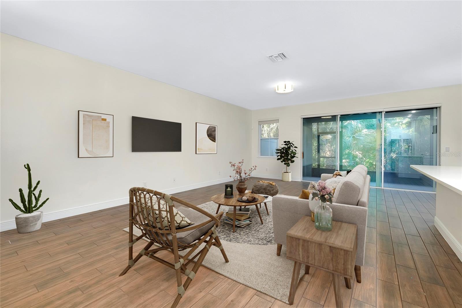 One or more photo(s) has been virtually staged. Rarely Available!! This maintenance free cozy community of only 35 Townhomes is nestled away in a private gated community and surrounded by nature. This two-story home features an open concept living area with rear screened porch overlooking the trees, 3BR, 2.5 bathrooms and 2 car garage. The master suite on the second floor offers a screened balcony overlooking the beautiful nature and trees, the 2 guest bedrooms and loft area are also located upstairs. Interior finishes include tile flooring, quartz countertops in the kitchen with glass tile backsplash, tons of cabinets, pantry, Eat-in kitchen, stainless-steel appliances, minimum water use plumbing fixtures in the bathrooms, recently updated master bathroom, whole house water softener as well as an individual sink upgraded water softener offering double the filtering!! Minutes to shopping, dining, UTC Mall, Nathan Benderson Park and easy access to downtown Sarasota, Beaches and I-75. Opportunity for a VA Assumable Loan. Owner is NOT required to pay flood insurance. No damage was incurred by any of the hurricanes or storms. FOR LEASE IN A SEPARATE LISTING.