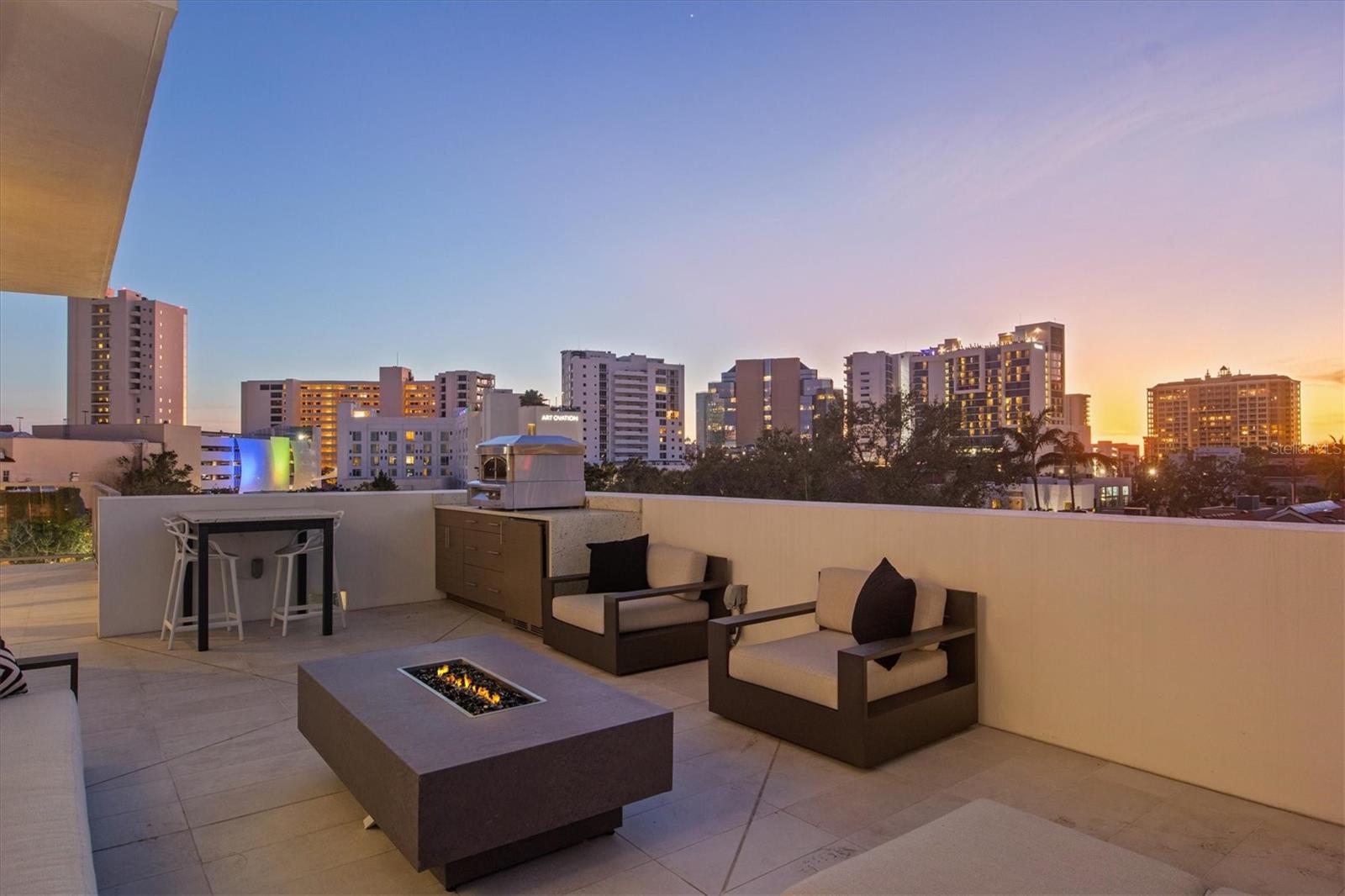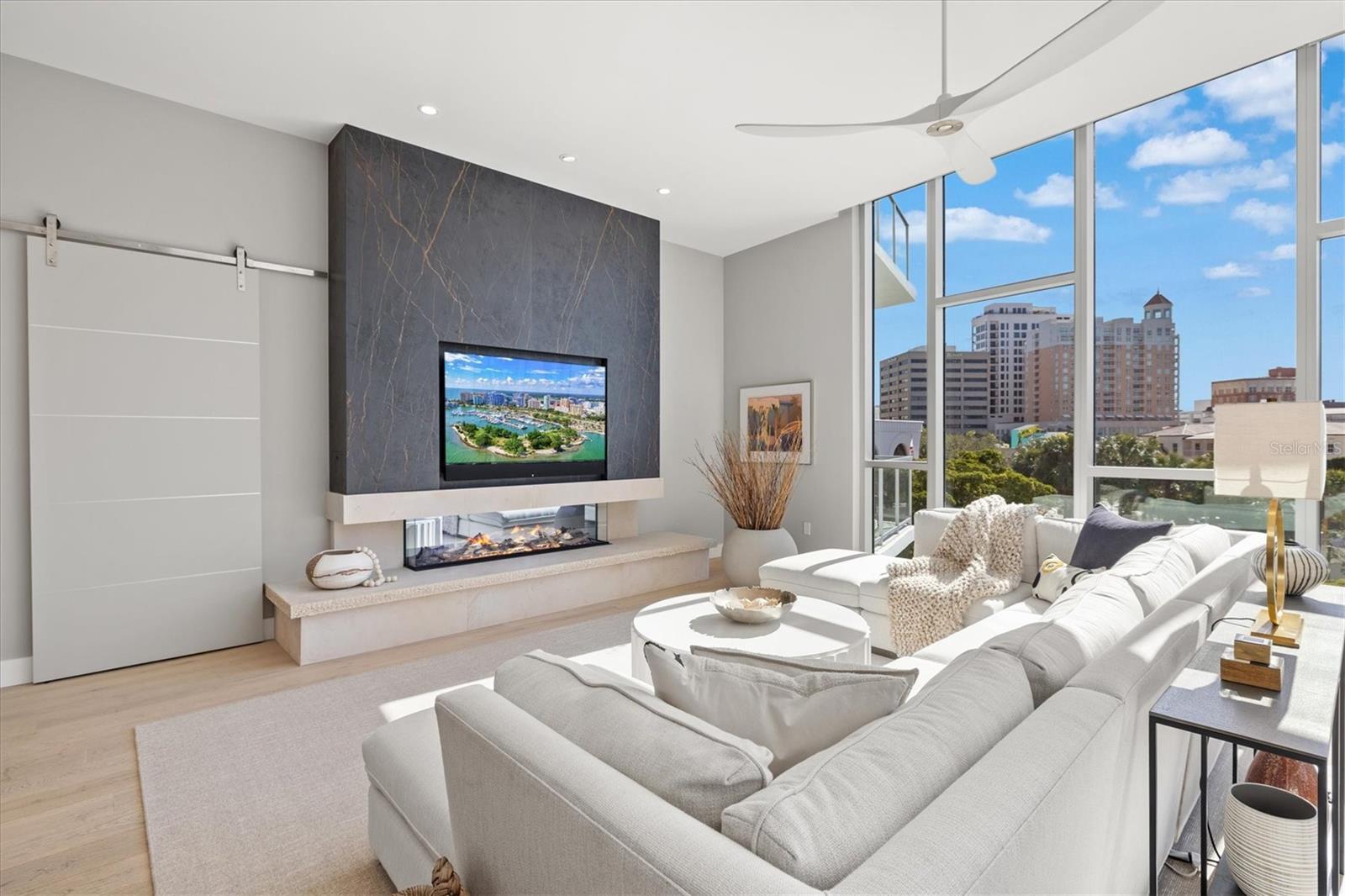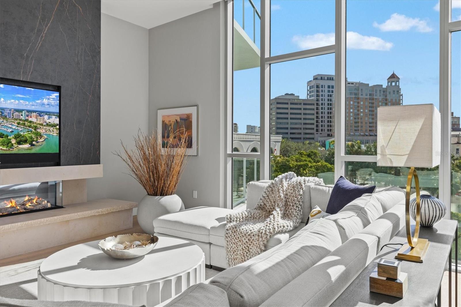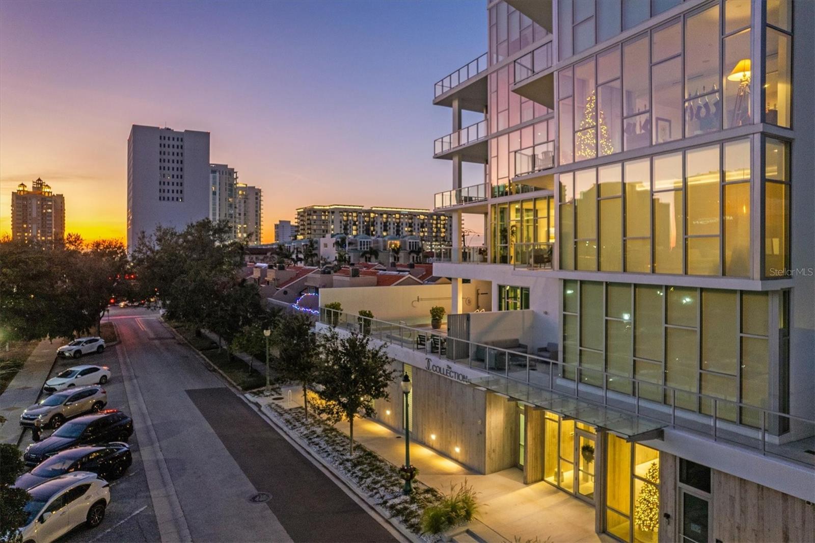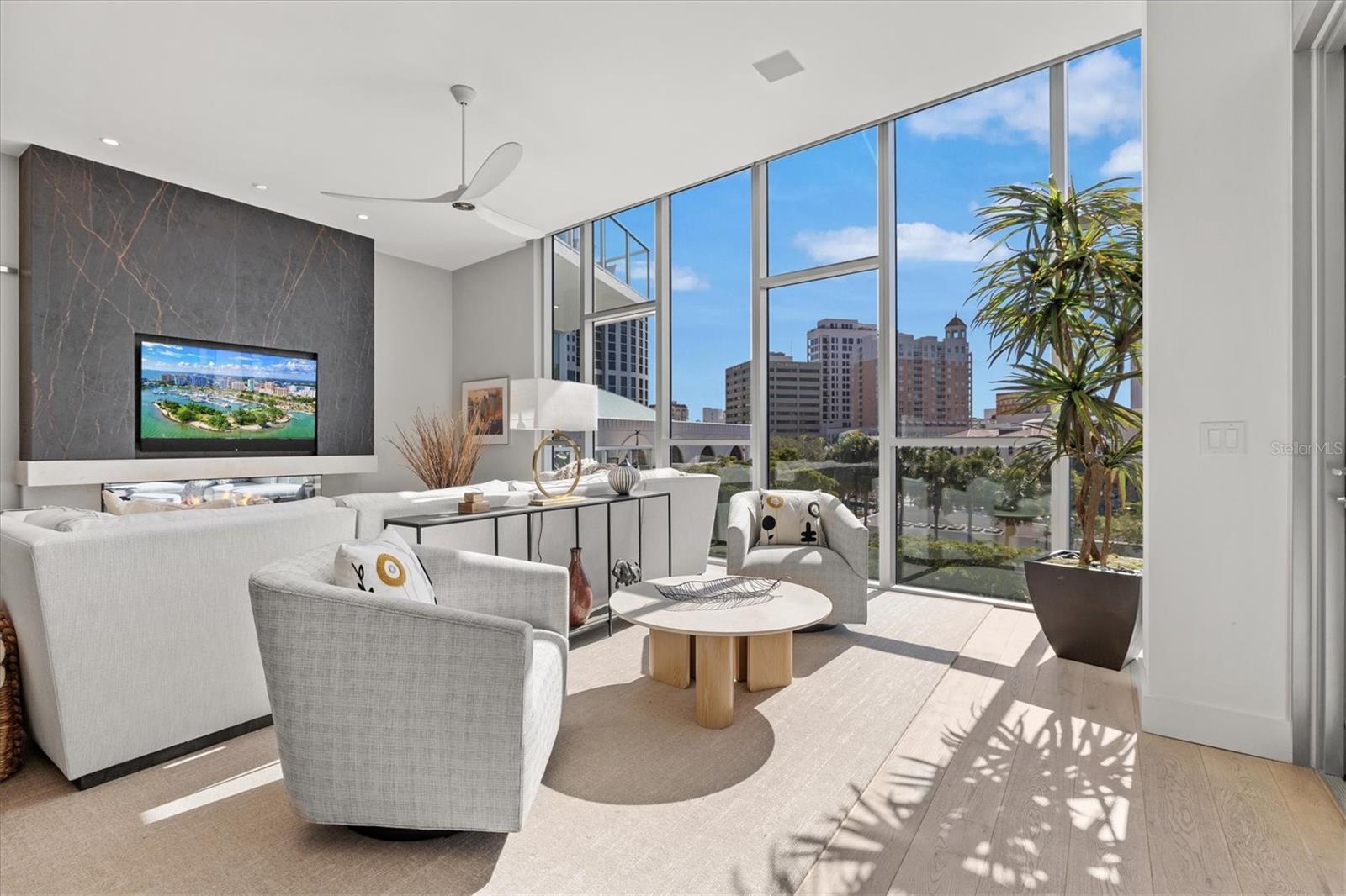 Welcome to 3W at The Collection, where you will experience the epitome of modern luxury in this one-of-a-kind, boutique condo located in the heart of downtown Sarasota just steps away from world-class dining, shopping, and cultural attractions. Every detail of this custom residence has been meticulously curated with high-end designer selections and finishes, offering an unparalleled living experience. As you enter the unit by way of private elevator access, you’ll be delighted by the beautifully styled entrance leading into the home. Immediately you will notice an abundance of natural light shining through the 12-ft-floor-to-ceiling windows and doors. The sleek, open-concept floor plan showcases premium finishes throughout the units 3,300+ sq ft of interior living space and 1,000 sq ft of private patio space. No expense was spared for upgrades. The kitchen is a true masterpiece with custom soft-close wood cabinetry, quartz countertops with a waterfall edge island and stone backsplash, top-of-the-line Miele appliances including a built-in smart coffee system and ice maker, under and over cabinet lighting, and additional storage. Each bedroom is equipped with a custom closet system, a luxurious en-suite bath with marble flooring, flash tile and custom vanities and LED illuminated mirrors, and private balcony access. The office features built-in storage with stone countertops and a beautiful glass door. Stunning stone accents, vibrant wallpaper, European White Oak flooring and exquisite light fixtures throughout the residence perfectly blend sophistication and comfort, creating a masterpiece of contemporary design. Home automation, including interior automated shades by Wicked Smart Homes, allows for an easy lock and leave process. The exterior living space is just as remarkable and perfect for entertaining with a pizza oven, refrigerator, sink, a firepit and multiple seating areas. Situated in the heart of The Art District in downtown Sarasota with only 12 units in the building, residents of The Collection enjoy a very private and exclusive living experience. The state-of-the-art building has a 24-hour camera and building access system in place with key fob, entry code, remote, card, and phone entry. The ground floor ensures residents have everything they need right at their fingertips with a concierge, mail room, covered private parking, and a temperature-controlled storage area. 3W comes with two parking spaces. The second floor is where residents will enjoy the impressive onsite amenities which include a pool and spa, daybeds, a yoga and fitness center, sauna, entertainment center with a fireplace, tv, and wet bar, and conference style meeting room. This rare gem is the ultimate expression of style and convenience, being sold furnished with some exclusions, and located within walking distance to Bayfront Park, Sarasota Main Street, Starbucks, Whole Foods, and more!