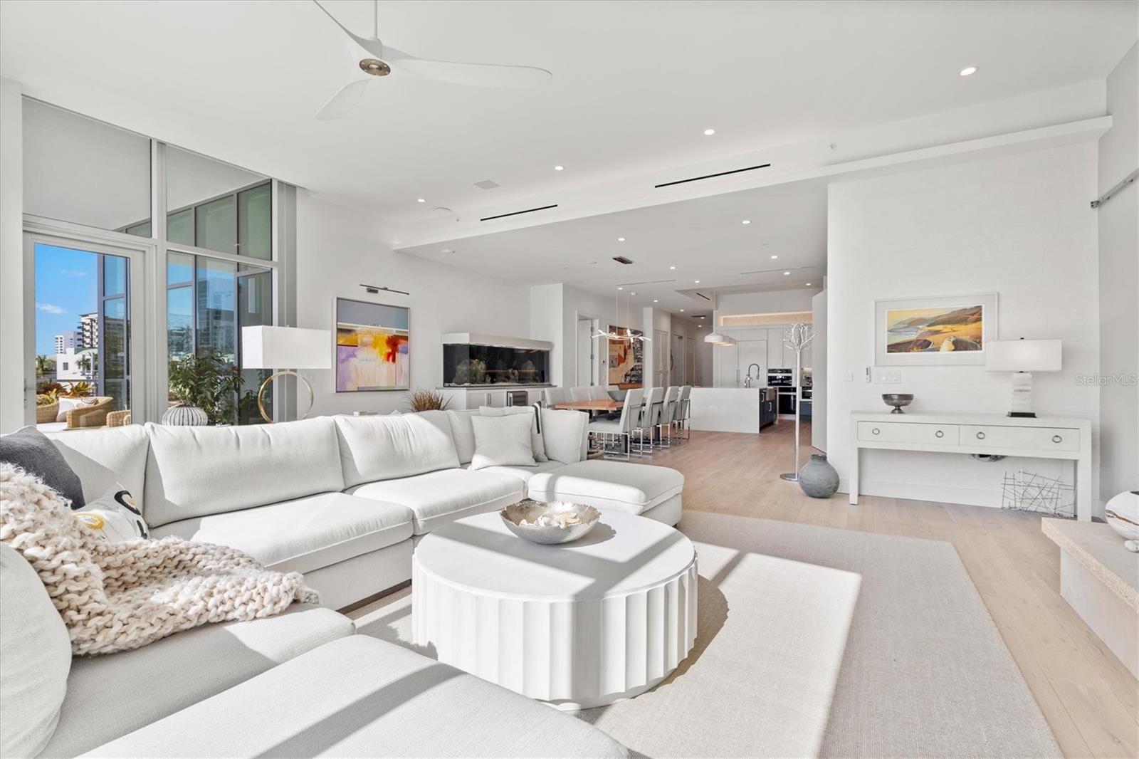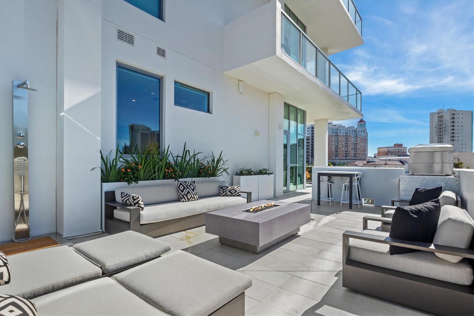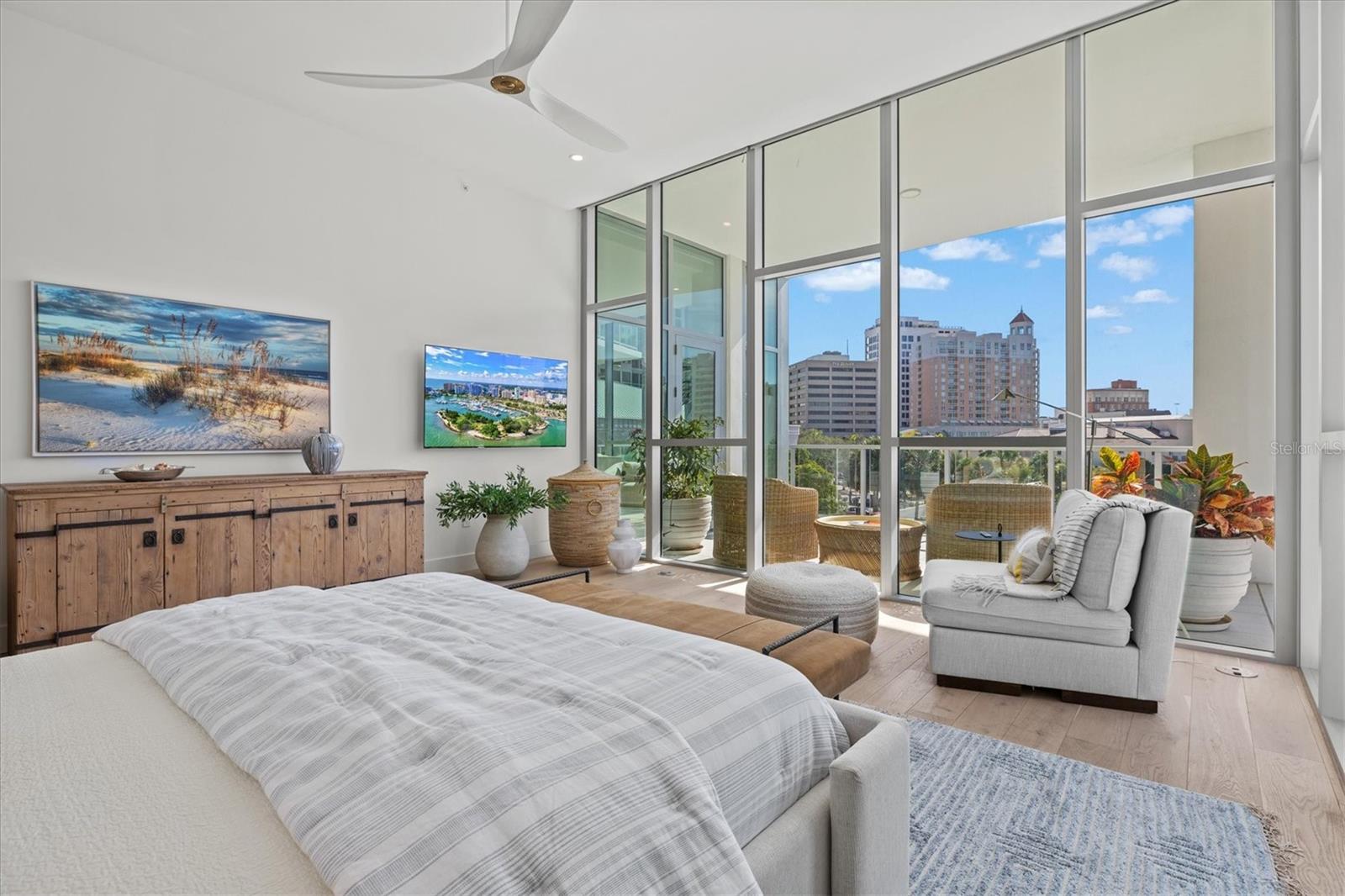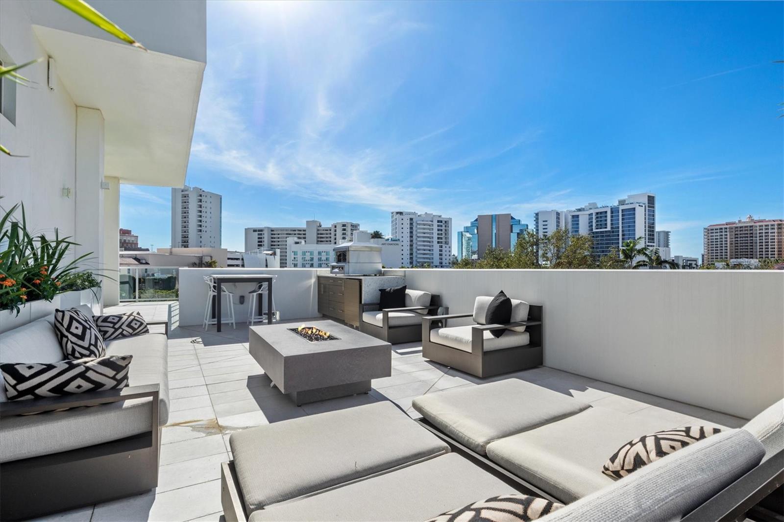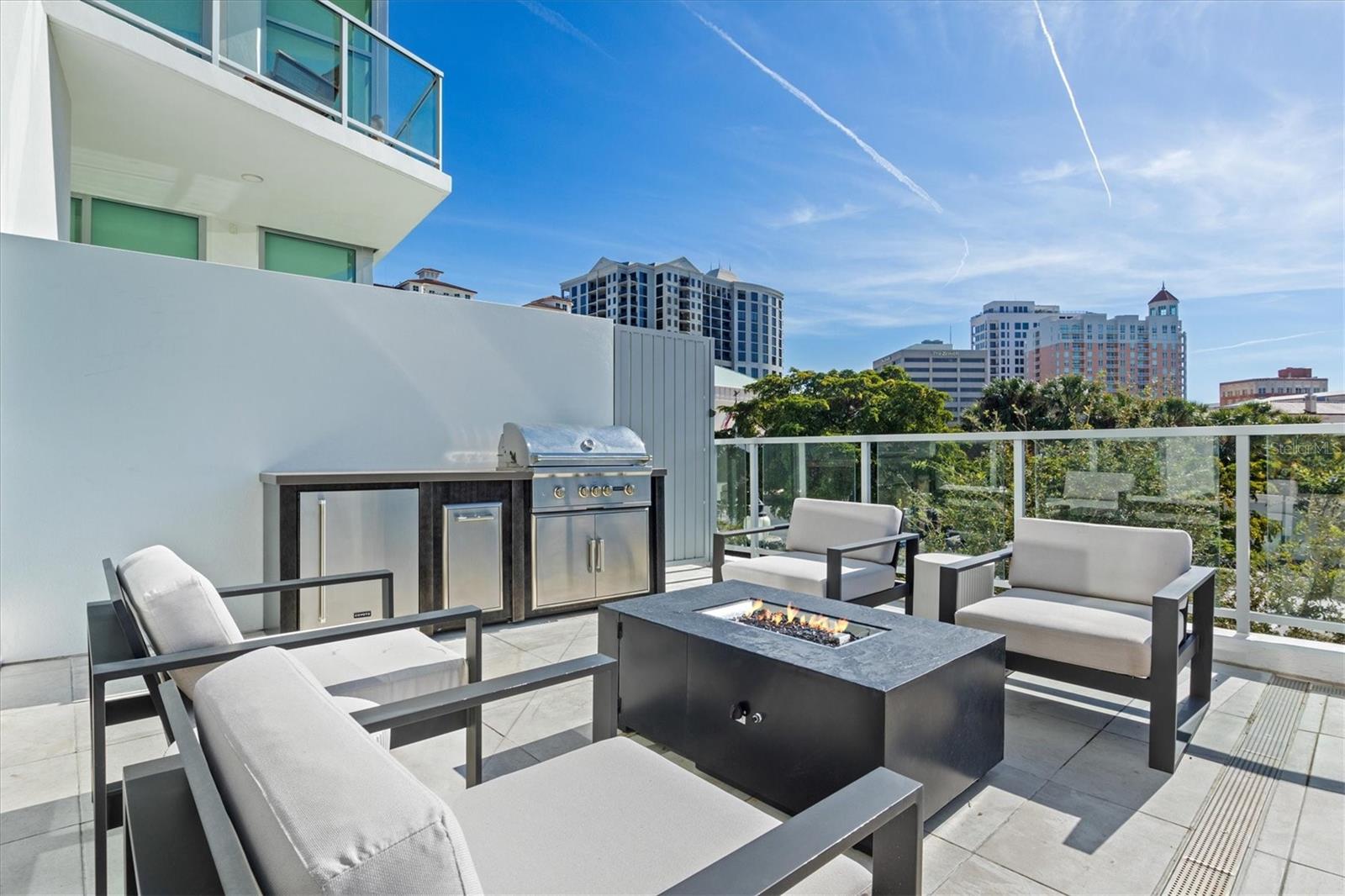 Welcome to 3W at The Collection, where you will experience the epitome of modern luxury in this one-of-a-kind, boutique condo located in the heart of downtown Sarasota just steps away from world-class dining, shopping, and cultural attractions. Every detail of this custom residence has been meticulously curated with high-end designer selections and finishes, offering an unparalleled living experience. As you enter the unit by way of private elevator access, you’ll be delighted by the beautifully styled entrance leading into the home. Immediately you will notice an abundance of natural light shining through the 12-ft-floor-to-ceiling windows and doors. The sleek, open-concept floor plan showcases premium finishes throughout the units 3,300+ sq ft of interior living space and 1,000 sq ft of private patio space. No expense was spared for upgrades. The kitchen is a true masterpiece with custom soft-close wood cabinetry, quartz countertops with a waterfall edge island and stone backsplash, top-of-the-line Miele appliances including a built-in smart coffee system and ice maker, under and over cabinet lighting, and additional storage. Each bedroom is equipped with a custom closet system, a luxurious en-suite bath with marble flooring, flash tile and custom vanities and LED illuminated mirrors, and private balcony access. The office features built-in storage with stone countertops and a beautiful glass door. Stunning stone accents, vibrant wallpaper, European White Oak flooring and exquisite light fixtures throughout the residence perfectly blend sophistication and comfort, creating a masterpiece of contemporary design. Home automation, including interior automated shades by Wicked Smart Homes, allows for an easy lock and leave process. The exterior living space is just as remarkable and perfect for entertaining with a pizza oven, refrigerator, sink, a firepit and multiple seating areas. Situated in the heart of The Art District in downtown Sarasota with only 12 units in the building, residents of The Collection enjoy a very private and exclusive living experience. The state-of-the-art building has a 24-hour camera and building access system in place with key fob, entry code, remote, card, and phone entry. The ground floor ensures residents have everything they need right at their fingertips with a concierge, mail room, covered private parking, and a temperature-controlled storage area. 3W comes with two parking spaces. The second floor is where residents will enjoy the impressive onsite amenities which include a pool and spa, daybeds, a yoga and fitness center, sauna, entertainment center with a fireplace, tv, and wet bar, and conference style meeting room. This rare gem is the ultimate expression of style and convenience, being sold furnished with some exclusions, and located within walking distance to Bayfront Park, Sarasota Main Street, Starbucks, Whole Foods, and more!