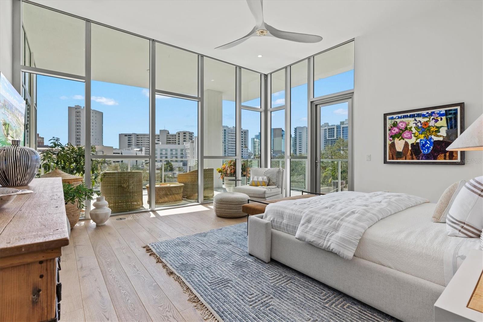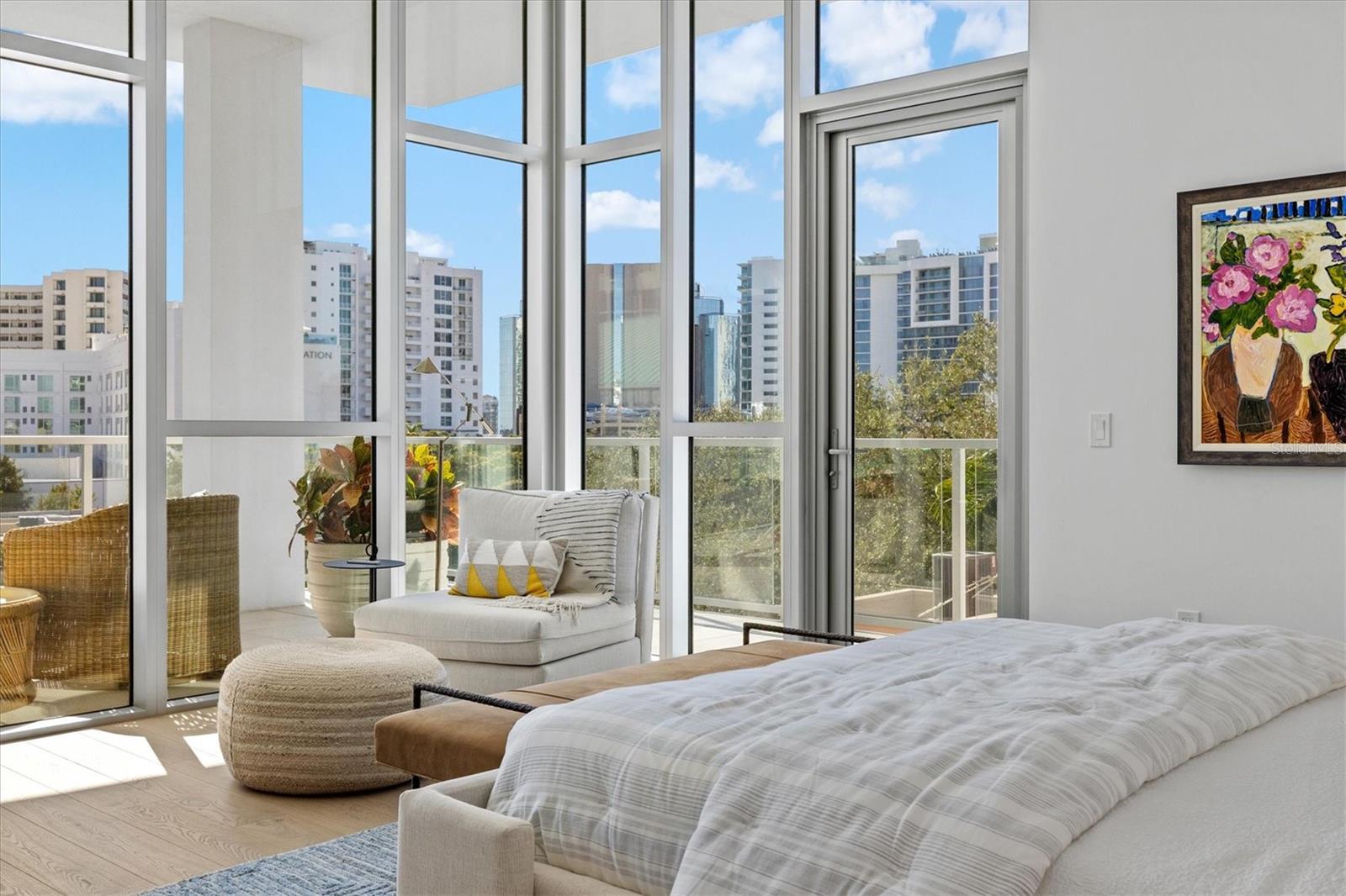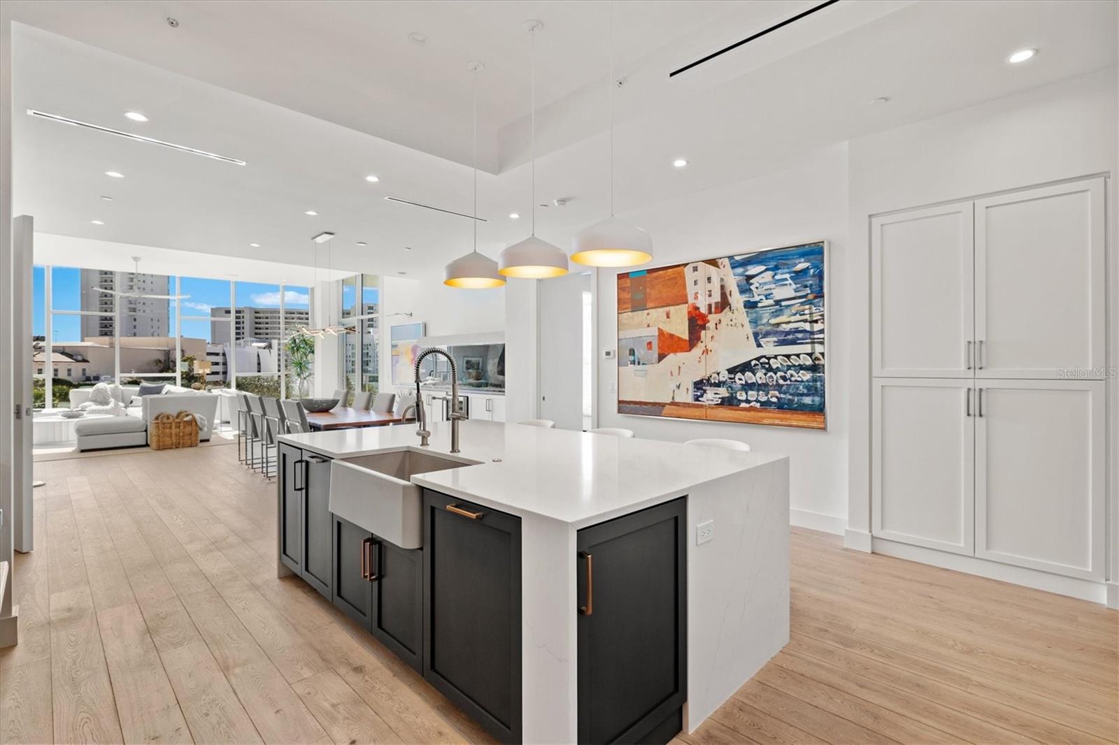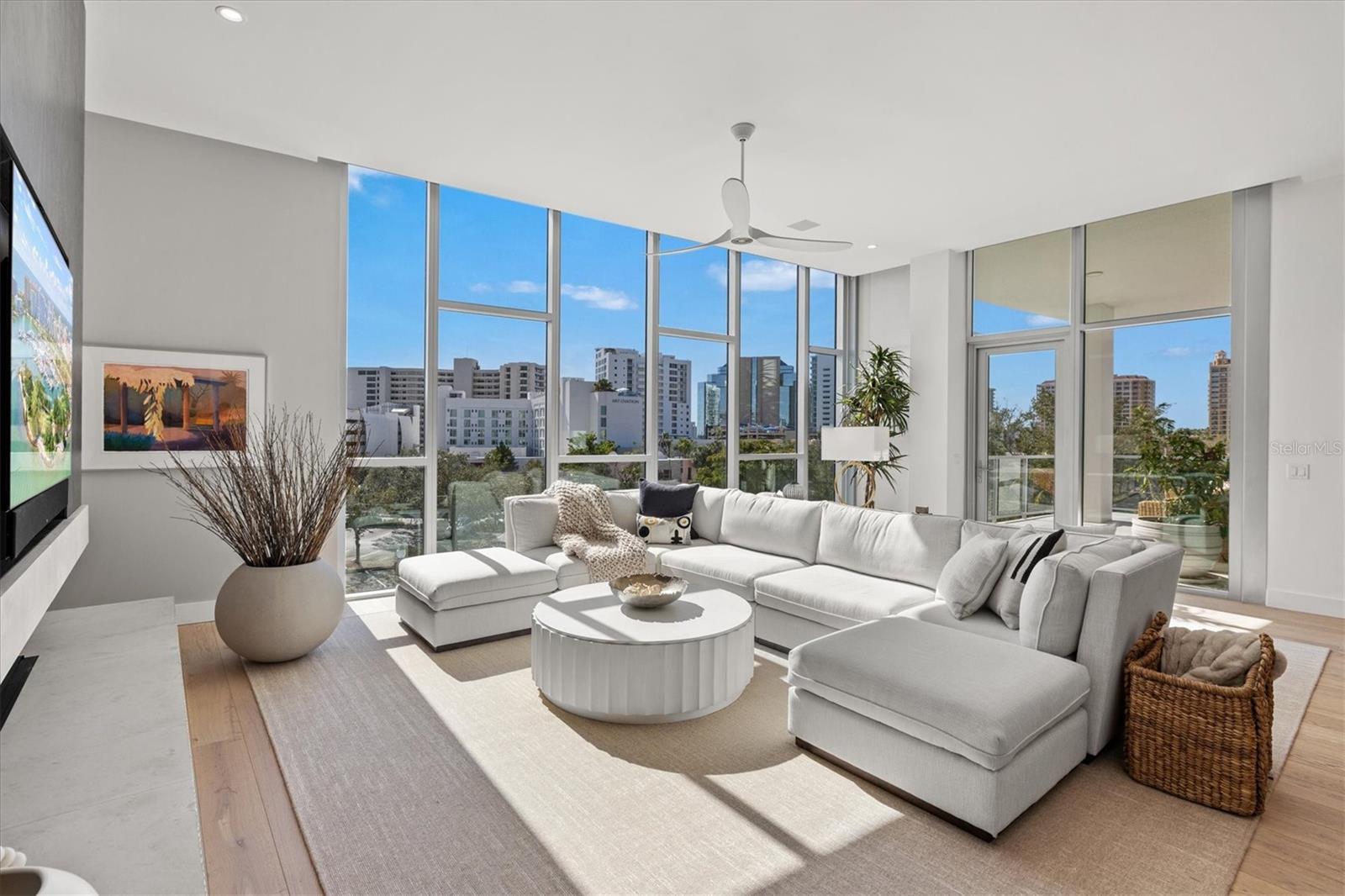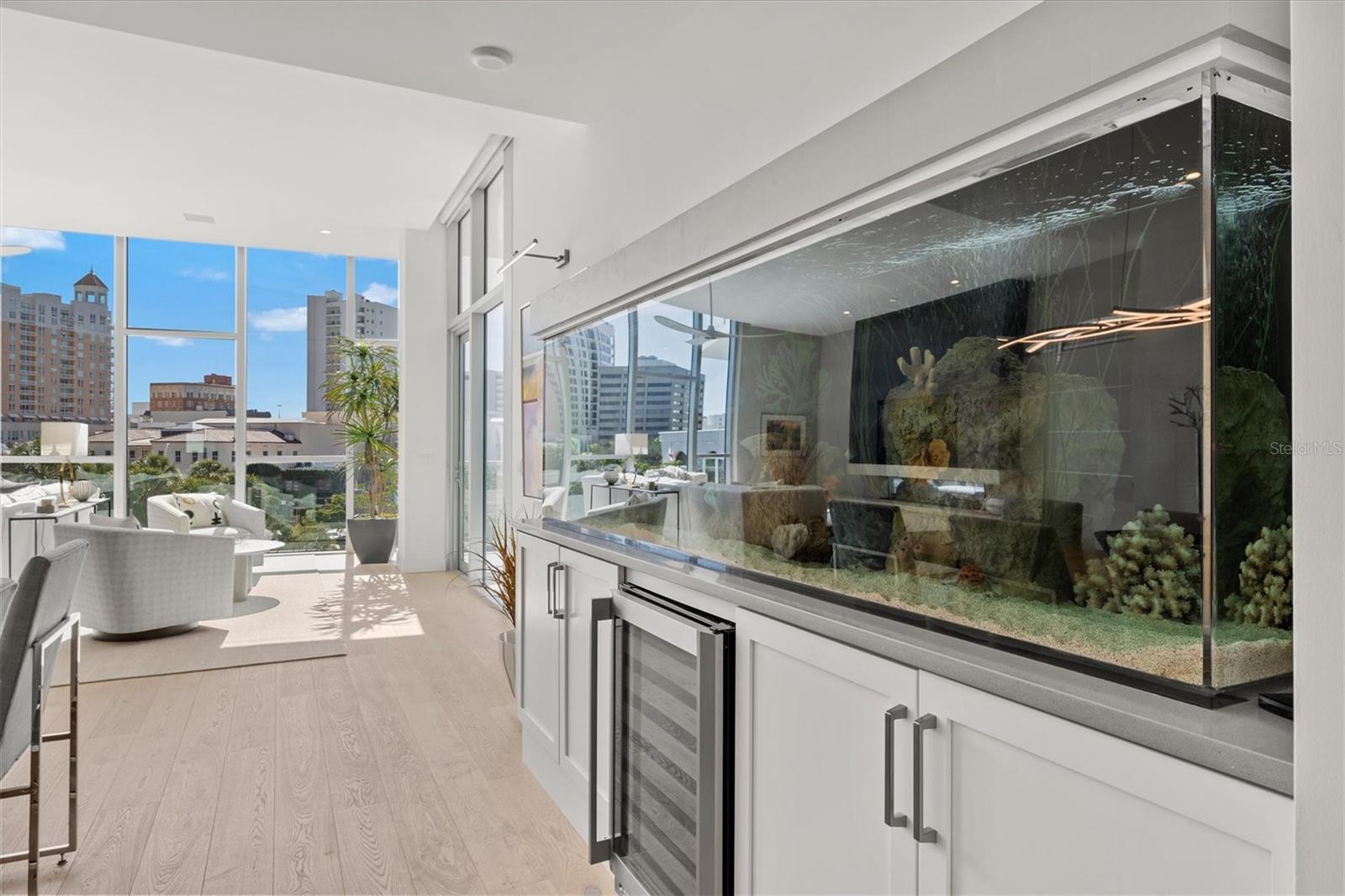 Welcome to 3W at The Collection, where you will experience the epitome of modern luxury in this one-of-a-kind, boutique condo located in the heart of downtown Sarasota just steps away from world-class dining, shopping, and cultural attractions. Every detail of this custom residence has been meticulously curated with high-end designer selections and finishes, offering an unparalleled living experience. As you enter the unit by way of private elevator access, you’ll be delighted by the beautifully styled entrance leading into the home. Immediately you will notice an abundance of natural light shining through the 12-ft-floor-to-ceiling windows and doors. The sleek, open-concept floor plan showcases premium finishes throughout the units 3,300+ sq ft of interior living space and 1,000 sq ft of private patio space. No expense was spared for upgrades. The kitchen is a true masterpiece with custom soft-close wood cabinetry, quartz countertops with a waterfall edge island and stone backsplash, top-of-the-line Miele appliances including a built-in smart coffee system and ice maker, under and over cabinet lighting, and additional storage. Each bedroom is equipped with a custom closet system, a luxurious en-suite bath with marble flooring, flash tile and custom vanities and LED illuminated mirrors, and private balcony access. The office features built-in storage with stone countertops and a beautiful glass door. Stunning stone accents, vibrant wallpaper, European White Oak flooring and exquisite light fixtures throughout the residence perfectly blend sophistication and comfort, creating a masterpiece of contemporary design. Home automation, including interior automated shades by Wicked Smart Homes, allows for an easy lock and leave process. The exterior living space is just as remarkable and perfect for entertaining with a pizza oven, refrigerator, sink, a firepit and multiple seating areas. Situated in the heart of The Art District in downtown Sarasota with only 12 units in the building, residents of The Collection enjoy a very private and exclusive living experience. The state-of-the-art building has a 24-hour camera and building access system in place with key fob, entry code, remote, card, and phone entry. The ground floor ensures residents have everything they need right at their fingertips with a concierge, mail room, covered private parking, and a temperature-controlled storage area. 3W comes with two parking spaces. The second floor is where residents will enjoy the impressive onsite amenities which include a pool and spa, daybeds, a yoga and fitness center, sauna, entertainment center with a fireplace, tv, and wet bar, and conference style meeting room. This rare gem is the ultimate expression of style and convenience, being sold furnished with some exclusions, and located within walking distance to Bayfront Park, Sarasota Main Street, Starbucks, Whole Foods, and more!