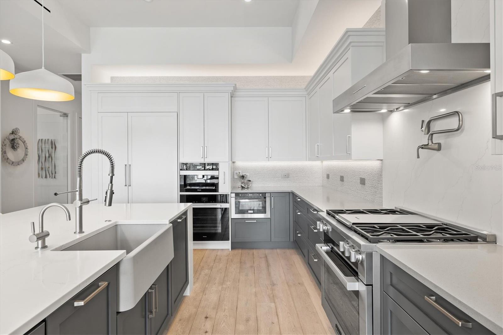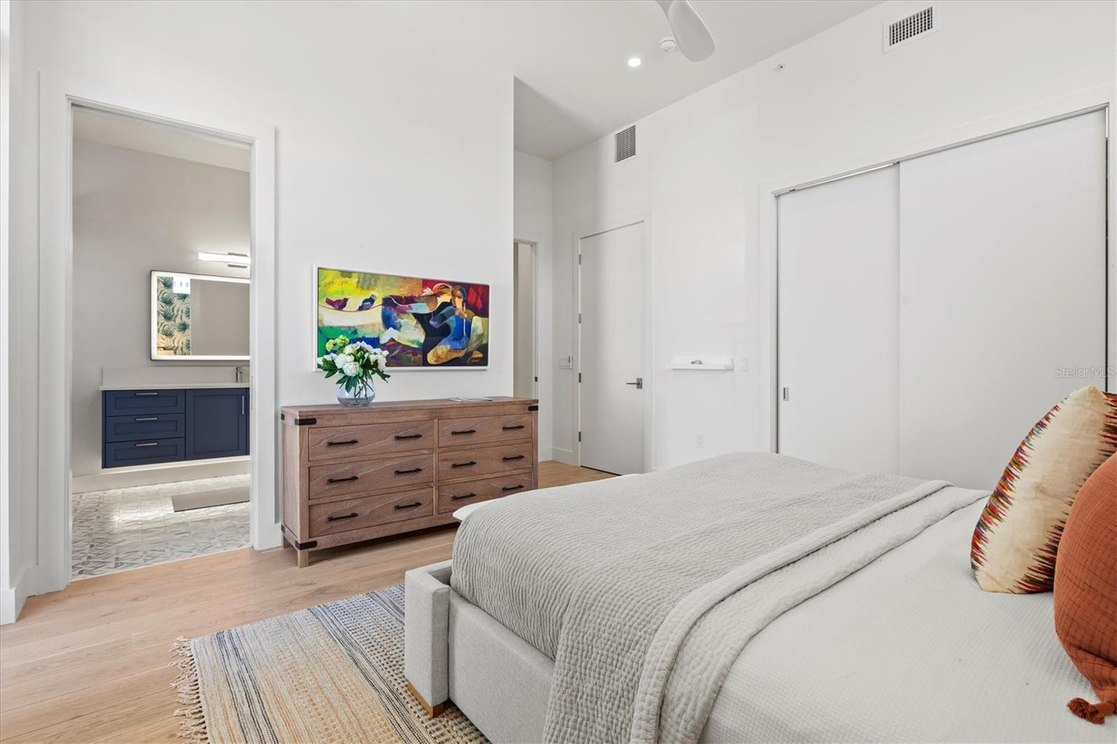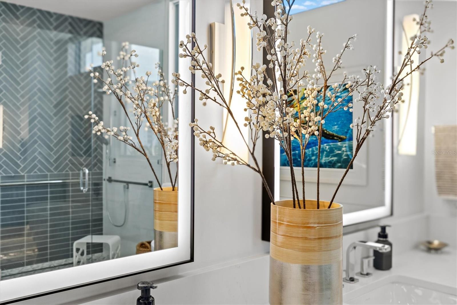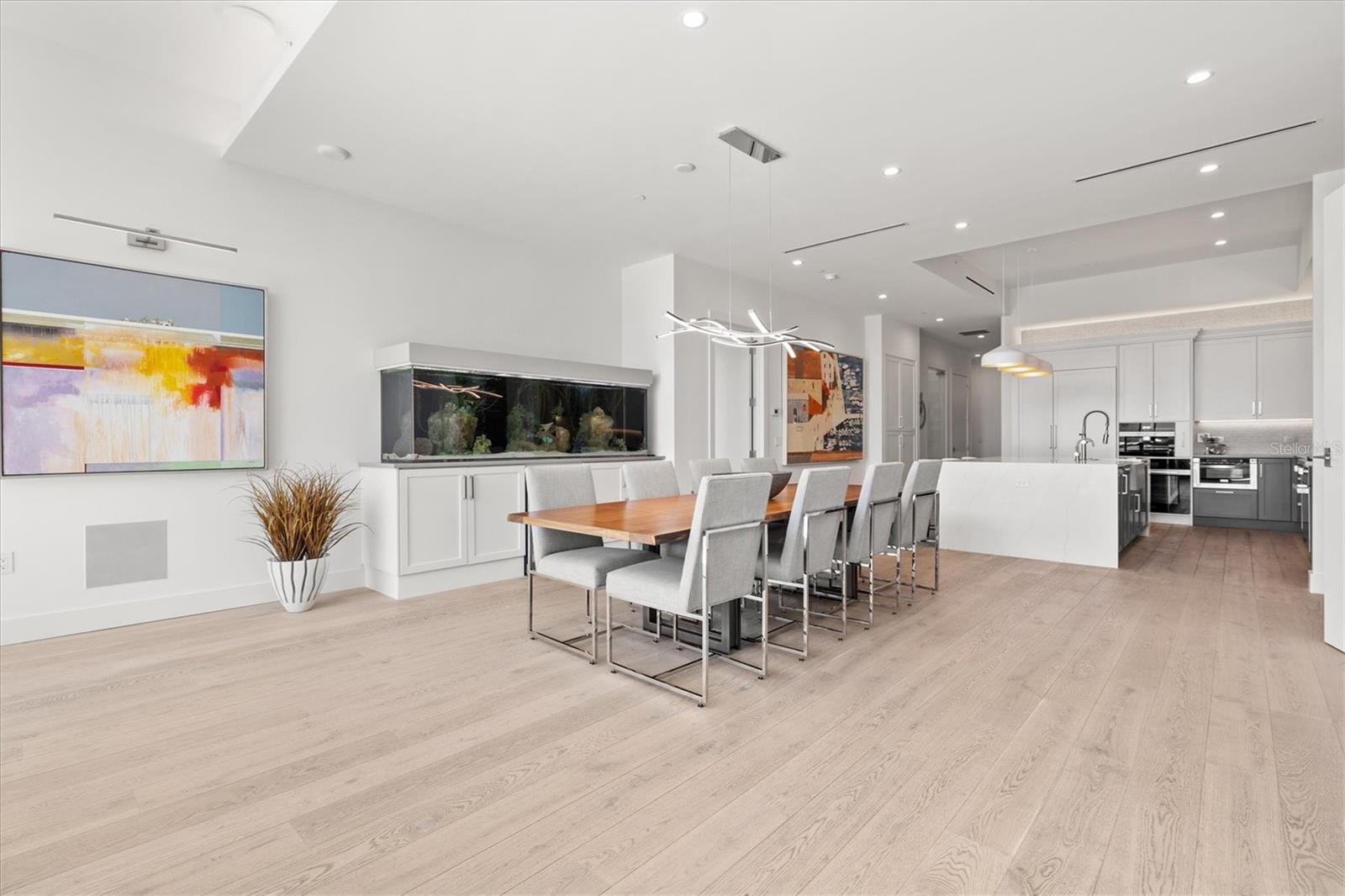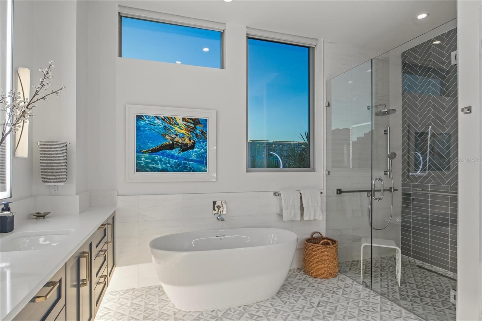 Welcome to 3W at The Collection, where you will experience the epitome of modern luxury in this one-of-a-kind, boutique condo located in the heart of downtown Sarasota just steps away from world-class dining, shopping, and cultural attractions. Every detail of this custom residence has been meticulously curated with high-end designer selections and finishes, offering an unparalleled living experience. As you enter the unit by way of private elevator access, you’ll be delighted by the beautifully styled entrance leading into the home. Immediately you will notice an abundance of natural light shining through the 12-ft-floor-to-ceiling windows and doors. The sleek, open-concept floor plan showcases premium finishes throughout the units 3,300+ sq ft of interior living space and 1,000 sq ft of private patio space. No expense was spared for upgrades. The kitchen is a true masterpiece with custom soft-close wood cabinetry, quartz countertops with a waterfall edge island and stone backsplash, top-of-the-line Miele appliances including a built-in smart coffee system and ice maker, under and over cabinet lighting, and additional storage. Each bedroom is equipped with a custom closet system, a luxurious en-suite bath with marble flooring, flash tile and custom vanities and LED illuminated mirrors, and private balcony access. The office features built-in storage with stone countertops and a beautiful glass door. Stunning stone accents, vibrant wallpaper, European White Oak flooring and exquisite light fixtures throughout the residence perfectly blend sophistication and comfort, creating a masterpiece of contemporary design. Home automation, including interior automated shades by Wicked Smart Homes, allows for an easy lock and leave process. The exterior living space is just as remarkable and perfect for entertaining with a pizza oven, refrigerator, sink, a firepit and multiple seating areas. Situated in the heart of The Art District in downtown Sarasota with only 12 units in the building, residents of The Collection enjoy a very private and exclusive living experience. The state-of-the-art building has a 24-hour camera and building access system in place with key fob, entry code, remote, card, and phone entry. The ground floor ensures residents have everything they need right at their fingertips with a concierge, mail room, covered private parking, and a temperature-controlled storage area. 3W comes with two parking spaces. The second floor is where residents will enjoy the impressive onsite amenities which include a pool and spa, daybeds, a yoga and fitness center, sauna, entertainment center with a fireplace, tv, and wet bar, and conference style meeting room. This rare gem is the ultimate expression of style and convenience, being sold furnished with some exclusions, and located within walking distance to Bayfront Park, Sarasota Main Street, Starbucks, Whole Foods, and more!