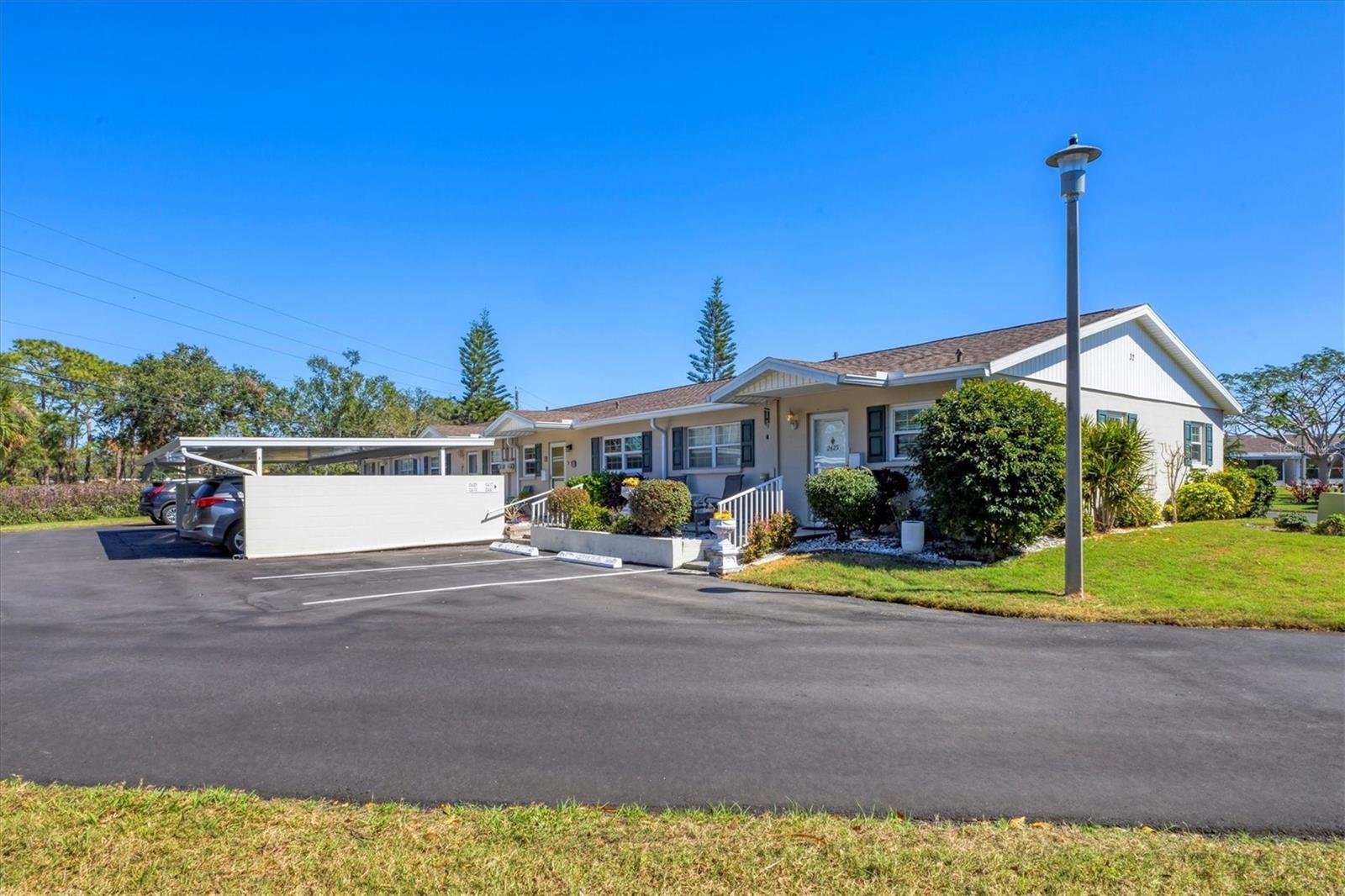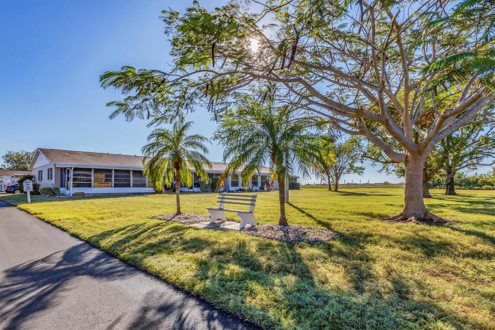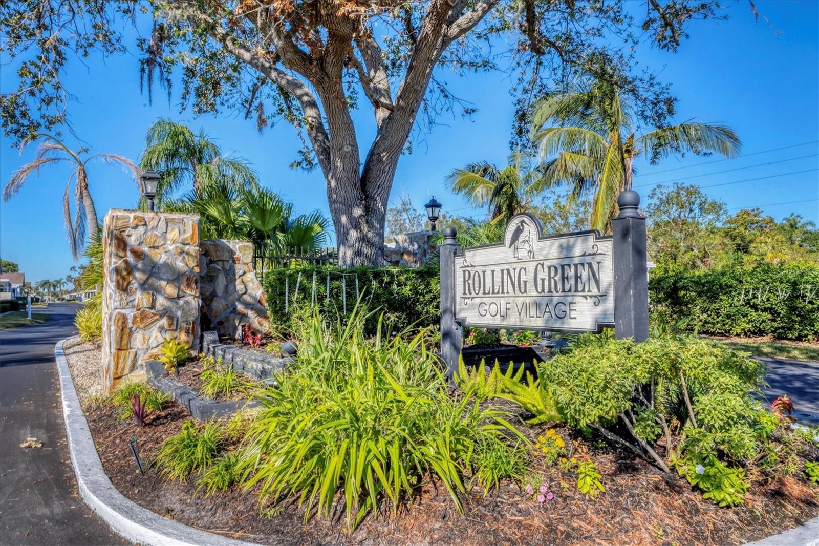 ~ AFFORDABLE AND IN A WONDERFUL LOCATION! ~Come discover Rolling Green! You'll have the pleasure of living in a maintenance free impeccably maintained villa in this 55+ community. The location of this particular home positioned at the very end of the subdivision assures you of peace, privacy and quiet. Solid wood maple cabinetry, stainless steel appliances, an eat-in kitchen nook area, tile backsplash and an additional large hallway pantry closet complement the kitchen that overlooks the dining area, living room and spacious lanai. Furnishings are included. A new ceiling fan and light fixtures have been added along with $3500 invested in NEW HIGH IMPACT SLIDERS accessing the Florida lanai. You'll appreciate the convenience of having an indoor laundry closet which also houses the control panel box and 2014 hot water heater. The guest bath, located in the hallway, offers a new higher toilet, newer vanity and new tile flooring. Storage space, which is always desirable, is available here for your extras in the hallway's two closets. The primary bedroom features newer carpeting within the last year, along with two closets and leads to the private bathroom showcasing a new vanity, light fixture, and tempered shower glass door. Ceramic tile can be found in the kitchen with luxury vinyl plank flooring in the living and dining room and carpeting in both bedrooms. The Florida lanai, which features plexiglass windows and new low maintenance epoxy flooring, is very generously sized at 18' x 12' and is sure to become your favorite getaway! New rain gutters have been added and the entire villa has been repiped. You'll have the convenience of a covered deeded parking spot at the entrance, a private mailbox and a charming garden area for your herbs and plants. The roof is approximately 3 years old and the reserves are strong for this well run community which has been recently re-paved with brand new roads. No roof damage was experienced from the storms for this non-flood X zoned neighborhood. Rolling Green Golf Village has a solar heated community pool and shuffleboard along with an on-site handyman available 25 hours a week for community maintenance repairs. The residents here have a great social calendar that you can participate in and are outgoing and friendly! The location is simply spectacular with close proximity to the University Town Center where you can enjoy dining and a myriad of stores to shop. You're also close to the Sarasota/Bradenton Airport and I-75. Rentals are allowed for a 6 month minimum, 2x a year.