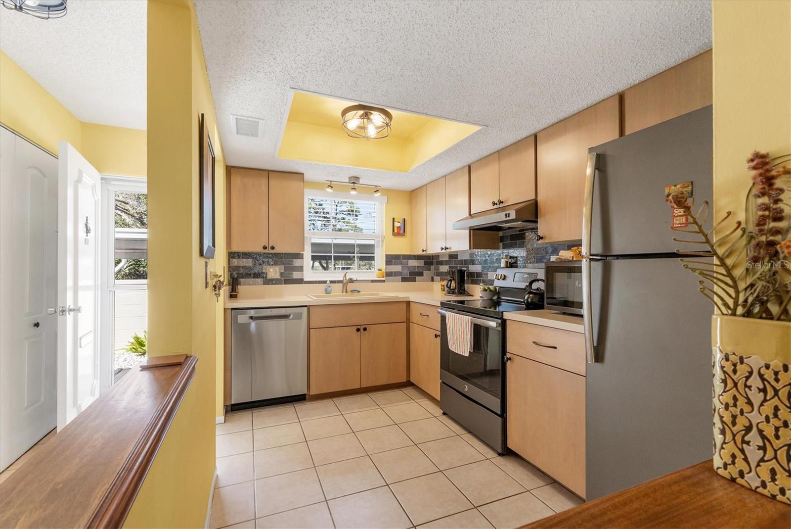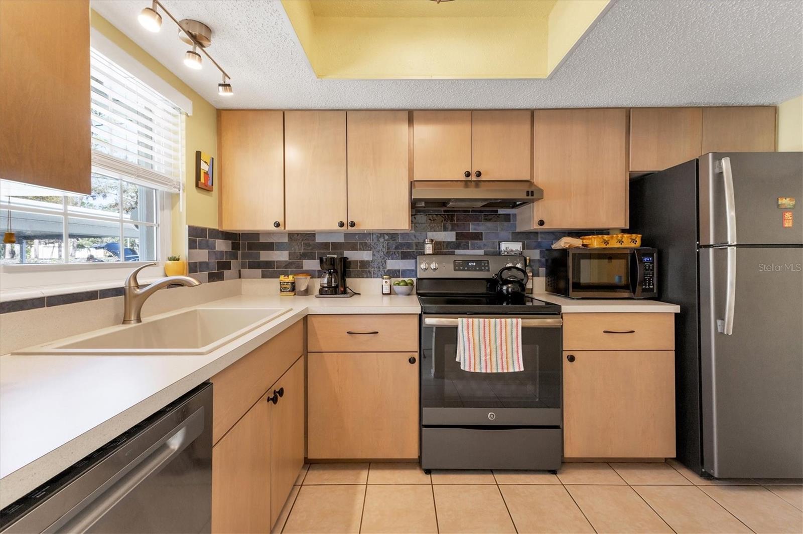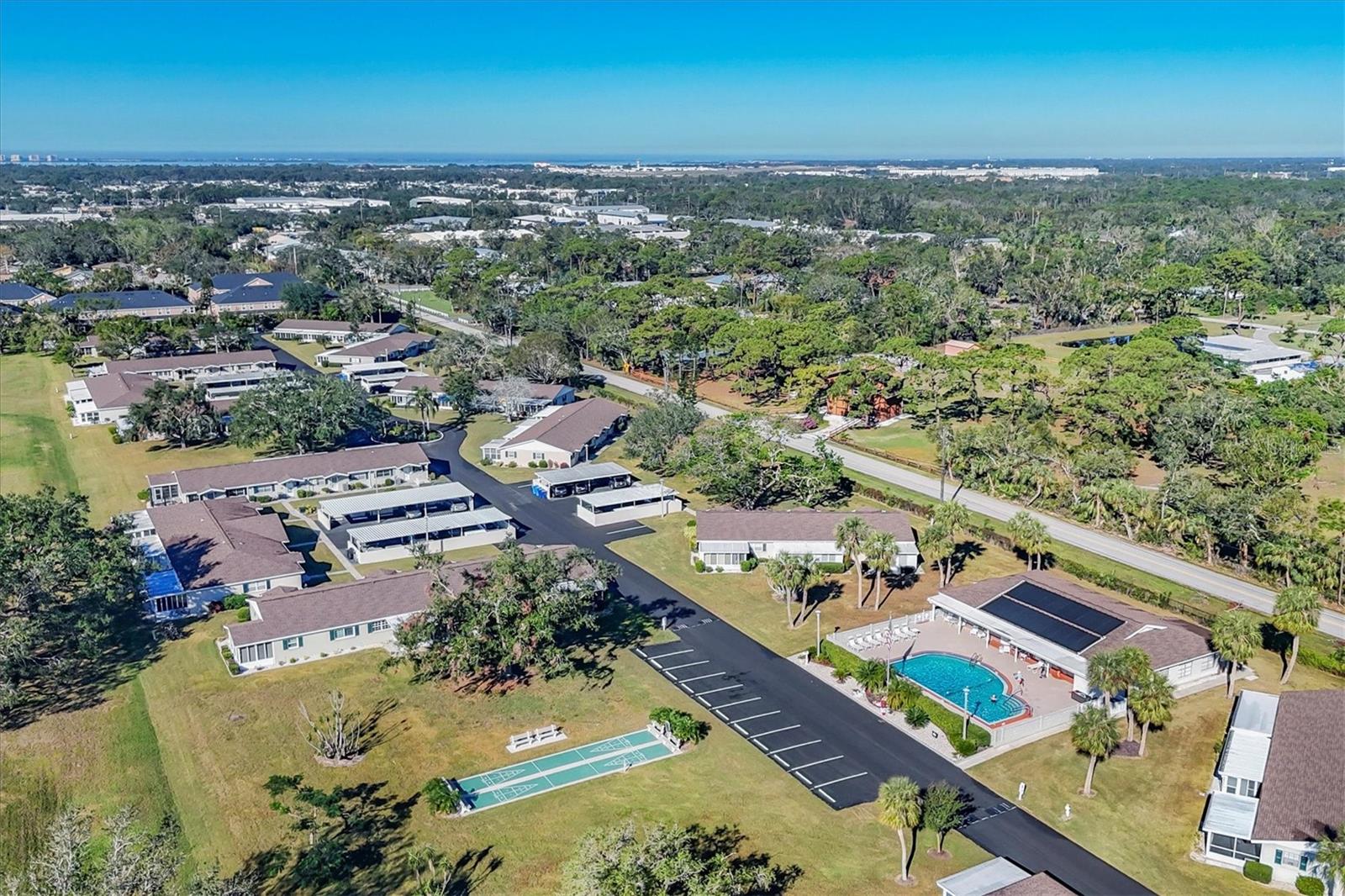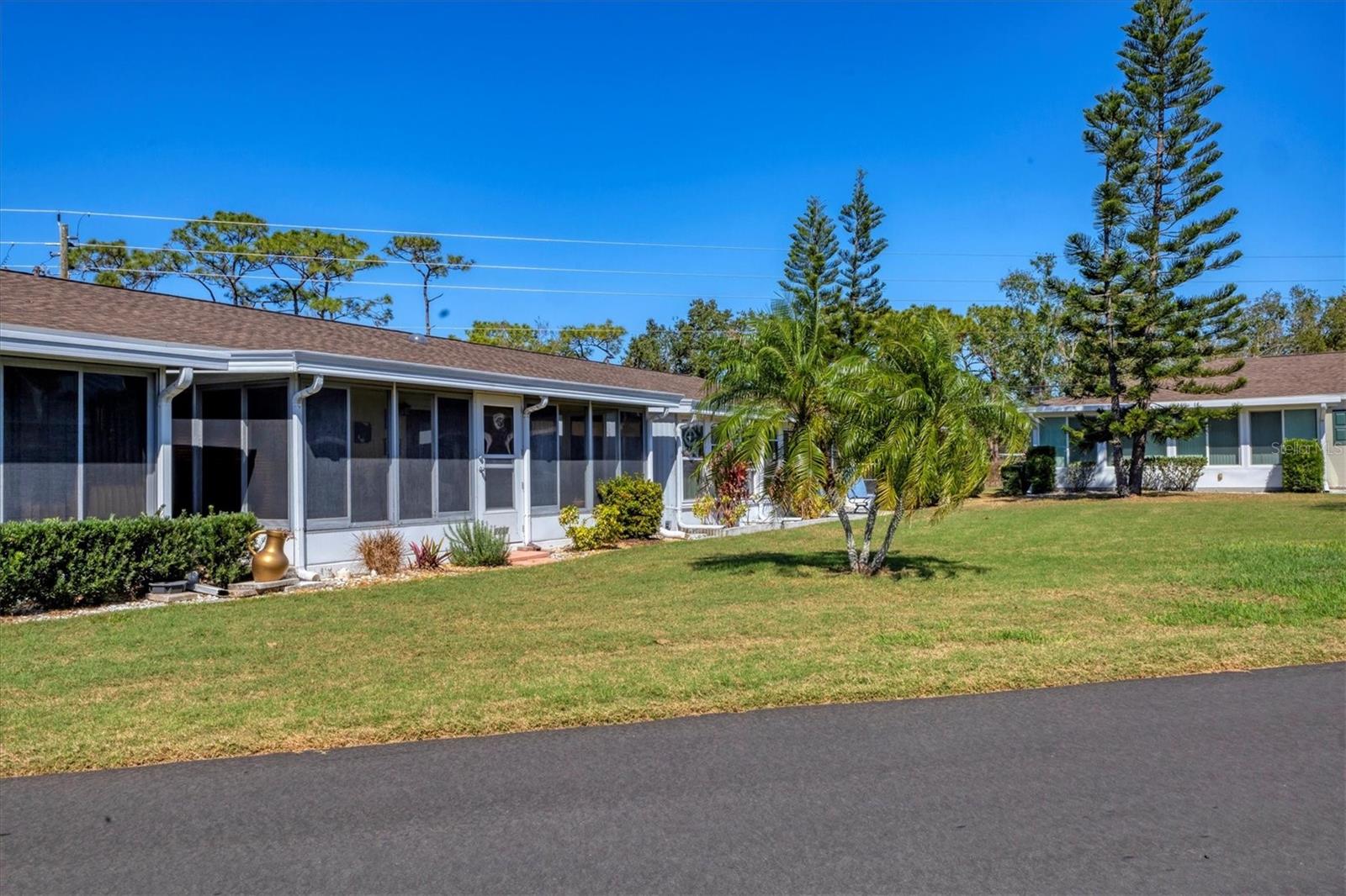 ~ AFFORDABLE AND IN A WONDERFUL LOCATION! ~Come discover Rolling Green! You'll have the pleasure of living in a maintenance free impeccably maintained villa in this 55+ community. The location of this particular home positioned at the very end of the subdivision assures you of peace, privacy and quiet. Solid wood maple cabinetry, stainless steel appliances, an eat-in kitchen nook area, tile backsplash and an additional large hallway pantry closet complement the kitchen that overlooks the dining area, living room and spacious lanai. Furnishings are included. A new ceiling fan and light fixtures have been added along with $3500 invested in NEW HIGH IMPACT SLIDERS accessing the Florida lanai. You'll appreciate the convenience of having an indoor laundry closet which also houses the control panel box and 2014 hot water heater. The guest bath, located in the hallway, offers a new higher toilet, newer vanity and new tile flooring. Storage space, which is always desirable, is available here for your extras in the hallway's two closets. The primary bedroom features newer carpeting within the last year, along with two closets and leads to the private bathroom showcasing a new vanity, light fixture, and tempered shower glass door. Ceramic tile can be found in the kitchen with luxury vinyl plank flooring in the living and dining room and carpeting in both bedrooms. The Florida lanai, which features plexiglass windows and new low maintenance epoxy flooring, is very generously sized at 18' x 12' and is sure to become your favorite getaway! New rain gutters have been added and the entire villa has been repiped. You'll have the convenience of a covered deeded parking spot at the entrance, a private mailbox and a charming garden area for your herbs and plants. The roof is approximately 3 years old and the reserves are strong for this well run community which has been recently re-paved with brand new roads. No roof damage was experienced from the storms for this non-flood X zoned neighborhood. Rolling Green Golf Village has a solar heated community pool and shuffleboard along with an on-site handyman available 25 hours a week for community maintenance repairs. The residents here have a great social calendar that you can participate in and are outgoing and friendly! The location is simply spectacular with close proximity to the University Town Center where you can enjoy dining and a myriad of stores to shop. You're also close to the Sarasota/Bradenton Airport and I-75. Rentals are allowed for a 6 month minimum, 2x a year.