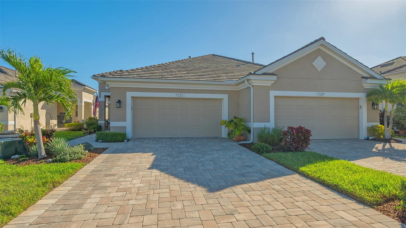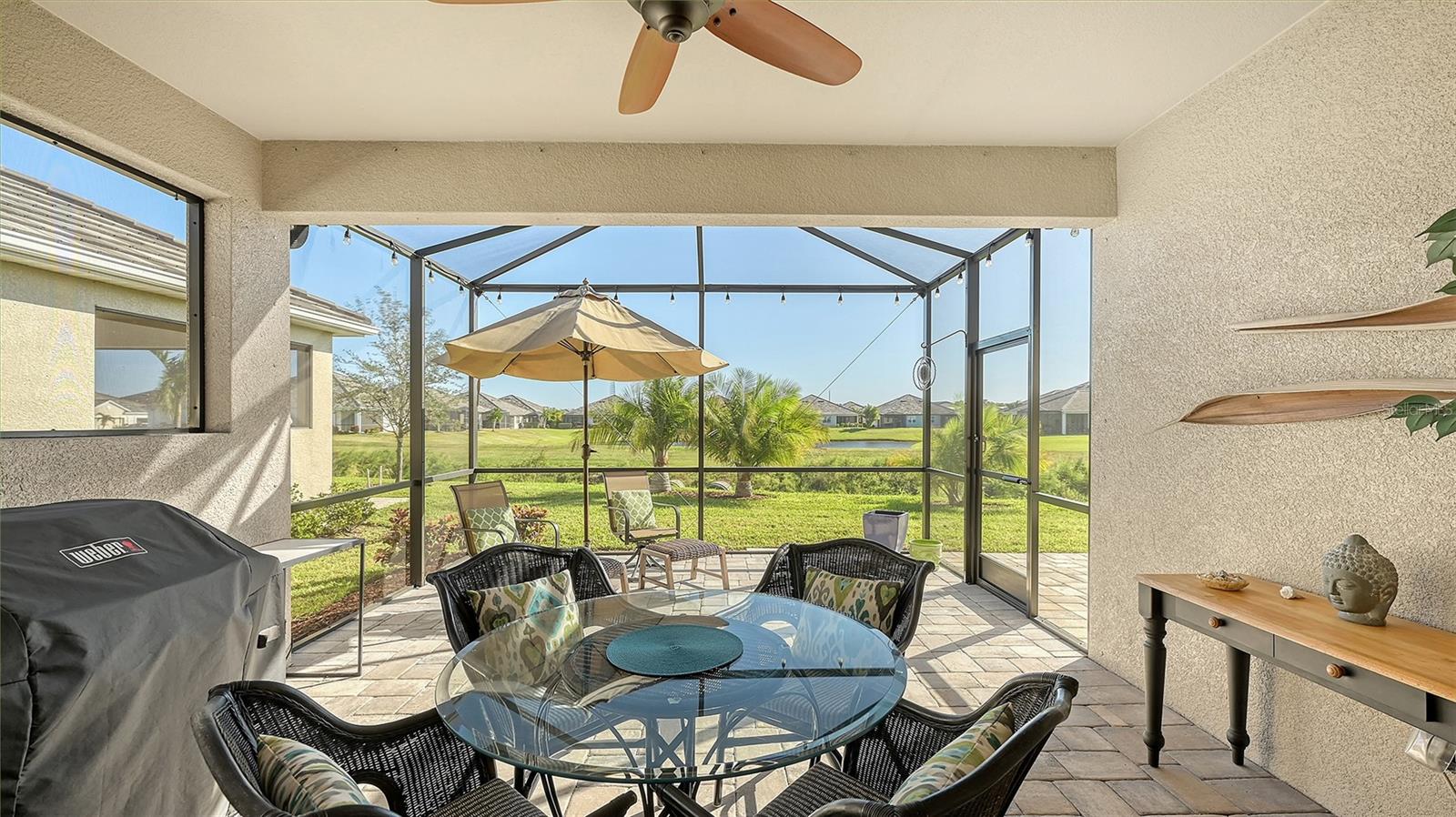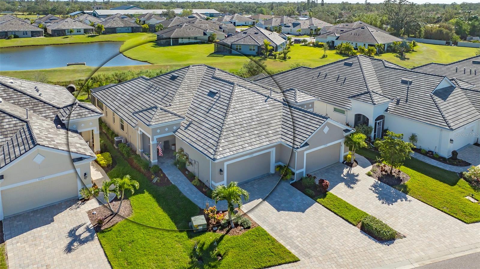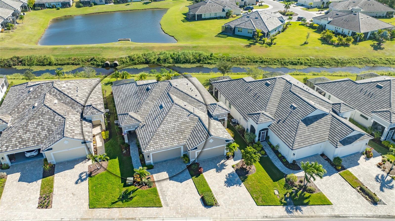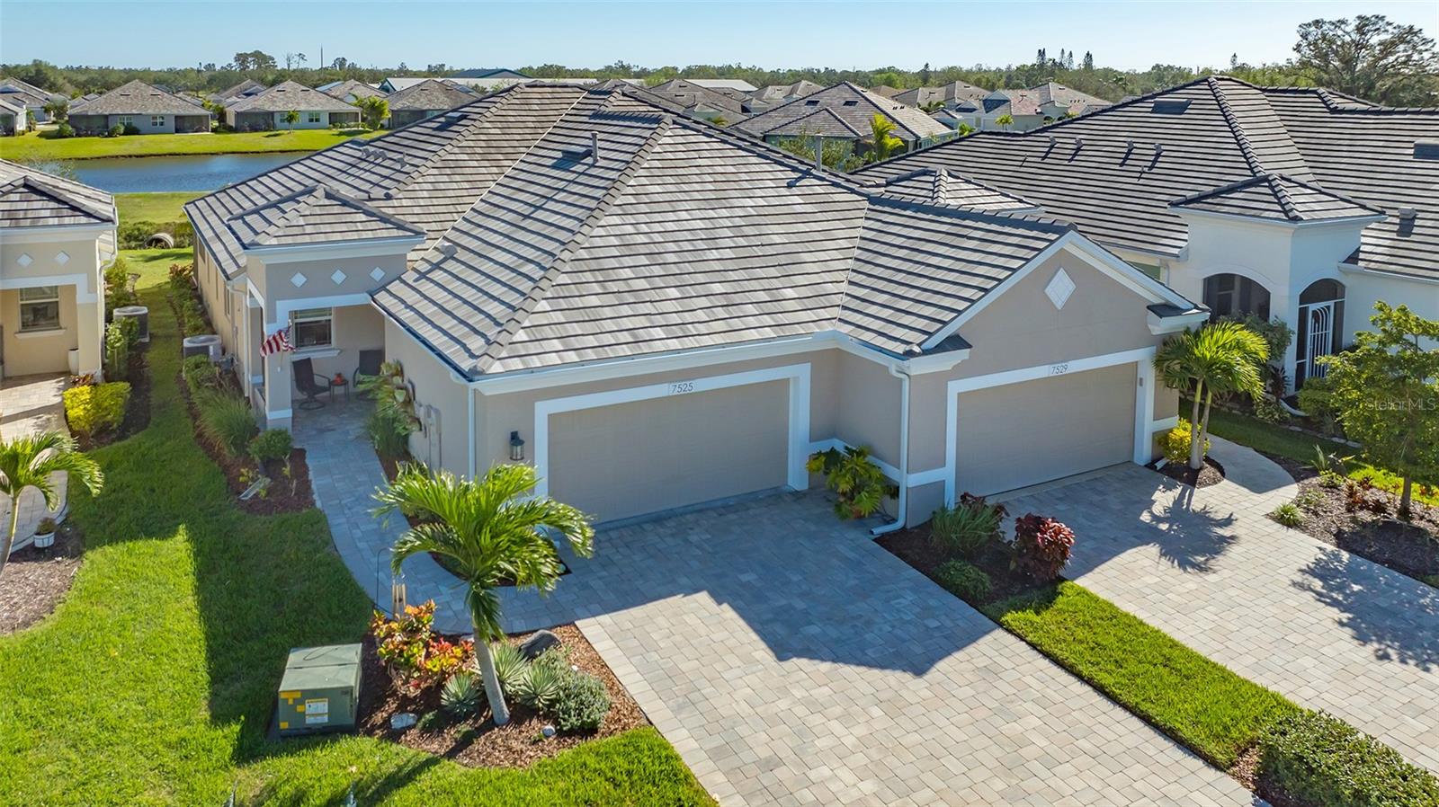 University Village built by Medallion Homes is a pristinely maintained maintenance free gated community in Sarasota with Low fees & NO CDD fees. Enjoy water views from your large extended caged patio which is also fully pre-plumbed for an outdoor kitchen. This paired patio villa has 2 split bedrooms, 2 full baths, separate laundry room and attached 2 car garage with shelving. Kitchen has solid wood cabinetry with soft close draws and cabinet doors, Quartz counter tops with ceramic tile backsplash & undercabinet lighting, custom slide out drawers for pots/pans, dimmable lighting, and stainless-steel appliances. The master bedroom has two closets and the master bath has two separate vanities with walk-in shower. Tile flooring in the main living area and LVP in the bedrooms, ceiling fans with remotes, electric fireplace on accent wall, SimpliSafe alarm system, custom clear Lexan hurricane shutters, outdoor soffit lighting and Tile roof. These original owners take pride and it shows! Home has been meticulously maintained and is in move in condition. Quarterly maintenance fees include: Landscaping, irrigation system, wi-fi and TV (spectrum), community heated pool w/spa, community center and friendly dog park. Minutes to beaches, Sarasota airport, UTC mall and downtown Sarasota.
