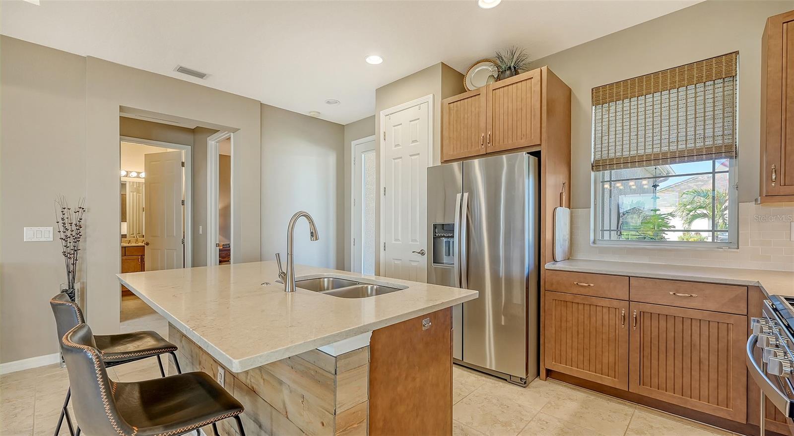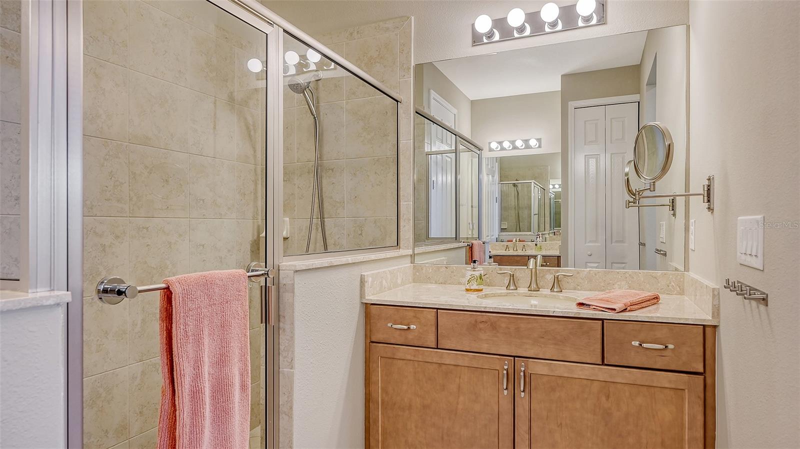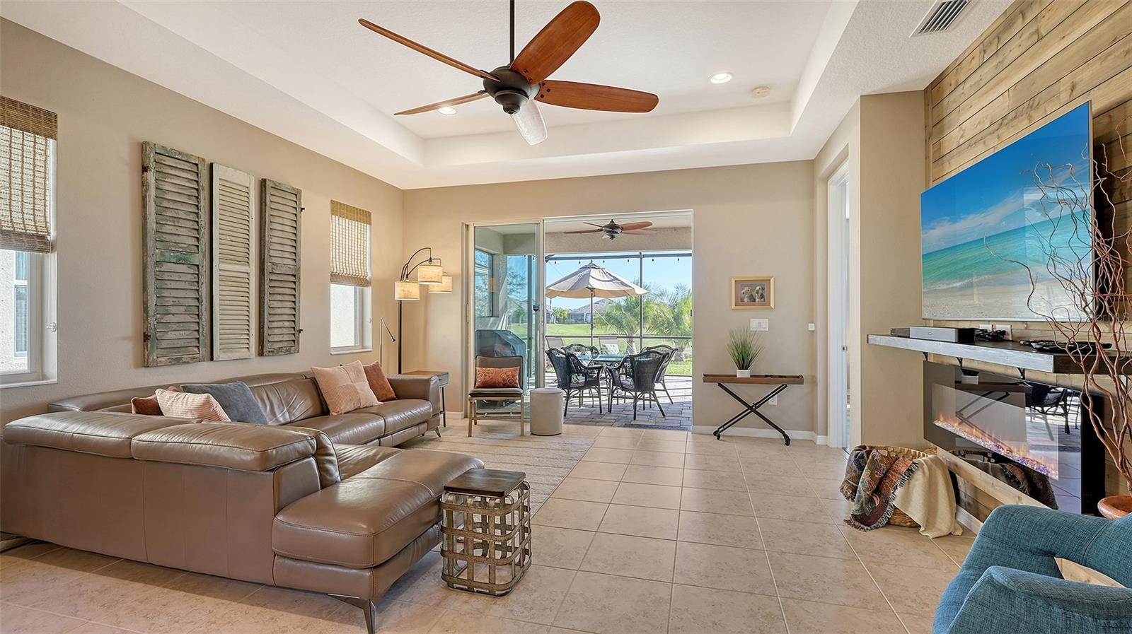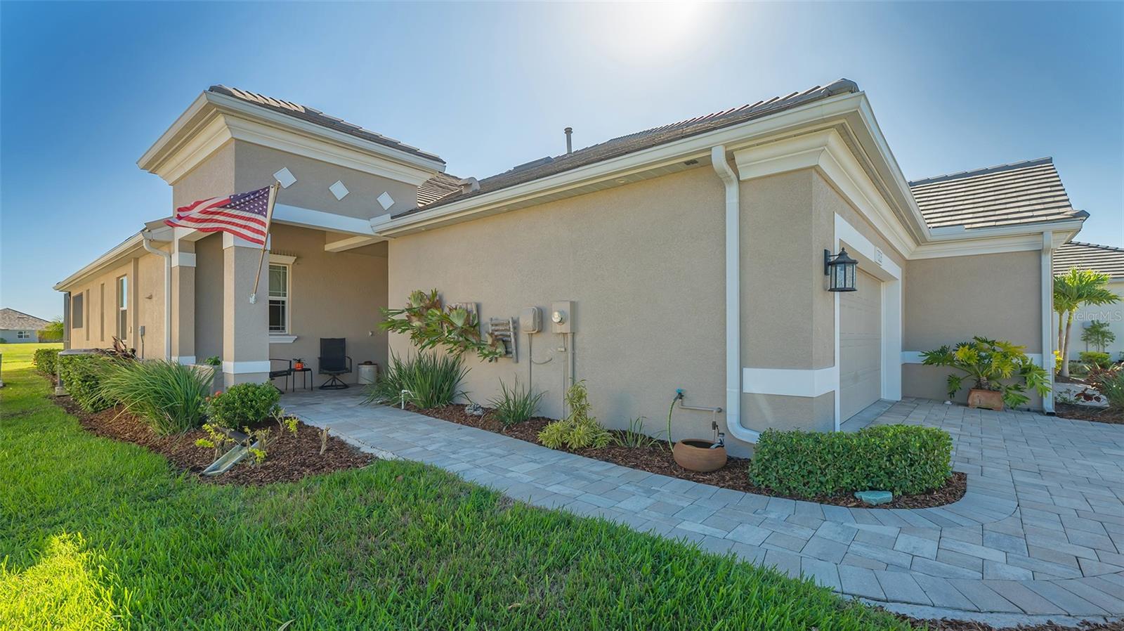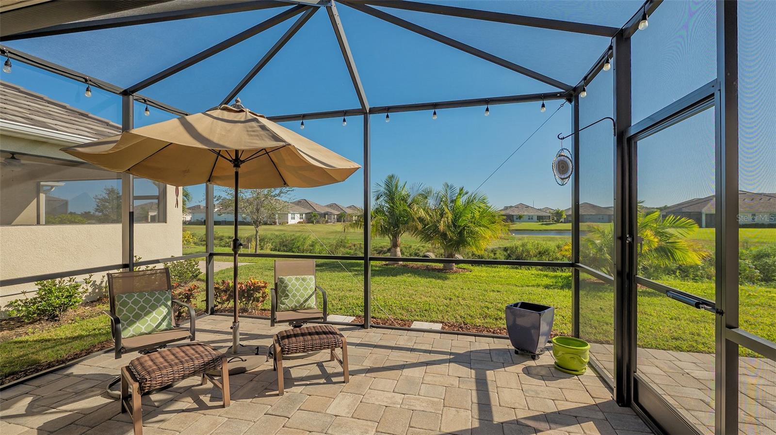University Village built by Medallion Homes is a pristinely maintained maintenance free gated community in Sarasota with Low fees & NO CDD fees. Enjoy water views from your large extended caged patio which is also fully pre-plumbed for an outdoor kitchen. This paired patio villa has 2 split bedrooms, 2 full baths, separate laundry room and attached 2 car garage with shelving. Kitchen has solid wood cabinetry with soft close draws and cabinet doors, Quartz counter tops with ceramic tile backsplash & undercabinet lighting, custom slide out drawers for pots/pans, dimmable lighting, and stainless-steel appliances. The master bedroom has two closets and the master bath has two separate vanities with walk-in shower. Tile flooring in the main living area and LVP in the bedrooms, ceiling fans with remotes, electric fireplace on accent wall, SimpliSafe alarm system, custom clear Lexan hurricane shutters, outdoor soffit lighting and Tile roof. These original owners take pride and it shows! Home has been meticulously maintained and is in move in condition. Quarterly maintenance fees include: Landscaping, irrigation system, wi-fi and TV (spectrum), community heated pool w/spa, community center and friendly dog park. Minutes to beaches, Sarasota airport, UTC mall and downtown Sarasota.