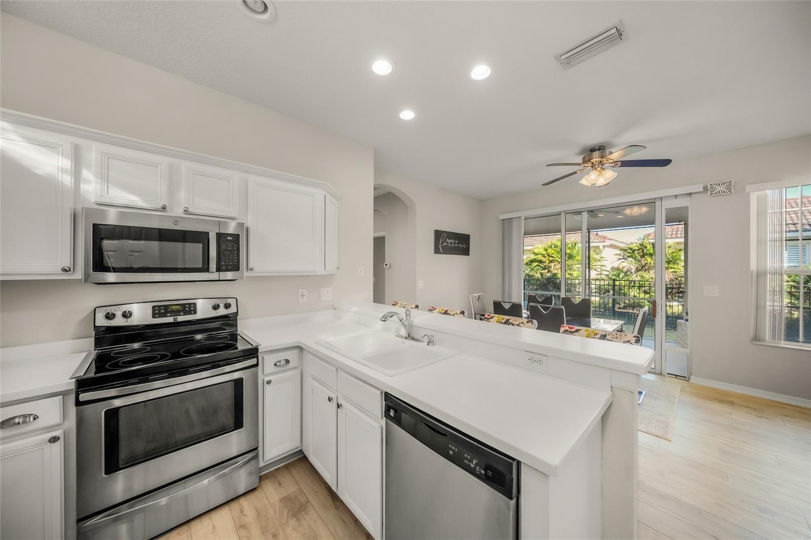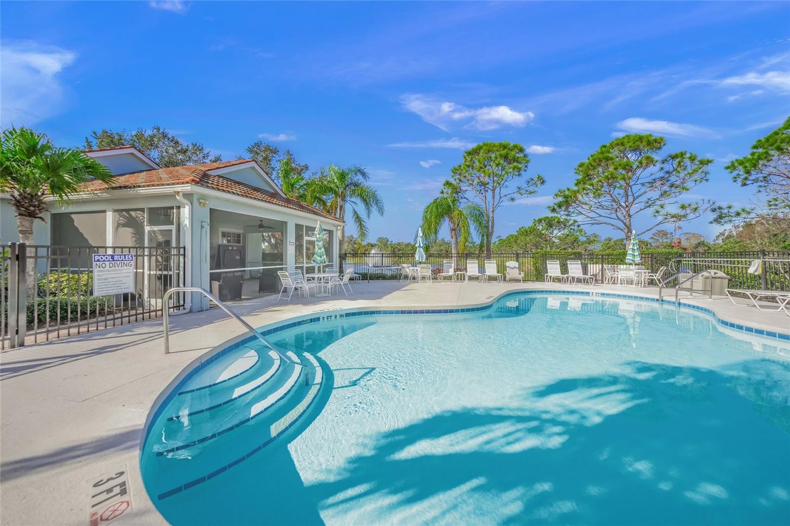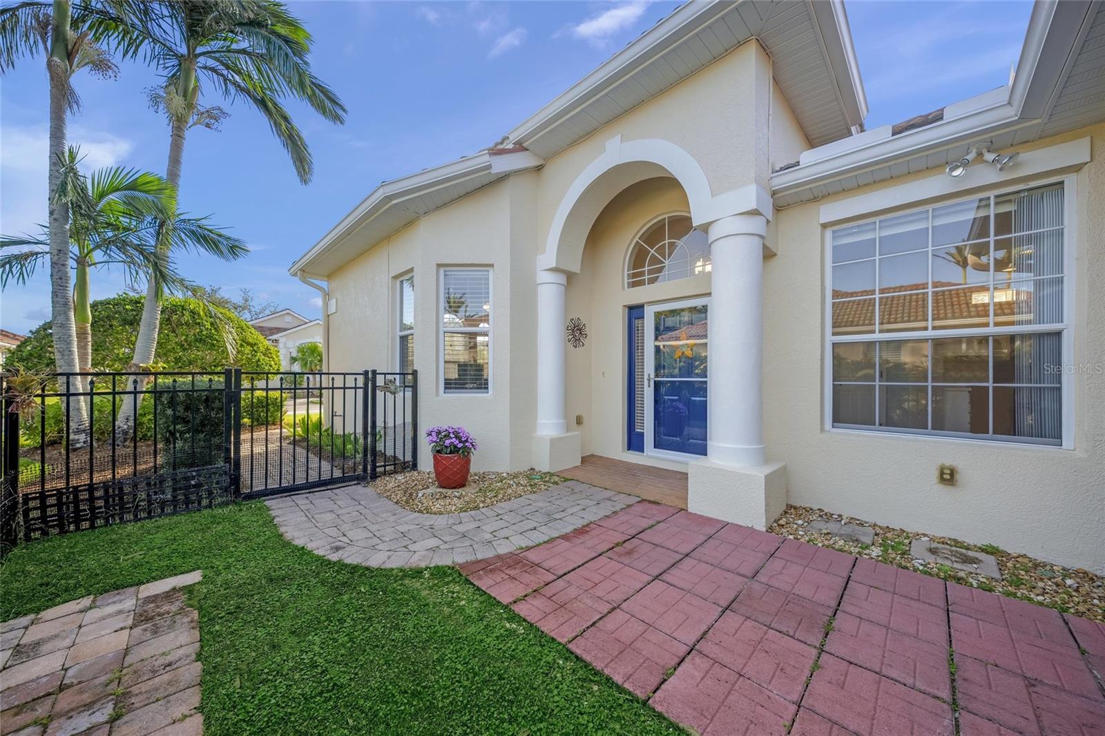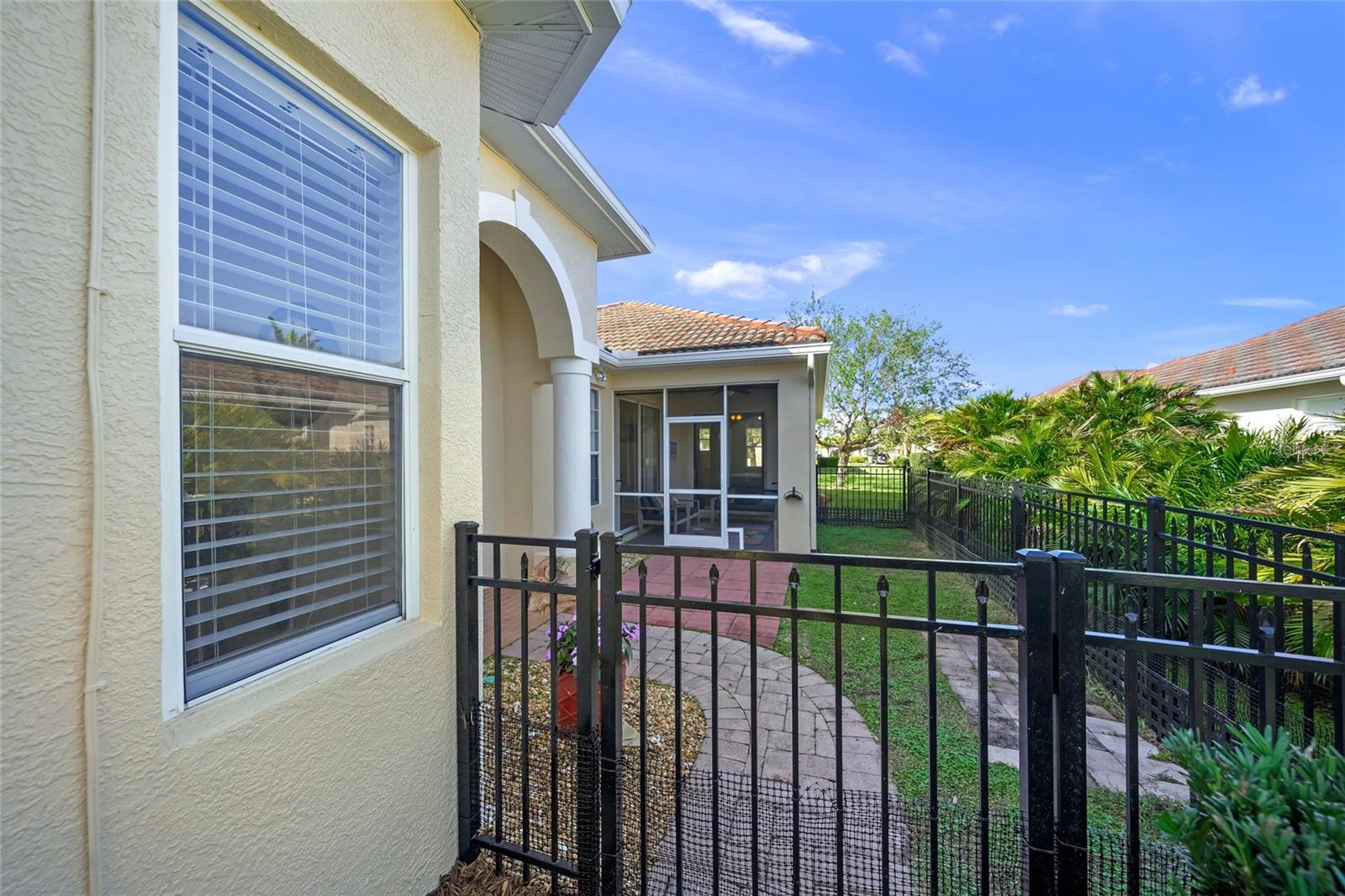 Welcome to Palm Lakes, a hidden gem of single-family maintenance-free homes nestled behind a gated entrance near the University Parkway corridor. This exceptional community offers unparalleled convenience, with easy access to key destinations such as UTC, Whole Foods, Trader Joe's, Nathan Benderson Park, and Sarasota Bradenton International Airport. This particular home is a rare and much-coveted end lot that provides enhanced privacy and features a charming fenced entrance, perfect for gardening or accommodating your furry friends. Inside, you will find an updated and move-in-ready two-bedroom, two-bathroom layout that includes additional work or seating space in the master bedroom. The spacious one-car garage offers extra overhead storage and a fast-track organization system. The entire home has been tastefully updated with a calming soft greige paint palette, luxury vinyl plank flooring throughout, modern black door hardware, and elegant lighting fixtures. The seamless open floor plan allows for easy entertaining, boasting generously high ceilings and an abundance of natural light. The extra-large living room flows effortlessly into the dining area and kitchen, which features fresh white cabinets, Corian countertops, stainless steel appliances—including a brand new refrigerator—and a large breakfast bar ideal for great conversations. The guest bedroom is charming and connected to the fully renovated guest bathroom for added privacy. The master suite offers direct access to a brand new screened lanai, along with an extra seating or work area and a large walk-in closet. The ensuite bathroom is thoughtfully designed with double sinks, updated lighting, and a brand new toilet in a private water closet. Additional upgrades include a newer hot water heater, a sink in the spacious laundry room, and new pavers at the front entrance. In this beautifully maintained community, you can get to know your new neighbors at the clubhouse or enjoy a refreshing dip in the heated community pool. Experience the best of Sarasota with its award-winning beaches—Lido Beach is just 20 minutes away and Siesta Beach under 30 minutes. The thriving cultural scene of downtown Sarasota is only a 15-minute drive away, offering access to the opera, ballet, symphony performances, and numerous top chef-owned restaurants. St. Armands Circle is also just a short 15-minute drive away, featuring an array of shops and dining options. Come see why this home is your new spot in paradise!