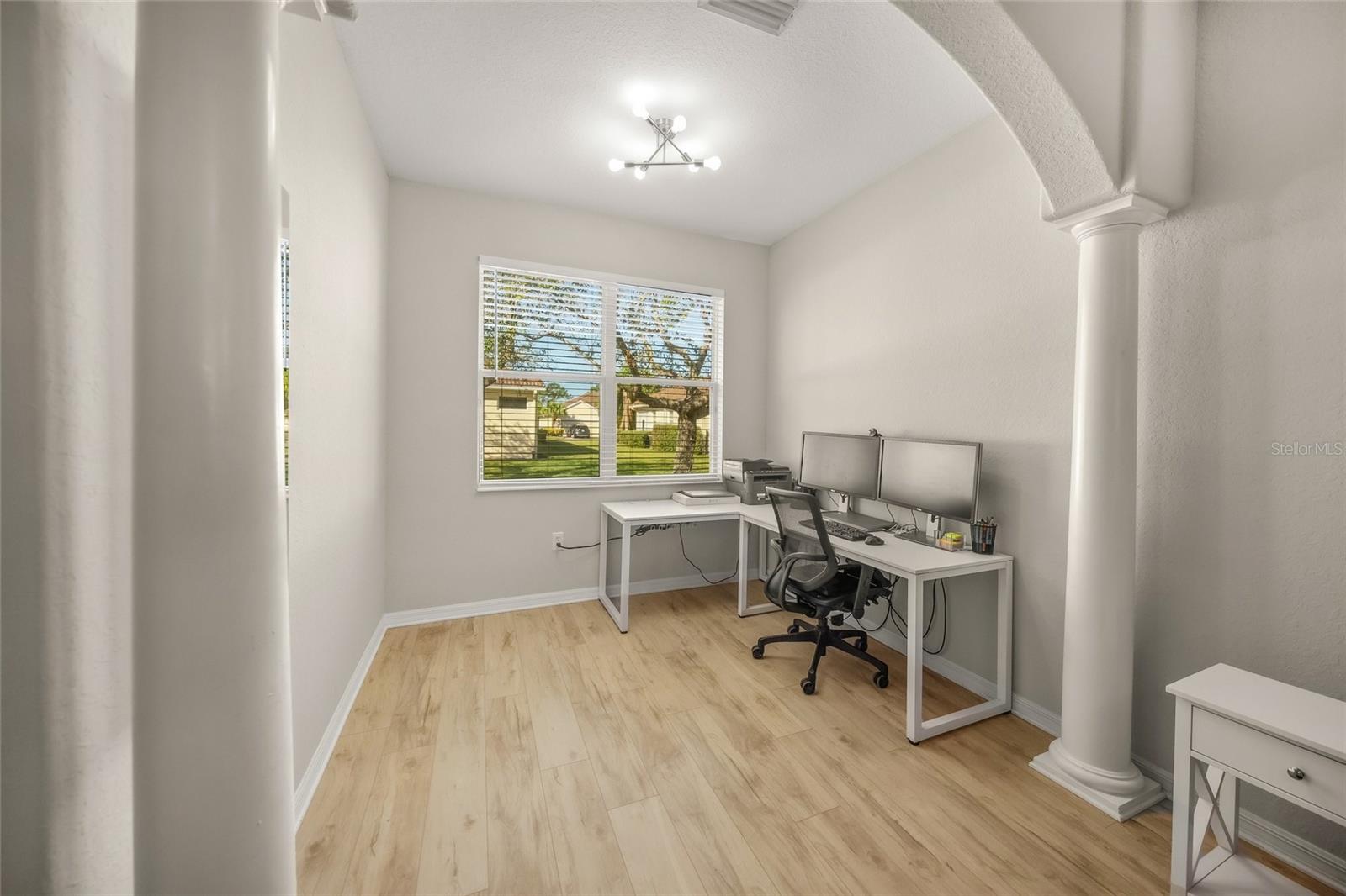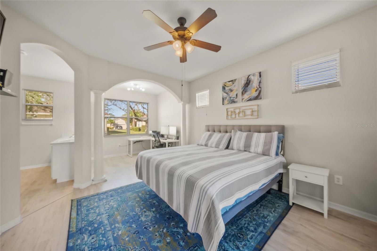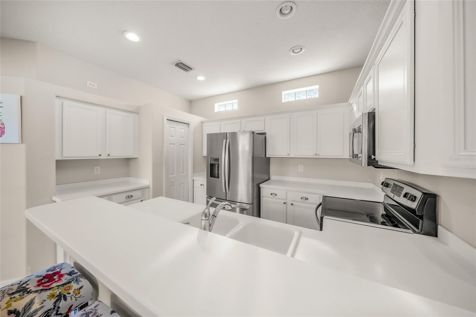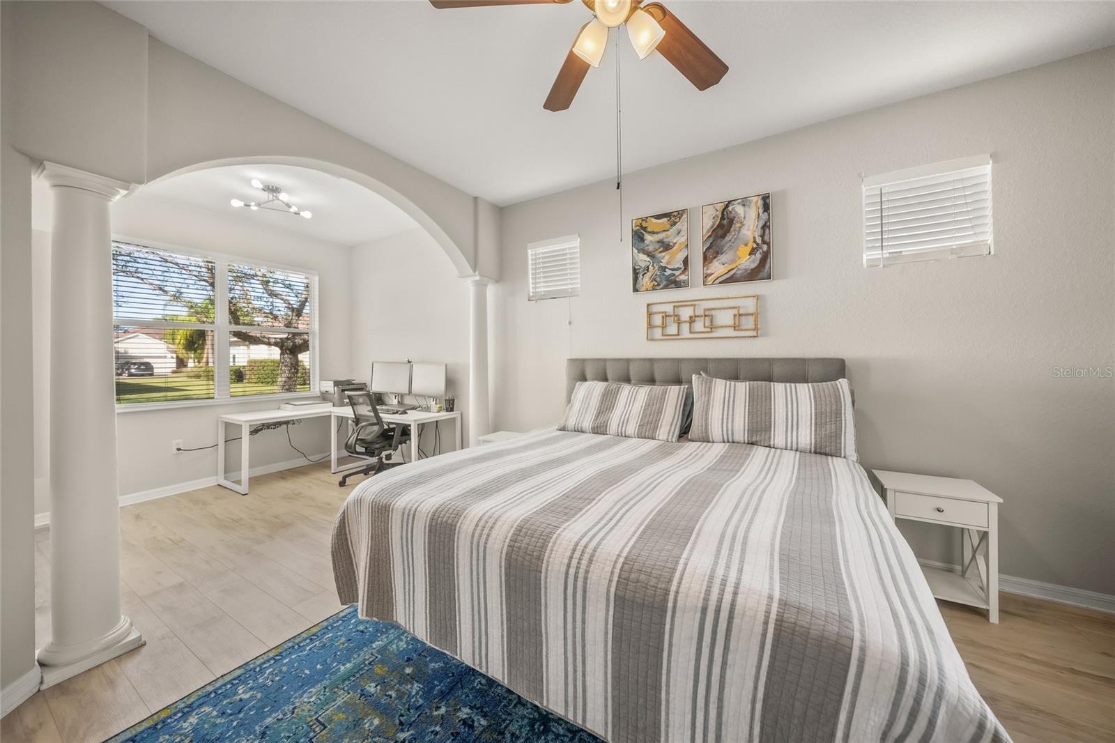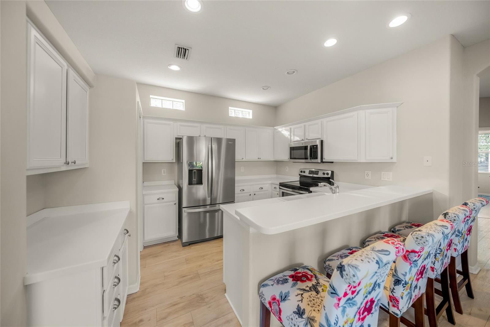 Welcome to Palm Lakes, a hidden gem of single-family maintenance-free homes nestled behind a gated entrance near the University Parkway corridor. This exceptional community offers unparalleled convenience, with easy access to key destinations such as UTC, Whole Foods, Trader Joe's, Nathan Benderson Park, and Sarasota Bradenton International Airport. This particular home is a rare and much-coveted end lot that provides enhanced privacy and features a charming fenced entrance, perfect for gardening or accommodating your furry friends. Inside, you will find an updated and move-in-ready two-bedroom, two-bathroom layout that includes additional work or seating space in the master bedroom. The spacious one-car garage offers extra overhead storage and a fast-track organization system. The entire home has been tastefully updated with a calming soft greige paint palette, luxury vinyl plank flooring throughout, modern black door hardware, and elegant lighting fixtures. The seamless open floor plan allows for easy entertaining, boasting generously high ceilings and an abundance of natural light. The extra-large living room flows effortlessly into the dining area and kitchen, which features fresh white cabinets, Corian countertops, stainless steel appliances—including a brand new refrigerator—and a large breakfast bar ideal for great conversations. The guest bedroom is charming and connected to the fully renovated guest bathroom for added privacy. The master suite offers direct access to a brand new screened lanai, along with an extra seating or work area and a large walk-in closet. The ensuite bathroom is thoughtfully designed with double sinks, updated lighting, and a brand new toilet in a private water closet. Additional upgrades include a newer hot water heater, a sink in the spacious laundry room, and new pavers at the front entrance. In this beautifully maintained community, you can get to know your new neighbors at the clubhouse or enjoy a refreshing dip in the heated community pool. Experience the best of Sarasota with its award-winning beaches—Lido Beach is just 20 minutes away and Siesta Beach under 30 minutes. The thriving cultural scene of downtown Sarasota is only a 15-minute drive away, offering access to the opera, ballet, symphony performances, and numerous top chef-owned restaurants. St. Armands Circle is also just a short 15-minute drive away, featuring an array of shops and dining options. Come see why this home is your new spot in paradise!