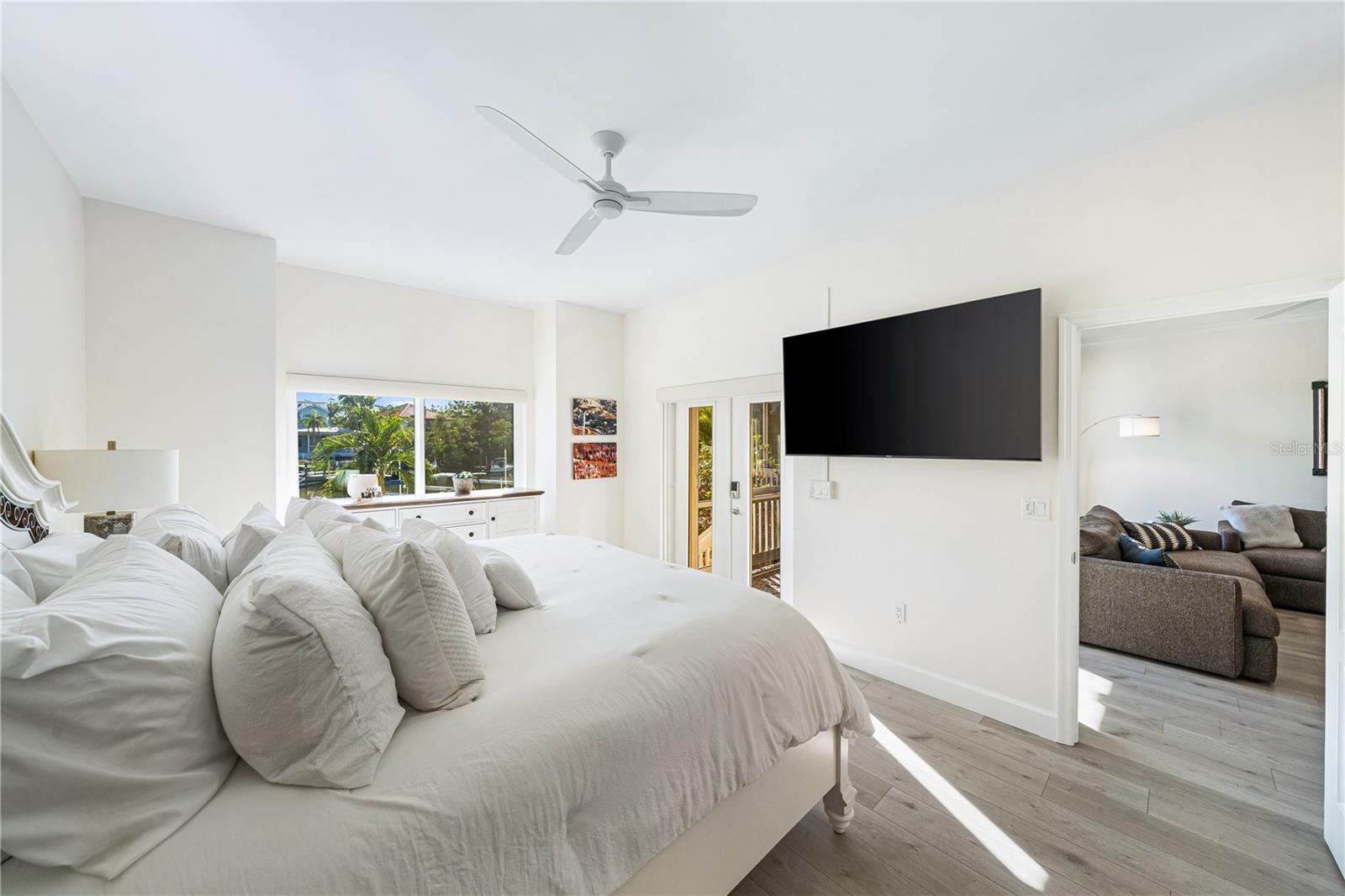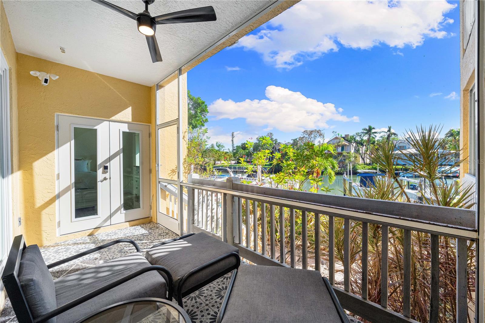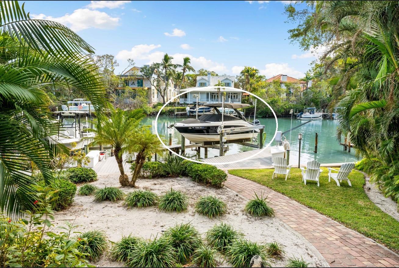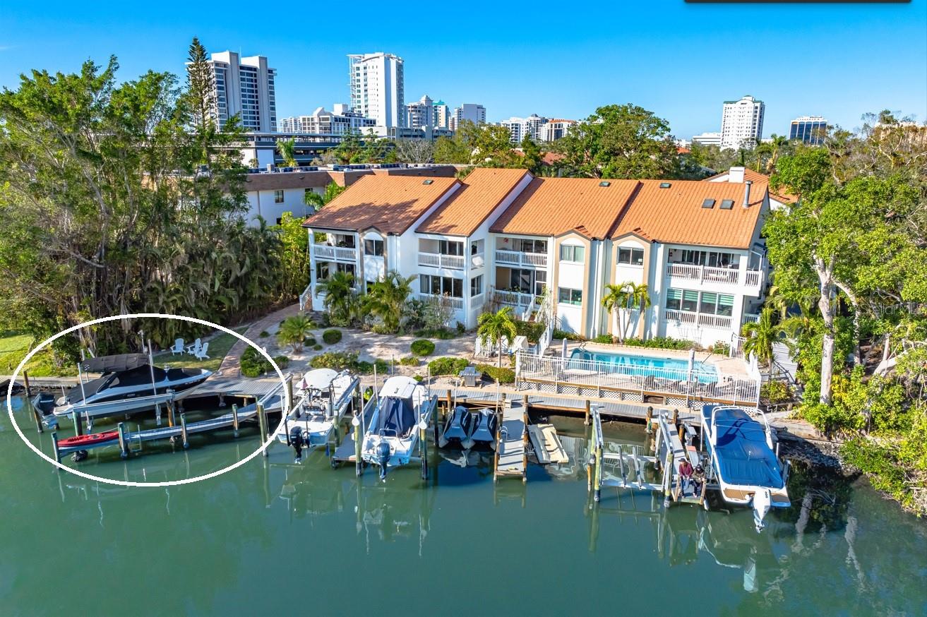 Brand new exterior paint* Experience living on the water with your deeded dock & lift* 20,000 lbs capacity* Boat size up to 35ft* Room for an additional boat and Jetski* Waterfront fully furnished ground-floor condo in Hudson Landings. This rare west-of-the-trail unit features 3 bedrooms, 2 bathrooms, and a deeded dock, offering direct access to Sarasota Bay and the Gulf of Mexico. Enjoy serene water views from the open patio, where you can start your morning with coffee or unwind at the end of the day. Key features include high ceilings, hurricane windows/ sliders, granite countertops, a breakfast bar, tile flooring, and stainless steel appliances. The spacious master bedroom and patio both overlook the canal, allowing you to keep an eye on your boat. This southern-facing condo is bathed in natural light and offers a seamless blend of style and functionality. Hudson Landings is a community of just 12 residences, perfectly situated in a private, peaceful location near downtown Sarasota, Selby Gardens, and the Marina. With a heated community pool and a lifestyle tailored for water enthusiasts, this is an incredible opportunity to live downtown while enjoying the tranquility of waterfront living.