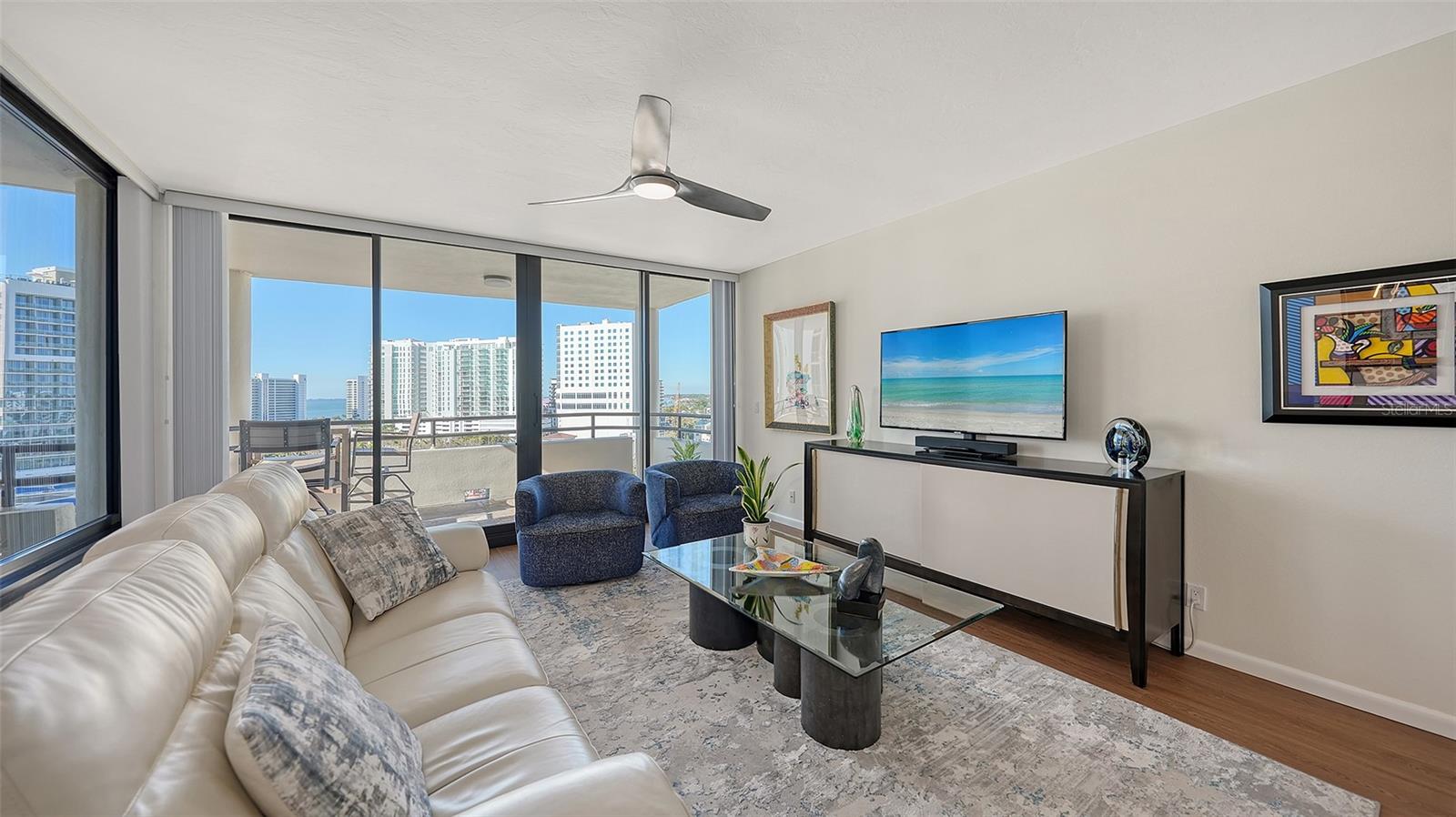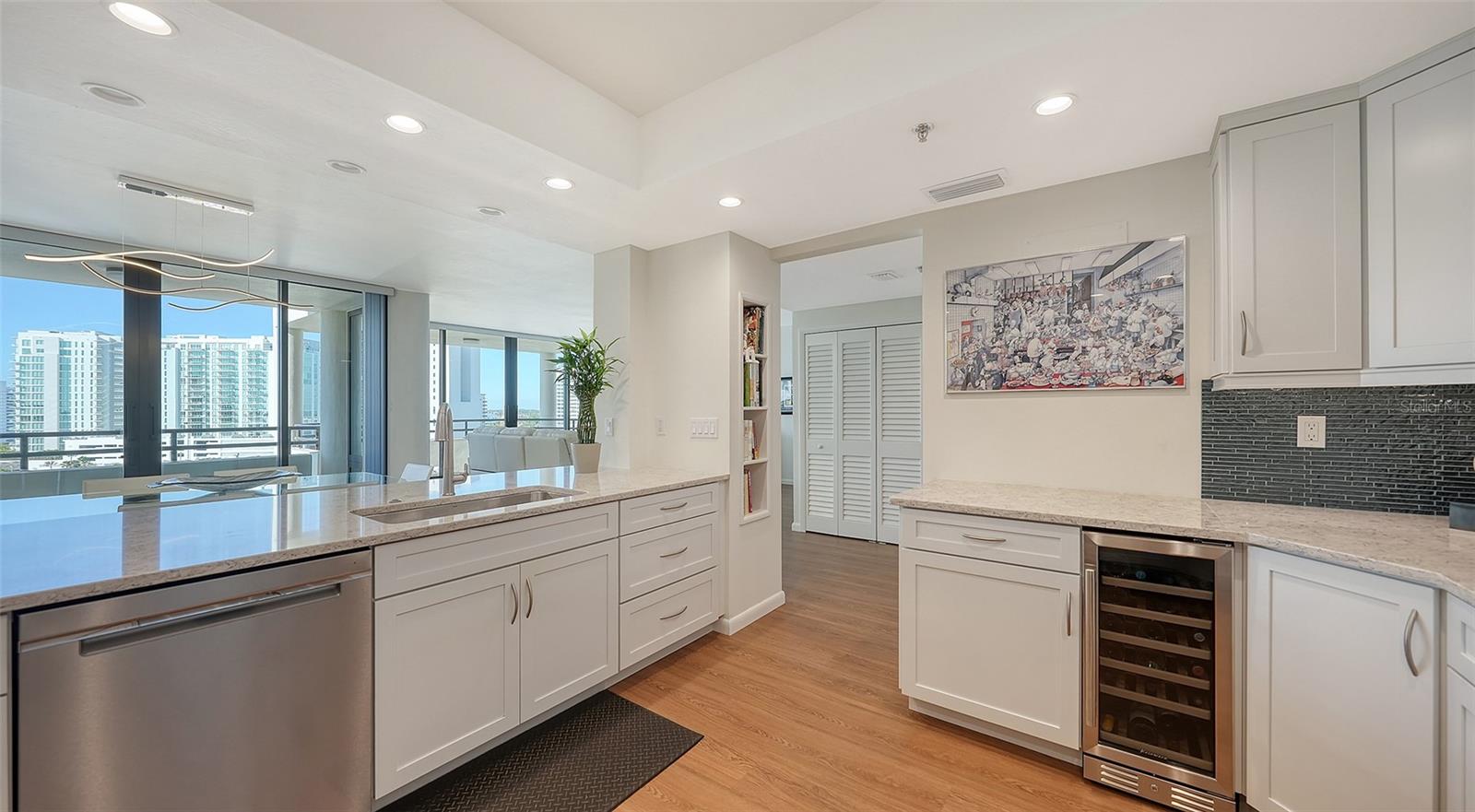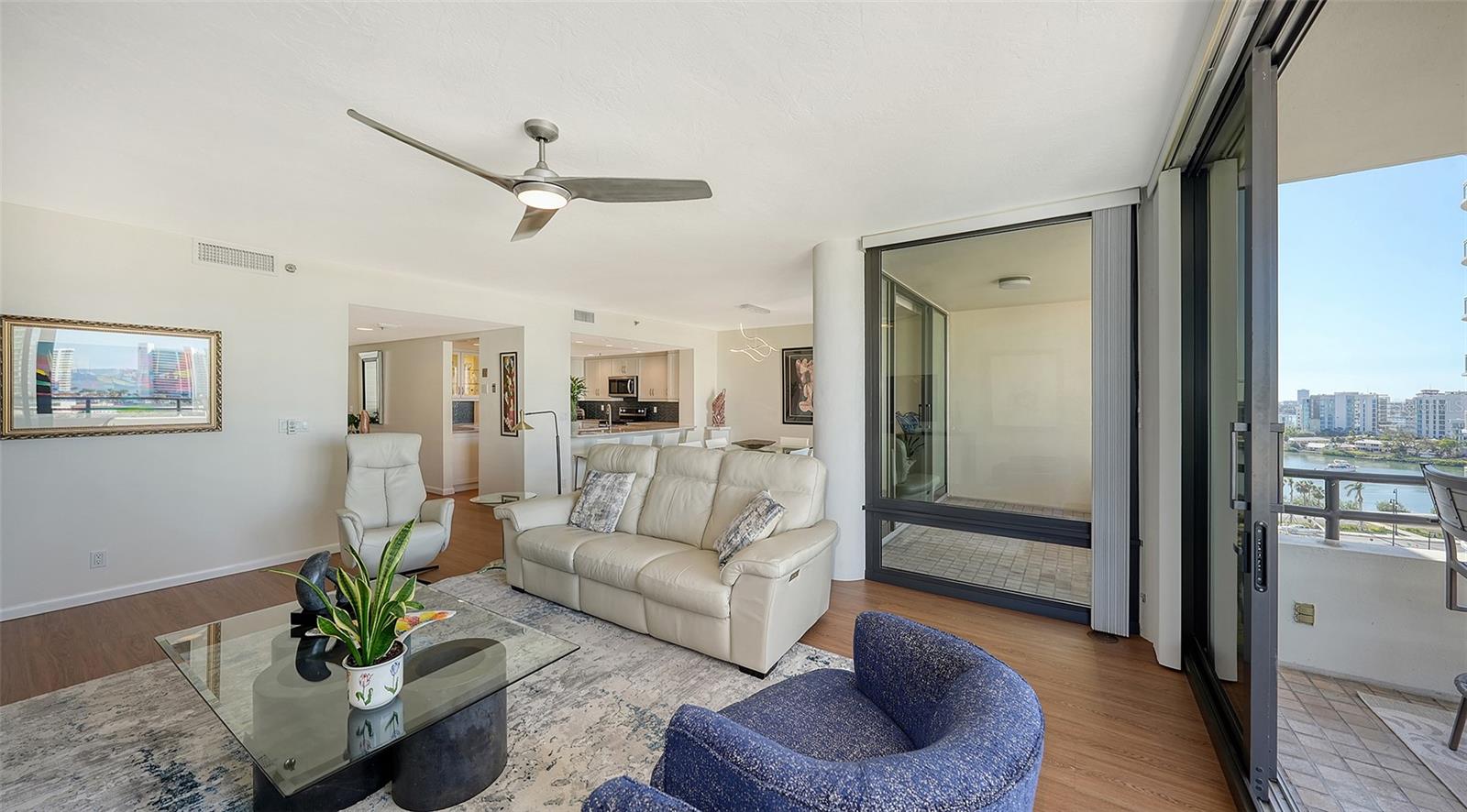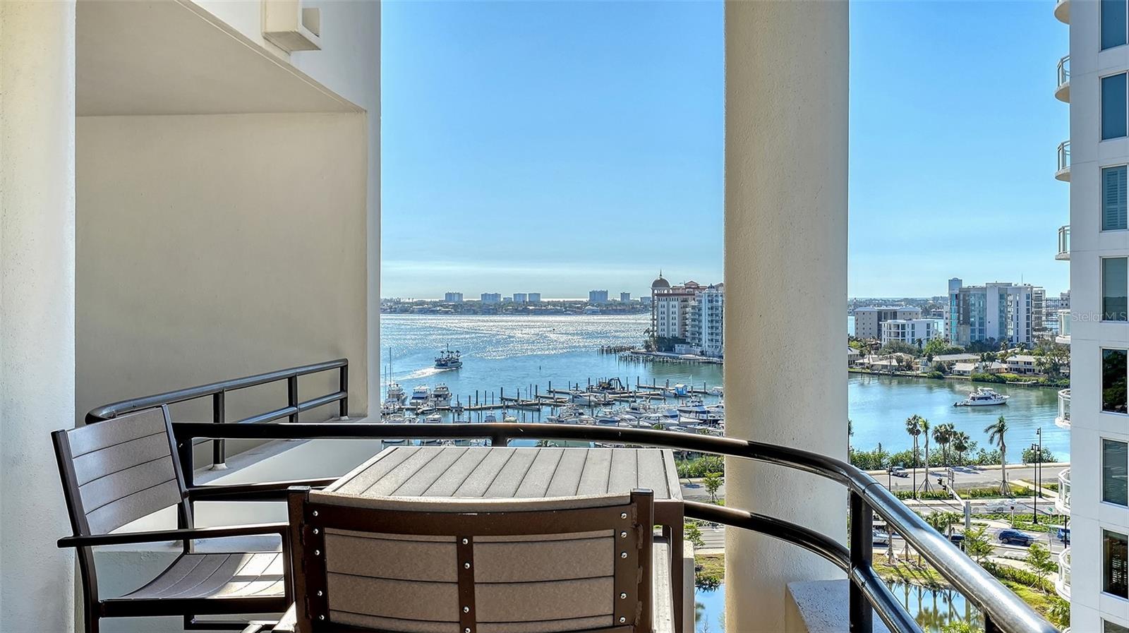 Experience Luxury Living in Downtown Sarasota! Rarely available, this completely remodeled, 3BR/2BA, 11th floor residence at the iconic BAY PLAZA offers breathtaking 270-degree views of Sarasota Bay, Marina Jack and the vibrant downtown landscape. With its prime location and stunning vistas, this home presents a truly elevated living experience. The residence has been recently upgraded with hurricane-rated impact-resistant windows and ceiling-to-floor glass doors ensuring energy efficiency and noise reduction. The open floor plan seamlessly connects the spacious living area with the dining area and a beautifully designed kitchen, featuring elegant quartz countertops for entertaining your guests and easy living options. Some of the features and improvements include: freshly painted interior, new glass shower doors in both bathrooms, new vanities and closet in main and guest bathroom, new ceiling fans and light fixtures, expanded storage with wine cooler in kitchen, new closet systems. FOUR PRIVATE BALCONIES give you unrivaled opportunities to enjoy Sarasota's stunning views, including prime vantage points for the city's famous Fourth of July and New Year's Eve celebrations. Residents of Bay Plaza enjoy an array of world class amenities including heated outdoor pool and spa, spacious shaded entertainment deck, outdoor grill and storage, fitness facility with sauna and steam rooms, EV charging stations. Be pampered by the excellent round-the-clock concierge staff, 24-7 on-site valet parking and 7-day on-staff maintenance. Upgrade to an unparalleled urban lifestyle with walking access to array of local attractions, renowned dining options, boutique shopping, the Bayfront Park, Marie Selby Botanical Gardens, Florida Studio Theater, Sarasota Opera House, Whole Foods and Saturday morning Farmers Market and an easy drive to St Armands Circle, Lido Key and some of the best beaches in Florida!