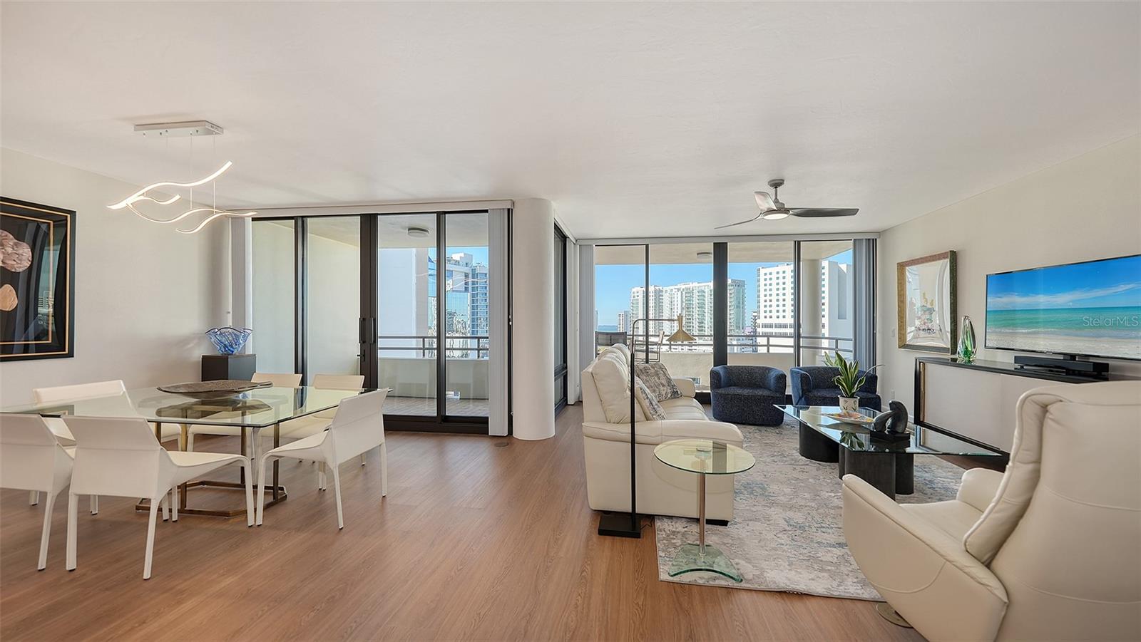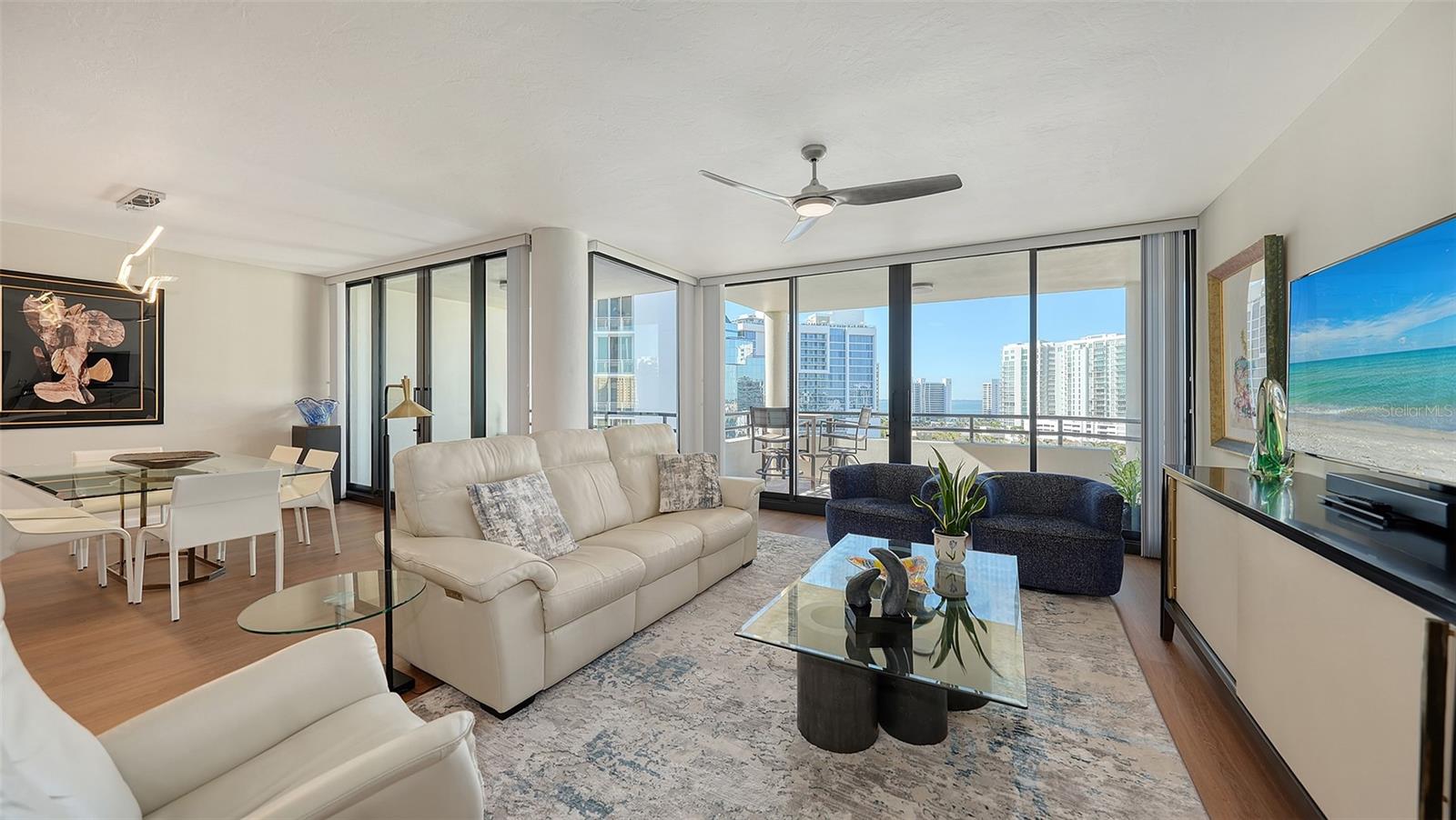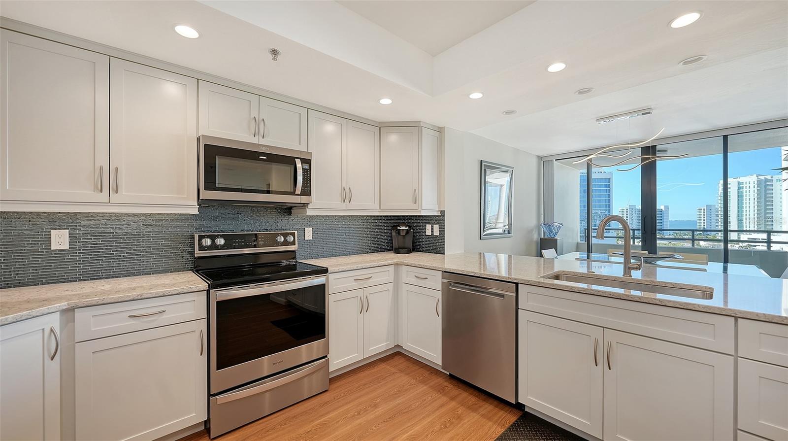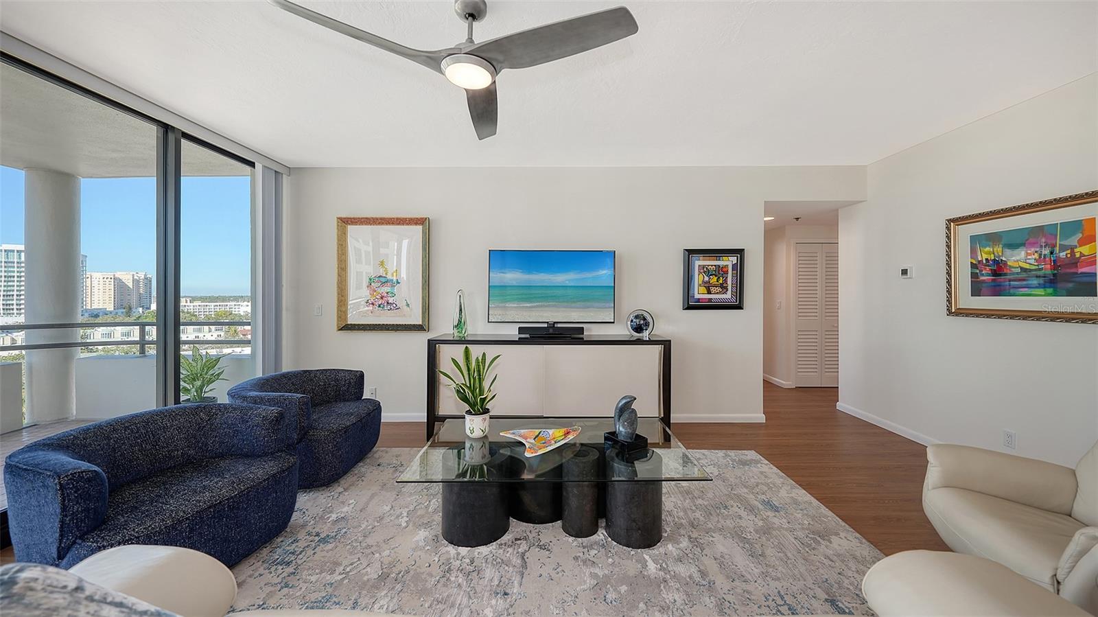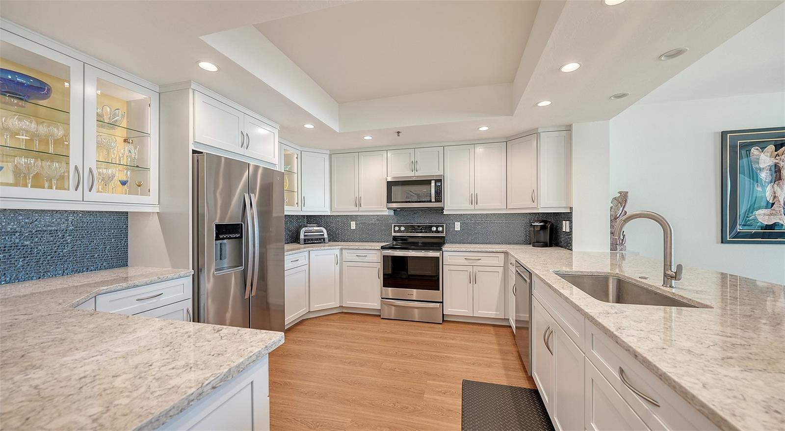 Experience Luxury Living in Downtown Sarasota! Rarely available, this completely remodeled, 3BR/2BA, 11th floor residence at the iconic BAY PLAZA offers breathtaking 270-degree views of Sarasota Bay, Marina Jack and the vibrant downtown landscape. With its prime location and stunning vistas, this home presents a truly elevated living experience. The residence has been recently upgraded with hurricane-rated impact-resistant windows and ceiling-to-floor glass doors ensuring energy efficiency and noise reduction. The open floor plan seamlessly connects the spacious living area with the dining area and a beautifully designed kitchen, featuring elegant quartz countertops for entertaining your guests and easy living options. Some of the features and improvements include: freshly painted interior, new glass shower doors in both bathrooms, new vanities and closet in main and guest bathroom, new ceiling fans and light fixtures, expanded storage with wine cooler in kitchen, new closet systems. FOUR PRIVATE BALCONIES give you unrivaled opportunities to enjoy Sarasota's stunning views, including prime vantage points for the city's famous Fourth of July and New Year's Eve celebrations. Residents of Bay Plaza enjoy an array of world class amenities including heated outdoor pool and spa, spacious shaded entertainment deck, outdoor grill and storage, fitness facility with sauna and steam rooms, EV charging stations. Be pampered by the excellent round-the-clock concierge staff, 24-7 on-site valet parking and 7-day on-staff maintenance. Upgrade to an unparalleled urban lifestyle with walking access to array of local attractions, renowned dining options, boutique shopping, the Bayfront Park, Marie Selby Botanical Gardens, Florida Studio Theater, Sarasota Opera House, Whole Foods and Saturday morning Farmers Market and an easy drive to St Armands Circle, Lido Key and some of the best beaches in Florida!