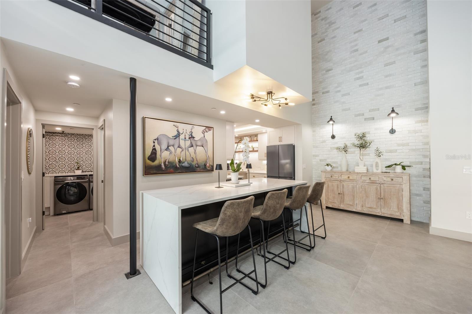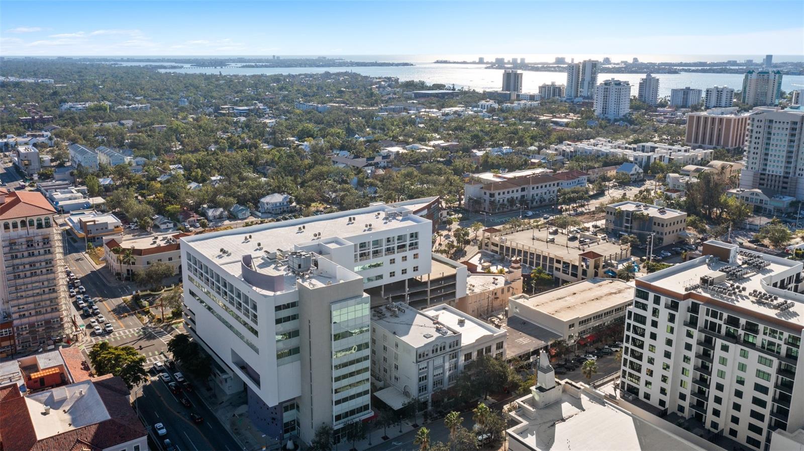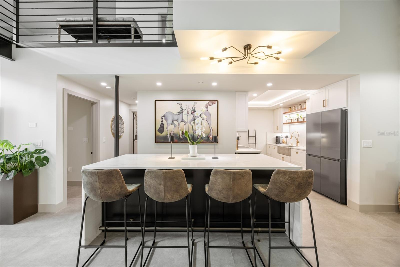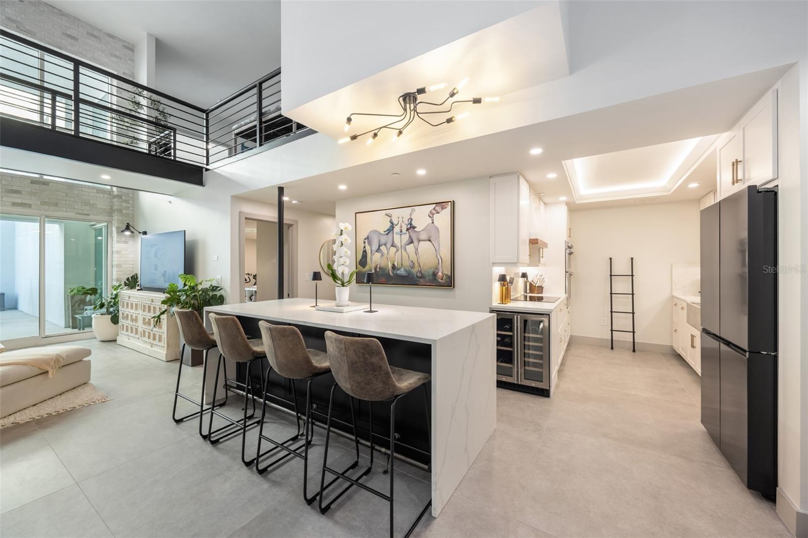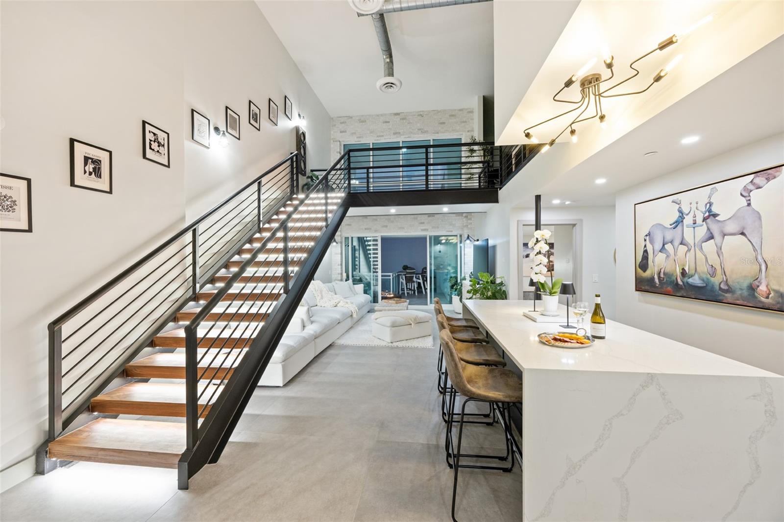 Exquisite Sarasota Penthouse with Prime Location and Unmatched Privacy! This fully renovated 3,117 sq. ft. penthouse offers luxurious living with breathtaking views of downtown Sarasota and the Gulf. Featuring soaring two-story ceilings, a dramatic walnut staircase, and custom Italian tile flooring, this home exudes sophistication at every turn. Expansive windows flood the space with natural light, creating an open, airy atmosphere throughout. Located just steps from Michelin-starred restaurants, the distinguished yacht club, and world-class cultural attractions, this home offers unparalleled convenience in one of Sarasota’s most coveted neighborhoods. The building is home to only 19 penthouse residences, ensuring peace, quiet, and maximum privacy. The chef-inspired kitchen boasts all new top-of-the-line appliances, including a double wall microwave-oven combo, induction cooktop, and a moveable, Calacatta Quartz waterfall island. The spa-like Primary suite features a hidden secret entry, a custom closet, and a luxurious bathroom designed for ultimate relaxation and privacy. Additional highlights include remote blackout shades, a backlit walnut staircase, and a private balcony perfect for entertaining. Two dedicated parking spaces, secure entry, and HOA fees covering; utilities, Concierge service, and with protected increases, adds convenience and peace of mind. With its exclusivity, prime location, and stunning design, this one-of-a-kind penthouse offers the ideal blend of luxury, lifestyle, and privacy. Experience the best of vibrant Sarasota—schedule a private tour today!