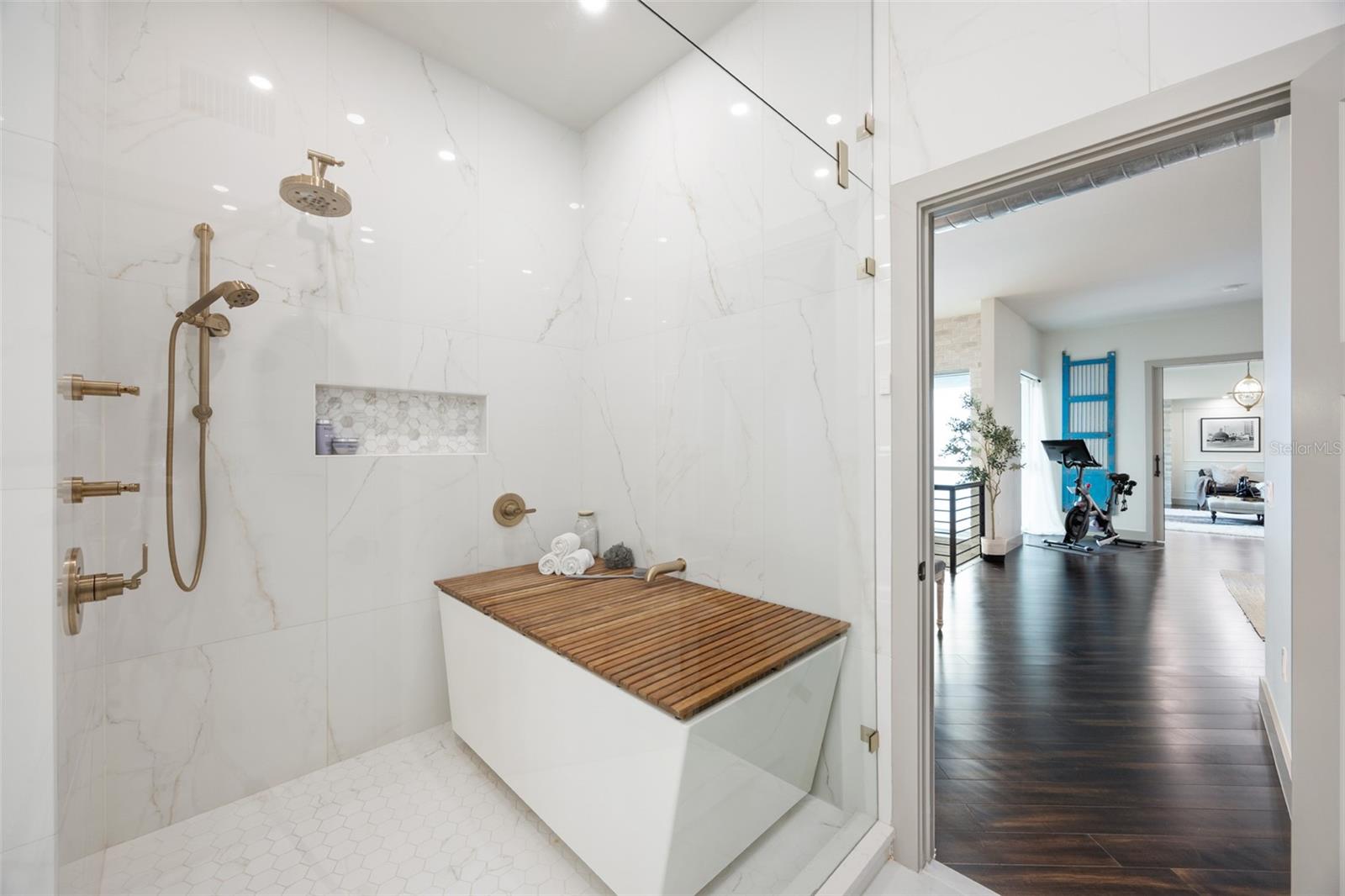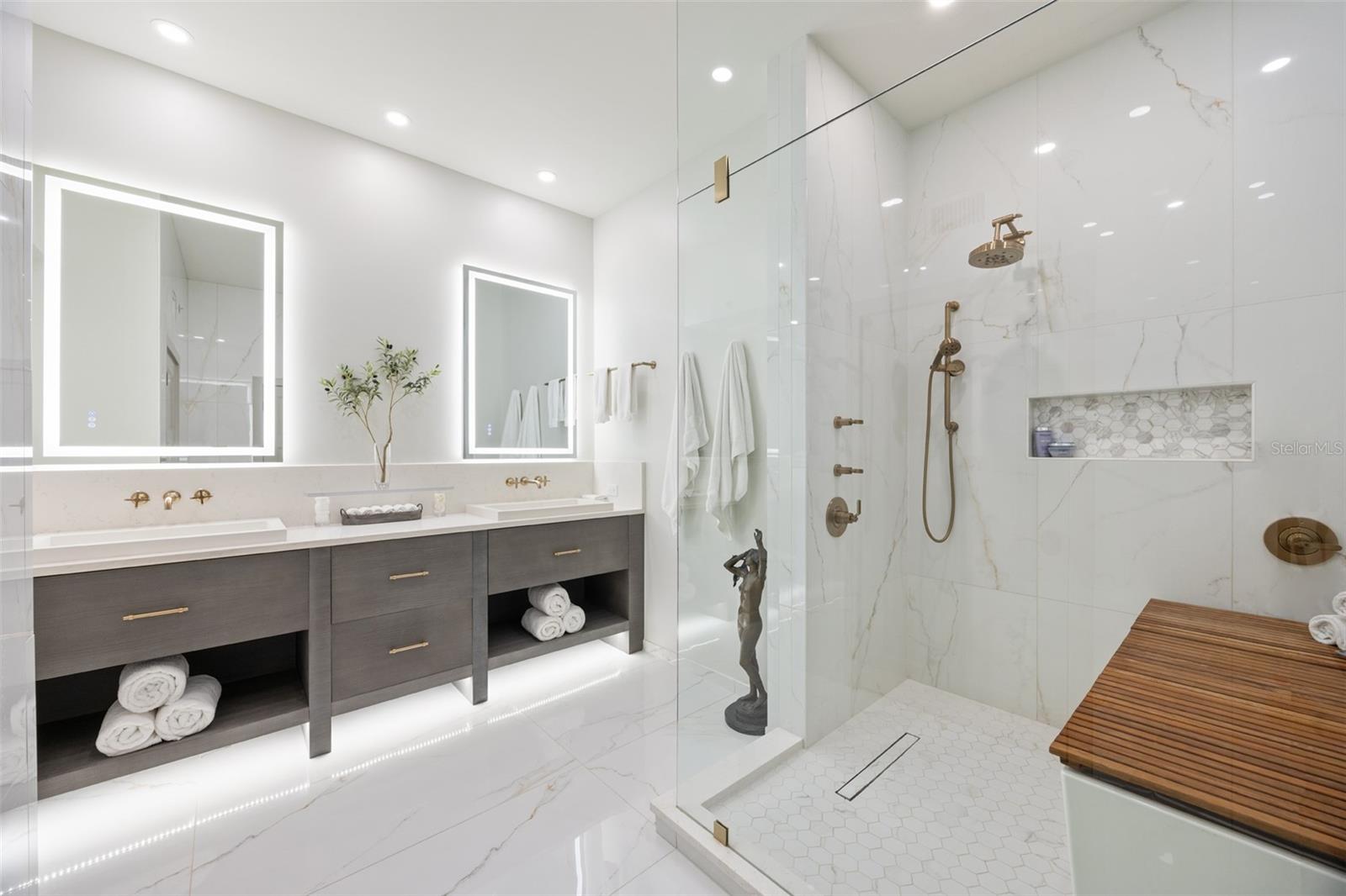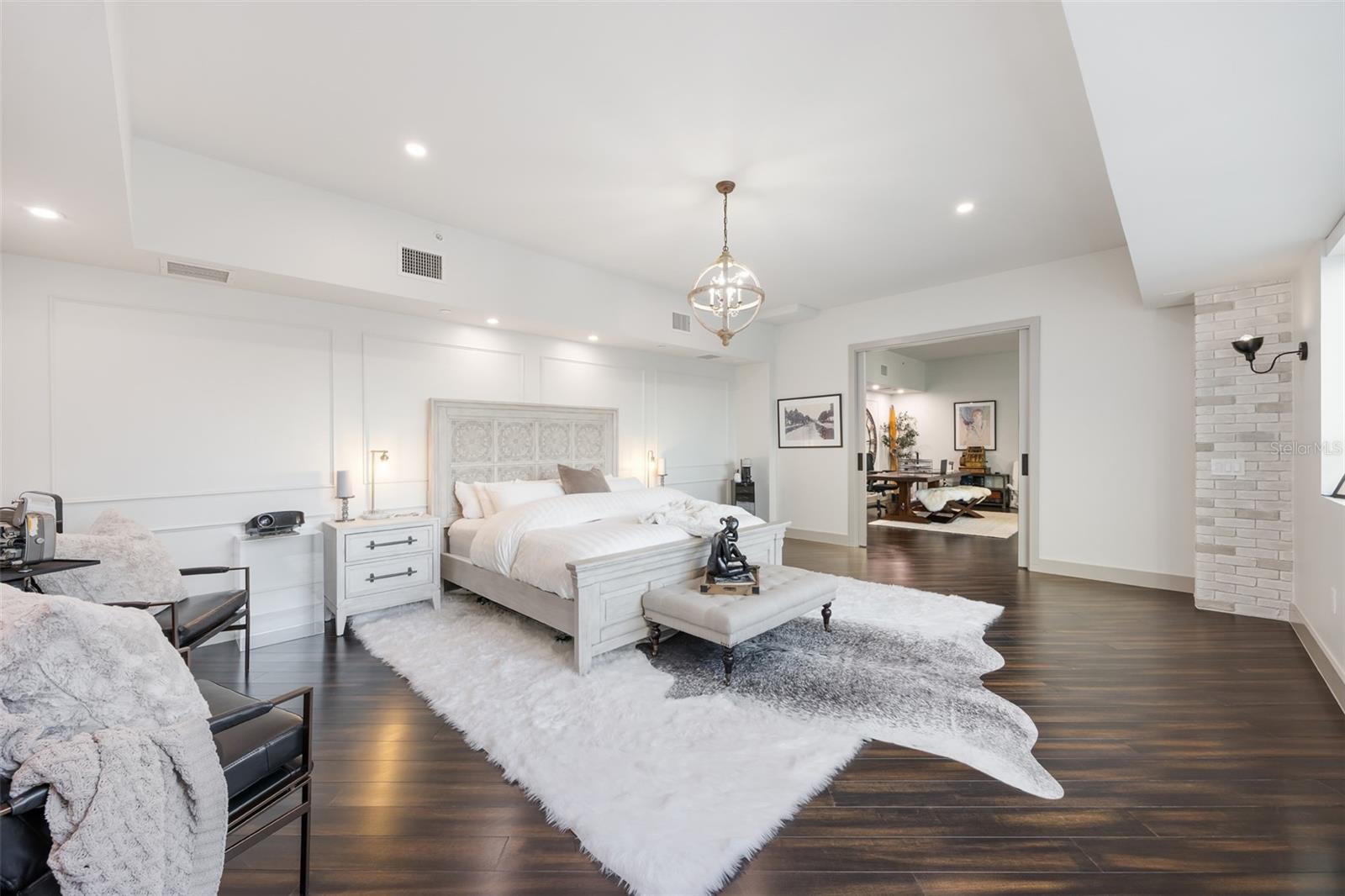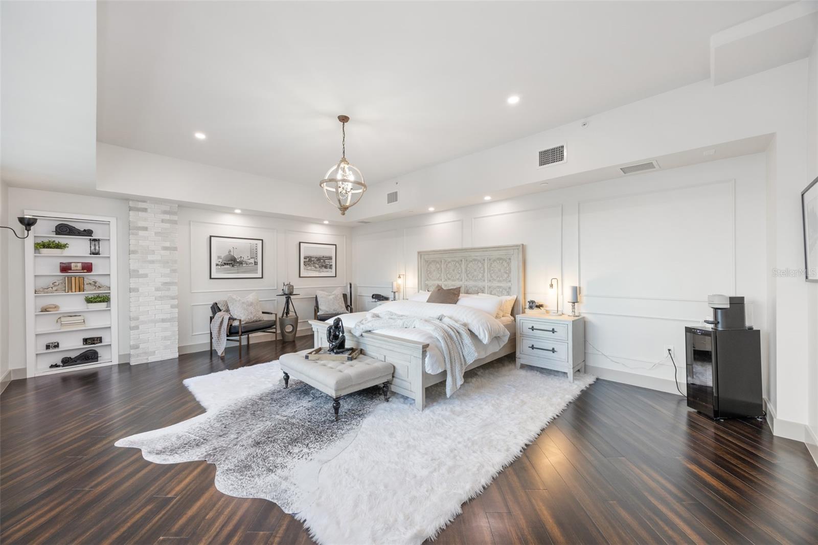 Exquisite Sarasota Penthouse with Prime Location and Unmatched Privacy! This fully renovated 3,117 sq. ft. penthouse offers luxurious living with breathtaking views of downtown Sarasota and the Gulf. Featuring soaring two-story ceilings, a dramatic walnut staircase, and custom Italian tile flooring, this home exudes sophistication at every turn. Expansive windows flood the space with natural light, creating an open, airy atmosphere throughout. Located just steps from Michelin-starred restaurants, the distinguished yacht club, and world-class cultural attractions, this home offers unparalleled convenience in one of Sarasota’s most coveted neighborhoods. The building is home to only 19 penthouse residences, ensuring peace, quiet, and maximum privacy. The chef-inspired kitchen boasts all new top-of-the-line appliances, including a double wall microwave-oven combo, induction cooktop, and a moveable, Calacatta Quartz waterfall island. The spa-like Primary suite features a hidden secret entry, a custom closet, and a luxurious bathroom designed for ultimate relaxation and privacy. Additional highlights include remote blackout shades, a backlit walnut staircase, and a private balcony perfect for entertaining. Two dedicated parking spaces, secure entry, and HOA fees covering; utilities, Concierge service, and with protected increases, adds convenience and peace of mind. With its exclusivity, prime location, and stunning design, this one-of-a-kind penthouse offers the ideal blend of luxury, lifestyle, and privacy. Experience the best of vibrant Sarasota—schedule a private tour today!