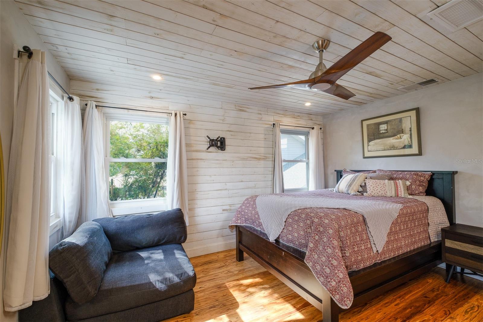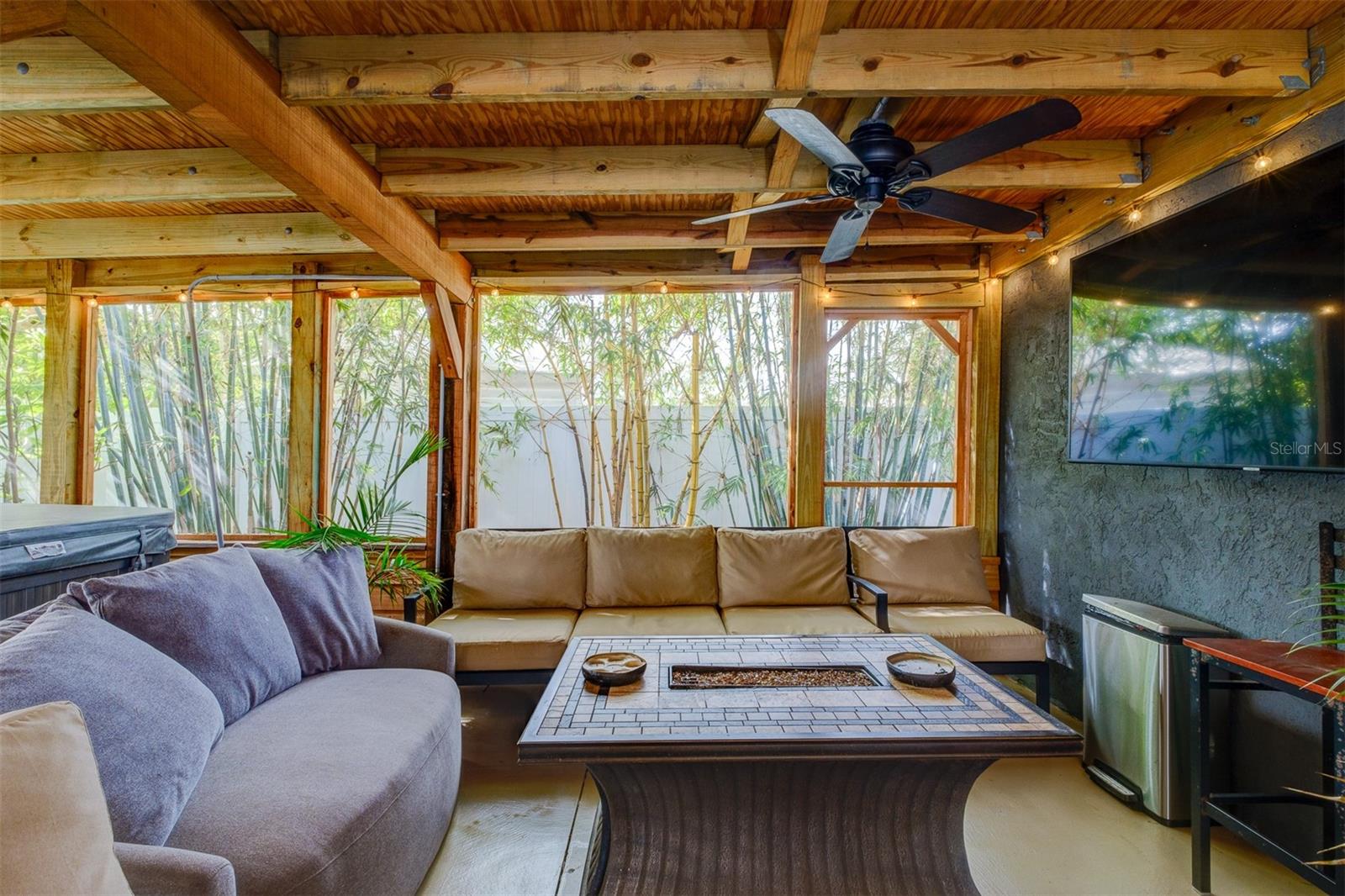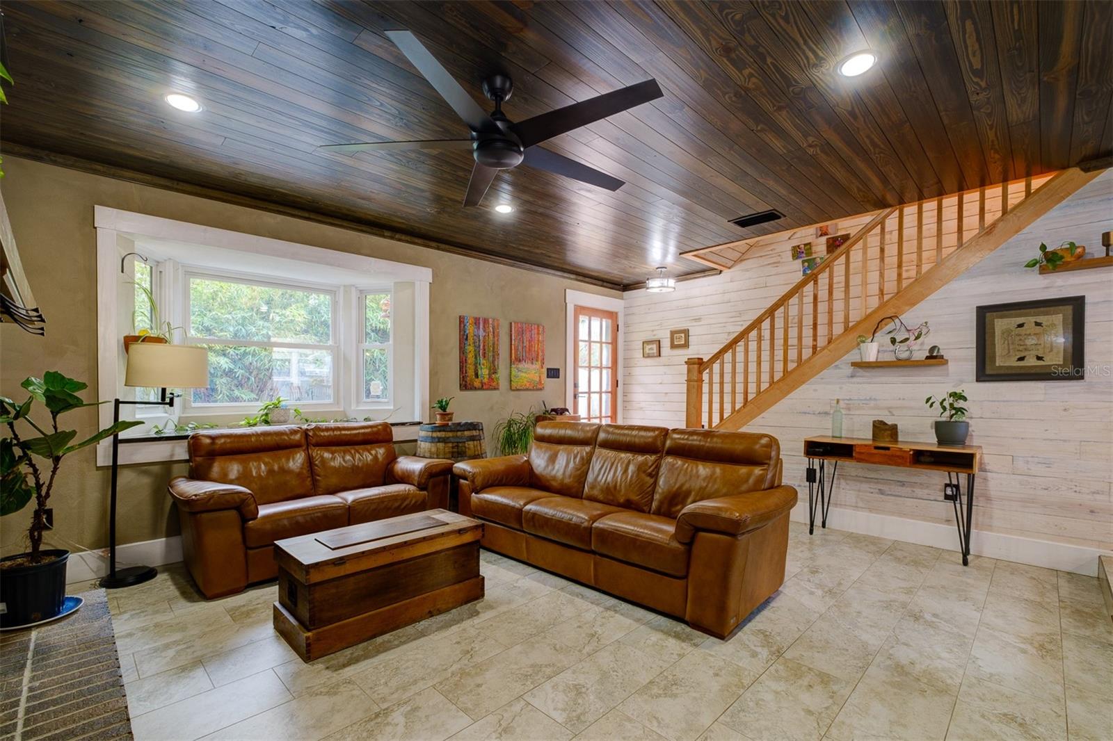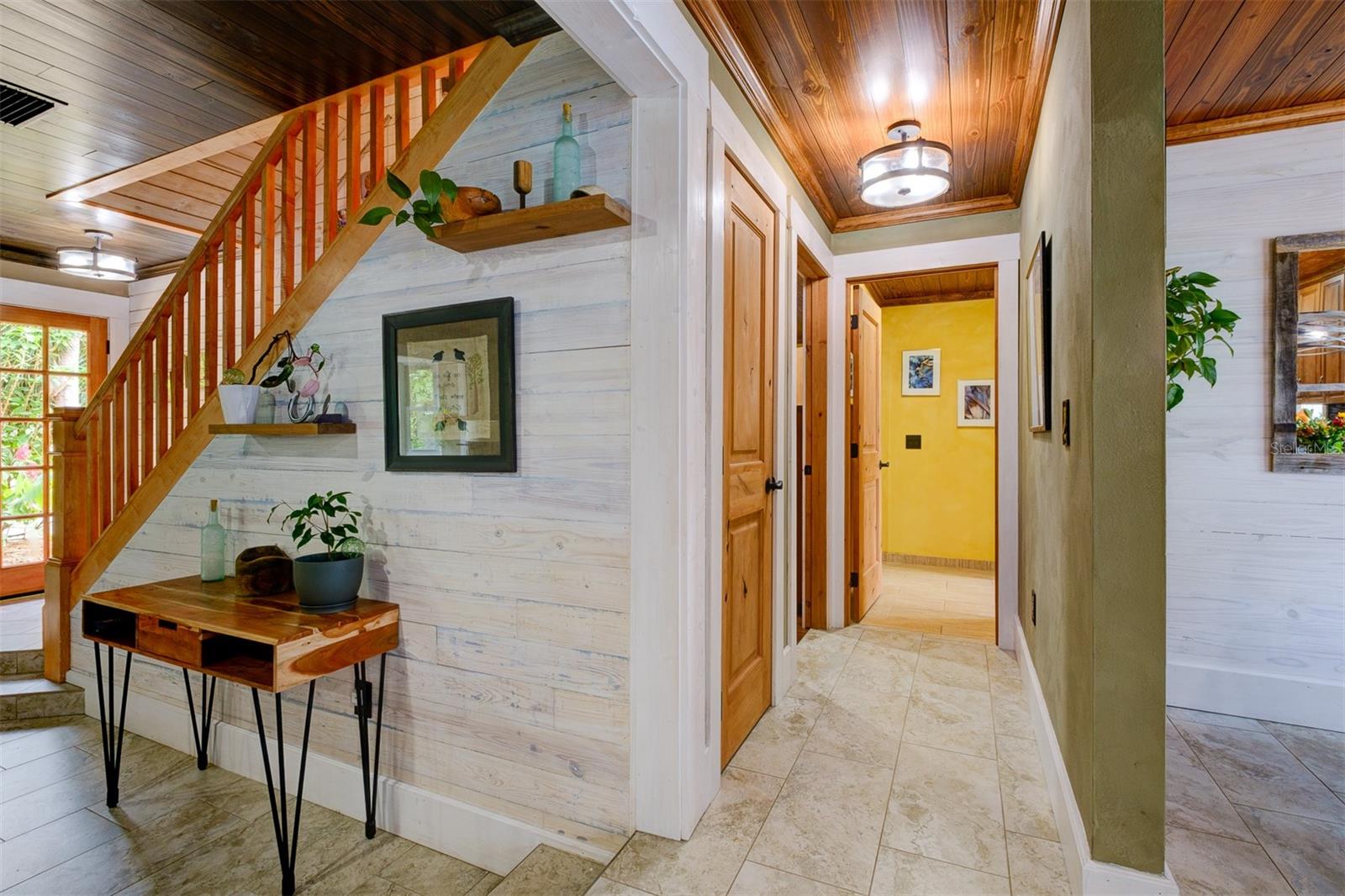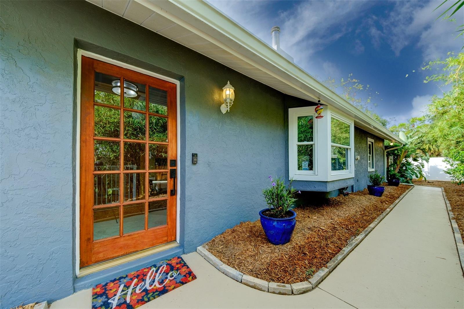 Nestled in the heart of Sarasota, this beautifully remodeled home offers a practical blend of elegance and convenience. With three large bedrooms, each featuring walk-in closets, and two tastefully updated bathrooms, this home is designed for comfort and functionality. The entire property has been thoughtfully upgraded, starting with the new painted metal roof installed in 2022, which comes with a 50-year warranty for peace of mind. Climate control is effortless with two new Trane air conditioning units and updated ductwork and insulated and impact glass windows, ensuring safety, energy efficiency, and quiet living. Inside, new wooden ceilings and accent walls add character to every room. The second floor features new hardwood bamboo flooring, while a beautifully crafted maple stairwell and handrails add to the appeal. Solid stained wood interior doors throughout the house provide a touch of understated luxury. The outdoor living space is just as inviting as the interior. A large screened-in area opens to an outdoor retreat complete with a hot tub, making it ideal for relaxing or entertaining. The entire yard is surrounded by a new privacy fence, creating a secluded oasis. The lush landscaping, featuring palms, bamboo, and fruit trees, adds to the ambiance. Practical upgrades include a new hot water heater and a gun safe discreetly built into the primary bedroom closet. This home is perfectly positioned for both convenience and recreation, located near Sarasota Memorial Hospital and directly across the street from Arlington Park. The park’s amenities include a public pool, tennis courts, playgrounds, basketball courts, and a picturesque walking trail, offering endless opportunities for outdoor enjoyment. Located in evacuation zone E, the property stays high and dry during flooding.