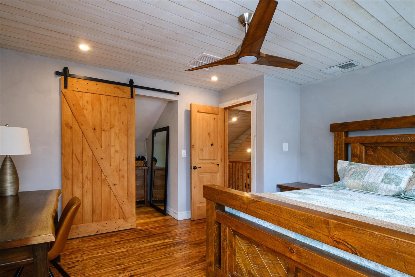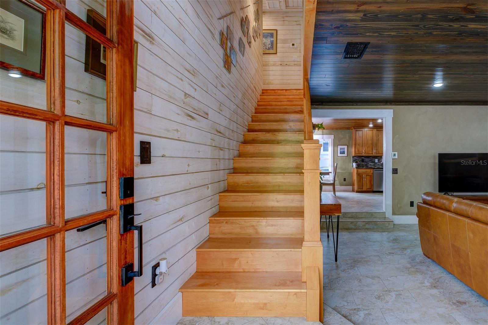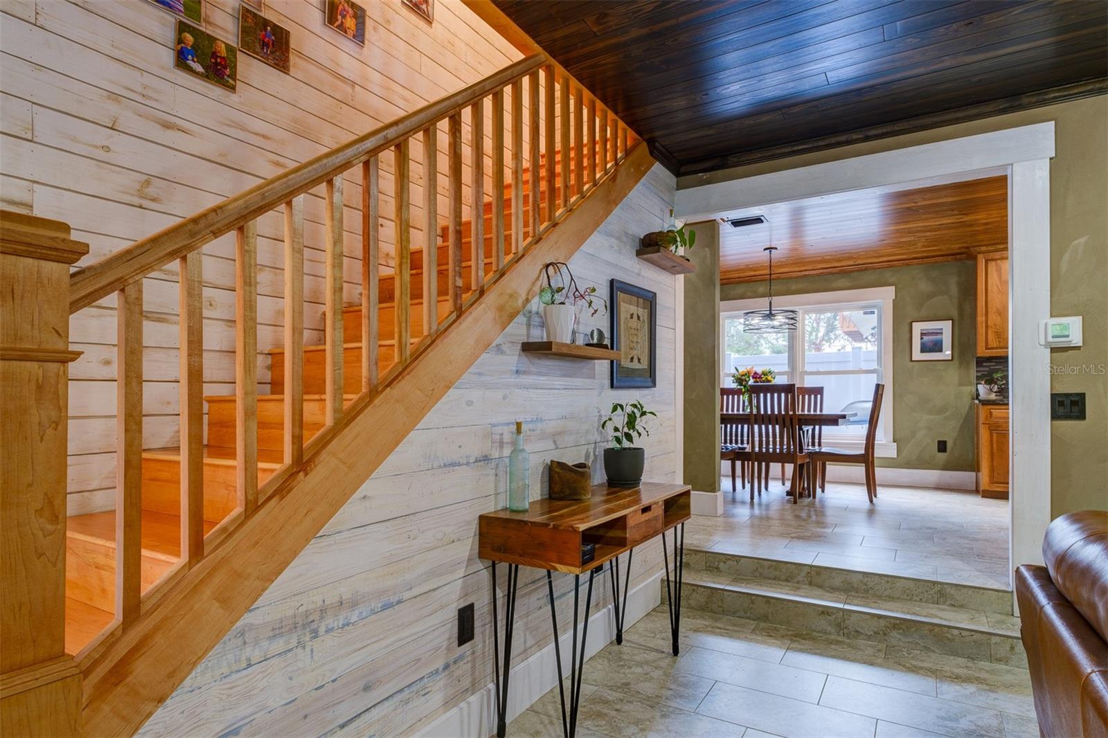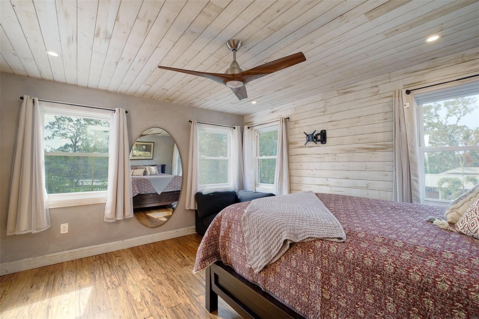 Nestled in the heart of Sarasota, this beautifully remodeled home offers a practical blend of elegance and convenience. With three large bedrooms, each featuring walk-in closets, and two tastefully updated bathrooms, this home is designed for comfort and functionality. The entire property has been thoughtfully upgraded, starting with the new painted metal roof installed in 2022, which comes with a 50-year warranty for peace of mind. Climate control is effortless with two new Trane air conditioning units and updated ductwork and insulated and impact glass windows, ensuring safety, energy efficiency, and quiet living. Inside, new wooden ceilings and accent walls add character to every room. The second floor features new hardwood bamboo flooring, while a beautifully crafted maple stairwell and handrails add to the appeal. Solid stained wood interior doors throughout the house provide a touch of understated luxury. The outdoor living space is just as inviting as the interior. A large screened-in area opens to an outdoor retreat complete with a hot tub, making it ideal for relaxing or entertaining. The entire yard is surrounded by a new privacy fence, creating a secluded oasis. The lush landscaping, featuring palms, bamboo, and fruit trees, adds to the ambiance. Practical upgrades include a new hot water heater and a gun safe discreetly built into the primary bedroom closet. This home is perfectly positioned for both convenience and recreation, located near Sarasota Memorial Hospital and directly across the street from Arlington Park. The park’s amenities include a public pool, tennis courts, playgrounds, basketball courts, and a picturesque walking trail, offering endless opportunities for outdoor enjoyment. Located in evacuation zone E, the property stays high and dry during flooding.