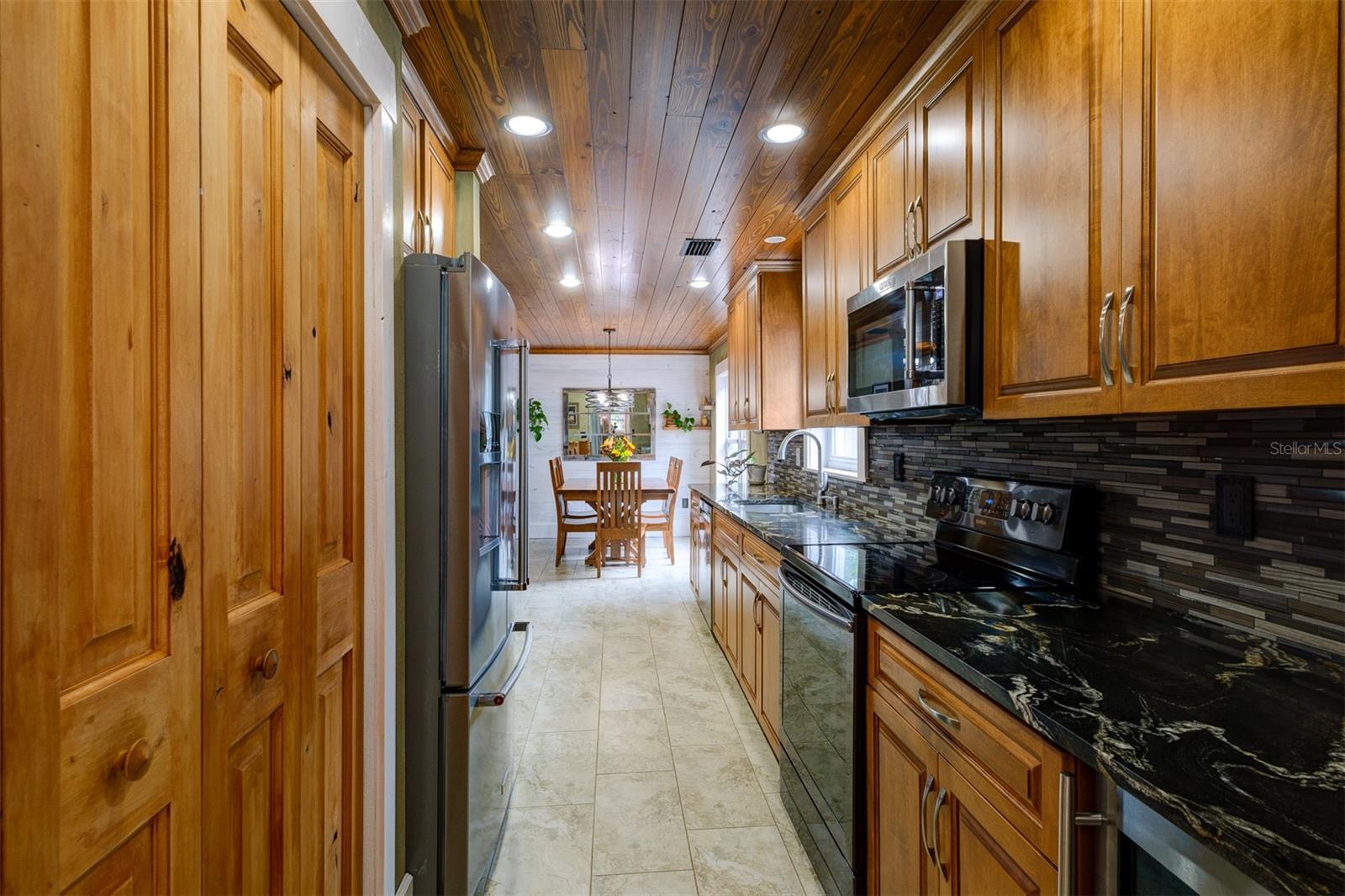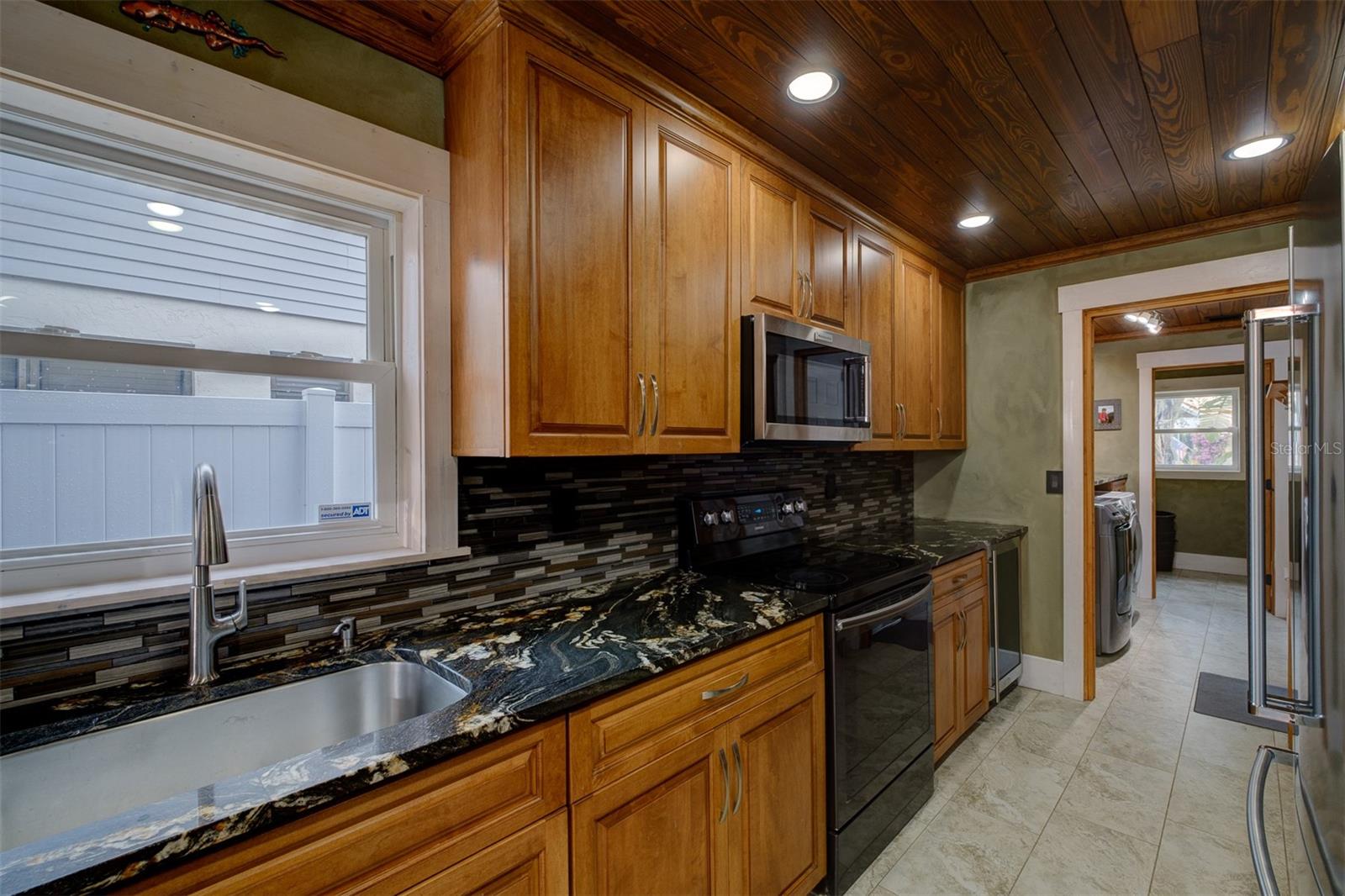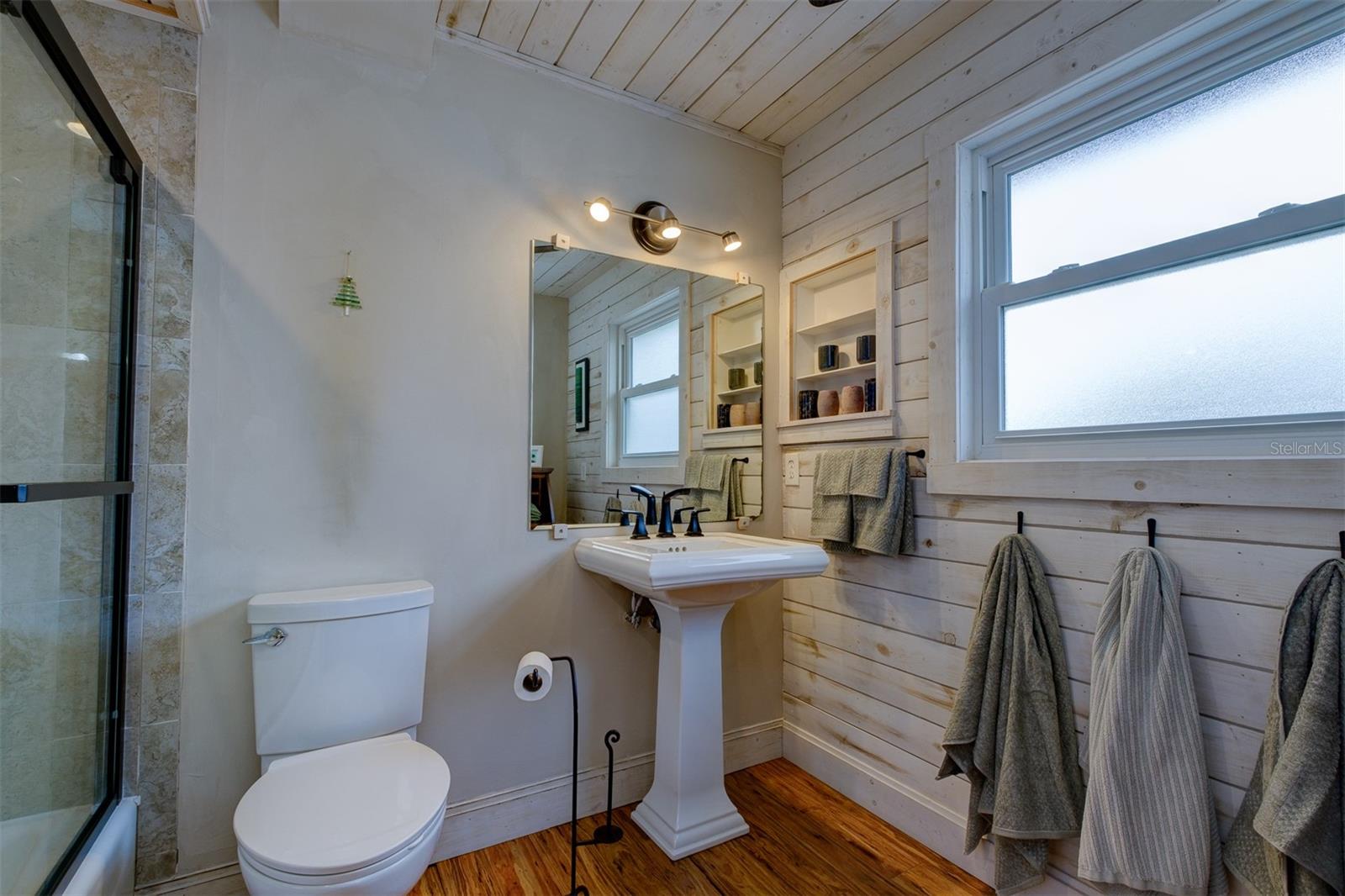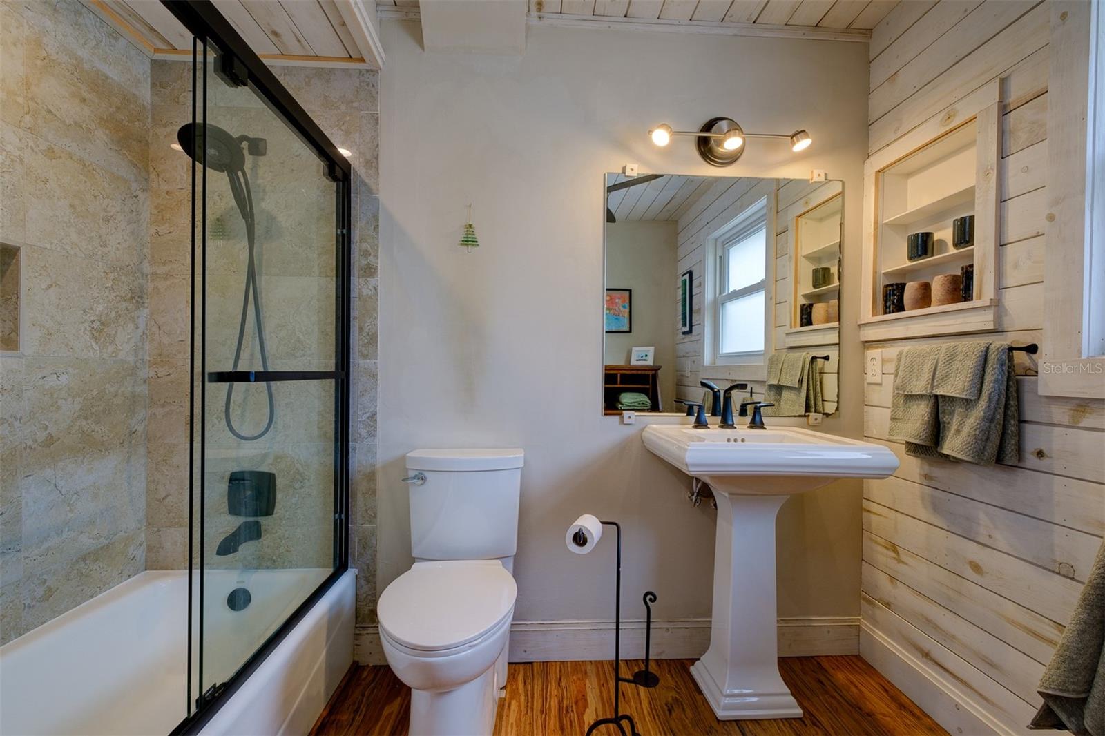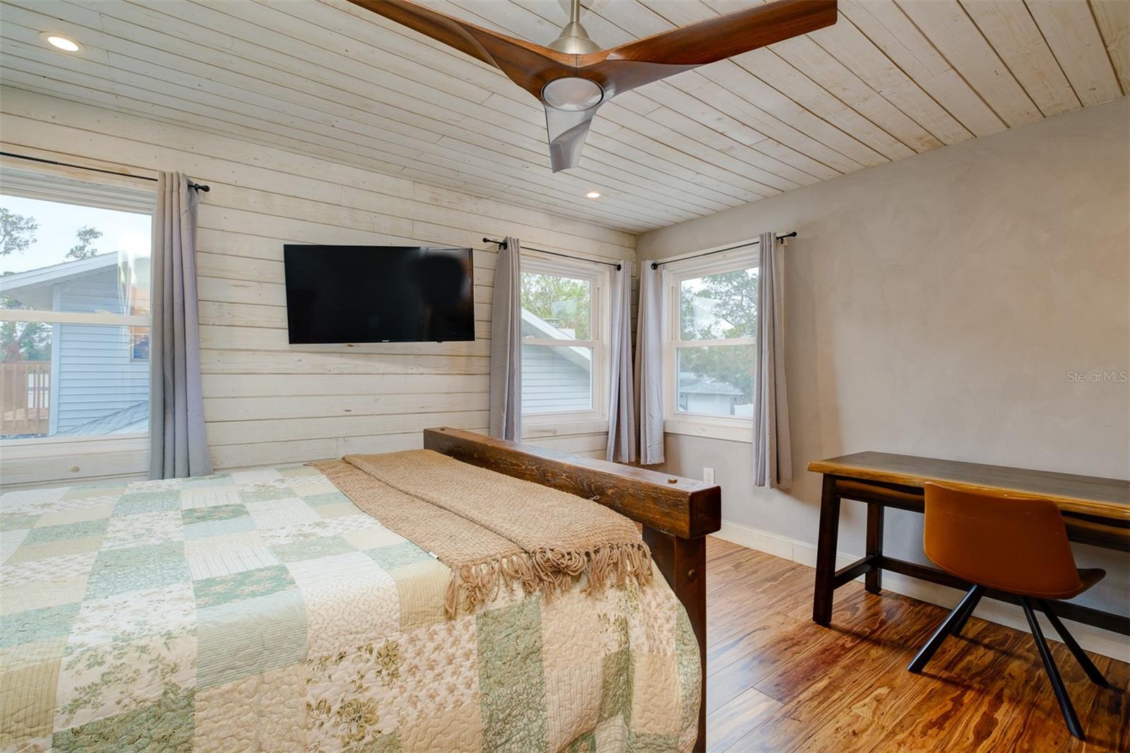 Nestled in the heart of Sarasota, this beautifully remodeled home offers a practical blend of elegance and convenience. With three large bedrooms, each featuring walk-in closets, and two tastefully updated bathrooms, this home is designed for comfort and functionality. The entire property has been thoughtfully upgraded, starting with the new painted metal roof installed in 2022, which comes with a 50-year warranty for peace of mind. Climate control is effortless with two new Trane air conditioning units and updated ductwork and insulated and impact glass windows, ensuring safety, energy efficiency, and quiet living. Inside, new wooden ceilings and accent walls add character to every room. The second floor features new hardwood bamboo flooring, while a beautifully crafted maple stairwell and handrails add to the appeal. Solid stained wood interior doors throughout the house provide a touch of understated luxury. The outdoor living space is just as inviting as the interior. A large screened-in area opens to an outdoor retreat complete with a hot tub, making it ideal for relaxing or entertaining. The entire yard is surrounded by a new privacy fence, creating a secluded oasis. The lush landscaping, featuring palms, bamboo, and fruit trees, adds to the ambiance. Practical upgrades include a new hot water heater and a gun safe discreetly built into the primary bedroom closet. This home is perfectly positioned for both convenience and recreation, located near Sarasota Memorial Hospital and directly across the street from Arlington Park. The park’s amenities include a public pool, tennis courts, playgrounds, basketball courts, and a picturesque walking trail, offering endless opportunities for outdoor enjoyment. Located in evacuation zone E, the property stays high and dry during flooding.