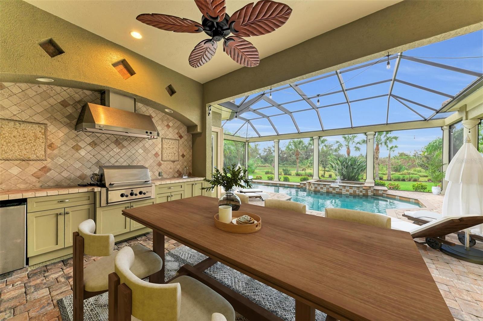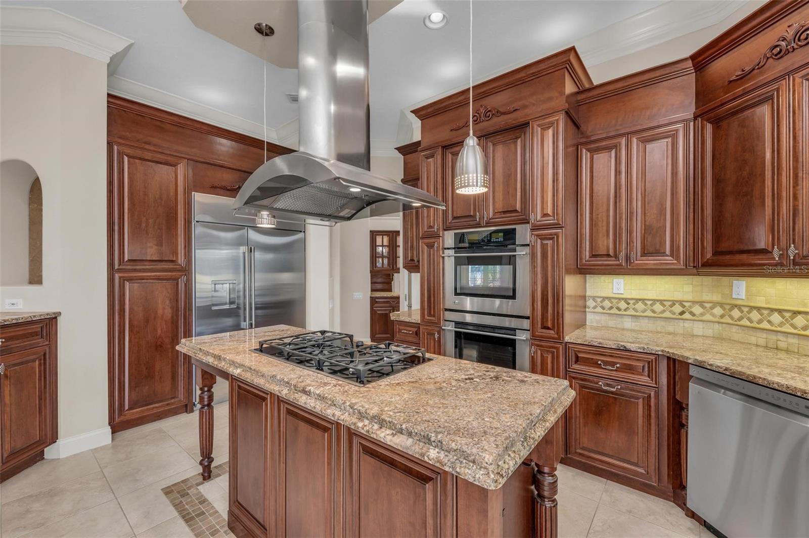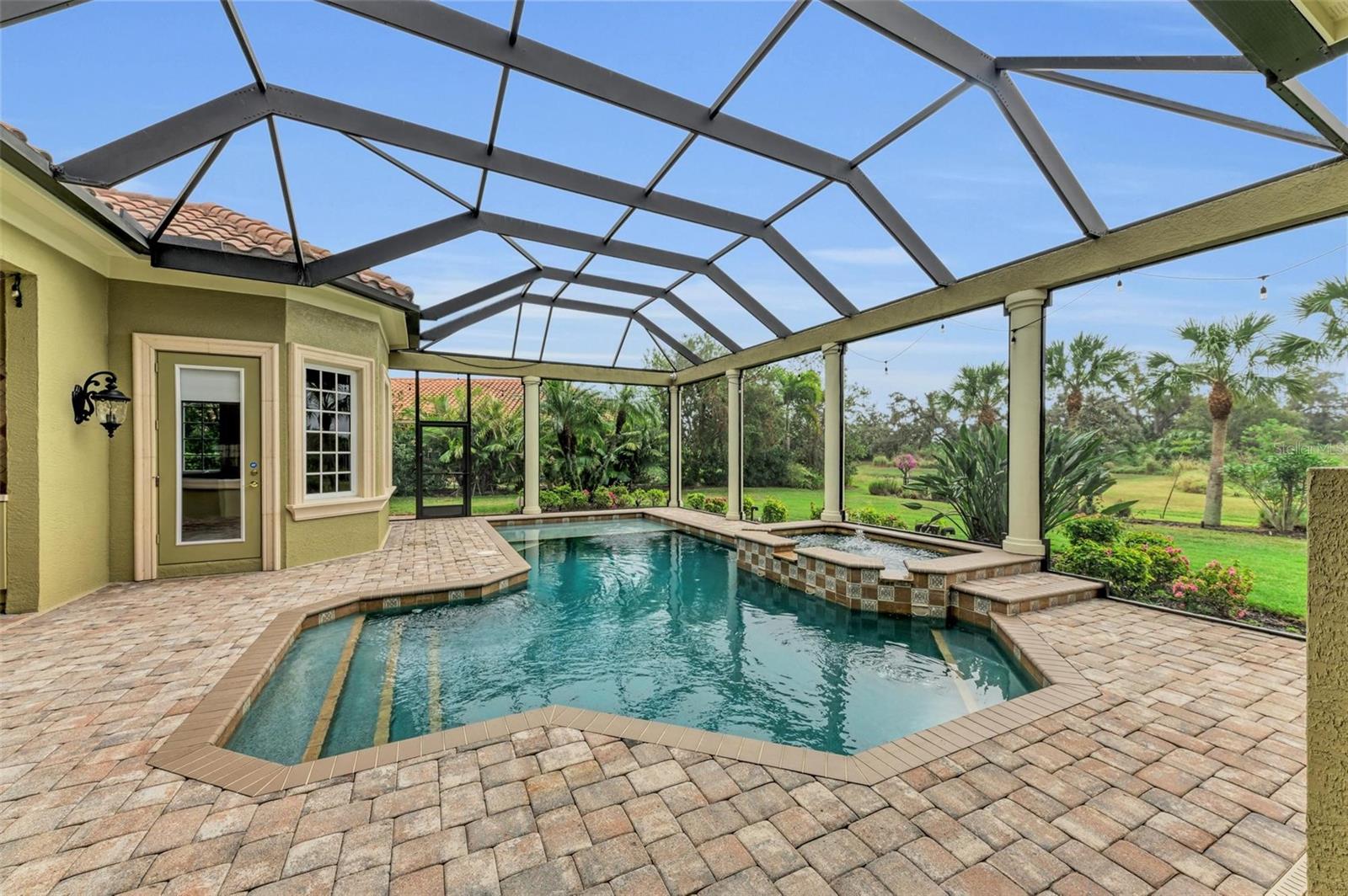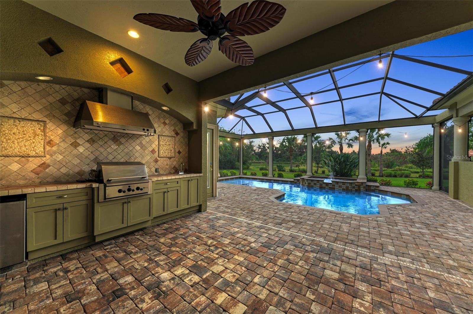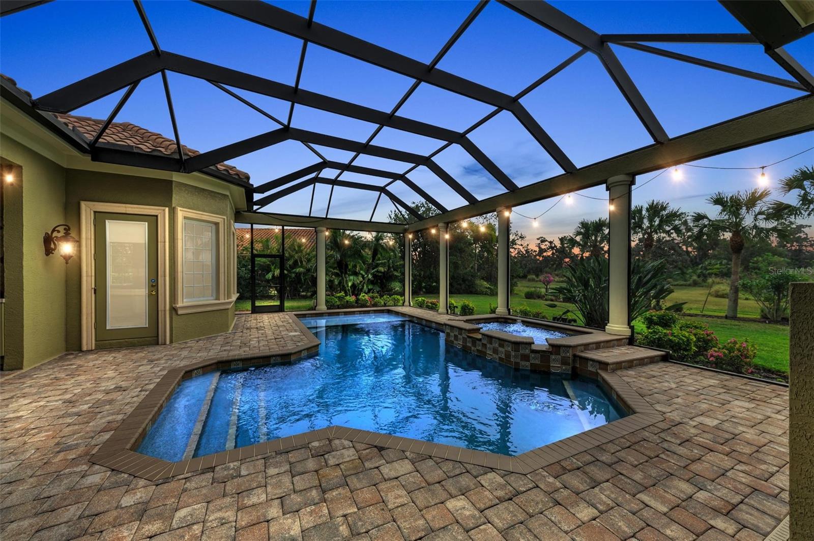 One or more photo(s) has been virtually staged. If you’re looking for a home that gives you room for everyone and everything, this estate home in The Founders Club is it. This custom-designed architectural masterpiece by renowned builder Todd Johnston is nestled on a coveted preserve lot within the exclusive, gated community of The Founders Club. This striking estate redefines Florida elegance with over 4,800 square feet of thoughtfully curated space. With 4 spacious bedrooms, 4.5 baths, a stately den, and a flexible floor plan, this home offers the perfect balance of grandeur and comfort. Step inside to soaring 12–14 ft. ceilings, intricate custom millwork, and expansive living areas that flow seamlessly for effortless entertaining and everyday living. The grand living room serves as the heart of the home, featuring a sculpted ceiling, a striking fireplace, and pocketing glass doors that open to a resort-style lanai—blending indoor and outdoor living in perfect harmony. Adjacent is the formal dining room and a private home office with French doors, ideal for work or quiet reflection. The chef’s kitchen is equipped with premium GE Monogram appliances, including a 48” industrial refrigerator (2023), granite countertops, True Blue solid wood cabinetry, and an oversized center island. A wet bar with a built-in refrigerator and desk nook enhances the home’s functionality and charm. Retreat to the tranquil first-floor primary suite, where bay windows overlook lush preserve views. Indulge in a spa-like bath with a whirlpool tub, walk-in shower, dual vanities, and two custom walk-in closets. A private atrium adds a serene, Tuscan-inspired escape. The main level also includes a generous Mother-in-Law suite with a private entrance, en-suite bath, walk-in closet, and space for a kitchenette—ideal for multigenerational living. A secondary master suite offers pool access and stunning preserve views, while the upstairs family room serves as a versatile retreat complete with a billiard table, wet bar, and balcony overlooking the pool and preserve. A spacious guest suite with full bath ensures comfort and privacy for visitors. Step outside to your private paradise: a screened lanai with impact-rated enclosures, a heated resort-style pool and spa, an outdoor kitchen with a GE Monogram natural gas grill and mini fridge, plus a cozy fireplace lounge—all surrounded by professionally designed LED landscape lighting for nighttime ambiance. This smart home offers advanced features including remote spa control, a Kohler whole-house generator (2022), ADT security system, reverse osmosis water system, and three zoned Trane AC units (2021). Natural gas fuels the pool heater, kitchen appliances, and water heaters for energy-efficient living. Located within The Founders Club—a prestigious community celebrated for its natural beauty, golf course, and 100+ acres of preserved wetlands, lakes, and oak hammocks—residents enjoy exclusive access to world-class golf and social amenities. Designed with precision, style, and comfort in mind, this exceptional residence is a rare opportunity to experience true Florida luxury. Explore the Matterport 3D tour and listing video to fully appreciate the elegance and craftsmanship of this home. Lowest Per Square Foot Home in The Founders Club (Listed, Pending, or Sold - last 6 months)!!! Sellers are motivated and willing to entertain all reasonable offers.