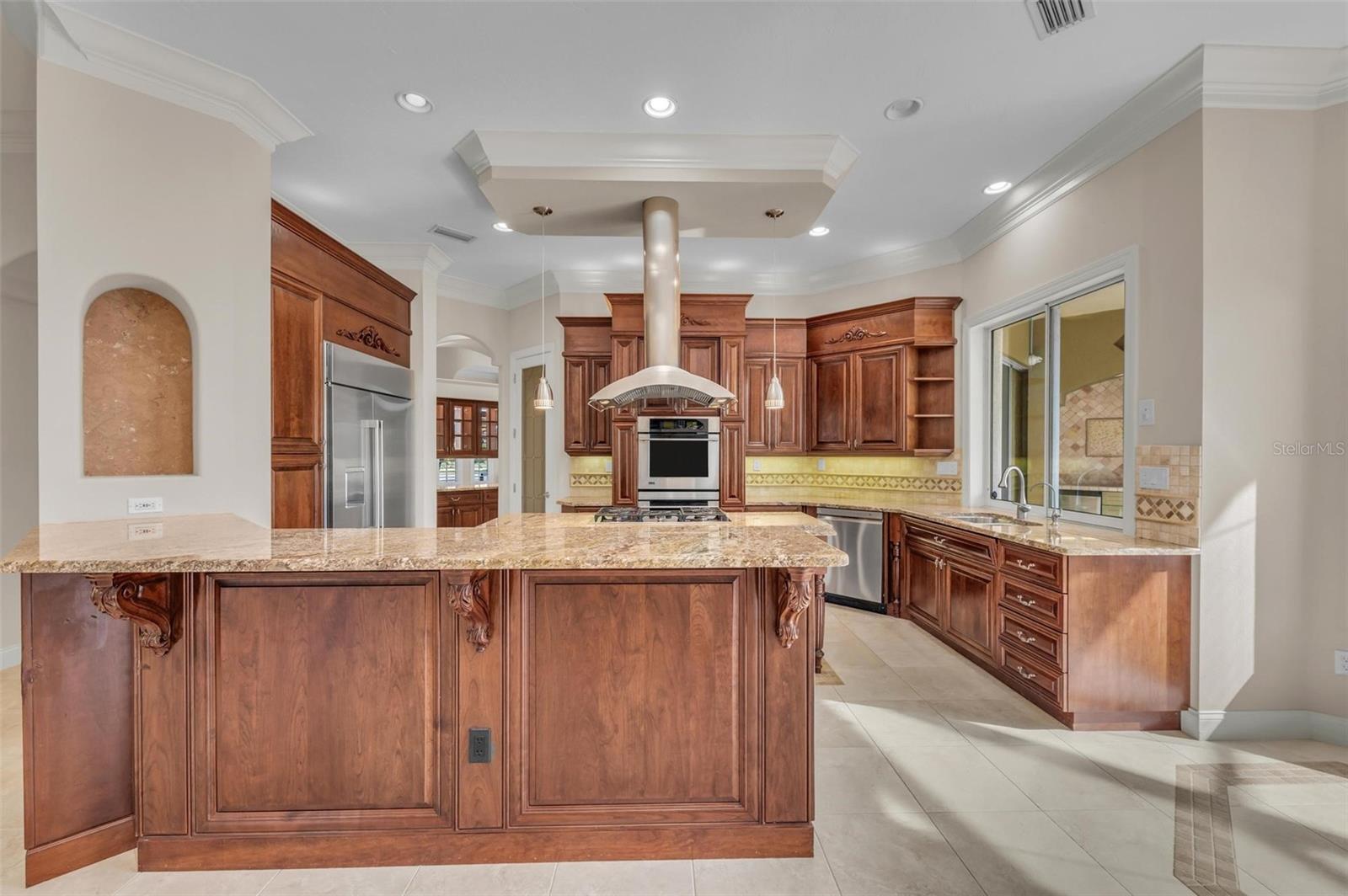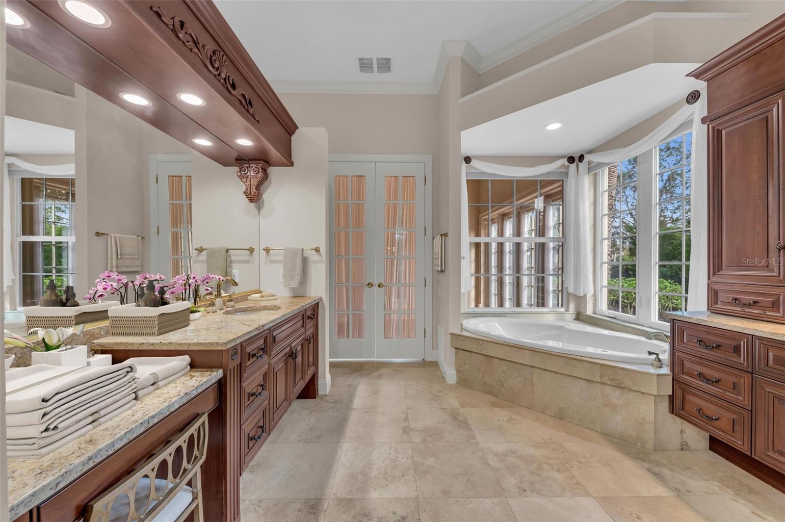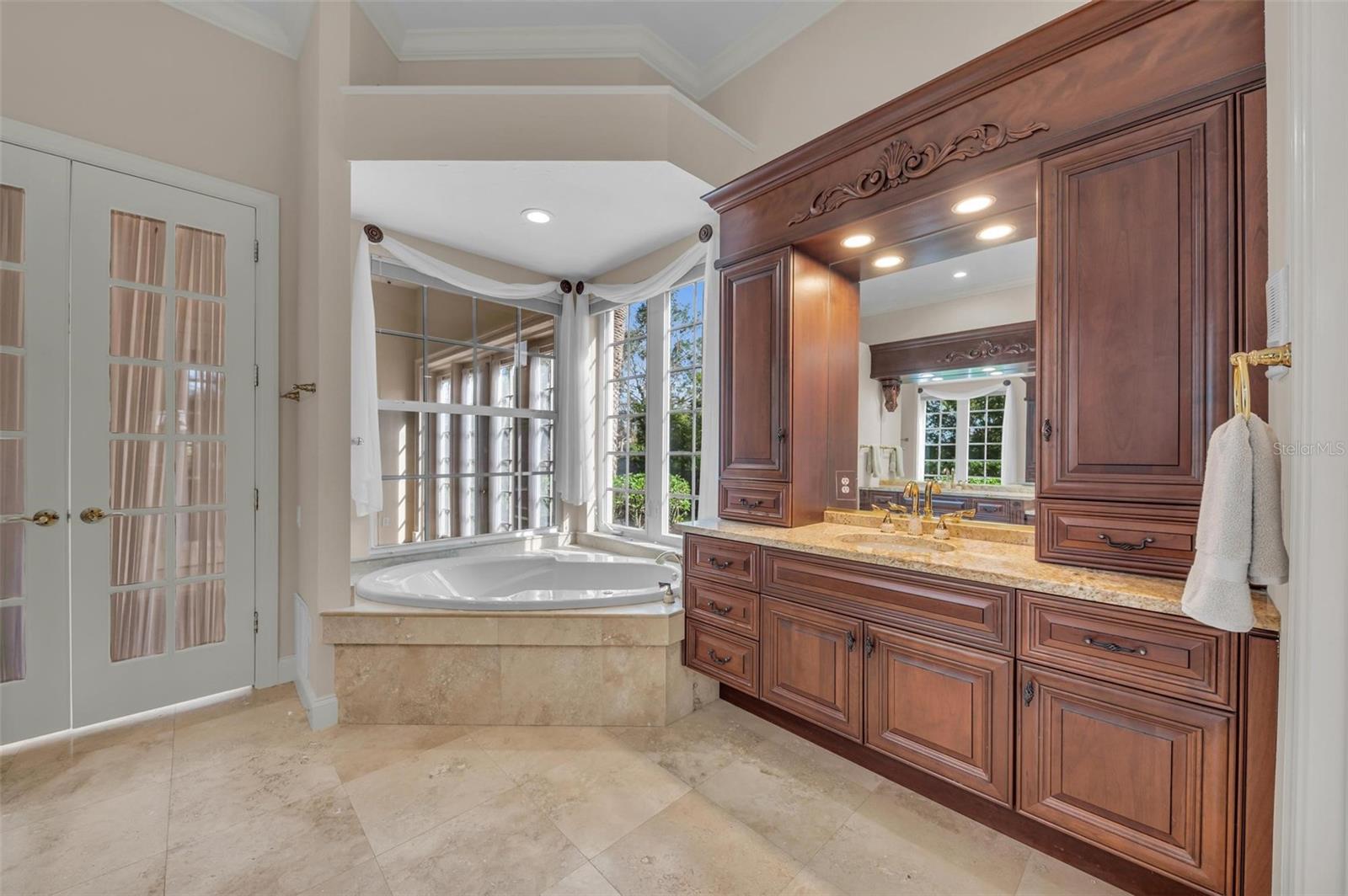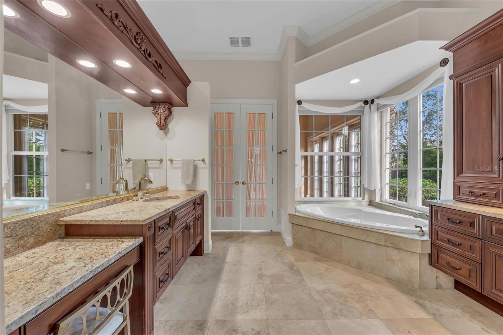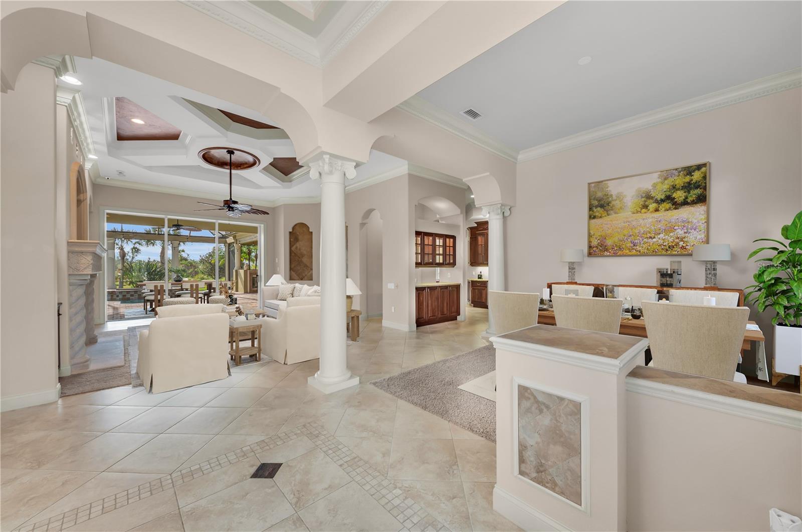 One or more photo(s) has been virtually staged. If you’re looking for a home that gives you room for everyone and everything, this estate home in The Founders Club is it. This custom-designed architectural masterpiece by renowned builder Todd Johnston is nestled on a coveted preserve lot within the exclusive, gated community of The Founders Club. This striking estate redefines Florida elegance with over 4,800 square feet of thoughtfully curated space. With 4 spacious bedrooms, 4.5 baths, a stately den, and a flexible floor plan, this home offers the perfect balance of grandeur and comfort. Step inside to soaring 12–14 ft. ceilings, intricate custom millwork, and expansive living areas that flow seamlessly for effortless entertaining and everyday living. The grand living room serves as the heart of the home, featuring a sculpted ceiling, a striking fireplace, and pocketing glass doors that open to a resort-style lanai—blending indoor and outdoor living in perfect harmony. Adjacent is the formal dining room and a private home office with French doors, ideal for work or quiet reflection. The chef’s kitchen is equipped with premium GE Monogram appliances, including a 48” industrial refrigerator (2023), granite countertops, True Blue solid wood cabinetry, and an oversized center island. A wet bar with a built-in refrigerator and desk nook enhances the home’s functionality and charm. Retreat to the tranquil first-floor primary suite, where bay windows overlook lush preserve views. Indulge in a spa-like bath with a whirlpool tub, walk-in shower, dual vanities, and two custom walk-in closets. A private atrium adds a serene, Tuscan-inspired escape. The main level also includes a generous Mother-in-Law suite with a private entrance, en-suite bath, walk-in closet, and space for a kitchenette—ideal for multigenerational living. A secondary master suite offers pool access and stunning preserve views, while the upstairs family room serves as a versatile retreat complete with a billiard table, wet bar, and balcony overlooking the pool and preserve. A spacious guest suite with full bath ensures comfort and privacy for visitors. Step outside to your private paradise: a screened lanai with impact-rated enclosures, a heated resort-style pool and spa, an outdoor kitchen with a GE Monogram natural gas grill and mini fridge, plus a cozy fireplace lounge—all surrounded by professionally designed LED landscape lighting for nighttime ambiance. This smart home offers advanced features including remote spa control, a Kohler whole-house generator (2022), ADT security system, reverse osmosis water system, and three zoned Trane AC units (2021). Natural gas fuels the pool heater, kitchen appliances, and water heaters for energy-efficient living. Located within The Founders Club—a prestigious community celebrated for its natural beauty, golf course, and 100+ acres of preserved wetlands, lakes, and oak hammocks—residents enjoy exclusive access to world-class golf and social amenities. Designed with precision, style, and comfort in mind, this exceptional residence is a rare opportunity to experience true Florida luxury. Explore the Matterport 3D tour and listing video to fully appreciate the elegance and craftsmanship of this home. Lowest Per Square Foot Home in The Founders Club (Listed, Pending, or Sold - last 6 months)!!! Sellers are motivated and willing to entertain all reasonable offers.