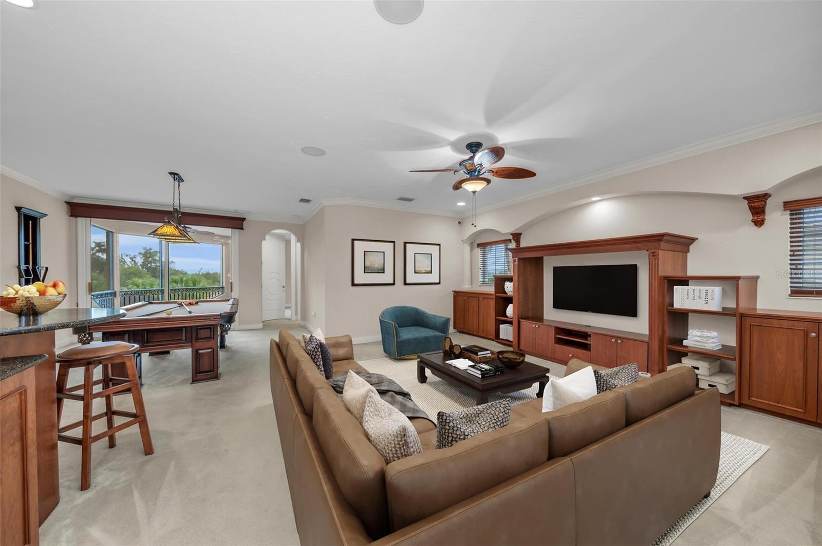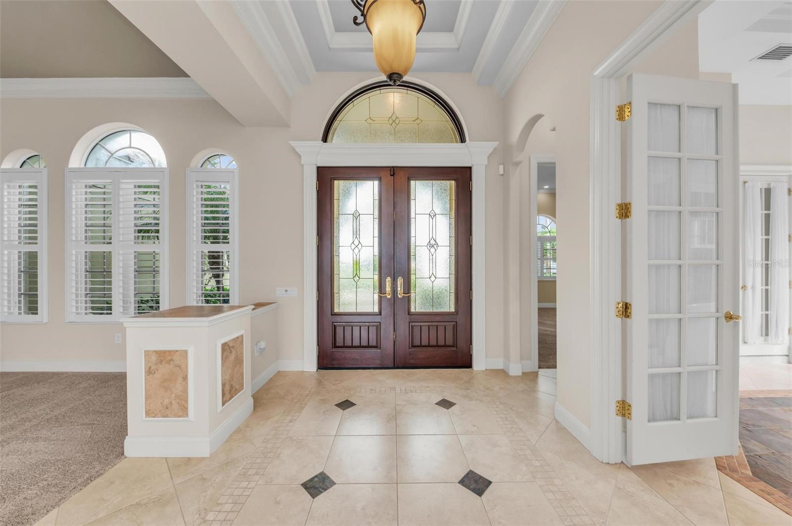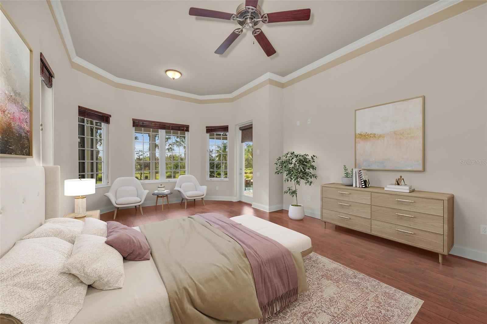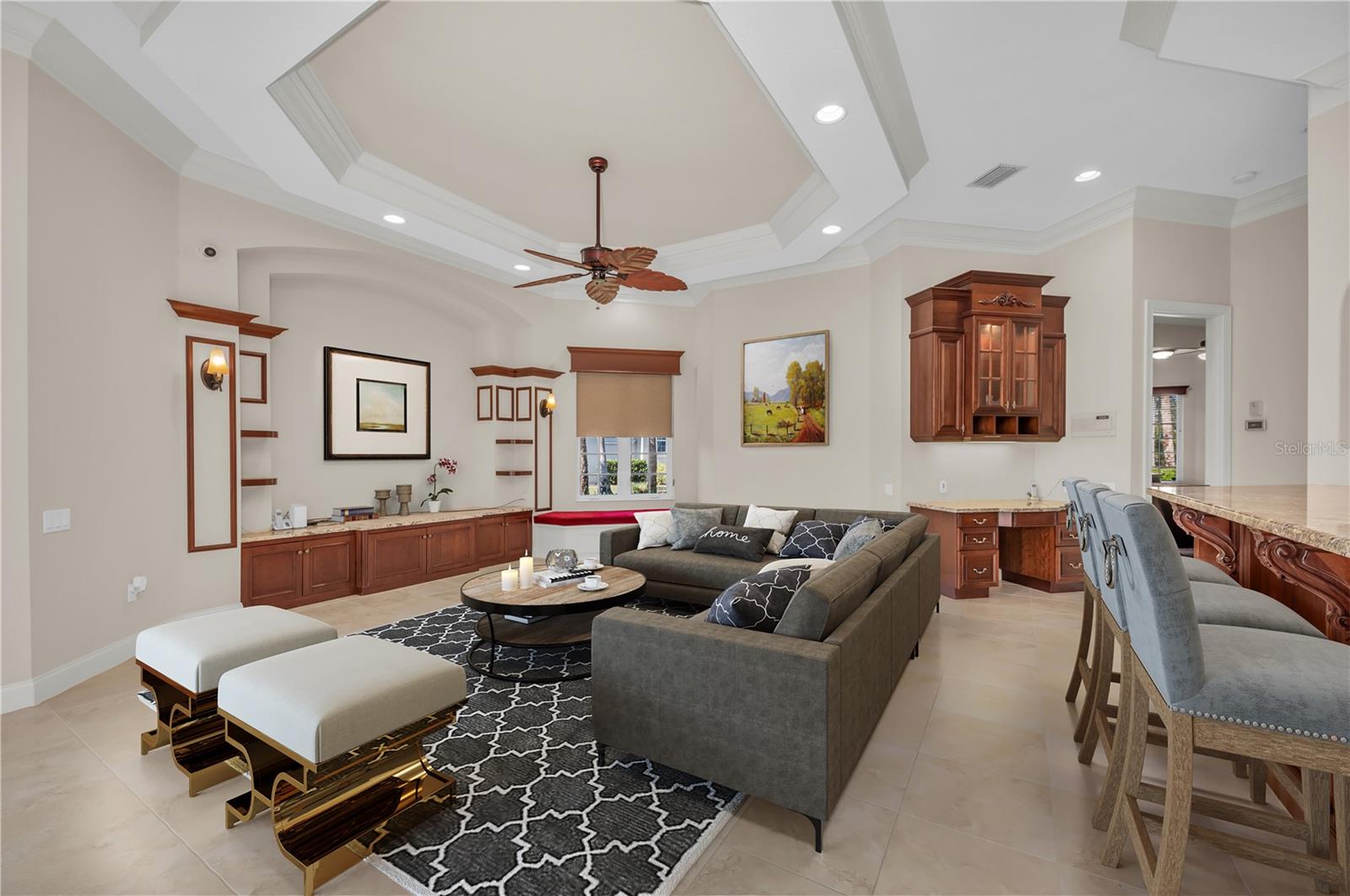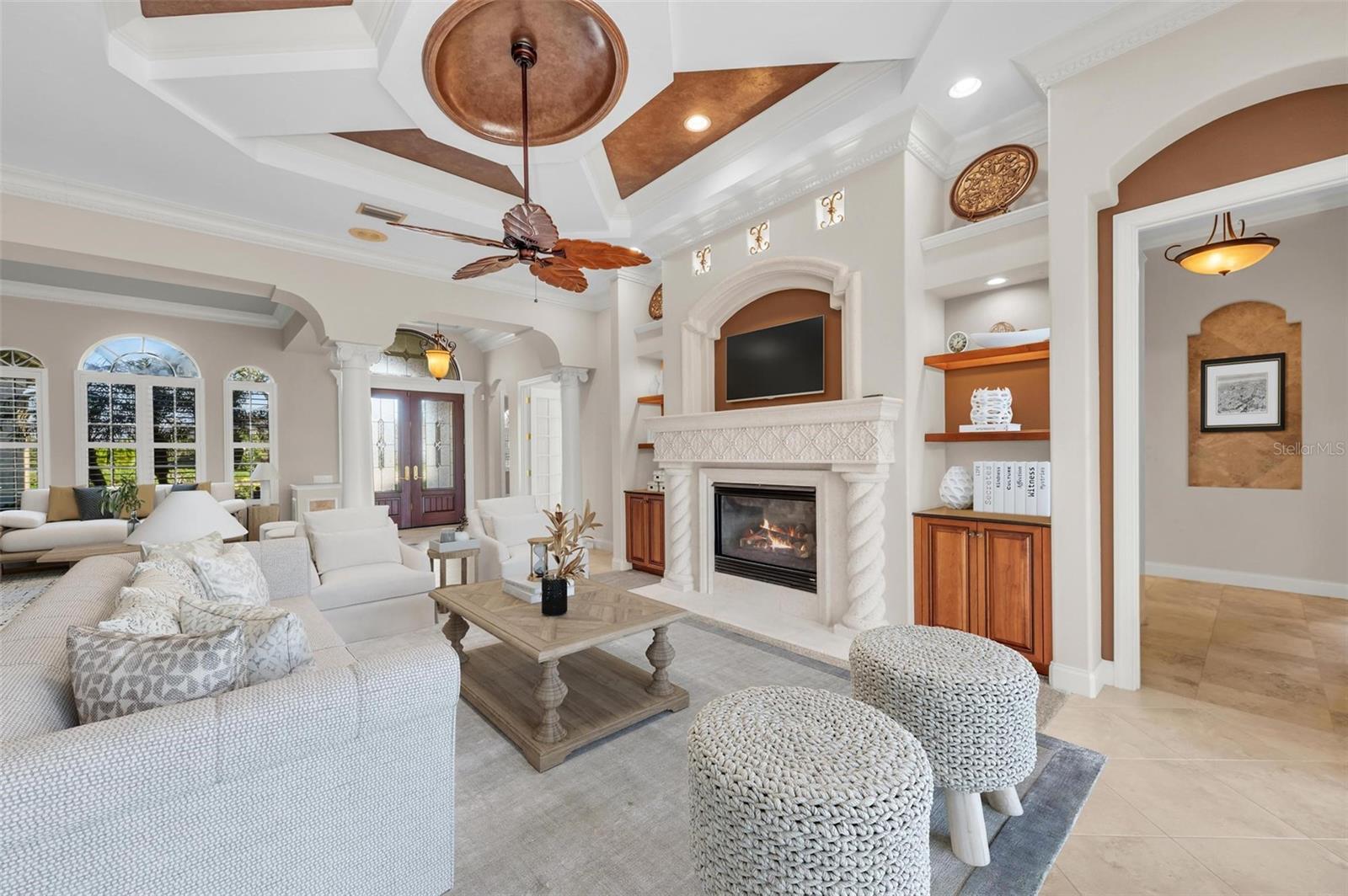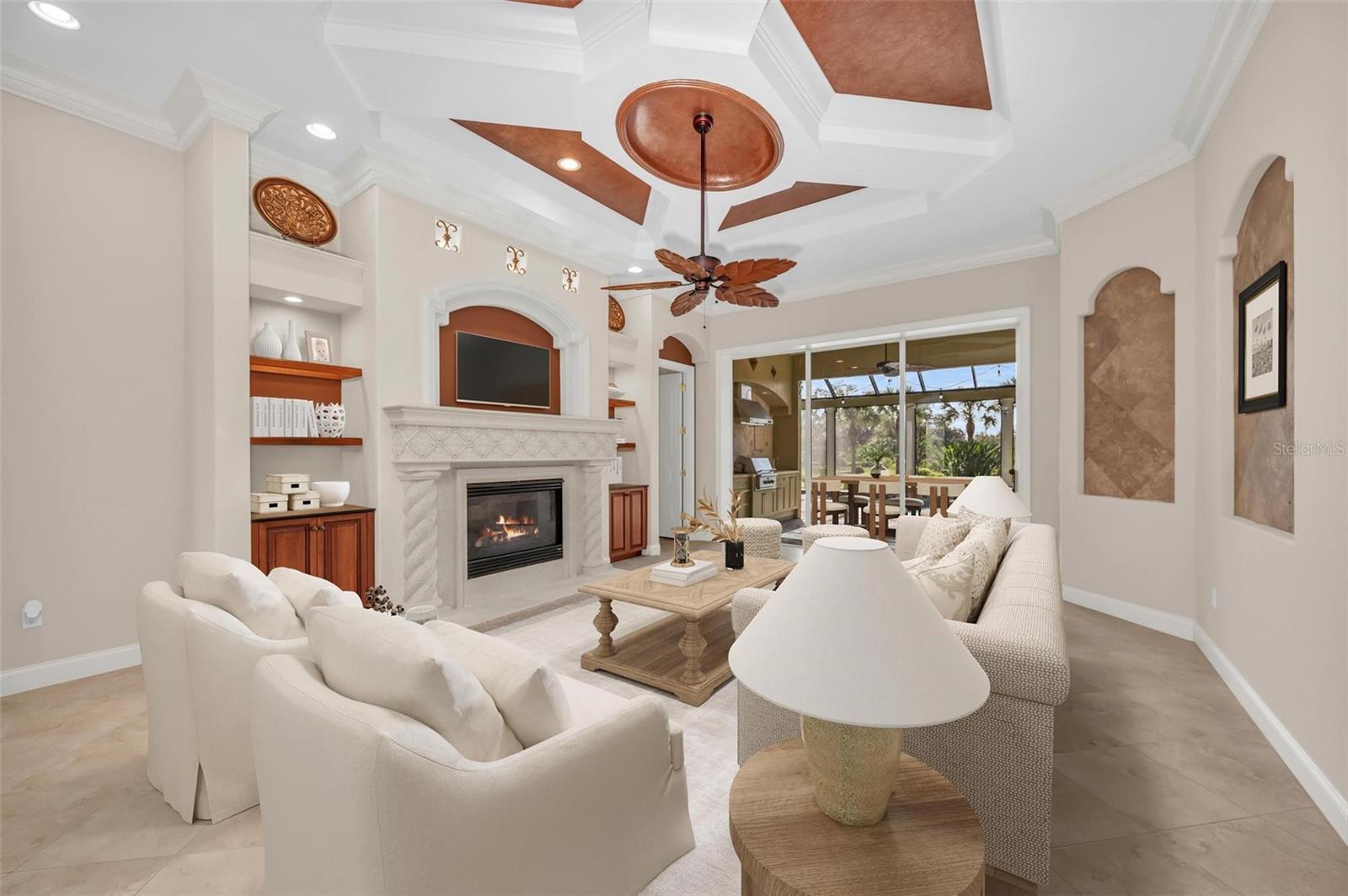 One or more photo(s) has been virtually staged. If you’re looking for a home that gives you room for everyone and everything, this estate home in The Founders Club is it. This custom-designed architectural masterpiece by renowned builder Todd Johnston is nestled on a coveted preserve lot within the exclusive, gated community of The Founders Club. This striking estate redefines Florida elegance with over 4,800 square feet of thoughtfully curated space. With 4 spacious bedrooms, 4.5 baths, a stately den, and a flexible floor plan, this home offers the perfect balance of grandeur and comfort. Step inside to soaring 12–14 ft. ceilings, intricate custom millwork, and expansive living areas that flow seamlessly for effortless entertaining and everyday living. The grand living room serves as the heart of the home, featuring a sculpted ceiling, a striking fireplace, and pocketing glass doors that open to a resort-style lanai—blending indoor and outdoor living in perfect harmony. Adjacent is the formal dining room and a private home office with French doors, ideal for work or quiet reflection. The chef’s kitchen is equipped with premium GE Monogram appliances, including a 48” industrial refrigerator (2023), granite countertops, True Blue solid wood cabinetry, and an oversized center island. A wet bar with a built-in refrigerator and desk nook enhances the home’s functionality and charm. Retreat to the tranquil first-floor primary suite, where bay windows overlook lush preserve views. Indulge in a spa-like bath with a whirlpool tub, walk-in shower, dual vanities, and two custom walk-in closets. A private atrium adds a serene, Tuscan-inspired escape. The main level also includes a generous Mother-in-Law suite with a private entrance, en-suite bath, walk-in closet, and space for a kitchenette—ideal for multigenerational living. A secondary master suite offers pool access and stunning preserve views, while the upstairs family room serves as a versatile retreat complete with a billiard table, wet bar, and balcony overlooking the pool and preserve. A spacious guest suite with full bath ensures comfort and privacy for visitors. Step outside to your private paradise: a screened lanai with impact-rated enclosures, a heated resort-style pool and spa, an outdoor kitchen with a GE Monogram natural gas grill and mini fridge, plus a cozy fireplace lounge—all surrounded by professionally designed LED landscape lighting for nighttime ambiance. This smart home offers advanced features including remote spa control, a Kohler whole-house generator (2022), ADT security system, reverse osmosis water system, and three zoned Trane AC units (2021). Natural gas fuels the pool heater, kitchen appliances, and water heaters for energy-efficient living. Located within The Founders Club—a prestigious community celebrated for its natural beauty, golf course, and 100+ acres of preserved wetlands, lakes, and oak hammocks—residents enjoy exclusive access to world-class golf and social amenities. Designed with precision, style, and comfort in mind, this exceptional residence is a rare opportunity to experience true Florida luxury. Explore the Matterport 3D tour and listing video to fully appreciate the elegance and craftsmanship of this home. Lowest Per Square Foot Home in The Founders Club (Listed, Pending, or Sold - last 6 months)!!! Sellers are motivated and willing to entertain all reasonable offers.