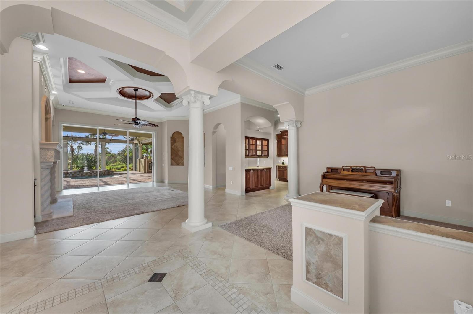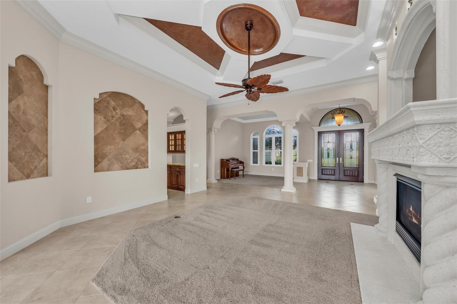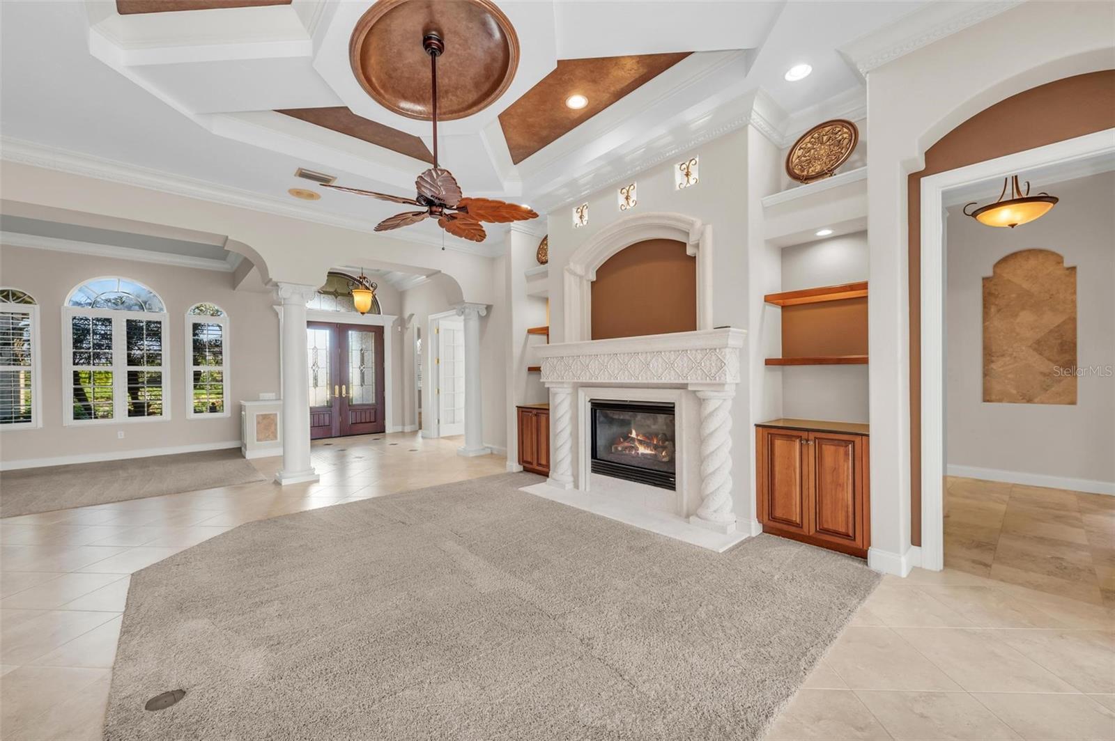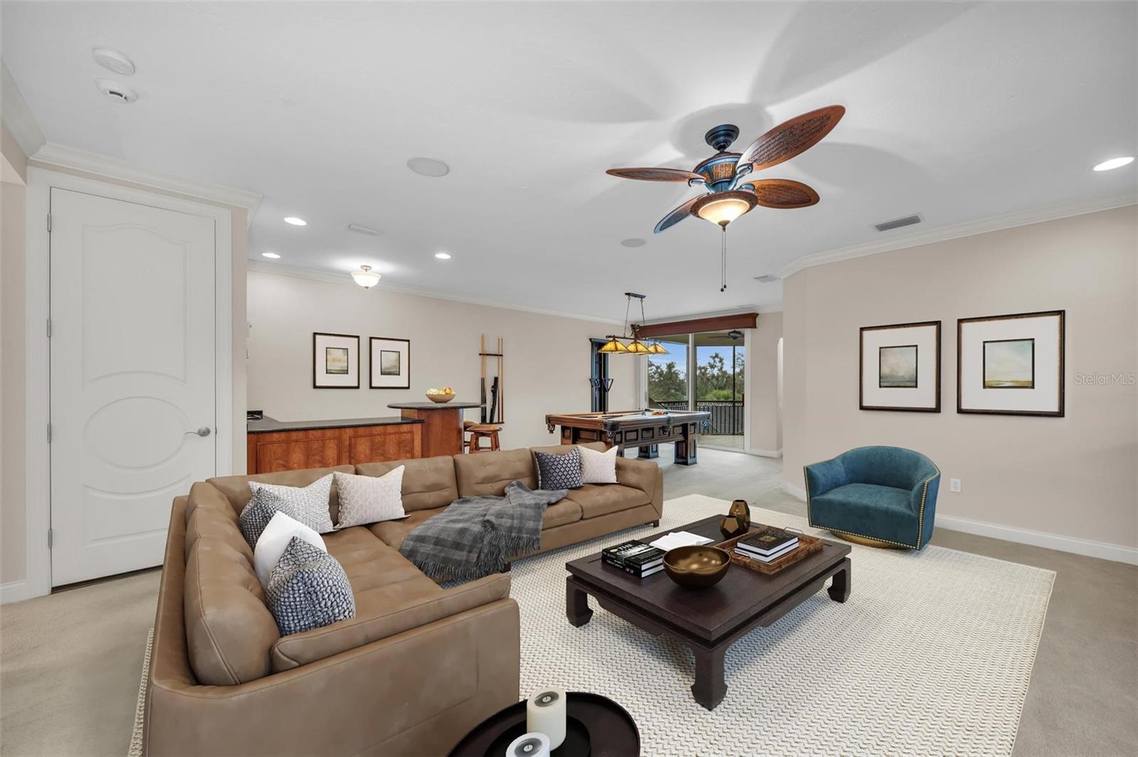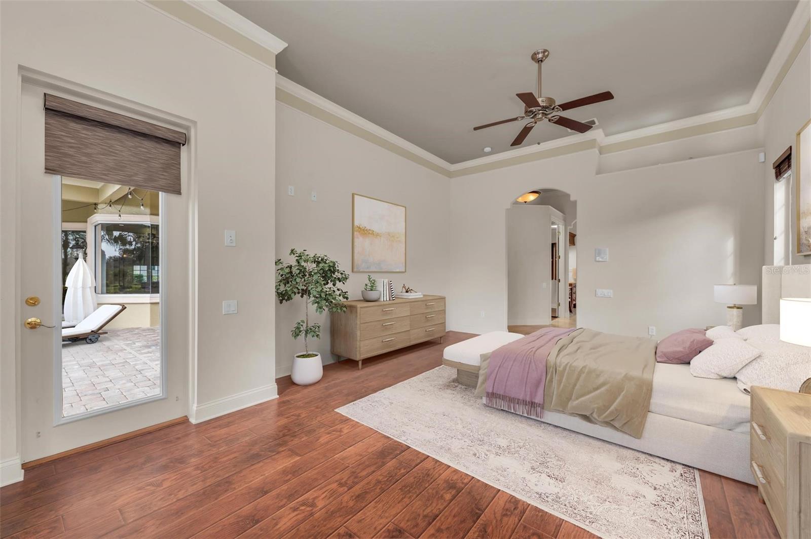 One or more photo(s) has been virtually staged. If you’re looking for a home that gives you room for everyone and everything, this estate home in The Founders Club is it. This custom-designed architectural masterpiece by renowned builder Todd Johnston is nestled on a coveted preserve lot within the exclusive, gated community of The Founders Club. This striking estate redefines Florida elegance with over 4,800 square feet of thoughtfully curated space. With 4 spacious bedrooms, 4.5 baths, a stately den, and a flexible floor plan, this home offers the perfect balance of grandeur and comfort. Step inside to soaring 12–14 ft. ceilings, intricate custom millwork, and expansive living areas that flow seamlessly for effortless entertaining and everyday living. The grand living room serves as the heart of the home, featuring a sculpted ceiling, a striking fireplace, and pocketing glass doors that open to a resort-style lanai—blending indoor and outdoor living in perfect harmony. Adjacent is the formal dining room and a private home office with French doors, ideal for work or quiet reflection. The chef’s kitchen is equipped with premium GE Monogram appliances, including a 48” industrial refrigerator (2023), granite countertops, True Blue solid wood cabinetry, and an oversized center island. A wet bar with a built-in refrigerator and desk nook enhances the home’s functionality and charm. Retreat to the tranquil first-floor primary suite, where bay windows overlook lush preserve views. Indulge in a spa-like bath with a whirlpool tub, walk-in shower, dual vanities, and two custom walk-in closets. A private atrium adds a serene, Tuscan-inspired escape. The main level also includes a generous Mother-in-Law suite with a private entrance, en-suite bath, walk-in closet, and space for a kitchenette—ideal for multigenerational living. A secondary master suite offers pool access and stunning preserve views, while the upstairs family room serves as a versatile retreat complete with a billiard table, wet bar, and balcony overlooking the pool and preserve. A spacious guest suite with full bath ensures comfort and privacy for visitors. Step outside to your private paradise: a screened lanai with impact-rated enclosures, a heated resort-style pool and spa, an outdoor kitchen with a GE Monogram natural gas grill and mini fridge, plus a cozy fireplace lounge—all surrounded by professionally designed LED landscape lighting for nighttime ambiance. This smart home offers advanced features including remote spa control, a Kohler whole-house generator (2022), ADT security system, reverse osmosis water system, and three zoned Trane AC units (2021). Natural gas fuels the pool heater, kitchen appliances, and water heaters for energy-efficient living. Located within The Founders Club—a prestigious community celebrated for its natural beauty, golf course, and 100+ acres of preserved wetlands, lakes, and oak hammocks—residents enjoy exclusive access to world-class golf and social amenities. Designed with precision, style, and comfort in mind, this exceptional residence is a rare opportunity to experience true Florida luxury. Explore the Matterport 3D tour and listing video to fully appreciate the elegance and craftsmanship of this home. Lowest Per Square Foot Home in The Founders Club (Listed, Pending, or Sold - last 6 months)!!! Sellers are motivated and willing to entertain all reasonable offers.