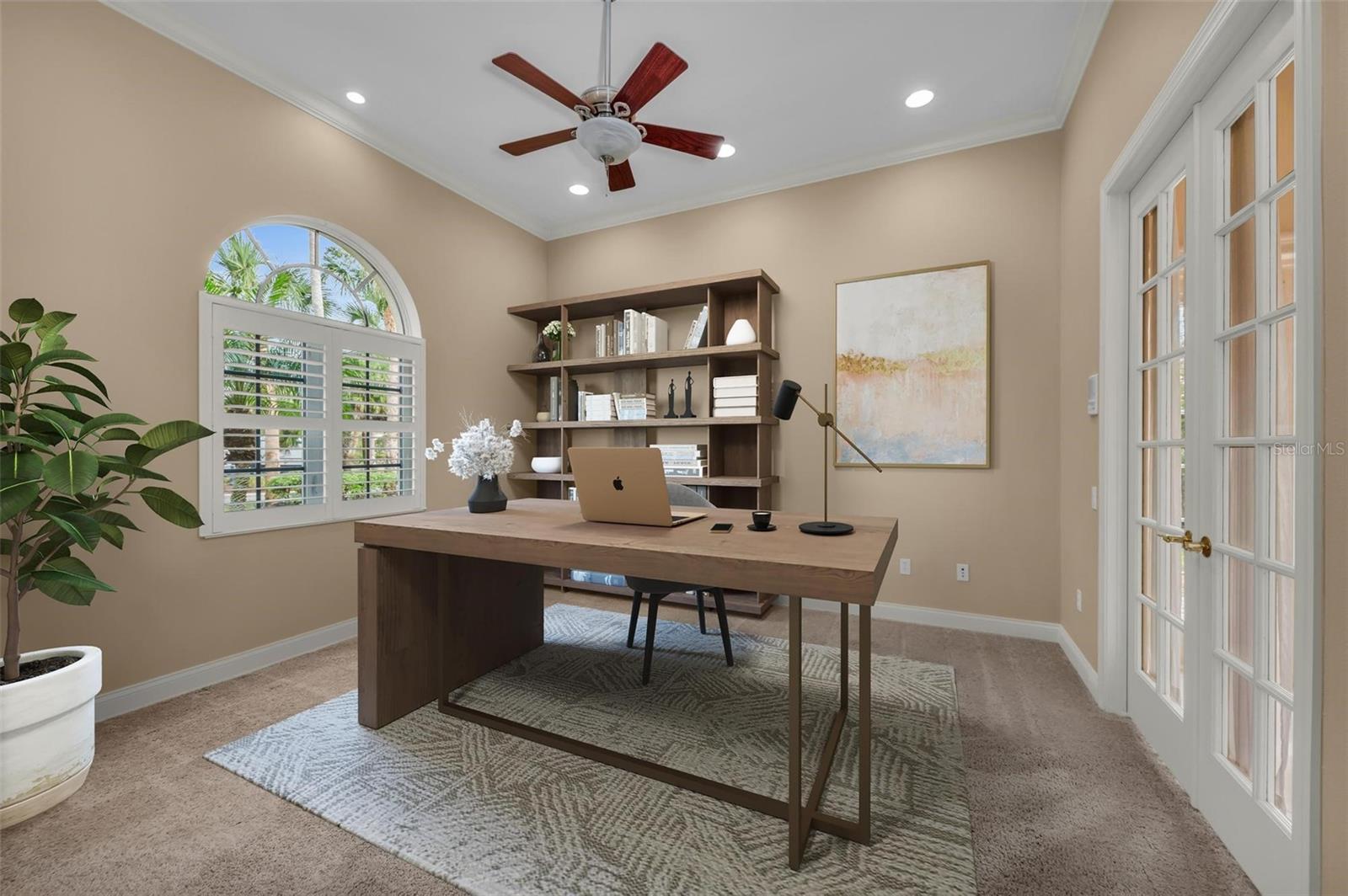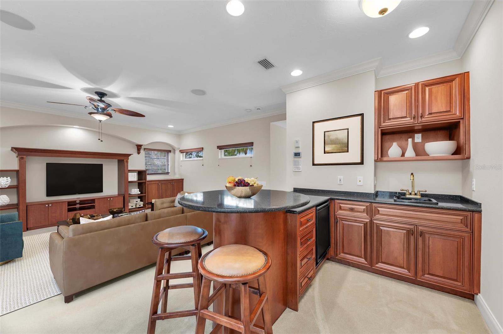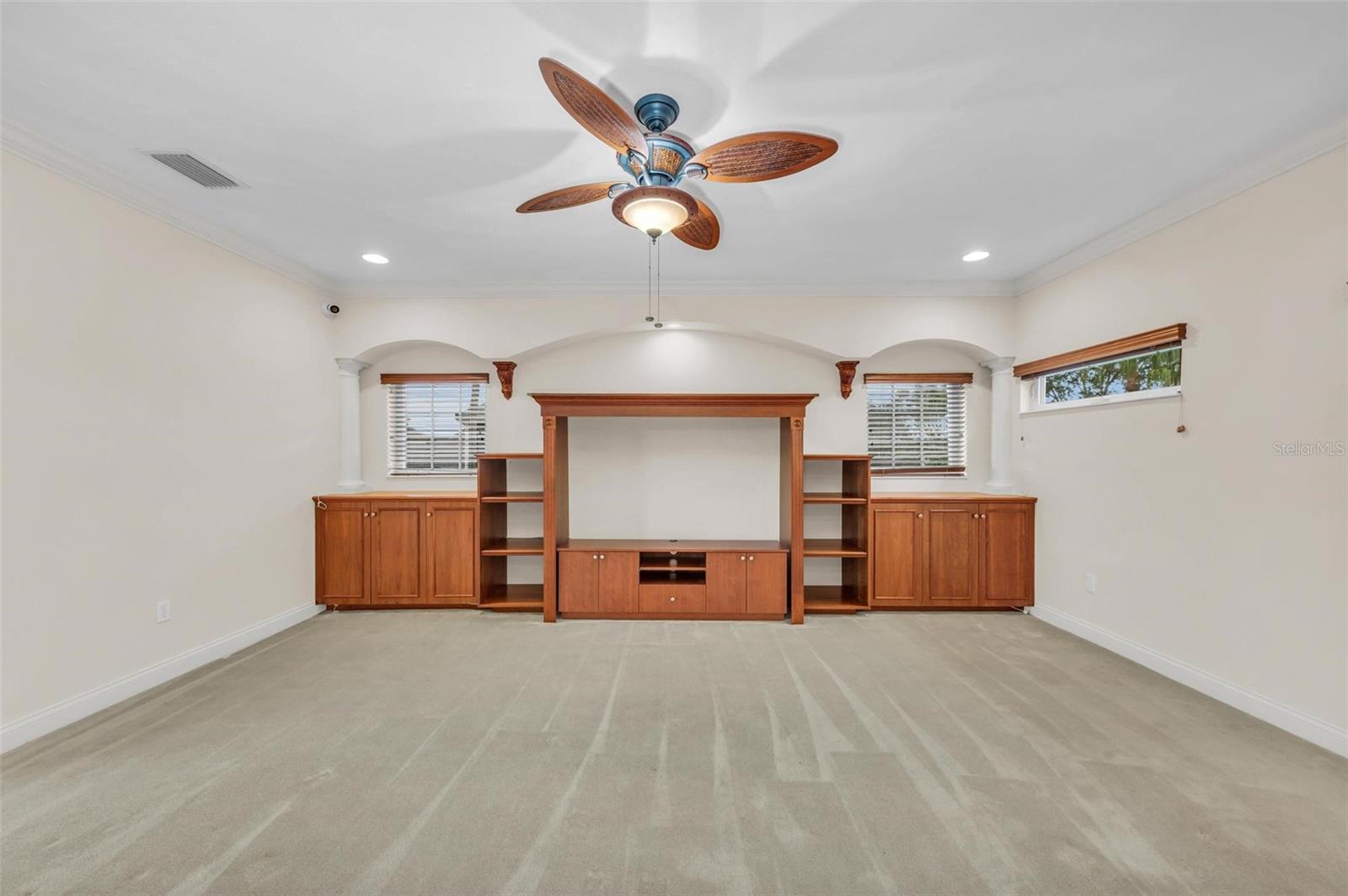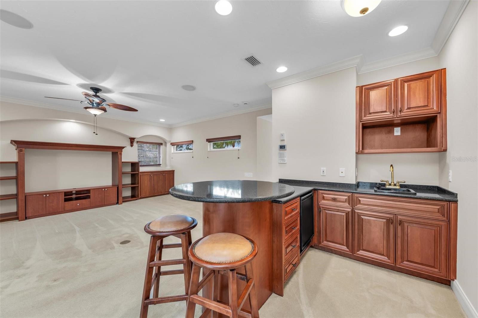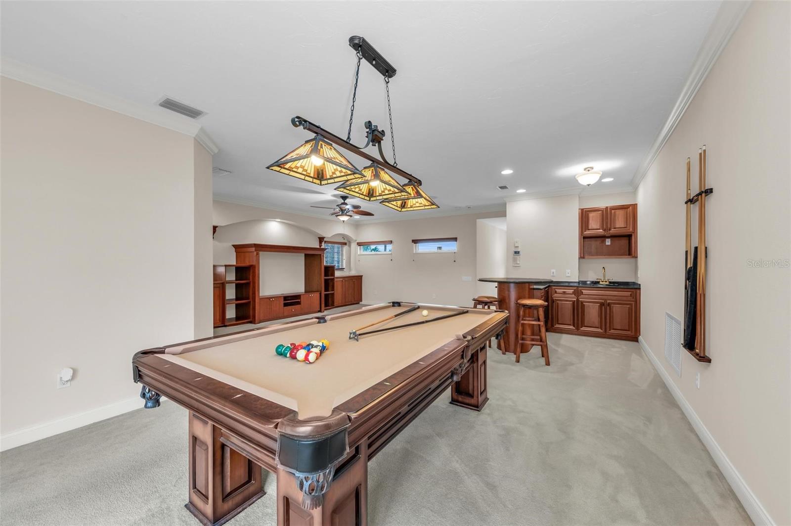 One or more photo(s) has been virtually staged. If you’re looking for a home that gives you room for everyone and everything, this estate home in The Founders Club is it. This custom-designed architectural masterpiece by renowned builder Todd Johnston is nestled on a coveted preserve lot within the exclusive, gated community of The Founders Club. This striking estate redefines Florida elegance with over 4,800 square feet of thoughtfully curated space. With 4 spacious bedrooms, 4.5 baths, a stately den, and a flexible floor plan, this home offers the perfect balance of grandeur and comfort. Step inside to soaring 12–14 ft. ceilings, intricate custom millwork, and expansive living areas that flow seamlessly for effortless entertaining and everyday living. The grand living room serves as the heart of the home, featuring a sculpted ceiling, a striking fireplace, and pocketing glass doors that open to a resort-style lanai—blending indoor and outdoor living in perfect harmony. Adjacent is the formal dining room and a private home office with French doors, ideal for work or quiet reflection. The chef’s kitchen is equipped with premium GE Monogram appliances, including a 48” industrial refrigerator (2023), granite countertops, True Blue solid wood cabinetry, and an oversized center island. A wet bar with a built-in refrigerator and desk nook enhances the home’s functionality and charm. Retreat to the tranquil first-floor primary suite, where bay windows overlook lush preserve views. Indulge in a spa-like bath with a whirlpool tub, walk-in shower, dual vanities, and two custom walk-in closets. A private atrium adds a serene, Tuscan-inspired escape. The main level also includes a generous Mother-in-Law suite with a private entrance, en-suite bath, walk-in closet, and space for a kitchenette—ideal for multigenerational living. A secondary master suite offers pool access and stunning preserve views, while the upstairs family room serves as a versatile retreat complete with a billiard table, wet bar, and balcony overlooking the pool and preserve. A spacious guest suite with full bath ensures comfort and privacy for visitors. Step outside to your private paradise: a screened lanai with impact-rated enclosures, a heated resort-style pool and spa, an outdoor kitchen with a GE Monogram natural gas grill and mini fridge, plus a cozy fireplace lounge—all surrounded by professionally designed LED landscape lighting for nighttime ambiance. This smart home offers advanced features including remote spa control, a Kohler whole-house generator (2022), ADT security system, reverse osmosis water system, and three zoned Trane AC units (2021). Natural gas fuels the pool heater, kitchen appliances, and water heaters for energy-efficient living. Located within The Founders Club—a prestigious community celebrated for its natural beauty, golf course, and 100+ acres of preserved wetlands, lakes, and oak hammocks—residents enjoy exclusive access to world-class golf and social amenities. Designed with precision, style, and comfort in mind, this exceptional residence is a rare opportunity to experience true Florida luxury. Explore the Matterport 3D tour and listing video to fully appreciate the elegance and craftsmanship of this home. Lowest Per Square Foot Home in The Founders Club (Listed, Pending, or Sold - last 6 months)!!! Sellers are motivated and willing to entertain all reasonable offers.