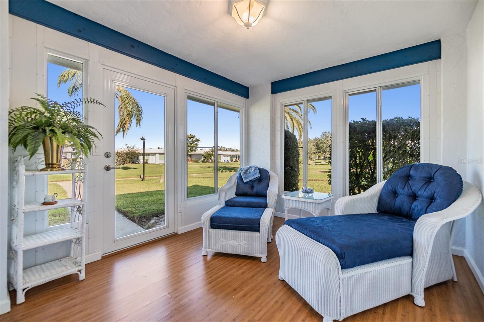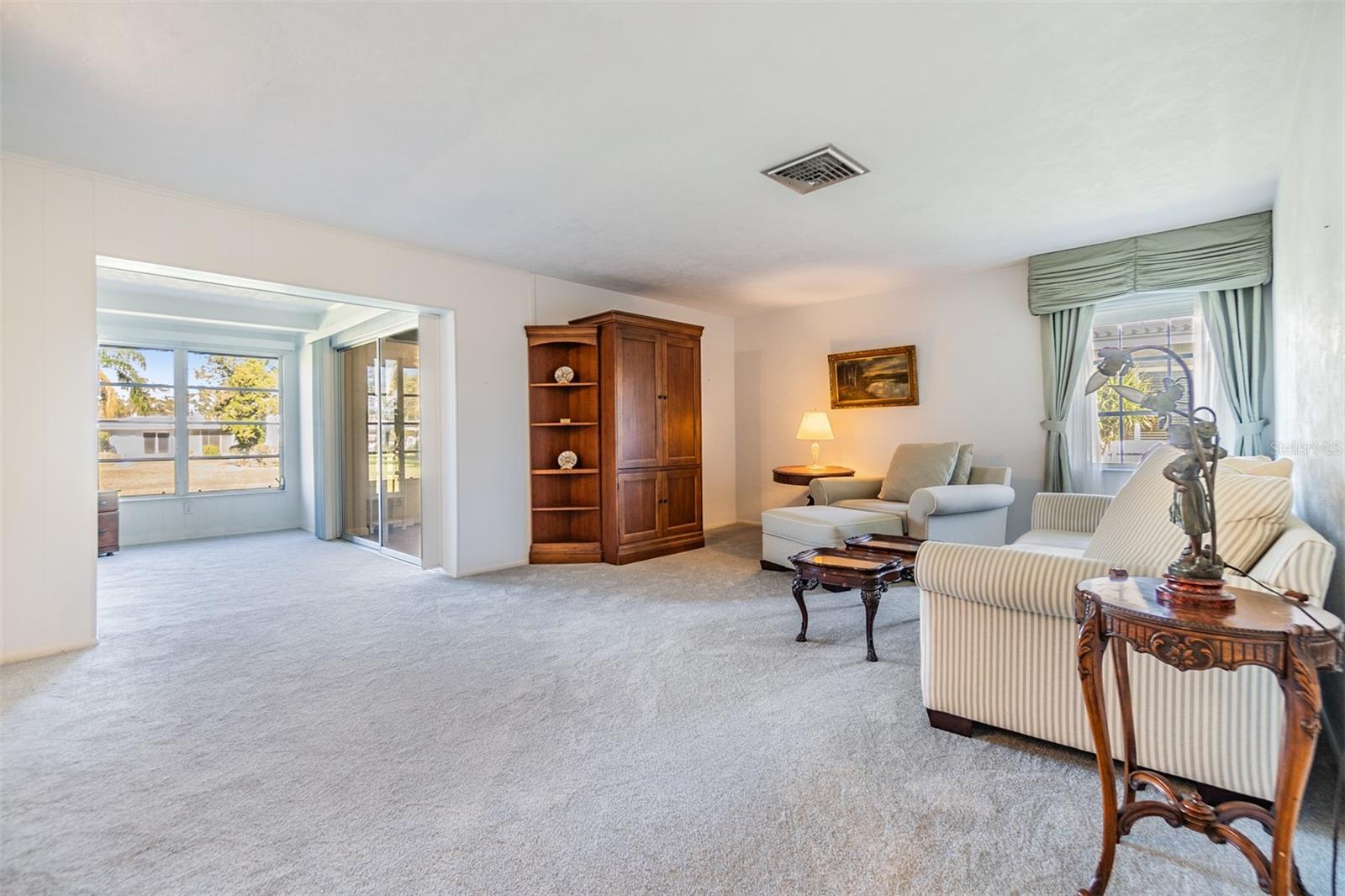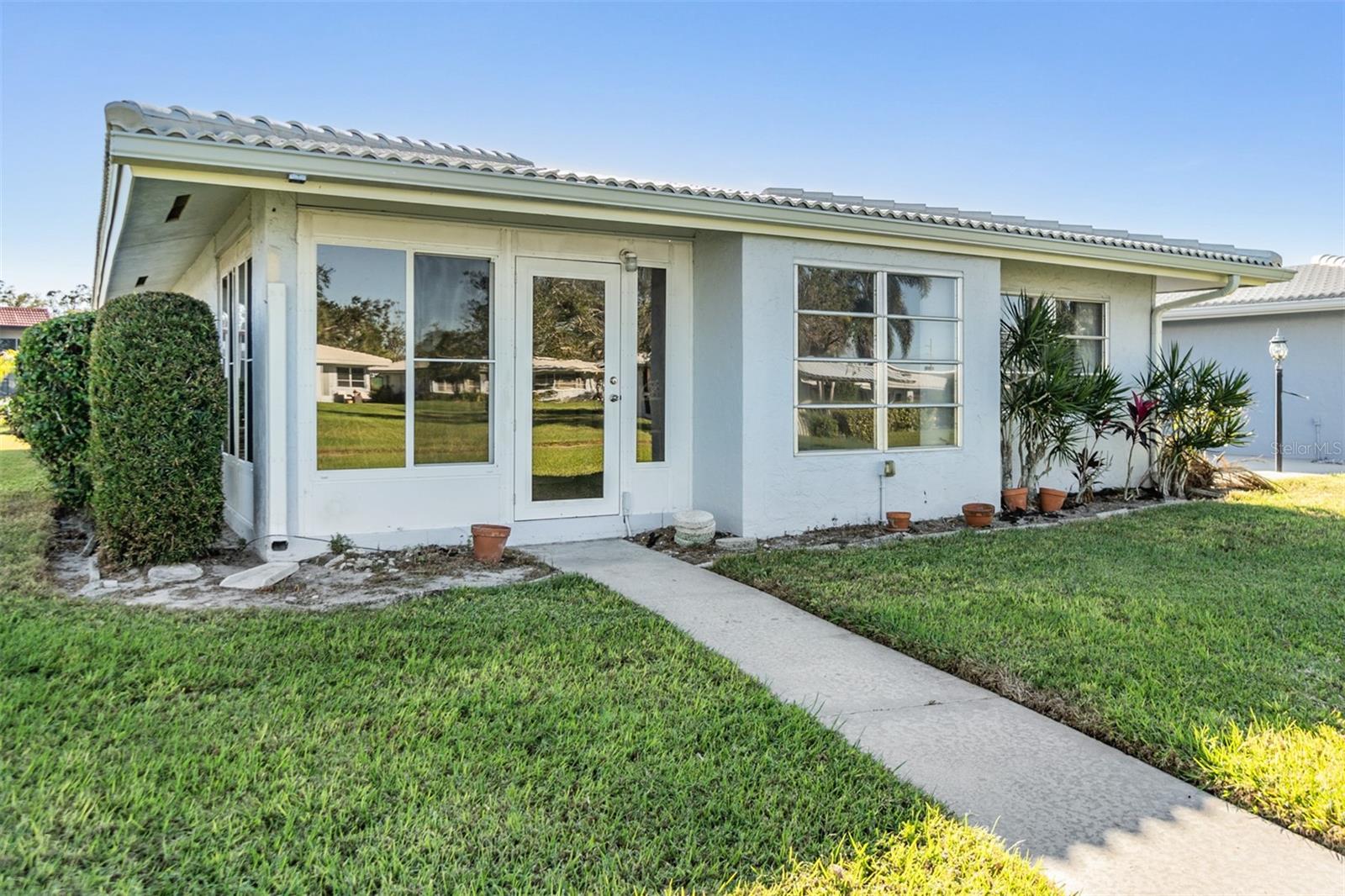 **PRICED TO SELL QUICKLY!** High and Dry with no hurricane issues. Discover this beautiful, maintenance-free villa featuring brand new carpet! This super clean 2 bedroom, 2 bath home includes a spacious open floor plan, a laundry room, an eat-in kitchen with newer hot water heater & A/C. Enjoy the convenience of a 1-car garage with plenty of storage space throughout. Step out onto the screened lanai with pocket sliders, where you can relax and take in the serene, park-like setting just steps away from the community pool. The great location puts you close to shopping, the beaches, and downtown. Whether you prefer a refreshing swim in the heated pool or a leisurely stroll along the walking paths, this top-notch location offers easy access to area beaches, shopping, dining, arts, entertainment, and all of life’s necessities. Embrace the carefree Florida lifestyle in this lovely low maintenance 55+ friendly and active community. Schedule your tour today and experience the perfect blend of comfort, style, and convenience!