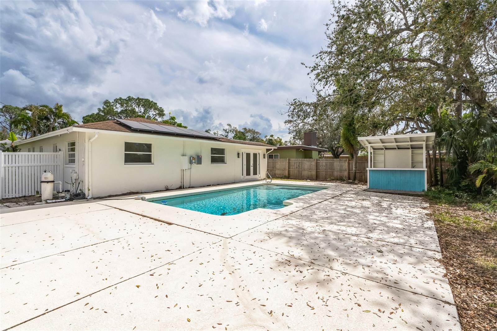 Stunning 4-Bedroom, 2-Bathroom Pool Home on Corner Lot Welcome to your dream home! This spacious 4-bedroom, 2-bathroom gem is perfectly situated on a desirable corner lot, offering both privacy and convenience. Located just 12 miles from Siesta Key Beach, consistently voted the #1 beach in the U.S., and within close proximity to a variety of restaurants and shopping centers, this home offers the best of both relaxation and entertainment. With no HOA to worry about, you'll enjoy the freedom of owning your own piece of paradise. The home features solar panels, ensuring low electric bills, and has been thoughtfully updated with new appliances, granite countertops, and refinished cabinets, creating a modern, stylish atmosphere throughout. Two flexible spaces allow you to design the layout of your home to suit your needs. The front space could be a formal living room or office, while the second room offers the perfect setting for a family room or large dining area—ideal for entertaining. Enjoy the beautiful Florida weather with a large backyard pool, surrounded by plenty of room for family gatherings and outdoor fun. The home also features a newer well and septic tank, offering peace of mind for years to come. Don't miss out on this incredible opportunity to own a slice of paradise in one of the most sought-after areas. Schedule your showing today!
