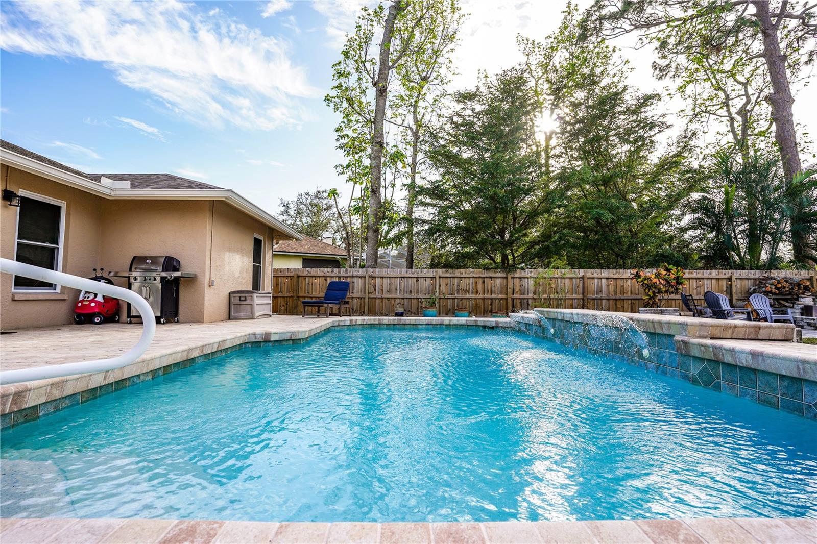 Welcome to COLONIAL WOODS ESTATES! Set apart, this local exclusive, highly desireable community offers this beautifully updated home at 5715 Fern Oak Ct in Sarasota. This home is on one of the largest lots with a huge back yard offering perfect outdoor spaces. Featuring an open concept layout, this home offers a spacious and inviting atmosphere, perfect for both everyday living and entertaining. The kitchen is equipped with stainless steel appliances, adding a sleek and modern touch to the space. The property boasts a fully fenced backyard, installed just last year, ensuring privacy and security. Step outside to enjoy the screened patio, ideal for outdoor relaxation. Additionally, the outdoor shed provides extra storage for all your needs. Inside, the primary suite features a generous walk-in closet, and the primary bathroom includes a large, updated shower. All bathrooms were completely remodeled last year, offering modern finishes and a fresh, stylish look. This home has been thoughtfully updated with hurricane windows for convenience when needed (no shutters to put up and takle down), a new roof installed 4 years ago, a new water heater just 2 years ago, and a new HVAC system replaced 5 years ago. For added convenience, a water treatment system ensures clean and purified water throughout the home. The community is an added bonus, featuring a pond with a peaceful walking path, perfect for enjoying the outdoors. With its ideal location, updated features, and thoughtful details, this home offers a perfect blend of comfort and modern living. Quiet cul de sac living that is convenient to downtown Sarasota arts, festivals, entertainment, shopping and dining. Minutes to best Gulf Coast beaches, including Siesta Key Beach which is voted #1 in USA.