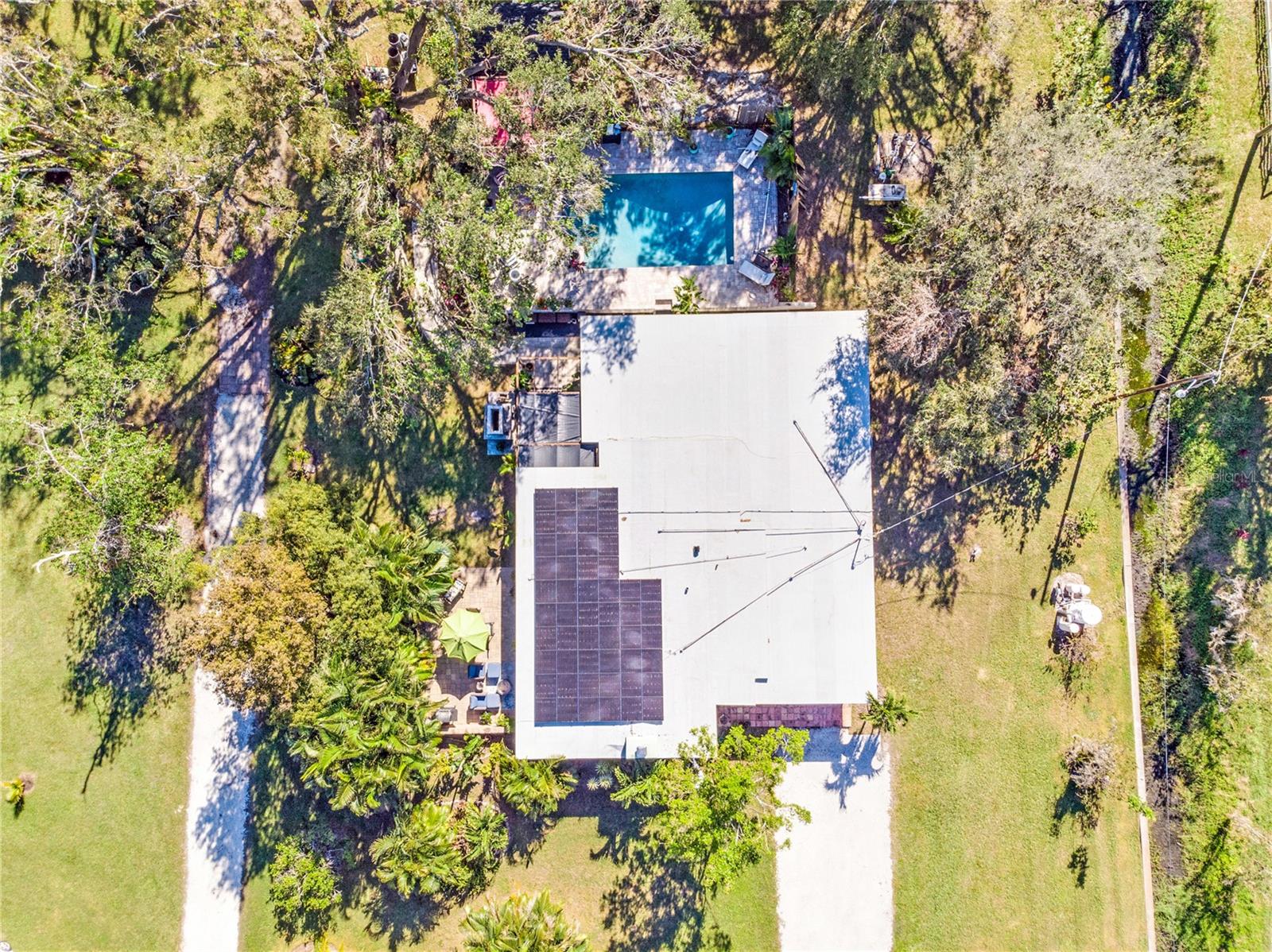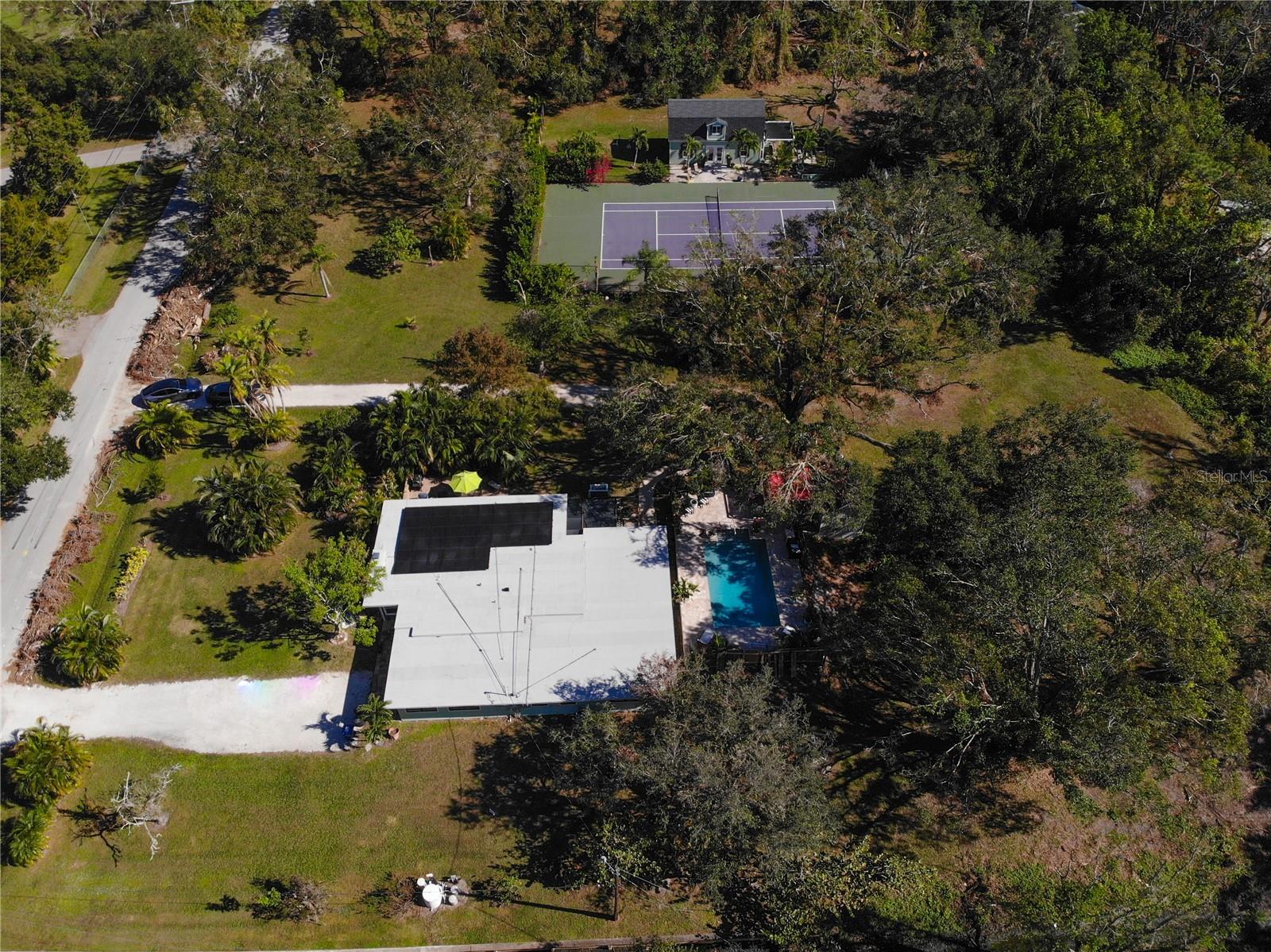Bring your vision to life on this premium lot in Desoto Acres! Over 2+ acres to roam, with lots of privacy... not on a main road! NO HOA, NO CDD! This property is comprised of 3 separate buildings and a full-size tennis court. The "tennis loft" that was built in 2019 and is beautifully designed with shiplap and premium finishes. Next is a quaint "pool cabana" with a full outdoor kitchen located on the pool deck. Finally, a main home with 4 bedrooms, 2 bathrooms, and an updated kitchen with over 2,500sf of living space. The main home could use some TLC, be remodeled, or even torn down to build your dream estate. The options are endless on a lot like this one! Several wood burning fire places and patio areas can be found throughout the property. Just the right amount of natural sunlight and shade. Fully equipped with SOLAR PANELS and a BRAND NEW ROOF for peace of mind. Just outside of the main home is a pavered deck hosting a sparkling blue pool, fully stocked outdoor kitchen, and the pool cabana. Perfect for relaxing and enjoying the outdoors. The “Tennis Loft” is the star of the show. Fronted by a full-size tennis court and picnic area… great recreational space for various sporting activities. This building is beautifully appointed with high ceilings, a loft space, a modern bathroom, shiplap throughout, a sink, and plenty of space to entertain. Perfect space for guests to enjoy. With its very own patio and traditional fire pit too. Less than 5 miles from the lively downtown Sarasota, with close proximity to St. Armands Circle, and Lido Key. So much to offer in such a great location it still feels like you're a world away. They don't make them like this anymore... come see for yourself today! SELLER FINANCING AVAILABLE FOR WELL QUALIFIED BUYERS.