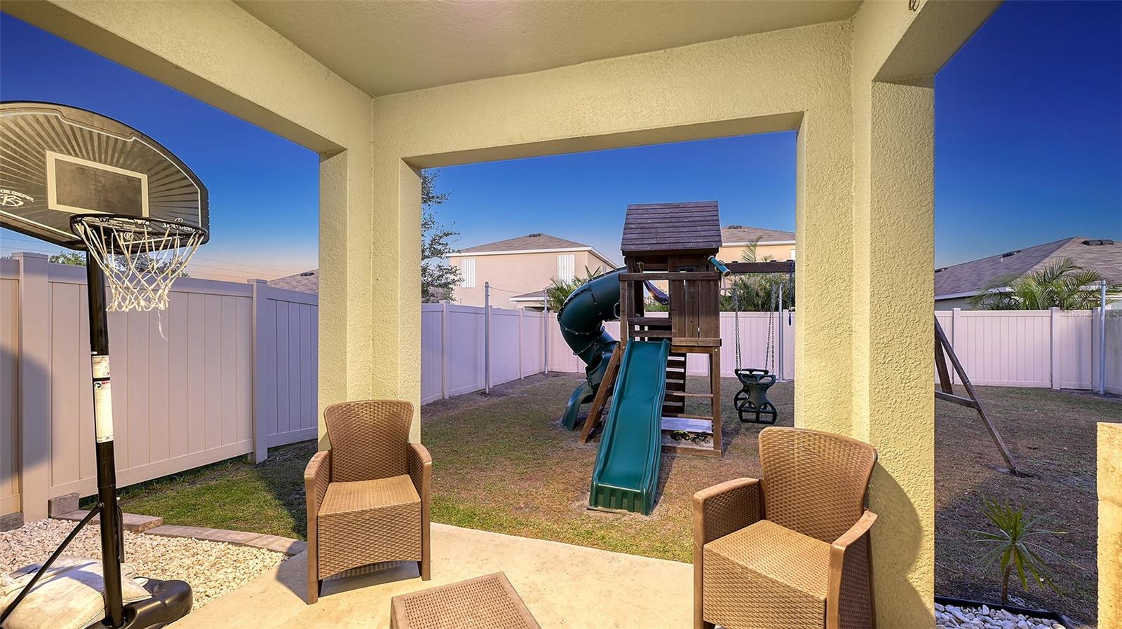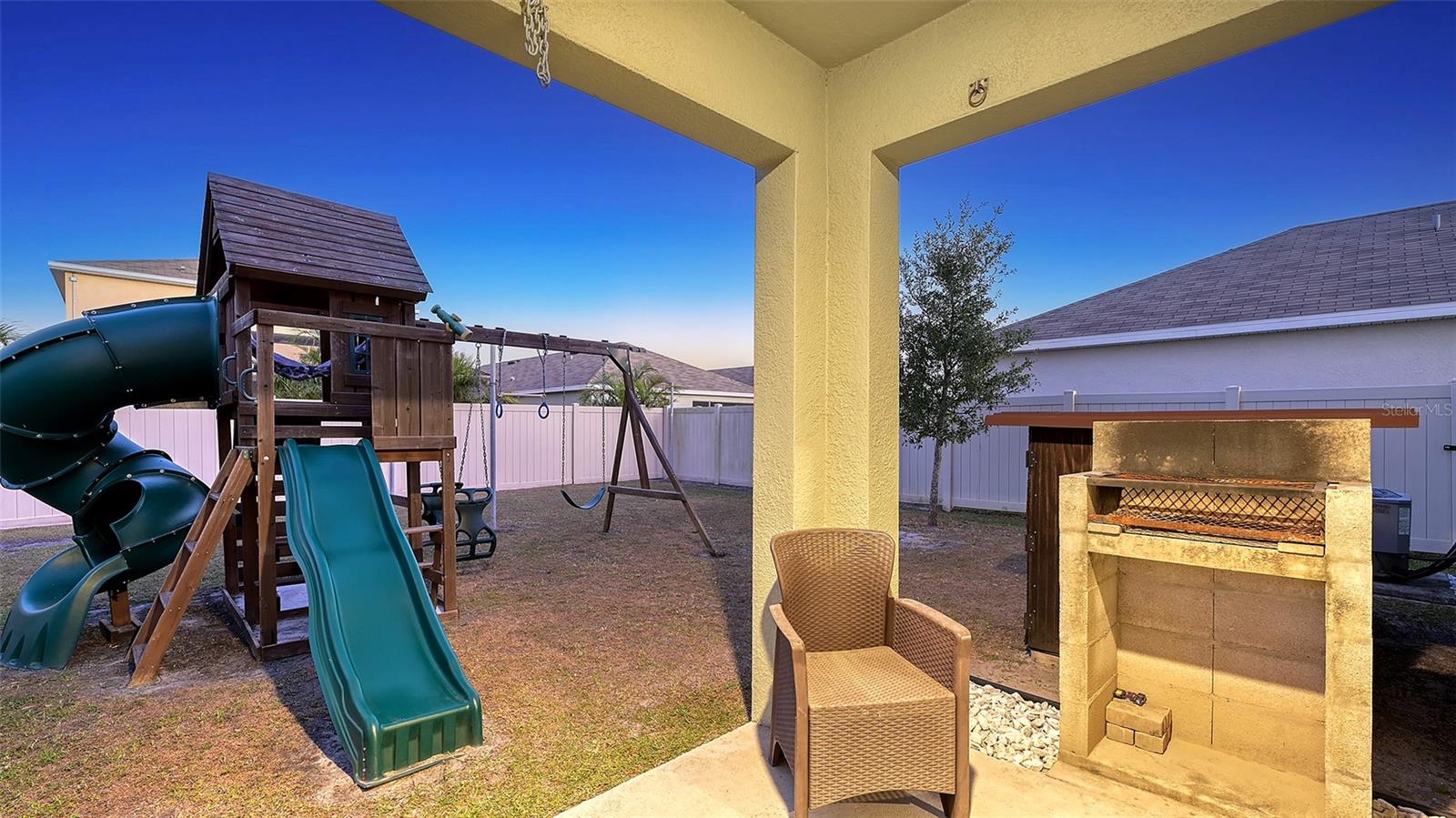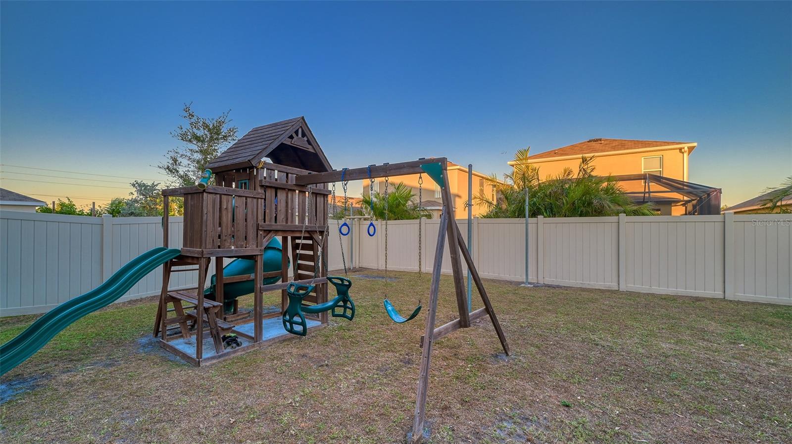 Welcome to 3809 Golden Oriole Parkway, Sarasota, FL – a stunning home in a gated community that combines elegance, comfort, and practicality. Located in a neighborhood with ultra-low HOA fees, this property is perfect for families seeking a serene yet convenient lifestyle. The highly coveted Robie floor plan by DR Horton offers a spacious and versatile layout, ideal for modern living. As you arrive, you'll be greeted by impeccable curb appeal with stone accents, manicured landscaping, and tropical palm trees that frame the home beautifully. Feel welcomed once inside by this sunlit open floor plan featuring a neutral color palette, pristine tile flooring, and a cozy living area with sliding glass doors that lead to a private outdoor retreat. The gourmet kitchen is an entertainer’s dream, boasting granite countertops, a chic subway tile backsplash, rich espresso cabinetry, stainless steel appliances, and a center island with breakfast bar seating, making it the heart of the home. The upstairs primary suite is a tranquil oasis with plush carpeting, abundant natural light, and a spa-inspired ensuite featuring dual sinks, a spacious vanity, and a walk-in shower. Additional bedrooms are thoughtfully designed, including a themed room for the young at heart offering additional space for a guest bedroom or office space. Outside, find a 6-foot privacy fence in your backyard offering a haven for relaxation and fun, with a custom-built playset, a covered patio perfect for enjoying Florida’s sunsets, and a built-in grill station for alfresco dining and entertaining. Located in the vibrant heart of Sarasota, this home offers convenient access to top-rated schools, premier shopping, exquisite dining, and the pristine Gulf Coast beaches. Don’t miss this opportunity to own a home that combines style, functionality, and location. Schedule your private showing today and experience the lifestyle you’ve been dreaming of!