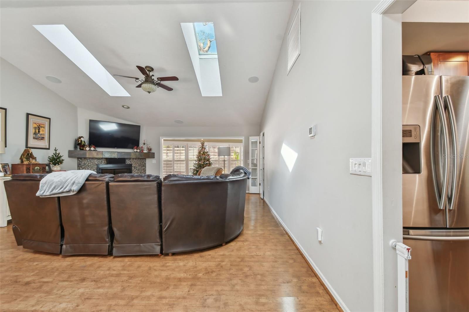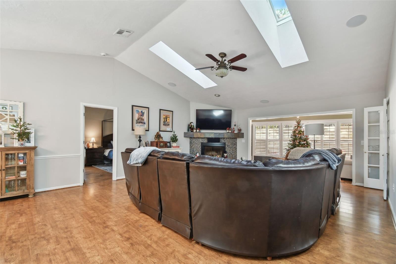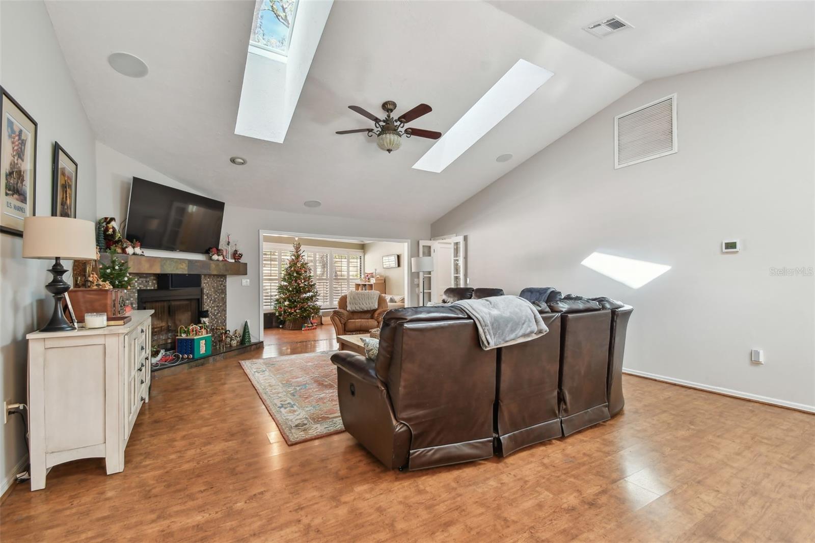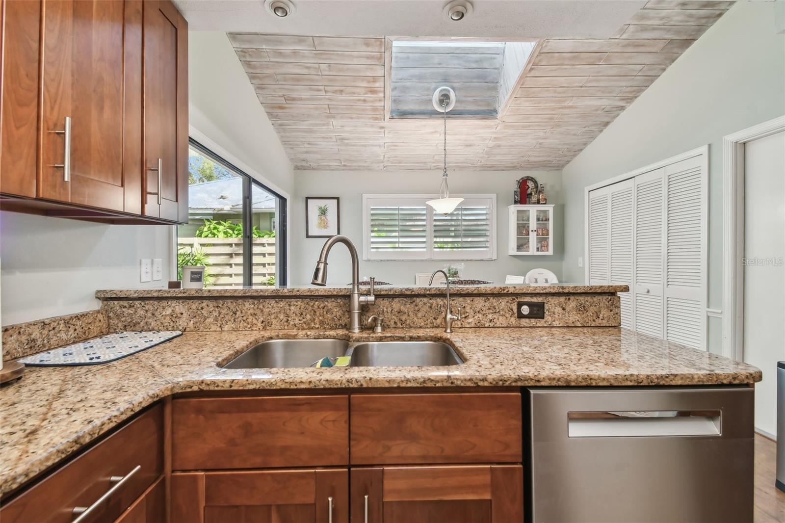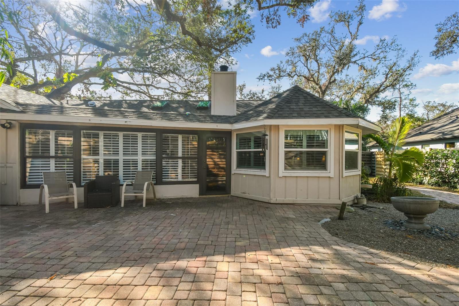 MOTIVATED SELLER! BRAND NEW ROOF (Dec 2024)! NEW AC!! This spacious 3/2 home with 2 car garage on 1/3 acre lot with FULLY FENCED BACKYARD boasts an open concept floorplan with high ceilings, big windows, and skylights to showcase its openness and natural lighting throughout. The family/dining room has vaulted ceilings, a wood burning fireplace and a built in surround sound system. The oversized master bedroom has a comfortable sitting area overlooking the patio and partially brick paved backyard. Master bathroom has dark granite counters, dual vanities, step in shower with double shower heads, and huge walk in closet customized with California Closets. Kitchen has lots of cabinets space and equipped with roll out shelves, newer stainless steal appliances, granite countertops and a quaint eating space with sliding glass doors leading to the backyard. Take note of the subtle and elegant details such as 2 panel shaker bedroom doors and plantation shutters throughout, french doors, and custom wood ceiling accent in breakfast nook. New exterior paint, aluminum soffit, whole house water filtration system, reverse osmosis system, and impact windows (with the exception of sliders and enclosed lanai windows) add even more to this home. Nestled away in the neighborhood of Sylvan Lea with lush greenery and mature trees provide a sense of privacy while being just a short distance to Sarasota's main arteries, Bee Ridge and Fruitville Roads and I-75. Close proximity to great schools, retail, the Celery Fields, UTC, hospitals and more.