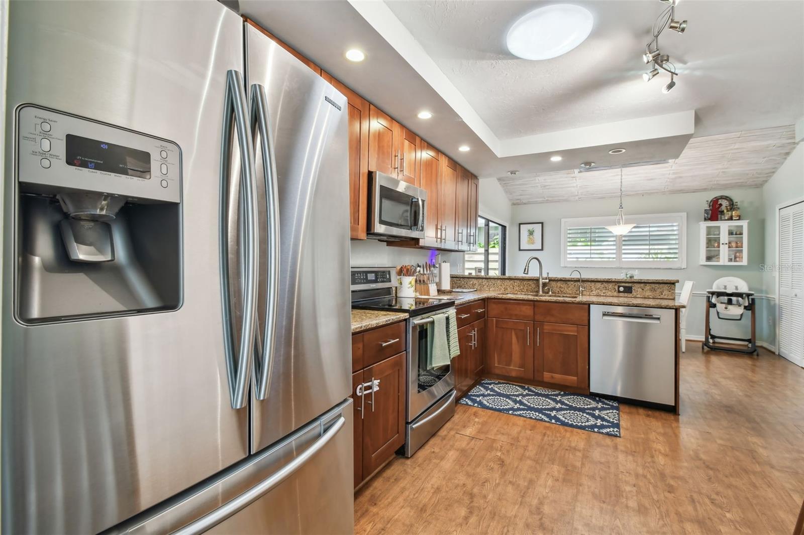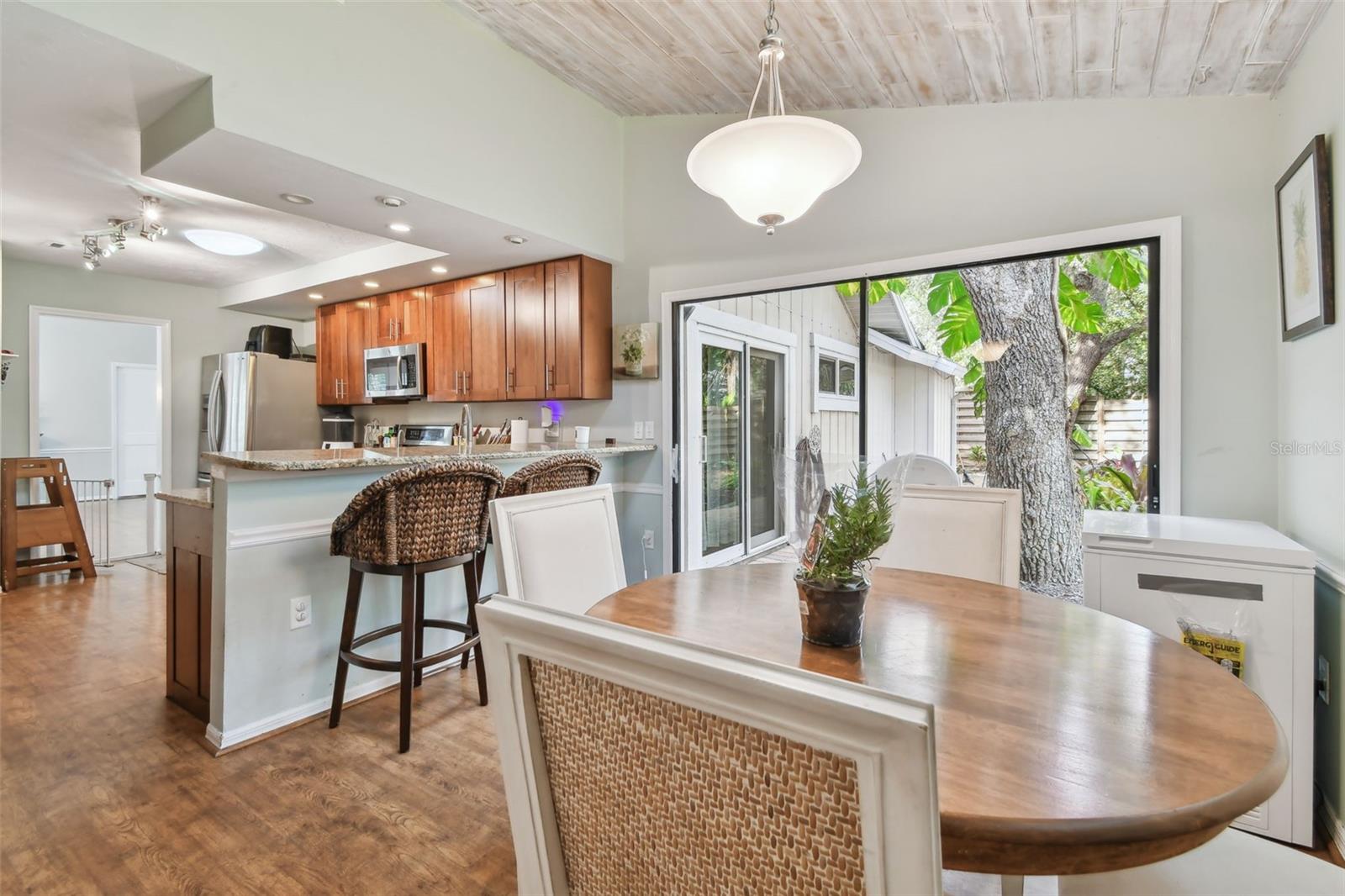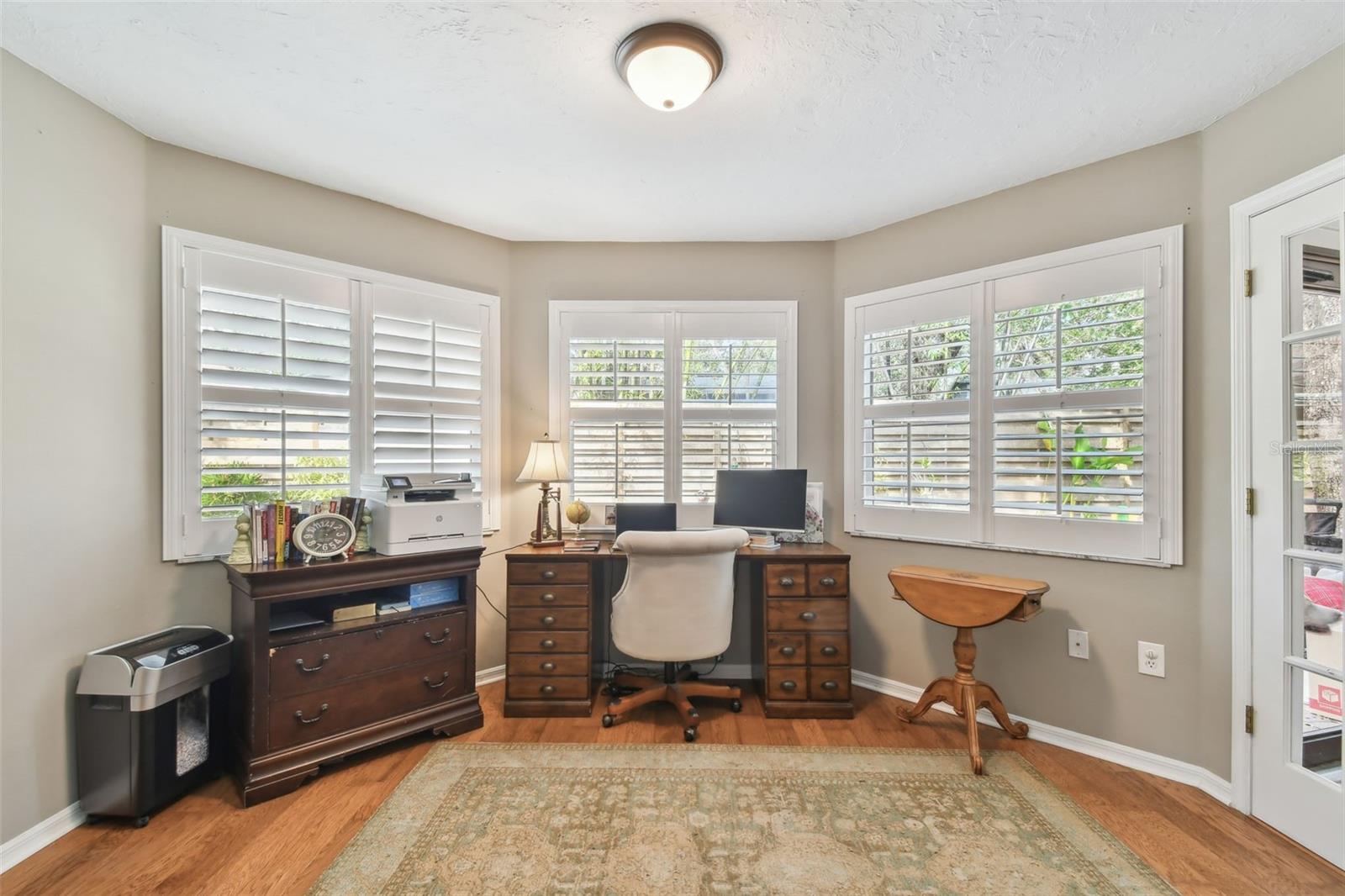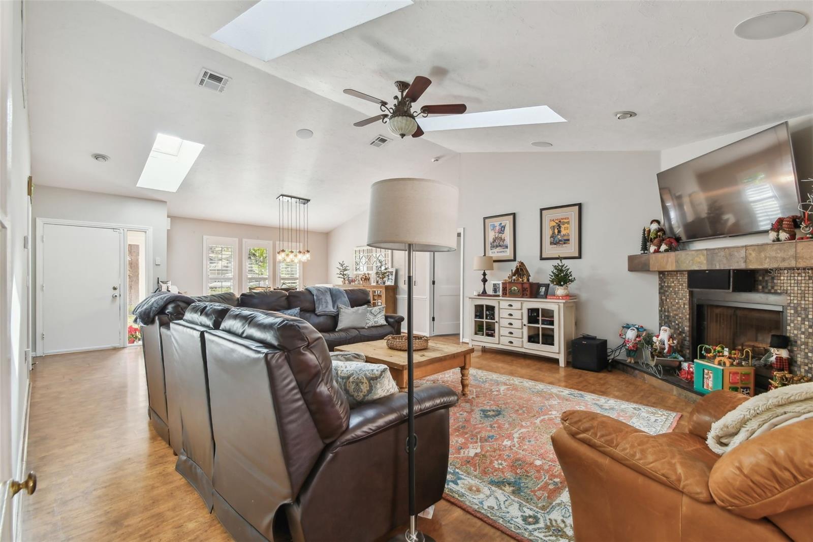 MOTIVATED SELLER! BRAND NEW ROOF (Dec 2024)! NEW AC!! This spacious 3/2 home with 2 car garage on 1/3 acre lot with FULLY FENCED BACKYARD boasts an open concept floorplan with high ceilings, big windows, and skylights to showcase its openness and natural lighting throughout. The family/dining room has vaulted ceilings, a wood burning fireplace and a built in surround sound system. The oversized master bedroom has a comfortable sitting area overlooking the patio and partially brick paved backyard. Master bathroom has dark granite counters, dual vanities, step in shower with double shower heads, and huge walk in closet customized with California Closets. Kitchen has lots of cabinets space and equipped with roll out shelves, newer stainless steal appliances, granite countertops and a quaint eating space with sliding glass doors leading to the backyard. Take note of the subtle and elegant details such as 2 panel shaker bedroom doors and plantation shutters throughout, french doors, and custom wood ceiling accent in breakfast nook. New exterior paint, aluminum soffit, whole house water filtration system, reverse osmosis system, and impact windows (with the exception of sliders and enclosed lanai windows) add even more to this home. Nestled away in the neighborhood of Sylvan Lea with lush greenery and mature trees provide a sense of privacy while being just a short distance to Sarasota's main arteries, Bee Ridge and Fruitville Roads and I-75. Close proximity to great schools, retail, the Celery Fields, UTC, hospitals and more.