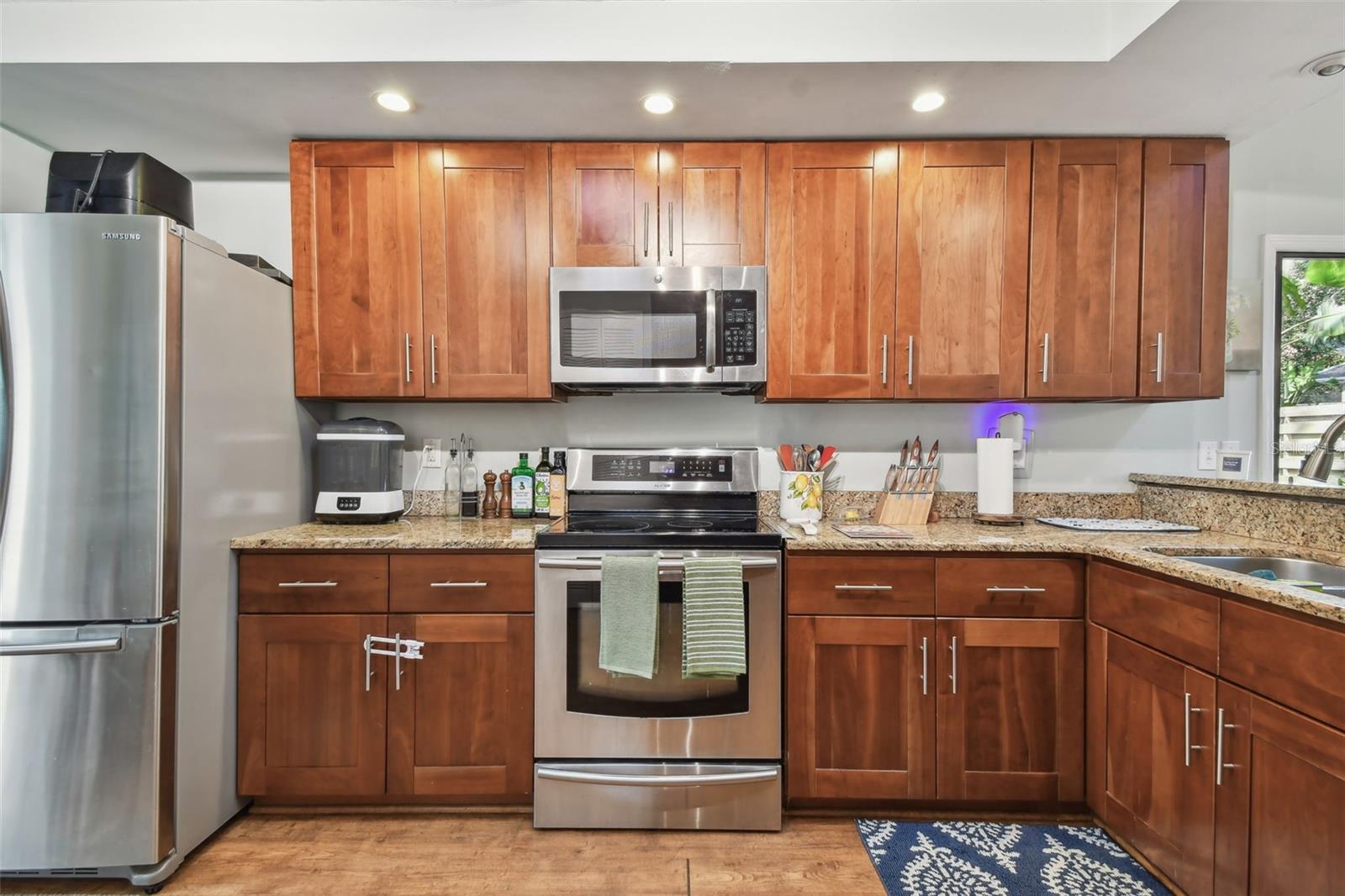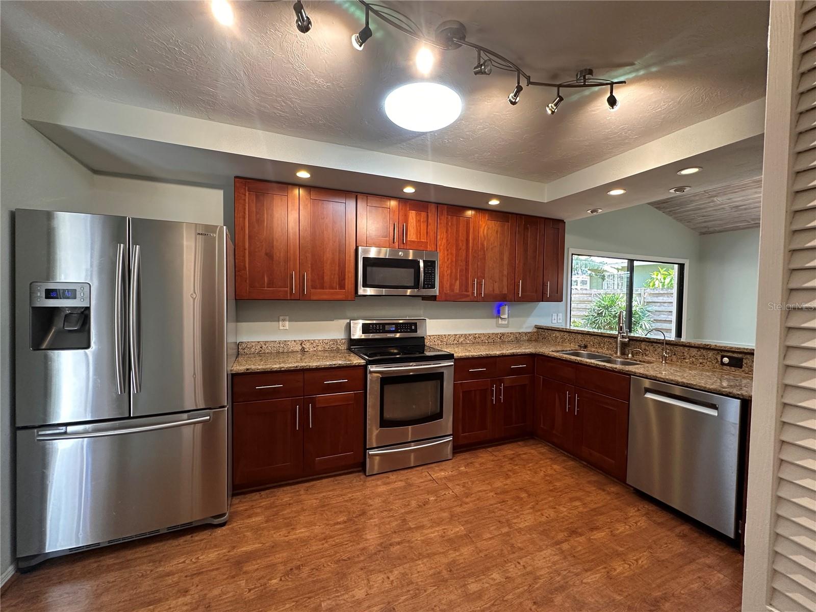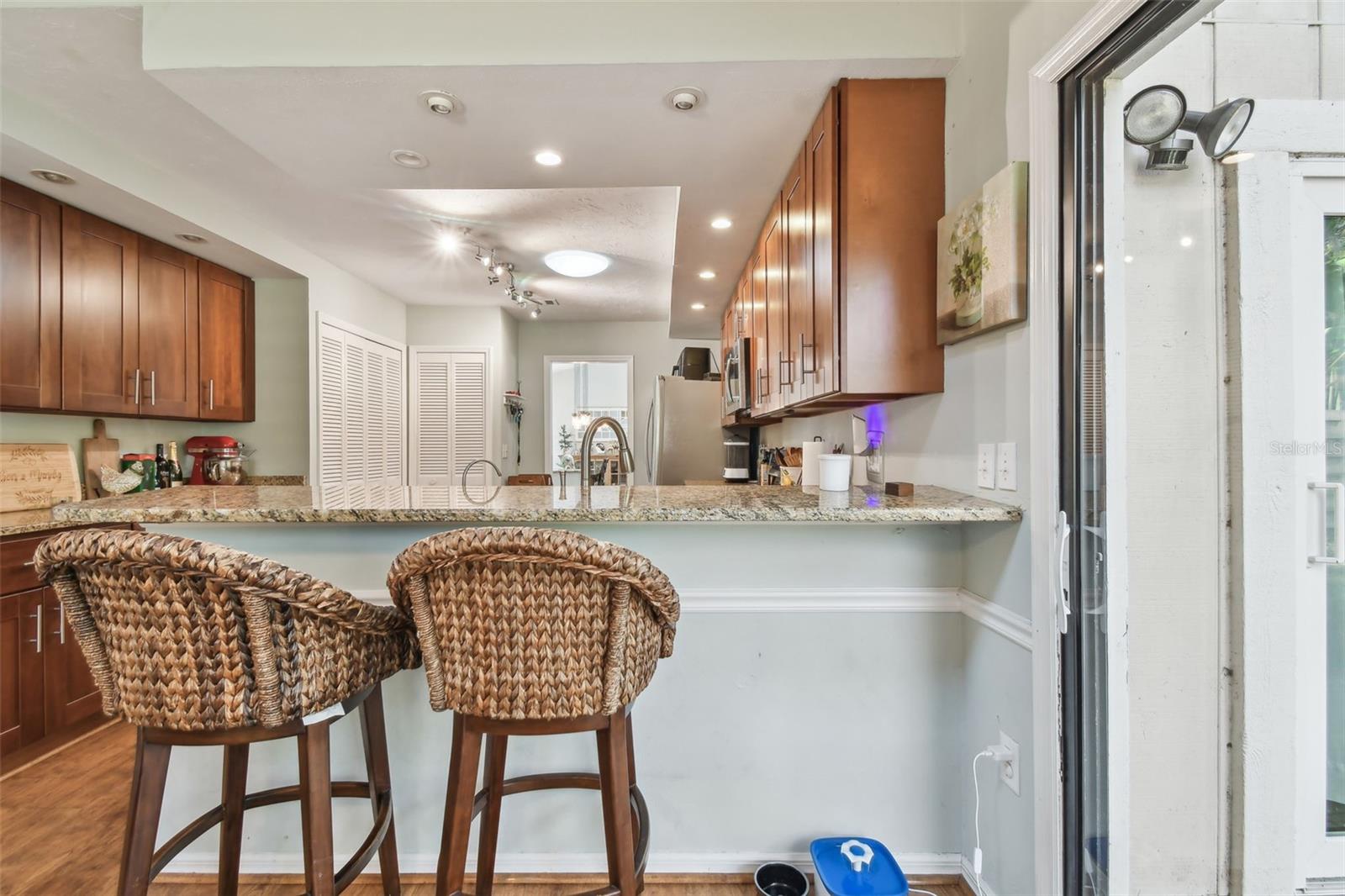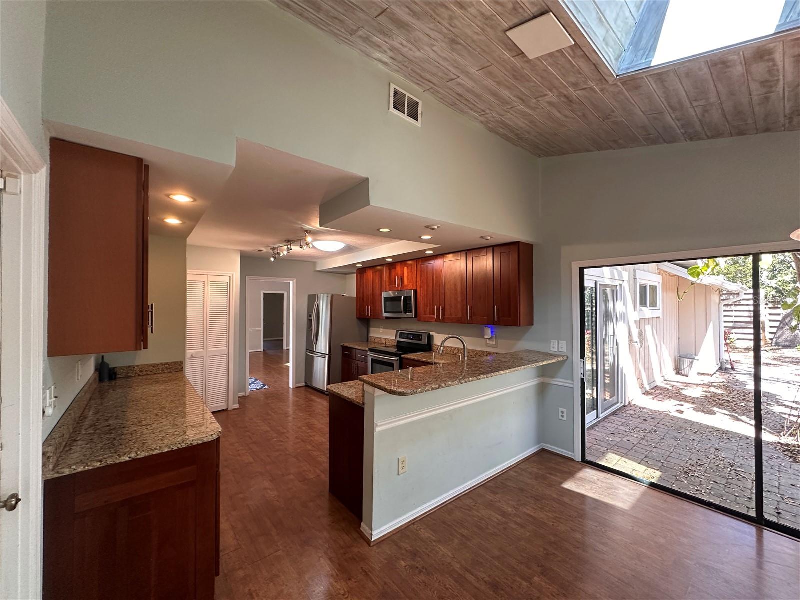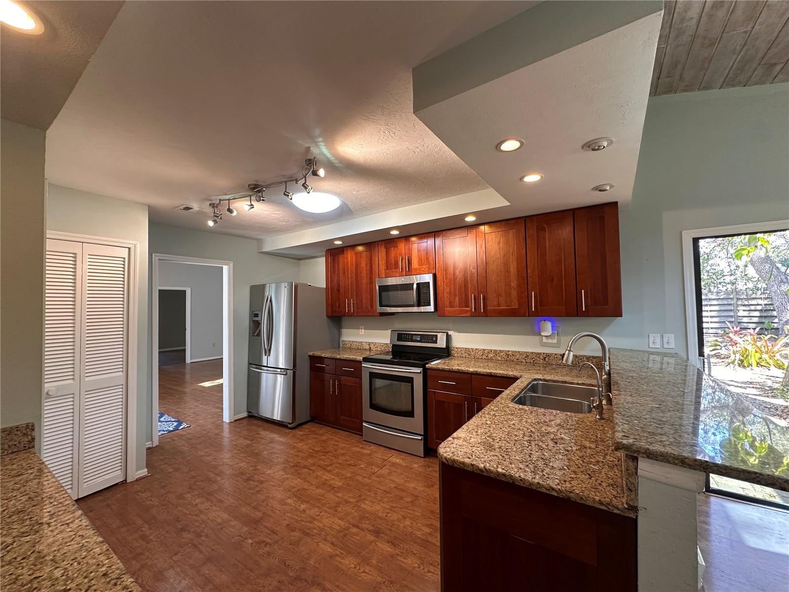 MOTIVATED SELLER! BRAND NEW ROOF (Dec 2024)! NEW AC!! This spacious 3/2 home with 2 car garage on 1/3 acre lot with FULLY FENCED BACKYARD boasts an open concept floorplan with high ceilings, big windows, and skylights to showcase its openness and natural lighting throughout. The family/dining room has vaulted ceilings, a wood burning fireplace and a built in surround sound system. The oversized master bedroom has a comfortable sitting area overlooking the patio and partially brick paved backyard. Master bathroom has dark granite counters, dual vanities, step in shower with double shower heads, and huge walk in closet customized with California Closets. Kitchen has lots of cabinets space and equipped with roll out shelves, newer stainless steal appliances, granite countertops and a quaint eating space with sliding glass doors leading to the backyard. Take note of the subtle and elegant details such as 2 panel shaker bedroom doors and plantation shutters throughout, french doors, and custom wood ceiling accent in breakfast nook. New exterior paint, aluminum soffit, whole house water filtration system, reverse osmosis system, and impact windows (with the exception of sliders and enclosed lanai windows) add even more to this home. Nestled away in the neighborhood of Sylvan Lea with lush greenery and mature trees provide a sense of privacy while being just a short distance to Sarasota's main arteries, Bee Ridge and Fruitville Roads and I-75. Close proximity to great schools, retail, the Celery Fields, UTC, hospitals and more.