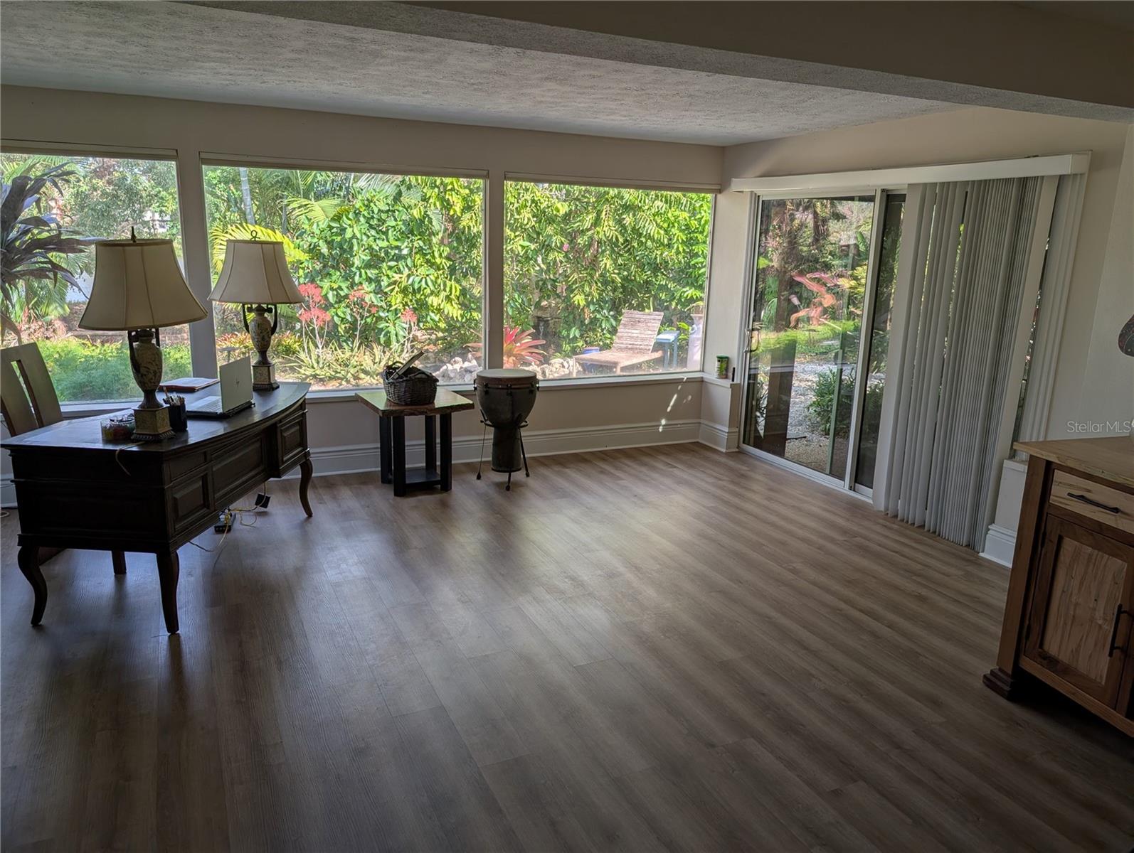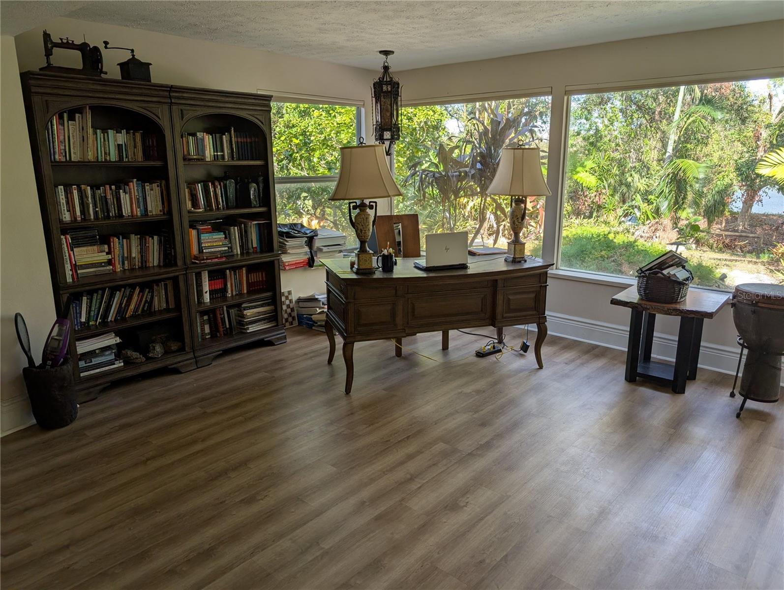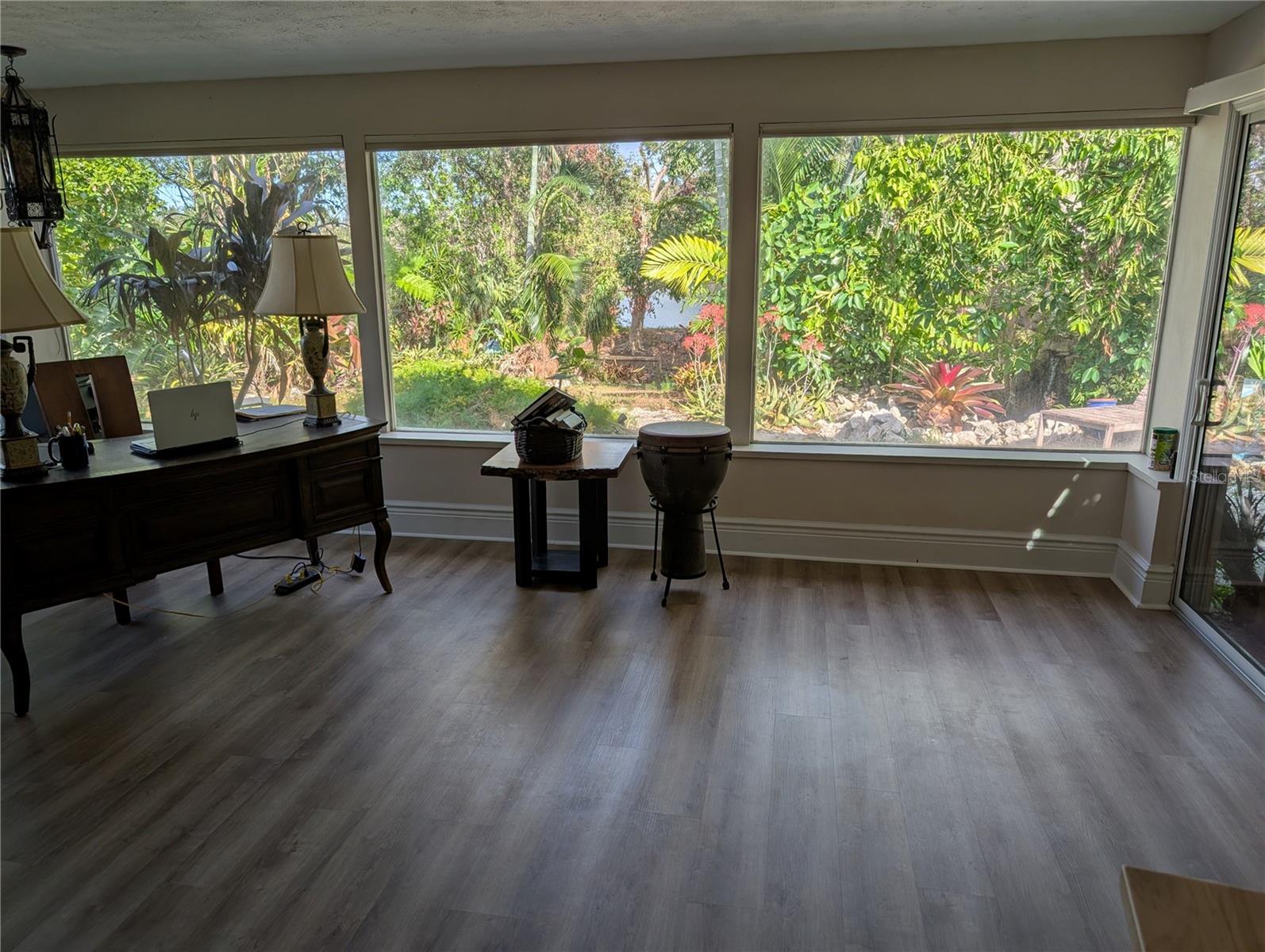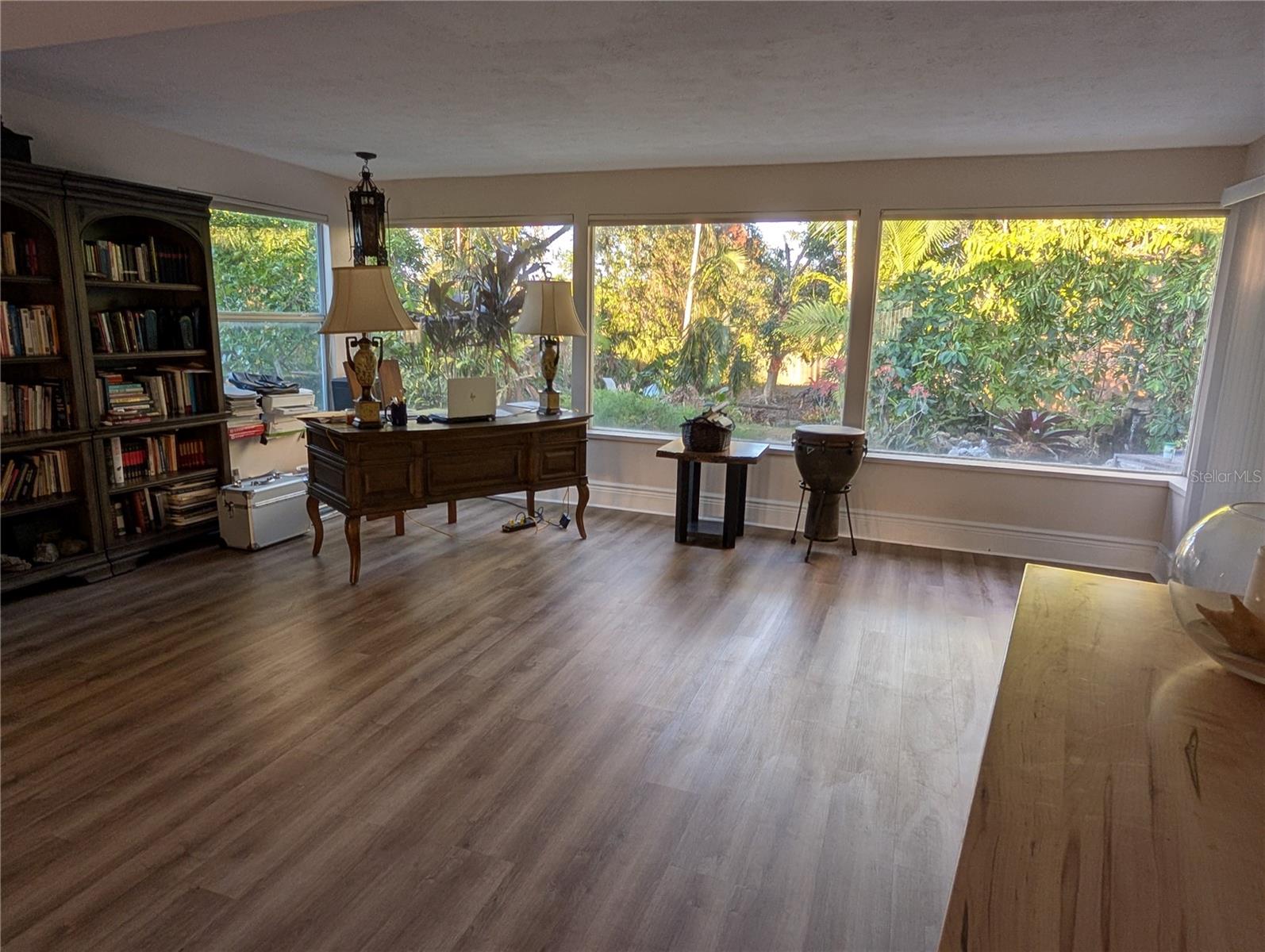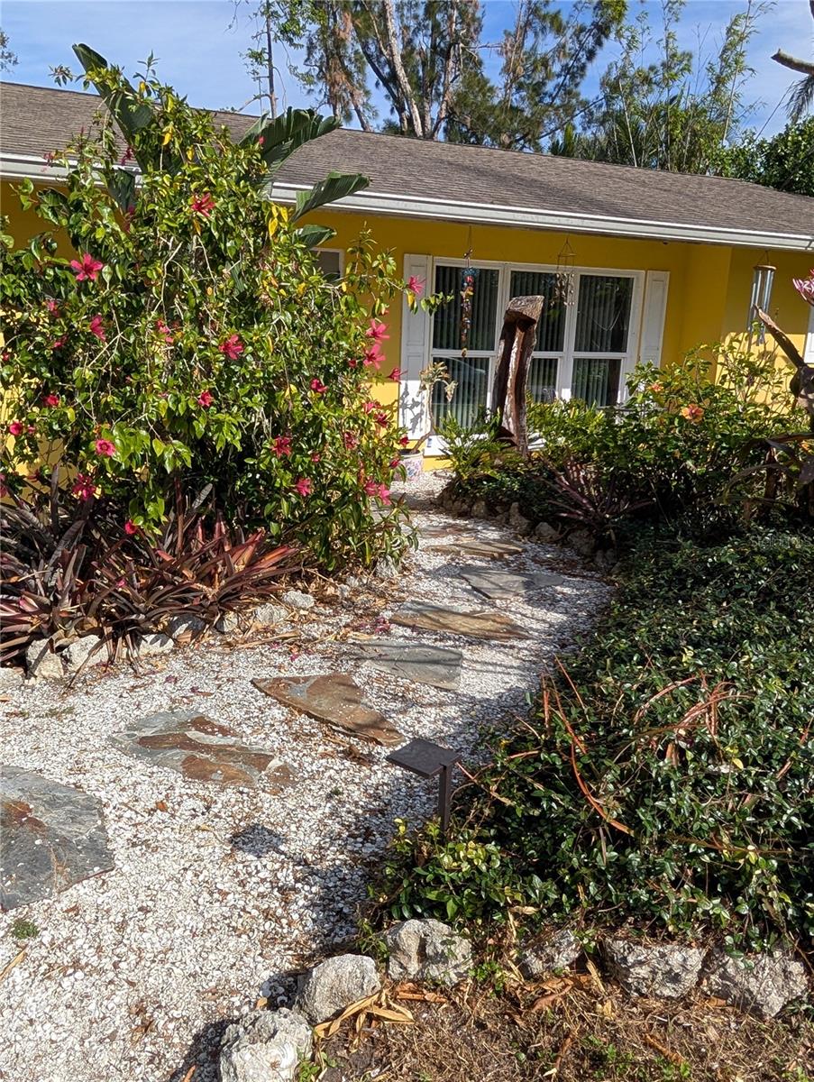 Beautiful lakefront home with old Florida charm that INCLUDES AN ISLAND!!!! Experience old Florida living at its finest! This 2 bedroom, 2 bath, 1.5 car garage, 1474 sq. ft. home exudes old Florida charm. The owner is a gardener and the backyard is filled with rare and exotic tropical plants and palms. The house is on County water, but there is also a well out back that is perfect for watering the plants and filling the goldfish pond (with waterfall). No more expensive water bills for irrigation! The back of the home is all windows. It has 4 large (approx. 5’ x 6’) windows and a sliding glass door that look out to the lake and backyard. The deed for this house extends to the lakefront (one of only two homes on San Jose Drive where the property line extends to the lake shore) and the property deed includes an “island” that sits about 20 feet into the lake. The lake is excellent for fishing and the owner will also include, with the purchase of the home, two kayaks. In the backyard is an approx. 6’ high traditional Tiki statute carved by a Tampa artist, from the trunk of a silk oak that once stood on the property. The home has never flooded and withstood the recent two storms with no issues. It is all cinder block construction, which is great for Florida storms. This home has been very well cared for and updated. It has new COREtec luxury vinyl flooring (installed 3 months ago), a 50-gallon Rheem water heater (installed in 2023), Lennox Elite AC, and upgraded appliances, including an LG washer and dryer (the LG washer sits atop an LG Sidekick which is a standalone washer, perfect for small loads and delicate items). The carpeting in the bedrooms was installed about a year ago and is in great shape. (Lights in great room do not convey) The Desoto Lakes location is excellent!!! The home is about 5 minutes from the University Town CenterUTC Mall,, 12 minutes from downtown Sarasota, and about 17 minutes from St. Armands, Lido, and the beaches. No HOA or deed restrictions! This is a rare beauty and this home will sell fast!!!