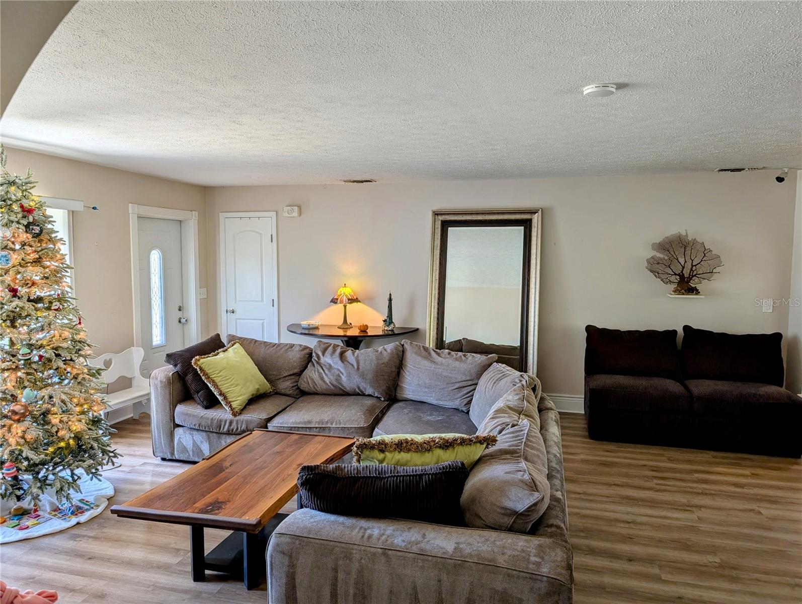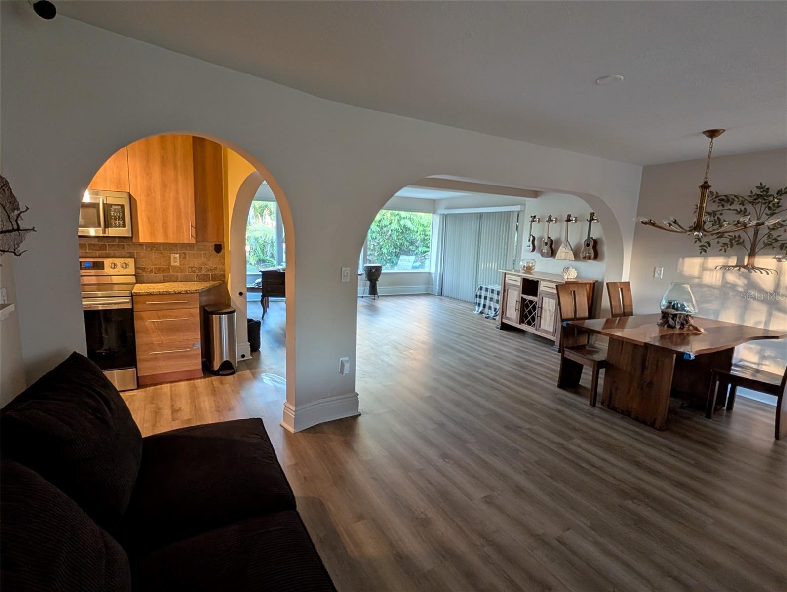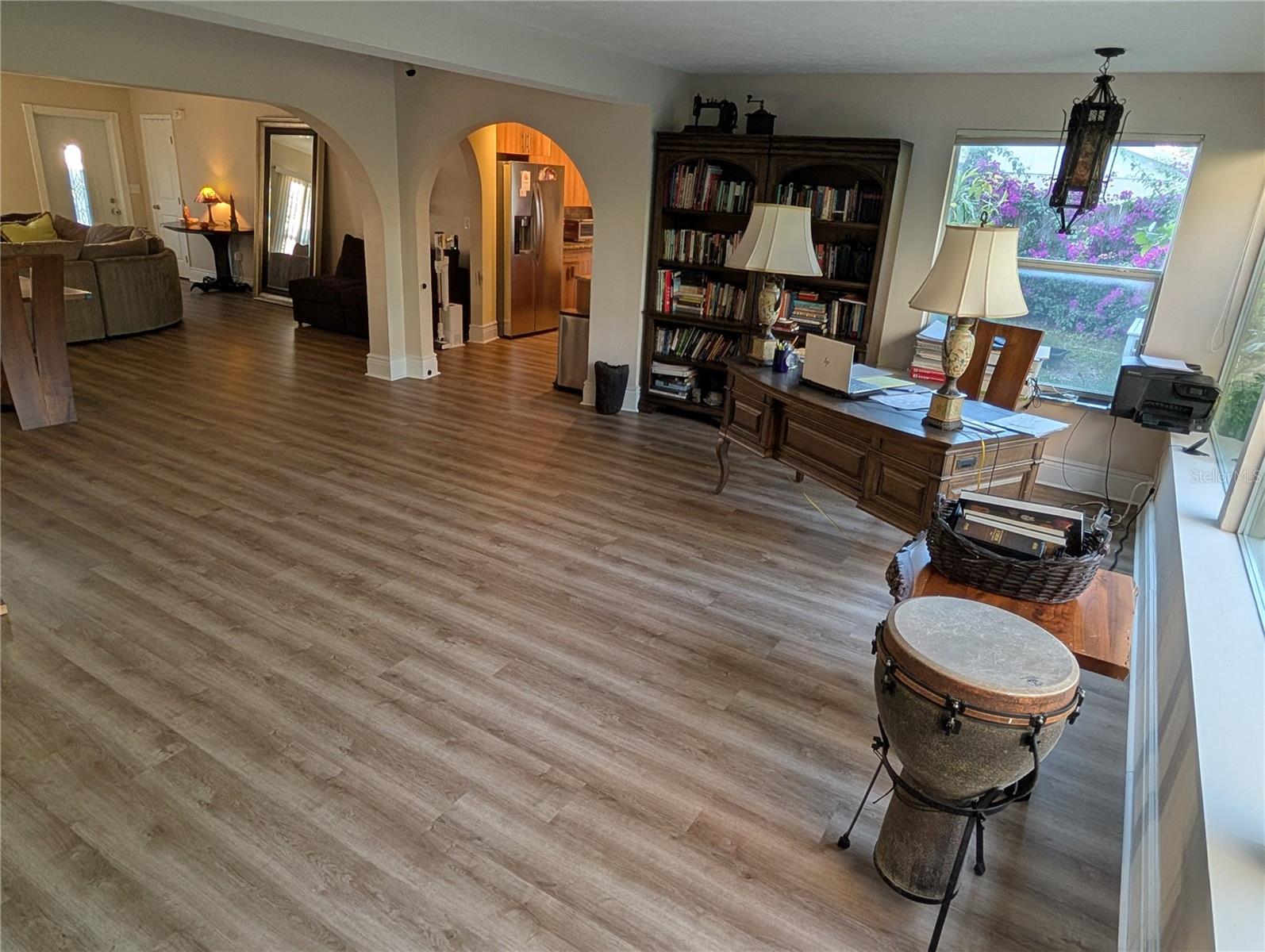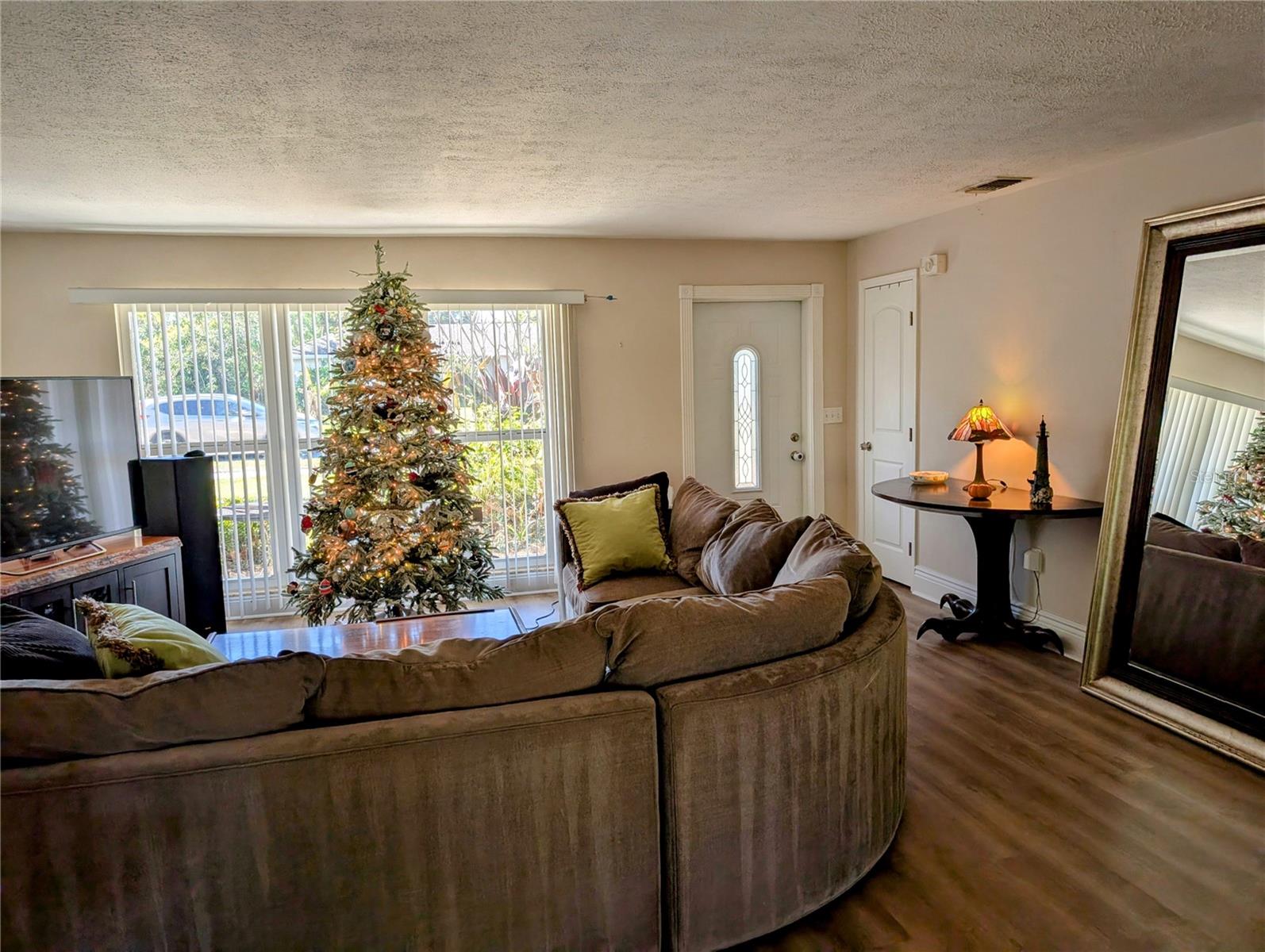 Beautiful lakefront home with old Florida charm that INCLUDES AN ISLAND!!!! Experience old Florida living at its finest! This 2 bedroom, 2 bath, 1.5 car garage, 1474 sq. ft. home exudes old Florida charm. The owner is a gardener and the backyard is filled with rare and exotic tropical plants and palms. The house is on County water, but there is also a well out back that is perfect for watering the plants and filling the goldfish pond (with waterfall). No more expensive water bills for irrigation! The back of the home is all windows. It has 4 large (approx. 5’ x 6’) windows and a sliding glass door that look out to the lake and backyard. The deed for this house extends to the lakefront (one of only two homes on San Jose Drive where the property line extends to the lake shore) and the property deed includes an “island” that sits about 20 feet into the lake. The lake is excellent for fishing and the owner will also include, with the purchase of the home, two kayaks. In the backyard is an approx. 6’ high traditional Tiki statute carved by a Tampa artist, from the trunk of a silk oak that once stood on the property. The home has never flooded and withstood the recent two storms with no issues. It is all cinder block construction, which is great for Florida storms. This home has been very well cared for and updated. It has new COREtec luxury vinyl flooring (installed 3 months ago), a 50-gallon Rheem water heater (installed in 2023), Lennox Elite AC, and upgraded appliances, including an LG washer and dryer (the LG washer sits atop an LG Sidekick which is a standalone washer, perfect for small loads and delicate items). The carpeting in the bedrooms was installed about a year ago and is in great shape. (Lights in great room do not convey) The Desoto Lakes location is excellent!!! The home is about 5 minutes from the University Town CenterUTC Mall,, 12 minutes from downtown Sarasota, and about 17 minutes from St. Armands, Lido, and the beaches. No HOA or deed restrictions! This is a rare beauty and this home will sell fast!!!