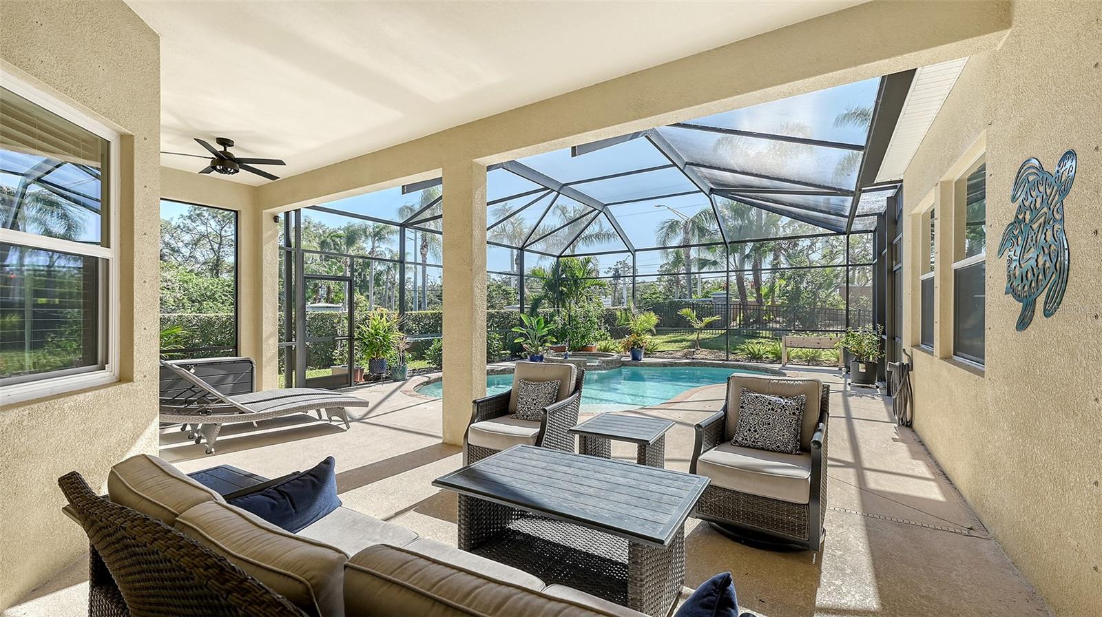 Florida Living Elevated! Motivated Sellers say "Let's make a deal!" Indulge in the art of refined living within the gates of Red Hawk Reserve. This meticulously crafted residence offers a lifestyle of unparalleled luxury, just moments from the sun-kissed sands of Siesta Key and the tranquil embrace of Twin Lakes Park. These sellers are eager to transition, presenting a rare opportunity! Step into a world where elegance and comfort seamlessly intertwine: neutral vinyl and tile flooring guiding you through an open, airy layout designed for pure entertaining. Exquisite details like wainscoting, crown molding, and tray ceilings whisper of bespoke craftsmanship, while a charming photo niche adds a personal touch. The gourmet kitchen, a culinary masterpiece, features sleek white cabinetry, gleaming stone countertops, and professional-grade stainless steel appliances, anchored by a social island perfect for hosting intimate gatherings. Retreat to the owner's sanctuary, a haven of tranquility boasting a private entrance and a sprawling walk-in closet. Thoughtful touches like a wet bar, custom laundry cabinetry, and designer fixtures elevate everyday living. With a newer AC, advanced water filtration, hurricane protection, and soundproofed windows, peace of mind is assured. This is more than a home; it's a lifestyle statement. Seize this opportunity to live the Florida dream at its finest.
