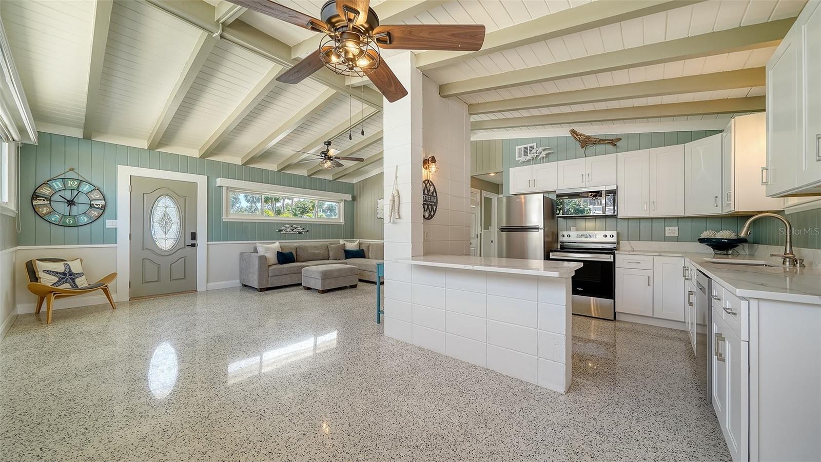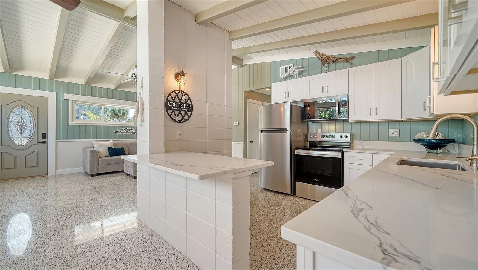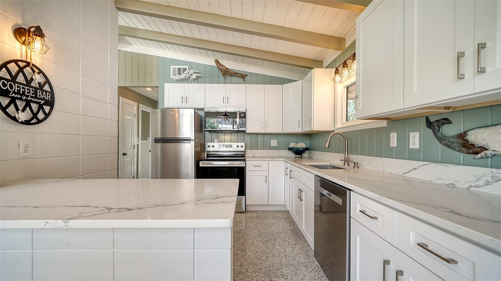 Newly renovated Siesta Key single family home for under $700,000! This charming 2 bedroom, 1 bath cottage is located on a spacious lot, a short walk to Siesta Village and nearby world famous Siesta Key Beach. Mid century modern and beachy in design, the home is filled with natural light. The kitchen features all new appliances, quartz countertops, new cabinetry and a breakfast bar. The newly polished, refinished terrazzo floors add incredible charm. The home features hurricane windows and doors and an additional 400 sq. ft. insulated, enclosed patio, providing a generous 40% increase in living space. Complete with RV hook up, very low maintenance yard, professionally engineered drainage with two sub pumps, drainage rock and french drains. If you're looking for a full time beach residence, a vacation home, or investment property, look no further- you've found the one, call for a showing today!