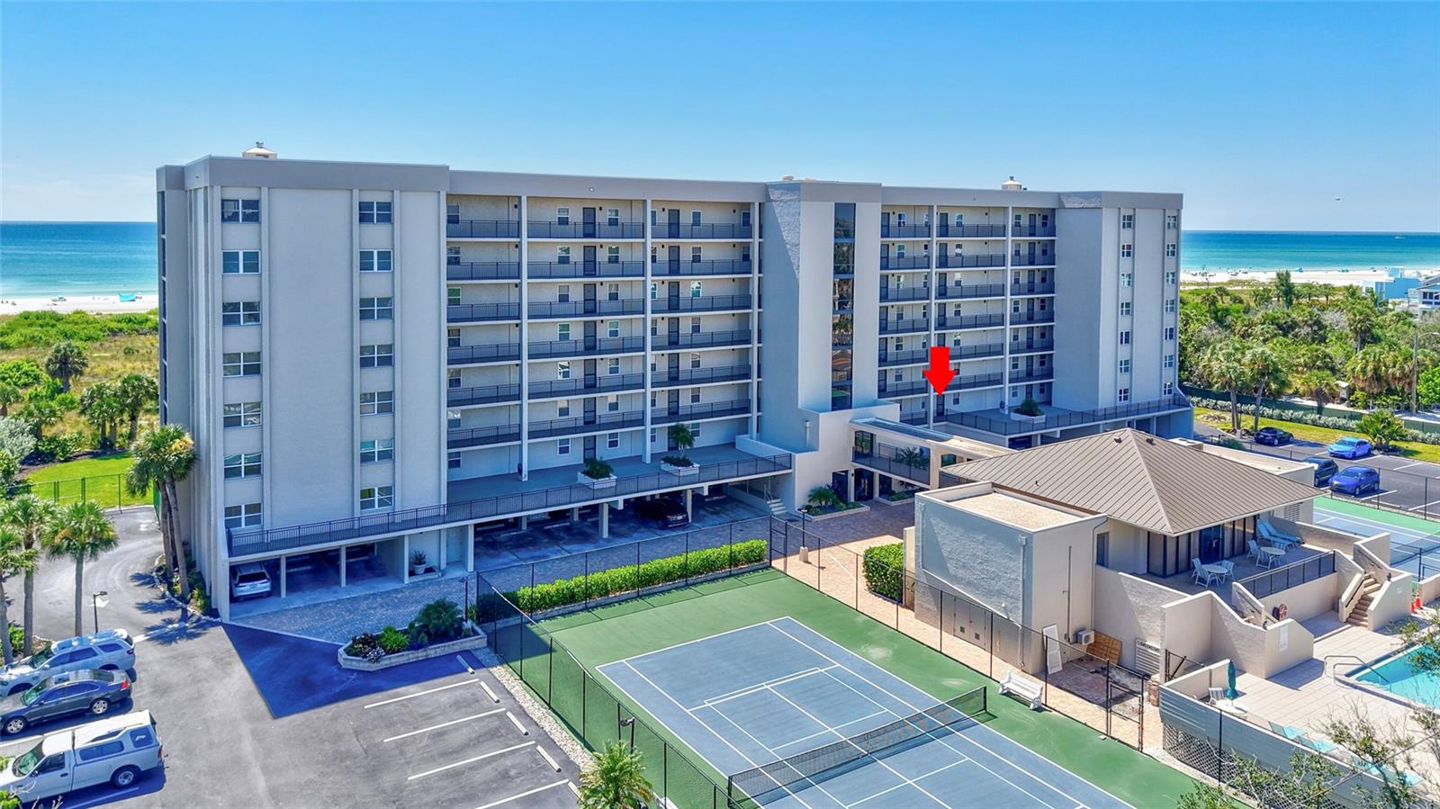 Paradise Found on Siesta Key! Wake up to Gulf breezes and end each day with a sunset over the water from this direct beachfront condo at Siesta Gulf View. This 2-bedroom, 2-bath residence offers a full west-facing panorama of Siesta Beach and the Gulf from its expansive 31-foot screened and glass-enclosed balcony, accessible from the living room, kitchen, and primary suite. From here you can enjoy both the beauty of the shoreline and the natural dune vegetation that makes this second-floor perspective feel close and connected to the beach. This floor level offers an ideal balance of easy access and elevated views: take the stairs for quick trips to the beach, pool, or parking garage, or use the elevator if preferred. No long waits, no hassle, just effortless access to every amenity. The TURNKEY FURNISHED layout includes a light-filled open kitchen with eat-in nook (perfect as a dinette or office), two spacious walk-in closets, separate laundry room, and generous storage throughout. Recent community updates give peace of mind: milestone inspections complete, all cast iron plumbing replaced in 2024, and new clubhouse roof and landscaping nearing completion, with no special assessments. Siesta Gulf View is a sought-after, gated, 59-unit community offering private boardwalk access to the quartz sands of Siesta Key Beach, plus resort-style amenities: a 25’x40’ heated pool, tennis and pickleball courts, fitness room, grilling areas, and clubhouse. Assigned under-building parking, ample guest parking, first-floor storage, and an on-site management office add convenience. Pet lovers will appreciate that up to two small pets are welcome. Best of all, you’re just blocks from vibrant Siesta Key Village: restaurants, shops, and live music are a short stroll away. Whether you’re seeking a vacation retreat, investment property (one-month minimum rentals allowed up to 12 times/year), or full-time Gulf-front living, this condo delivers the ultimate island lifestyle. Don’t miss this opportunity to claim your piece of paradise.