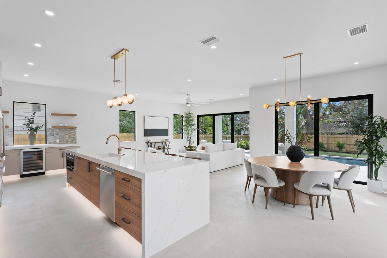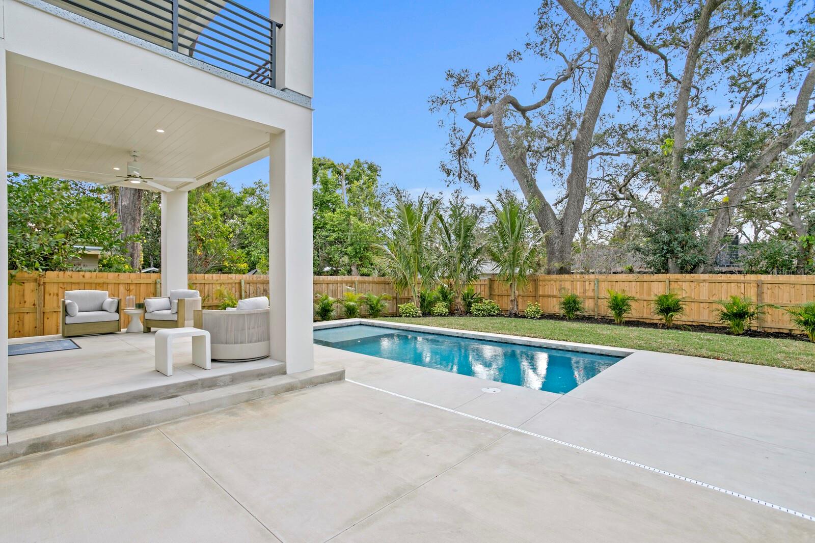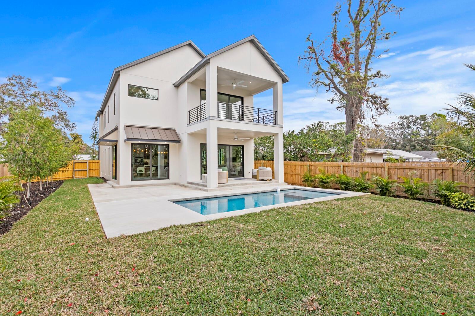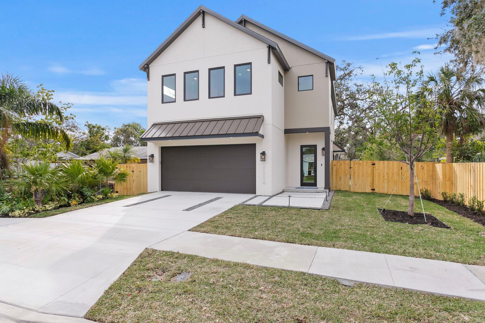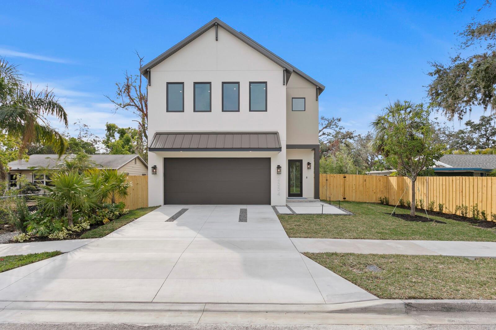 Discover the perfect blend of timeless charm and modern luxury at 2554 Arlington Street, nestled on a quiet cul-de-sac street in Sarasota’s highly sought-after Arlington Park neighborhood. Surrounded by nearby outdoor amenities, including a walkable park and community pool facility, this home offers both tranquility and accessibility. Approach the home and take in its custom landscaping and hardscaping, including young trees, palms, and fresh sod that frame the large front, side, and rear yards. Perfect for hosting gatherings, letting kids and pets run free, or simply relaxing, these outdoor spaces exude versatility. A brand-new fence ensures privacy, while the backyard features a stunning pool with a shelf and Pebble Tec finish, complemented by a covered lanai with a ceiling fan and tongue-and-groove detailing. An upstairs balcony offers a peaceful retreat with its own fan and beautiful views of the serene surroundings. Step inside to a thoughtfully designed interior, where Sherwin Williams Origami White paint, impact-rated energy-efficient windows and sliders, and large-format tile flooring create a clean and inviting atmosphere. The entryway welcomes you with its modern aluminum door, lighted niche, and tall windows. Throughout the home, engineered wood flooring, baseboards, and door casings highlight the meticulous craftsmanship. A dual-zone AC system ensures comfort year-round. At the heart of the home, the gourmet kitchen is as functional as it is stylish. Featuring brand-new stainless steel GE appliances—including a 36” French door fridge with dual freezer drawers, double oven, and microwave—this space was designed for both casual and formal occasions. Custom cabinets, a full-height quartz backsplash at the range, floating shelves, and lighted toe kicks add to the modern aesthetic, while the large island with its 3” mitered edge waterfall top serves as a focal point. Adjacent is a light-filled dining area, perfect for gatherings of any size. The powder room and laundry room elevate functionality and style, featuring custom cabinetry, lighted mirrors, quartz countertops with 3” edges, and brushed gold hardware. The laundry room includes a brand-new GE washer and dryer, utility sink, and air-conditioned storage, with direct garage access for added convenience. The primary suite is a true retreat, complete with a private lanai, engineered wood flooring, a decorative chandelier, and an oversized 8-foot-wide sliding glass door. Two spacious walk-in closets lead to the spa-inspired primary bathroom, which features a freestanding tub, dual showerheads in a walk-in shower with a custom glass enclosure, quartz countertops with a 3” edge, floating cabinets, lighted mirrors, and decorative sconces. Upstairs, the home offers three additional bedrooms, a versatile loft, and access to the upstairs balcony with its tongue-and-groove ceiling detail and custom rail. Bathrooms throughout the home feature neutral finishes, brushed gold hardware, custom floating cabinets, lighted mirrors, and tile surrounds at the showers. Perfectly situated just minutes from Sarasota’s vibrant downtown, top-rated schools, and world-renowned beaches, 2554 Arlington Street offers the ultimate in modern living. From its thoughtful design to its high-end finishes, every detail of this home has been curated to provide a seamless blend of beauty and functionality.