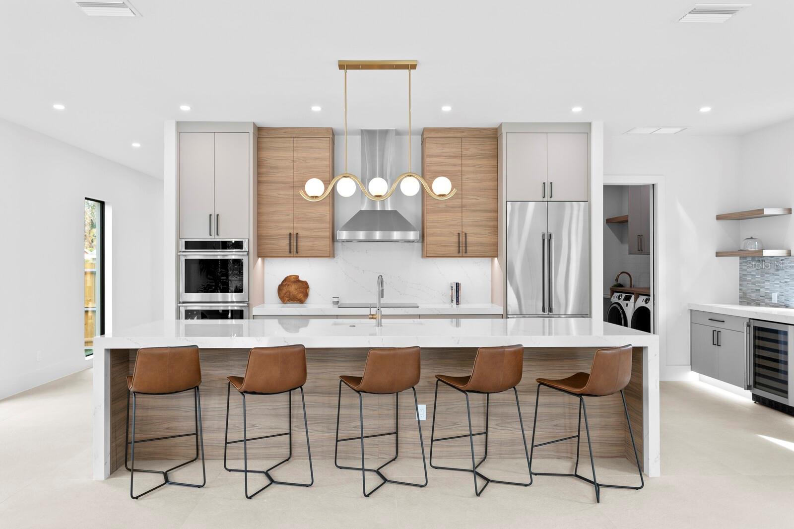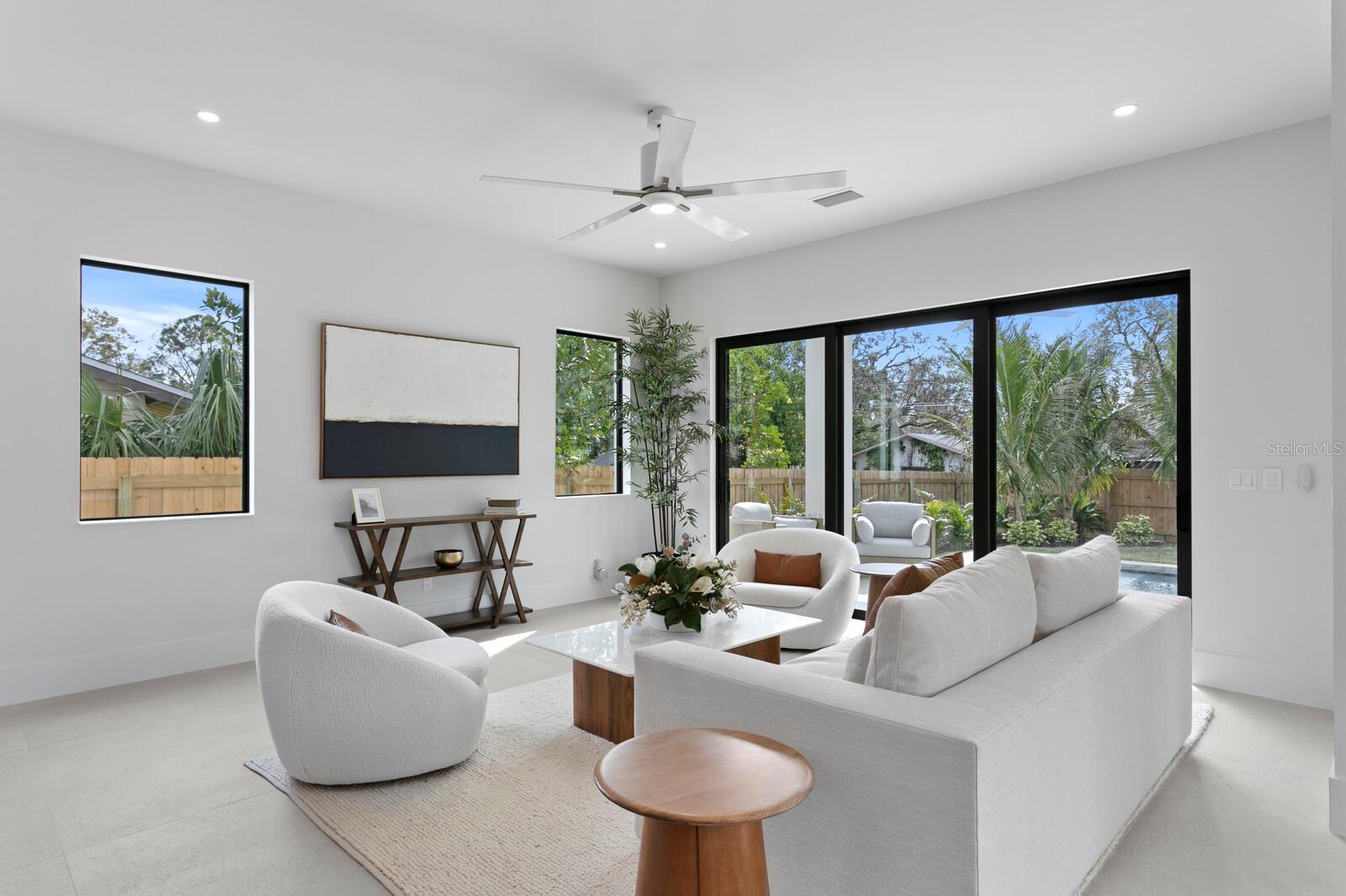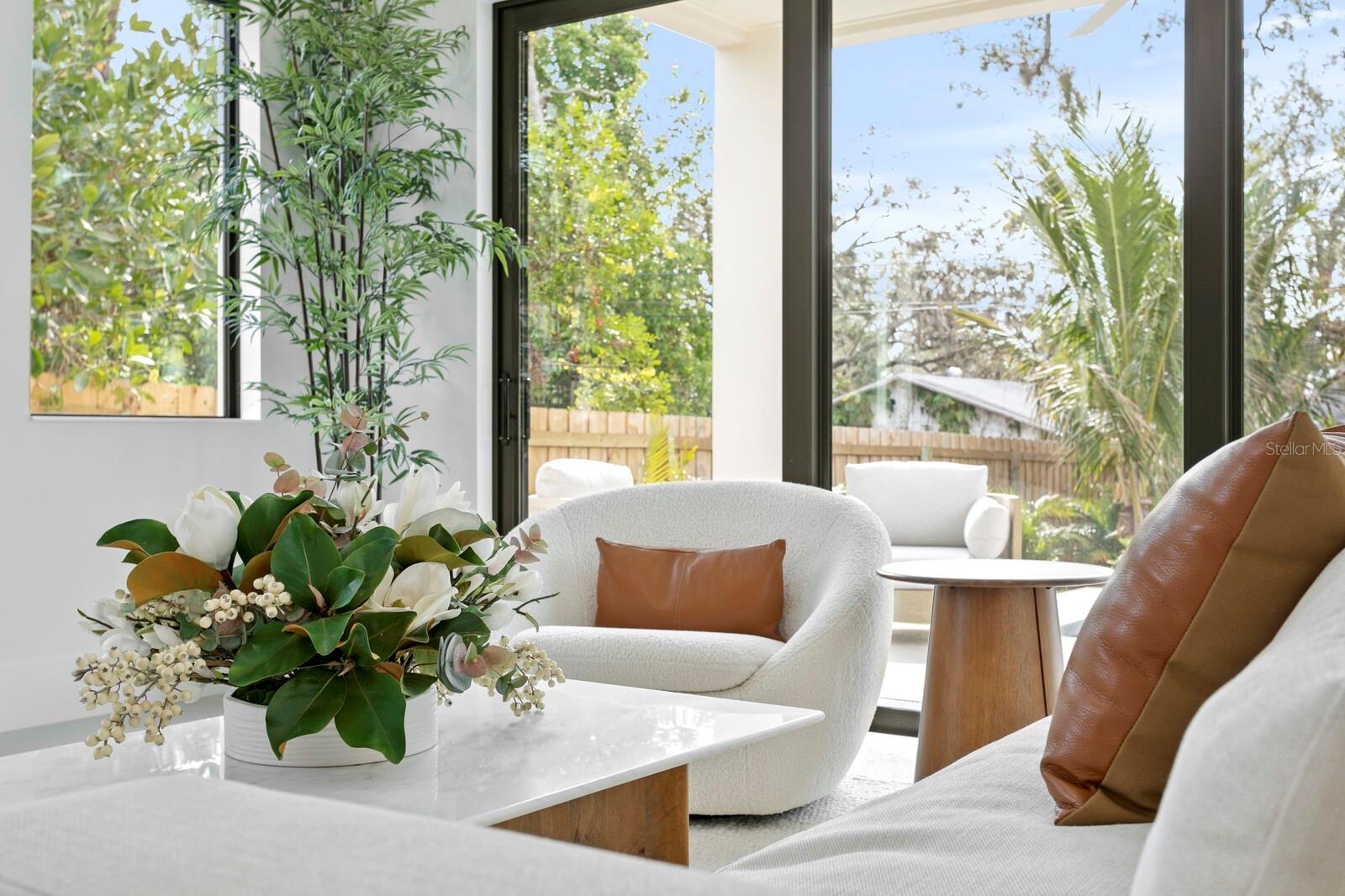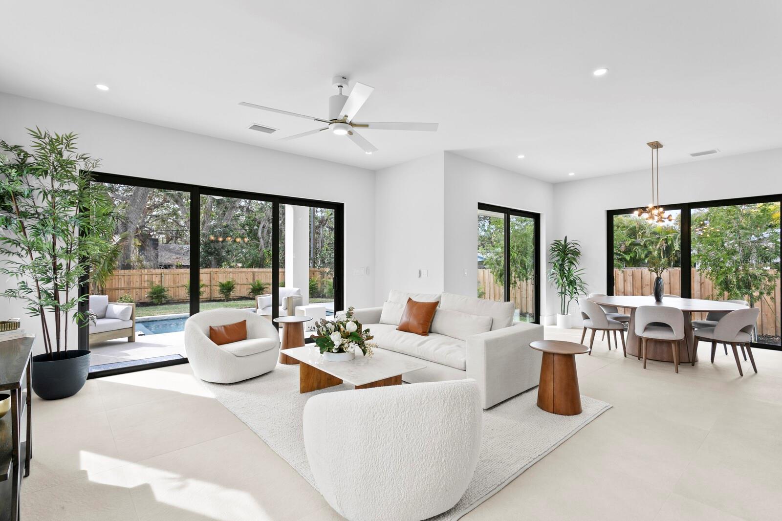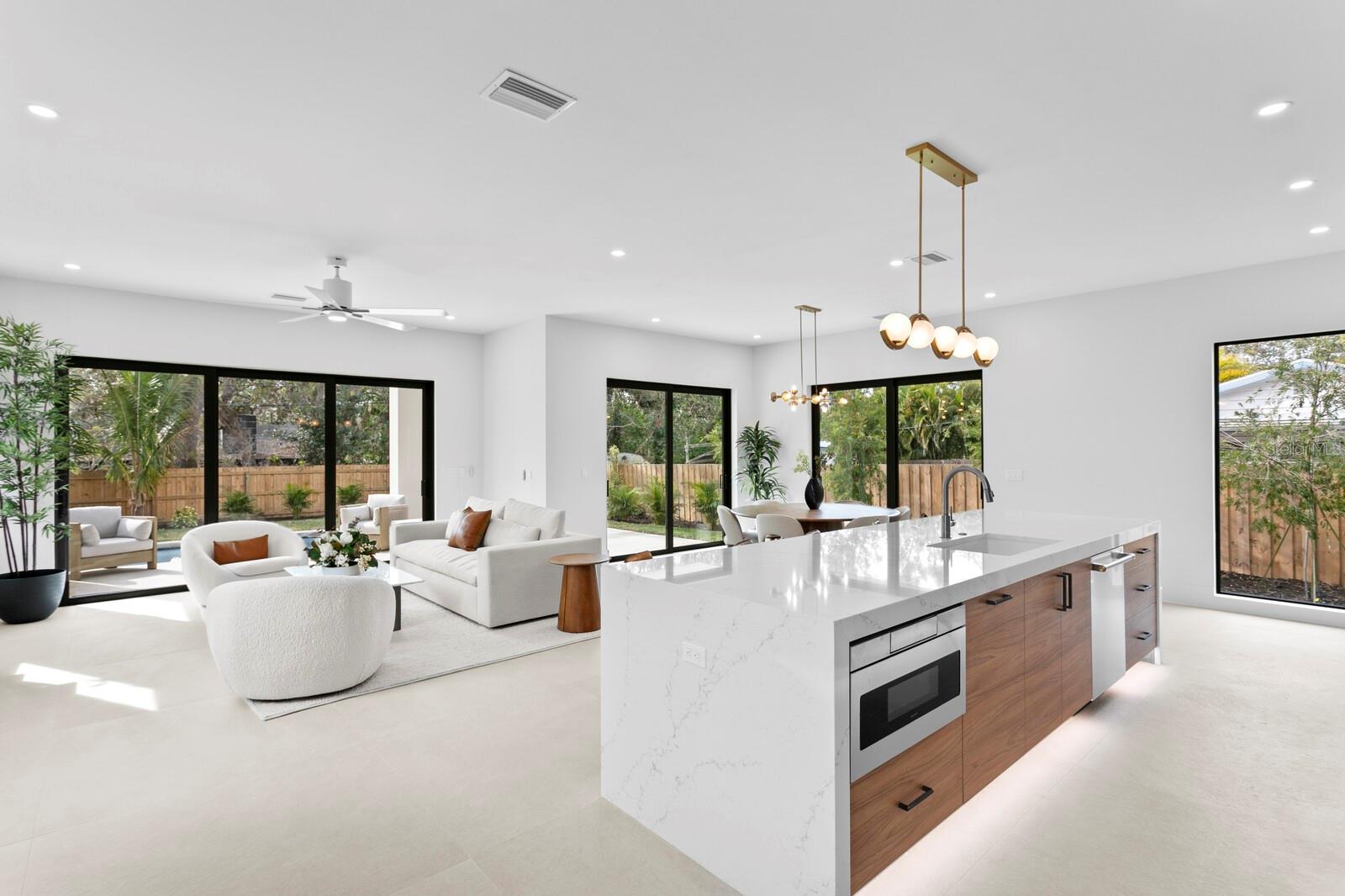 Discover the perfect blend of timeless charm and modern luxury at 2554 Arlington Street, nestled on a quiet cul-de-sac street in Sarasota’s highly sought-after Arlington Park neighborhood. Surrounded by nearby outdoor amenities, including a walkable park and community pool facility, this home offers both tranquility and accessibility. Approach the home and take in its custom landscaping and hardscaping, including young trees, palms, and fresh sod that frame the large front, side, and rear yards. Perfect for hosting gatherings, letting kids and pets run free, or simply relaxing, these outdoor spaces exude versatility. A brand-new fence ensures privacy, while the backyard features a stunning pool with a shelf and Pebble Tec finish, complemented by a covered lanai with a ceiling fan and tongue-and-groove detailing. An upstairs balcony offers a peaceful retreat with its own fan and beautiful views of the serene surroundings. Step inside to a thoughtfully designed interior, where Sherwin Williams Origami White paint, impact-rated energy-efficient windows and sliders, and large-format tile flooring create a clean and inviting atmosphere. The entryway welcomes you with its modern aluminum door, lighted niche, and tall windows. Throughout the home, engineered wood flooring, baseboards, and door casings highlight the meticulous craftsmanship. A dual-zone AC system ensures comfort year-round. At the heart of the home, the gourmet kitchen is as functional as it is stylish. Featuring brand-new stainless steel GE appliances—including a 36” French door fridge with dual freezer drawers, double oven, and microwave—this space was designed for both casual and formal occasions. Custom cabinets, a full-height quartz backsplash at the range, floating shelves, and lighted toe kicks add to the modern aesthetic, while the large island with its 3” mitered edge waterfall top serves as a focal point. Adjacent is a light-filled dining area, perfect for gatherings of any size. The powder room and laundry room elevate functionality and style, featuring custom cabinetry, lighted mirrors, quartz countertops with 3” edges, and brushed gold hardware. The laundry room includes a brand-new GE washer and dryer, utility sink, and air-conditioned storage, with direct garage access for added convenience. The primary suite is a true retreat, complete with a private lanai, engineered wood flooring, a decorative chandelier, and an oversized 8-foot-wide sliding glass door. Two spacious walk-in closets lead to the spa-inspired primary bathroom, which features a freestanding tub, dual showerheads in a walk-in shower with a custom glass enclosure, quartz countertops with a 3” edge, floating cabinets, lighted mirrors, and decorative sconces. Upstairs, the home offers three additional bedrooms, a versatile loft, and access to the upstairs balcony with its tongue-and-groove ceiling detail and custom rail. Bathrooms throughout the home feature neutral finishes, brushed gold hardware, custom floating cabinets, lighted mirrors, and tile surrounds at the showers. Perfectly situated just minutes from Sarasota’s vibrant downtown, top-rated schools, and world-renowned beaches, 2554 Arlington Street offers the ultimate in modern living. From its thoughtful design to its high-end finishes, every detail of this home has been curated to provide a seamless blend of beauty and functionality.