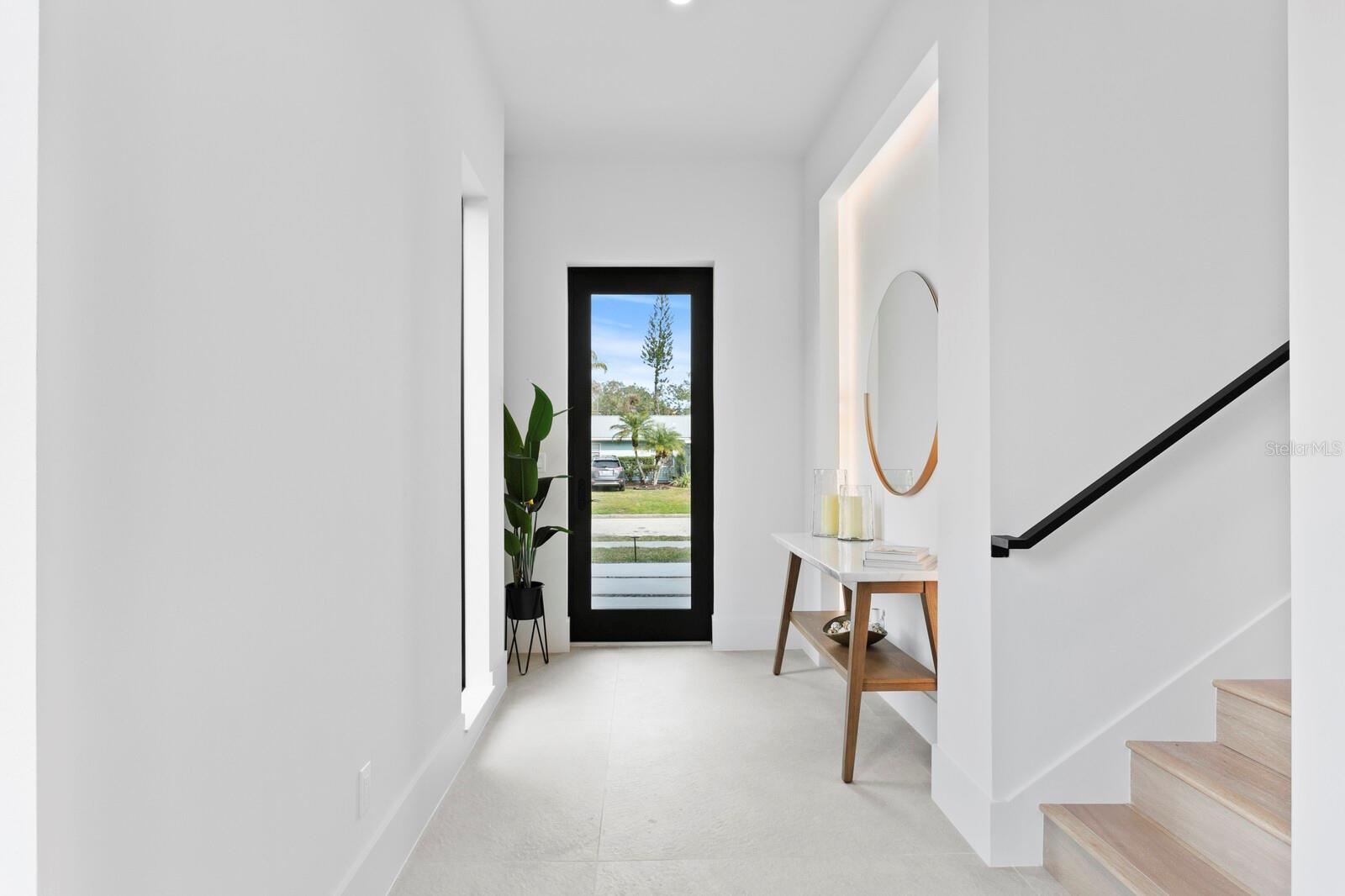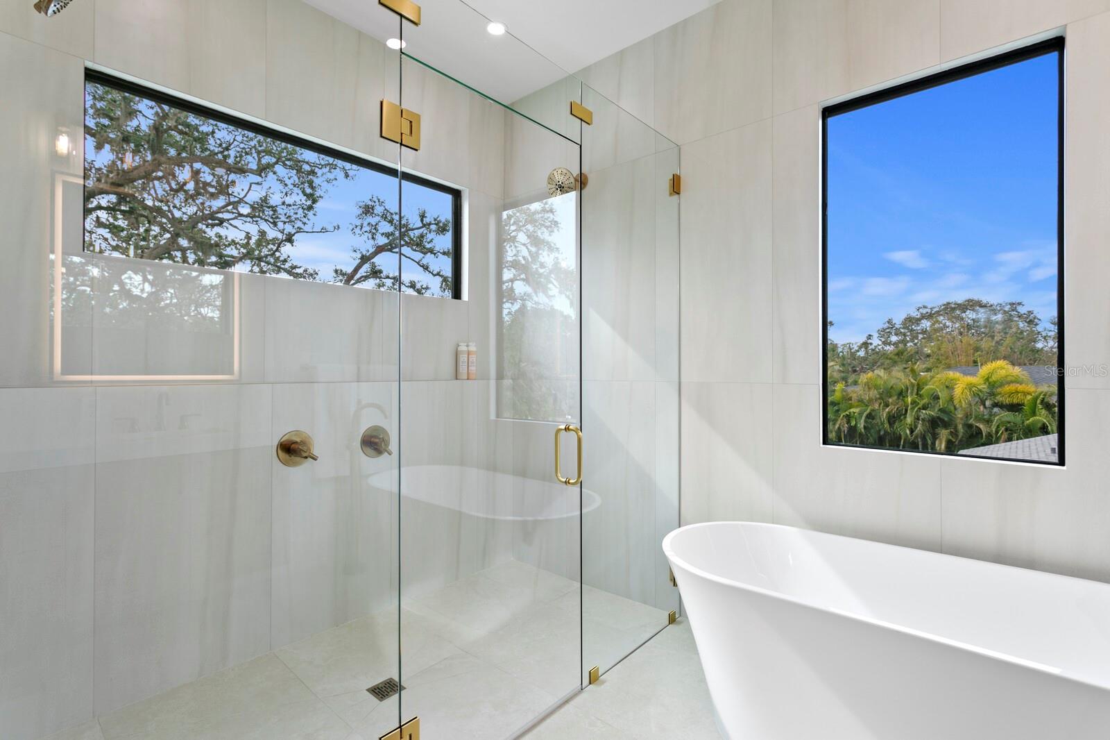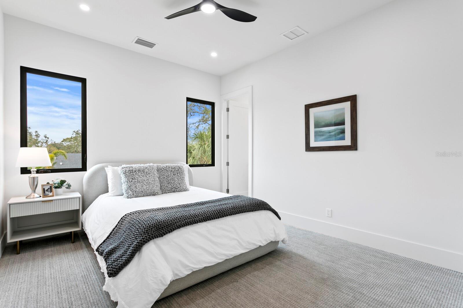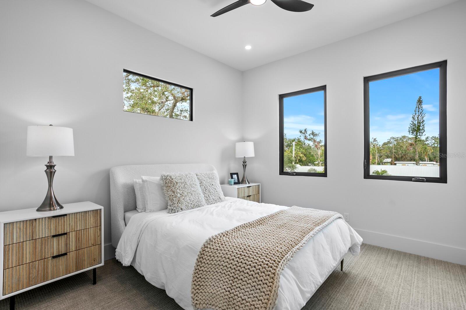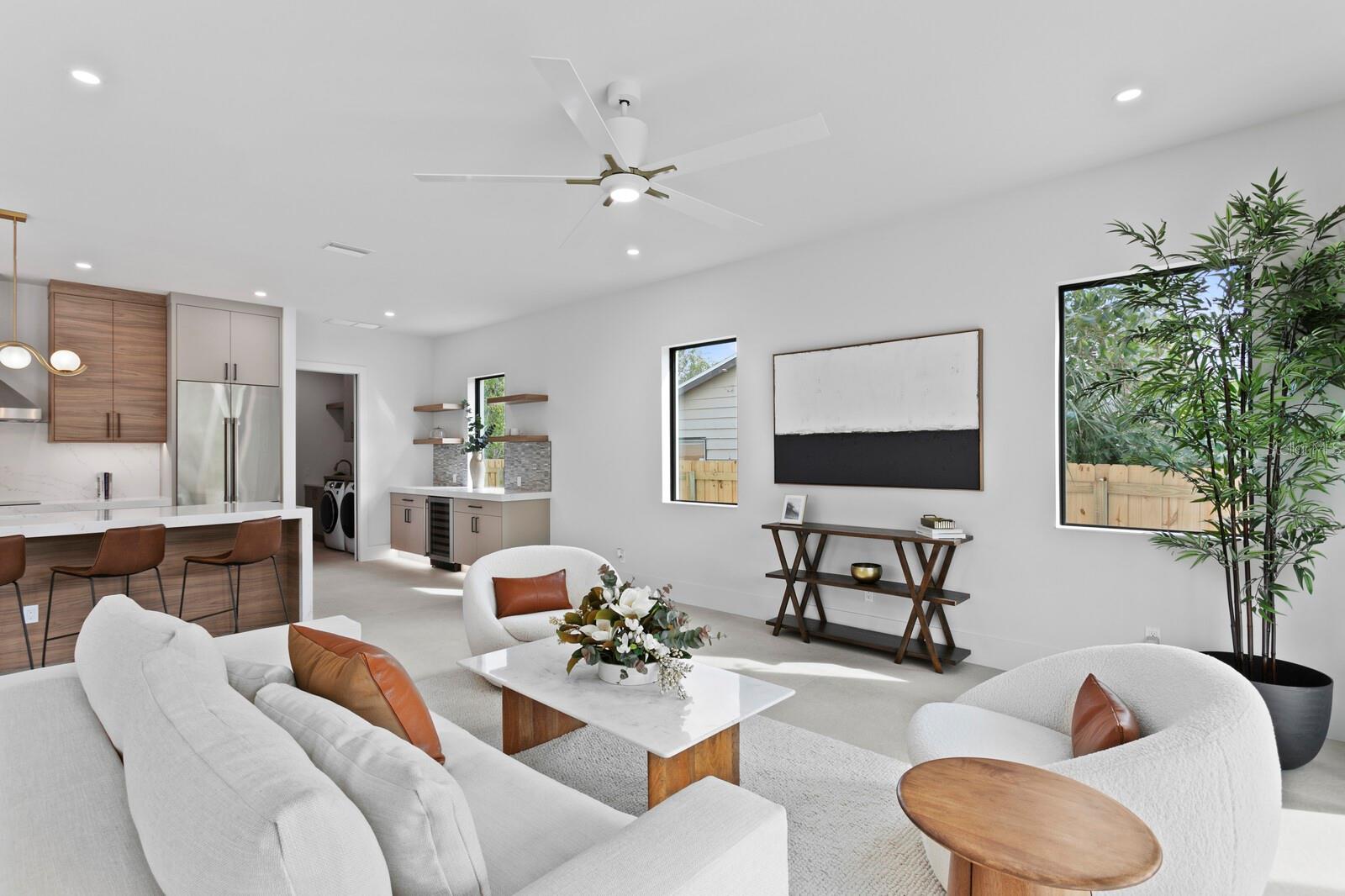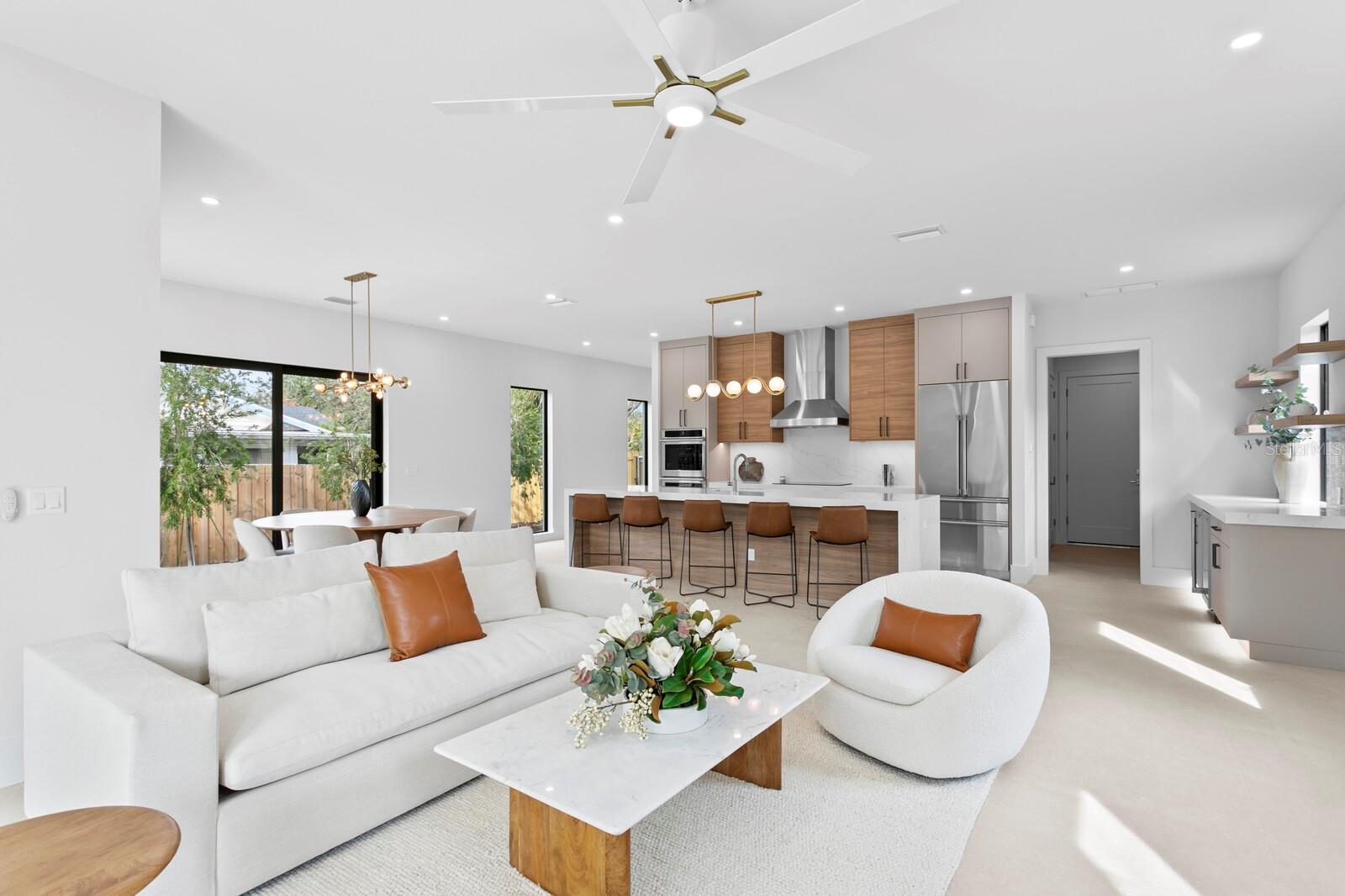 Discover the perfect blend of timeless charm and modern luxury at 2554 Arlington Street, nestled on a quiet cul-de-sac street in Sarasota’s highly sought-after Arlington Park neighborhood. Surrounded by nearby outdoor amenities, including a walkable park and community pool facility, this home offers both tranquility and accessibility. Approach the home and take in its custom landscaping and hardscaping, including young trees, palms, and fresh sod that frame the large front, side, and rear yards. Perfect for hosting gatherings, letting kids and pets run free, or simply relaxing, these outdoor spaces exude versatility. A brand-new fence ensures privacy, while the backyard features a stunning pool with a shelf and Pebble Tec finish, complemented by a covered lanai with a ceiling fan and tongue-and-groove detailing. An upstairs balcony offers a peaceful retreat with its own fan and beautiful views of the serene surroundings. Step inside to a thoughtfully designed interior, where Sherwin Williams Origami White paint, impact-rated energy-efficient windows and sliders, and large-format tile flooring create a clean and inviting atmosphere. The entryway welcomes you with its modern aluminum door, lighted niche, and tall windows. Throughout the home, engineered wood flooring, baseboards, and door casings highlight the meticulous craftsmanship. A dual-zone AC system ensures comfort year-round. At the heart of the home, the gourmet kitchen is as functional as it is stylish. Featuring brand-new stainless steel GE appliances—including a 36” French door fridge with dual freezer drawers, double oven, and microwave—this space was designed for both casual and formal occasions. Custom cabinets, a full-height quartz backsplash at the range, floating shelves, and lighted toe kicks add to the modern aesthetic, while the large island with its 3” mitered edge waterfall top serves as a focal point. Adjacent is a light-filled dining area, perfect for gatherings of any size. The powder room and laundry room elevate functionality and style, featuring custom cabinetry, lighted mirrors, quartz countertops with 3” edges, and brushed gold hardware. The laundry room includes a brand-new GE washer and dryer, utility sink, and air-conditioned storage, with direct garage access for added convenience. The primary suite is a true retreat, complete with a private lanai, engineered wood flooring, a decorative chandelier, and an oversized 8-foot-wide sliding glass door. Two spacious walk-in closets lead to the spa-inspired primary bathroom, which features a freestanding tub, dual showerheads in a walk-in shower with a custom glass enclosure, quartz countertops with a 3” edge, floating cabinets, lighted mirrors, and decorative sconces. Upstairs, the home offers three additional bedrooms, a versatile loft, and access to the upstairs balcony with its tongue-and-groove ceiling detail and custom rail. Bathrooms throughout the home feature neutral finishes, brushed gold hardware, custom floating cabinets, lighted mirrors, and tile surrounds at the showers. Perfectly situated just minutes from Sarasota’s vibrant downtown, top-rated schools, and world-renowned beaches, 2554 Arlington Street offers the ultimate in modern living. From its thoughtful design to its high-end finishes, every detail of this home has been curated to provide a seamless blend of beauty and functionality.
