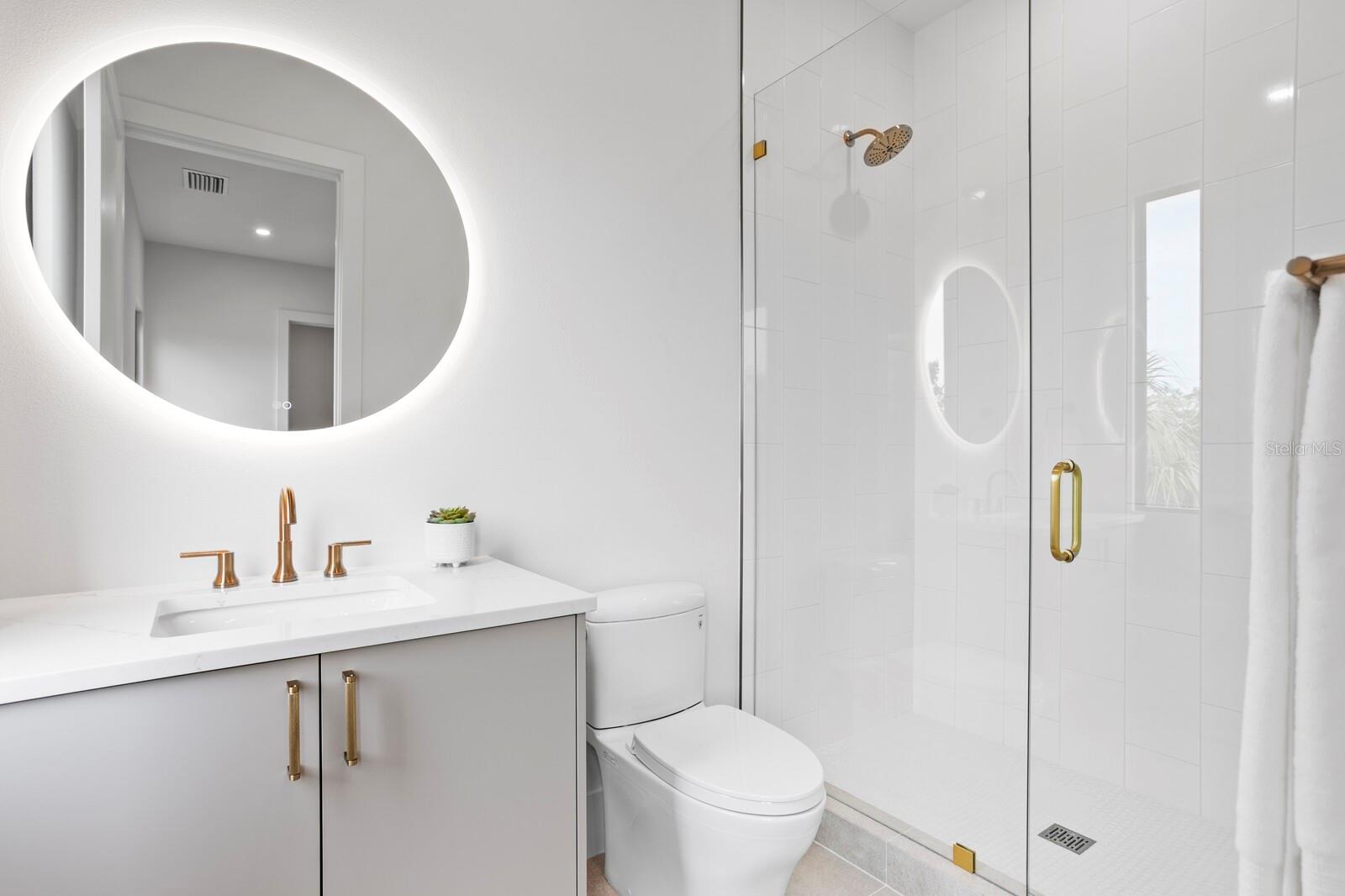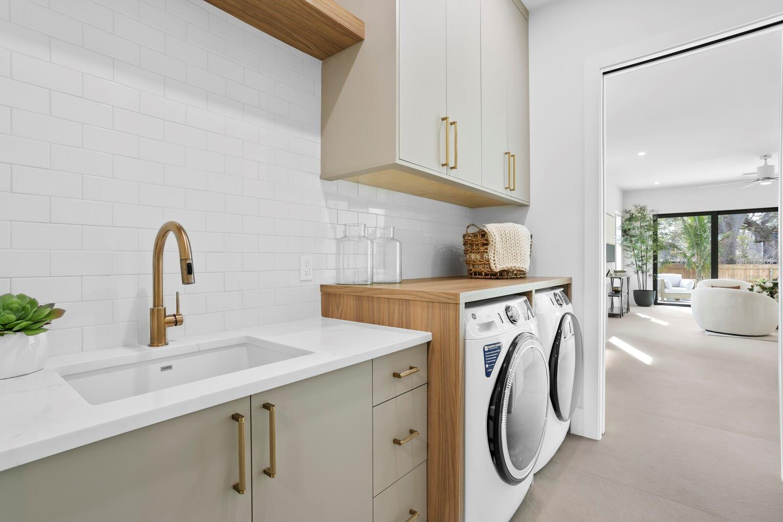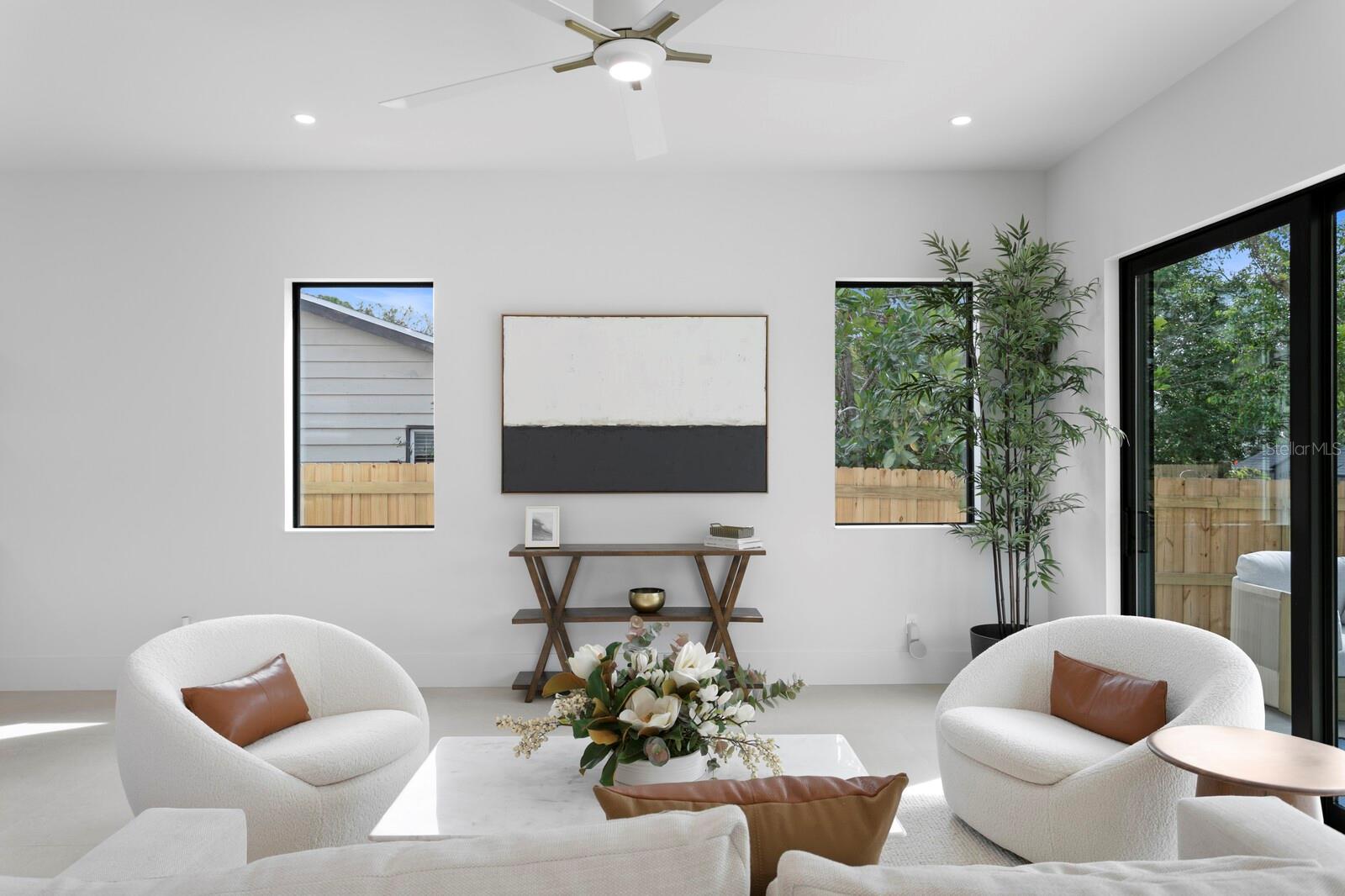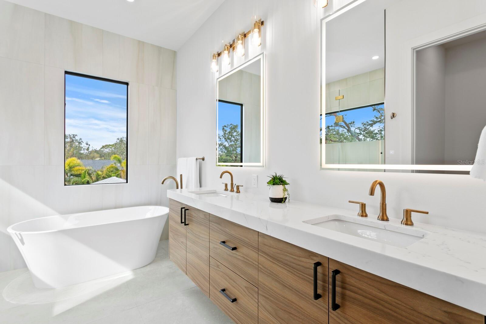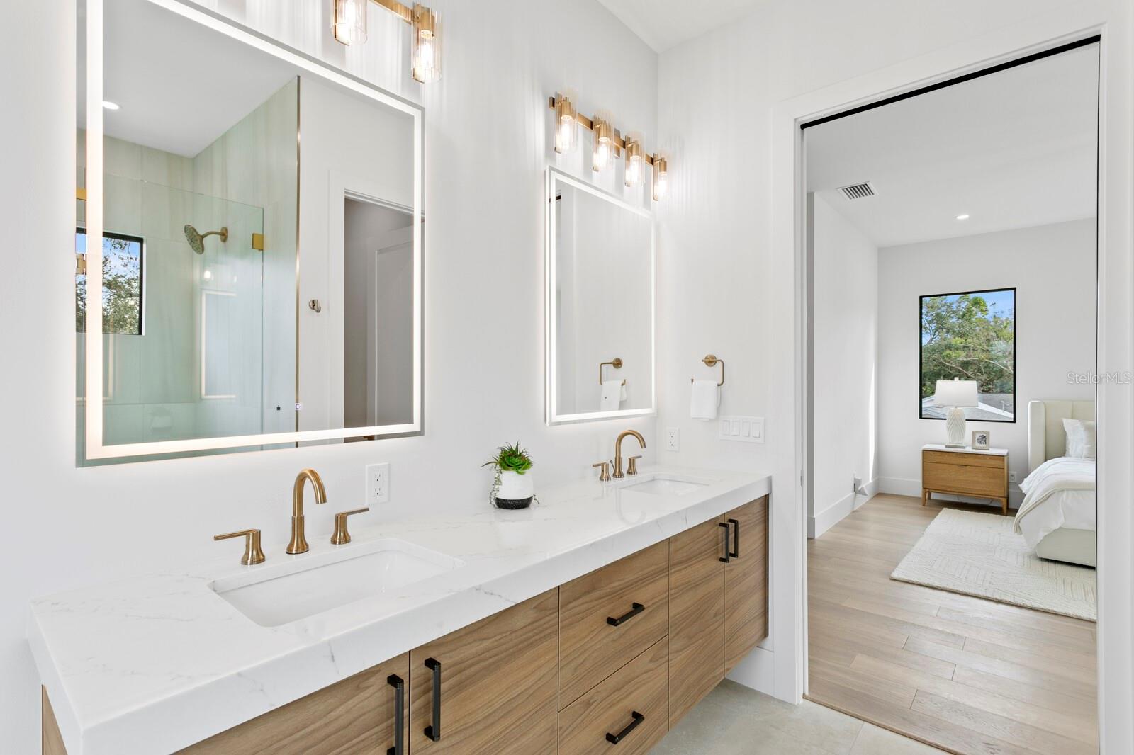 Discover the perfect blend of timeless charm and modern luxury at 2554 Arlington Street, nestled on a quiet cul-de-sac street in Sarasota’s highly sought-after Arlington Park neighborhood. Surrounded by nearby outdoor amenities, including a walkable park and community pool facility, this home offers both tranquility and accessibility. Approach the home and take in its custom landscaping and hardscaping, including young trees, palms, and fresh sod that frame the large front, side, and rear yards. Perfect for hosting gatherings, letting kids and pets run free, or simply relaxing, these outdoor spaces exude versatility. A brand-new fence ensures privacy, while the backyard features a stunning pool with a shelf and Pebble Tec finish, complemented by a covered lanai with a ceiling fan and tongue-and-groove detailing. An upstairs balcony offers a peaceful retreat with its own fan and beautiful views of the serene surroundings. Step inside to a thoughtfully designed interior, where Sherwin Williams Origami White paint, impact-rated energy-efficient windows and sliders, and large-format tile flooring create a clean and inviting atmosphere. The entryway welcomes you with its modern aluminum door, lighted niche, and tall windows. Throughout the home, engineered wood flooring, baseboards, and door casings highlight the meticulous craftsmanship. A dual-zone AC system ensures comfort year-round. At the heart of the home, the gourmet kitchen is as functional as it is stylish. Featuring brand-new stainless steel GE appliances—including a 36” French door fridge with dual freezer drawers, double oven, and microwave—this space was designed for both casual and formal occasions. Custom cabinets, a full-height quartz backsplash at the range, floating shelves, and lighted toe kicks add to the modern aesthetic, while the large island with its 3” mitered edge waterfall top serves as a focal point. Adjacent is a light-filled dining area, perfect for gatherings of any size. The powder room and laundry room elevate functionality and style, featuring custom cabinetry, lighted mirrors, quartz countertops with 3” edges, and brushed gold hardware. The laundry room includes a brand-new GE washer and dryer, utility sink, and air-conditioned storage, with direct garage access for added convenience. The primary suite is a true retreat, complete with a private lanai, engineered wood flooring, a decorative chandelier, and an oversized 8-foot-wide sliding glass door. Two spacious walk-in closets lead to the spa-inspired primary bathroom, which features a freestanding tub, dual showerheads in a walk-in shower with a custom glass enclosure, quartz countertops with a 3” edge, floating cabinets, lighted mirrors, and decorative sconces. Upstairs, the home offers three additional bedrooms, a versatile loft, and access to the upstairs balcony with its tongue-and-groove ceiling detail and custom rail. Bathrooms throughout the home feature neutral finishes, brushed gold hardware, custom floating cabinets, lighted mirrors, and tile surrounds at the showers. Perfectly situated just minutes from Sarasota’s vibrant downtown, top-rated schools, and world-renowned beaches, 2554 Arlington Street offers the ultimate in modern living. From its thoughtful design to its high-end finishes, every detail of this home has been curated to provide a seamless blend of beauty and functionality.